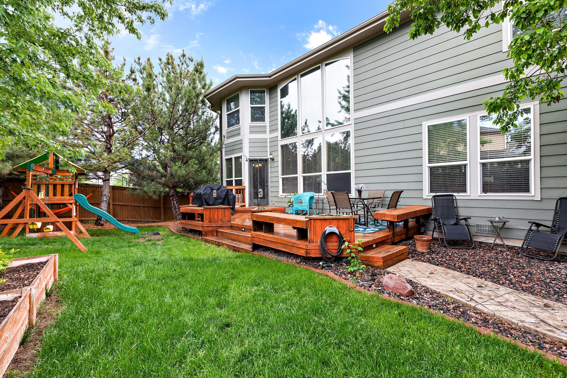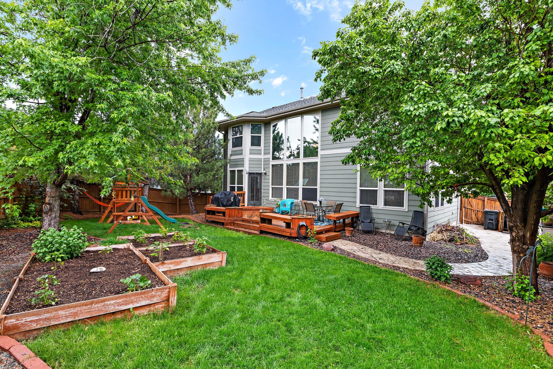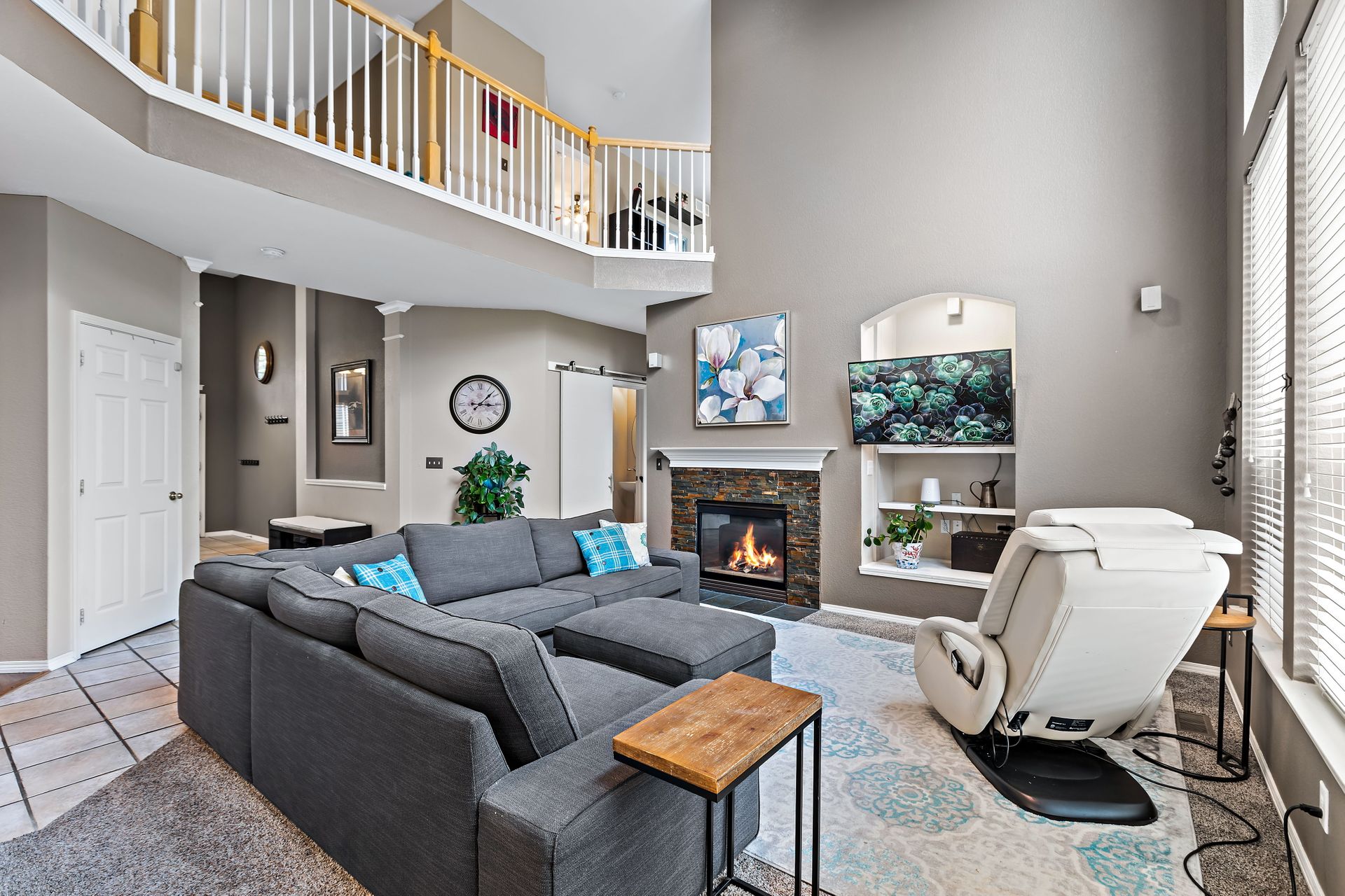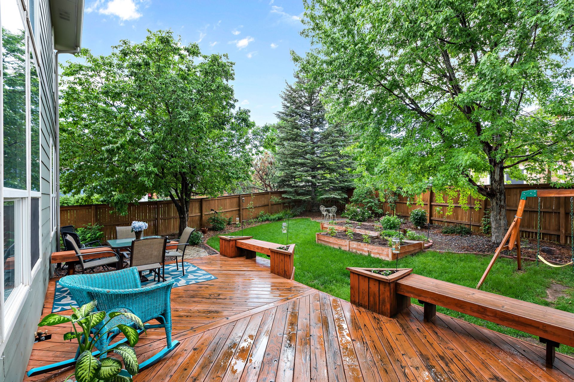 Two-story home on quiet cul-de-sac with over 2,400 square feet of finished living area, plus an unfinished basement. This beautiful Stonegate home welcomes you with a grand staircase in the foyer alongside the formal living and dining rooms. Light pours in from the oversized windows as you continue to the eat-in kitchen and great room with soaring ceilings and views of the large fully fenced backyard, complete with a sizable deck and raised garden beds. Back inside, an office with French doors and a laundry room with access to the the garage round out the main level. Upstairs, the primary bedroom features a spacious five-piece primary bath and a walk-in closet. Down the hall, a loft sits between two additional bedrooms that share another full bath. Steps away from access to Cherry Creek Regional Trail and Challenger Regional Park with easy access to E-740 and I-25.