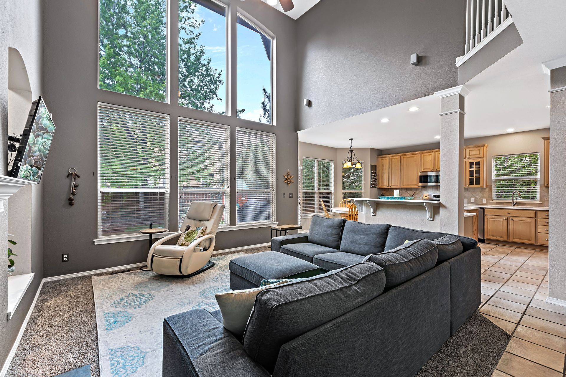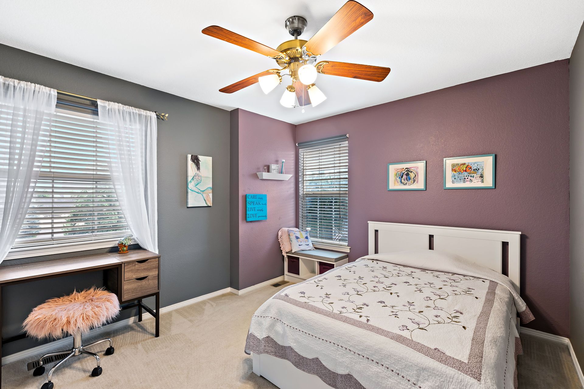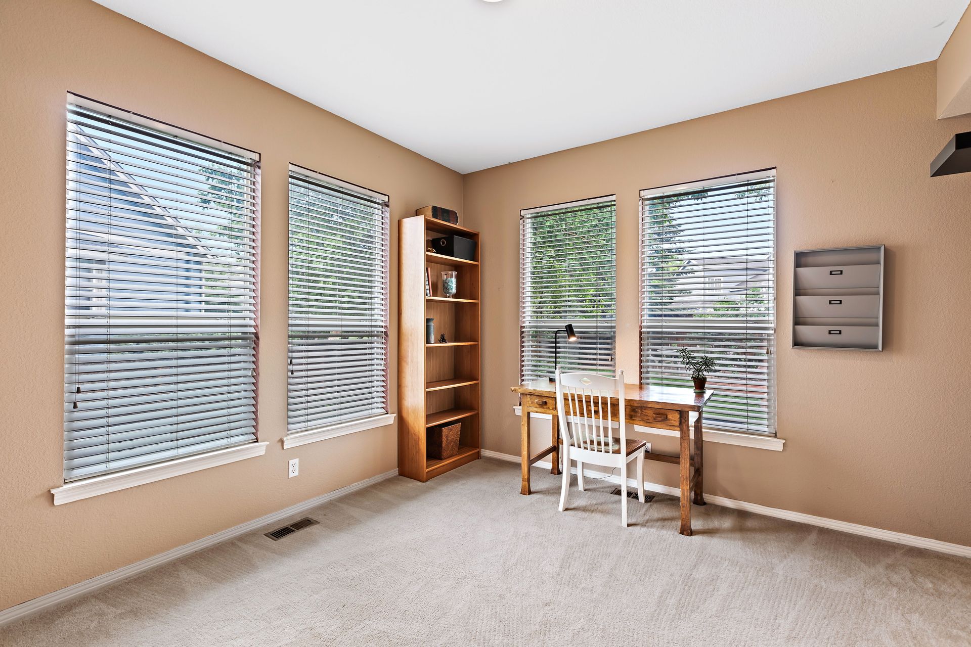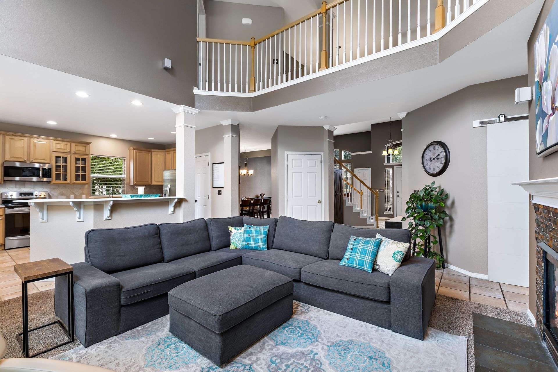 Two-story home on quiet cul-de-sac with over 2,400 square feet of finished living area, plus an unfinished basement. This beautiful Stonegate home welcomes you with a grand staircase in the foyer alongside the formal living and dining rooms. Light pours in from the oversized windows as you continue to the eat-in kitchen and great room with soaring ceilings and views of the large fully fenced backyard, complete with a sizable deck and raised garden beds. Back inside, an office with French doors and a laundry room with access to the the garage round out the main level. Upstairs, the primary bedroom features a spacious five-piece primary bath and a walk-in closet. Down the hall, a loft sits between two additional bedrooms that share another full bath. Steps away from access to Cherry Creek Regional Trail and Challenger Regional Park with easy access to E-740 and I-25.