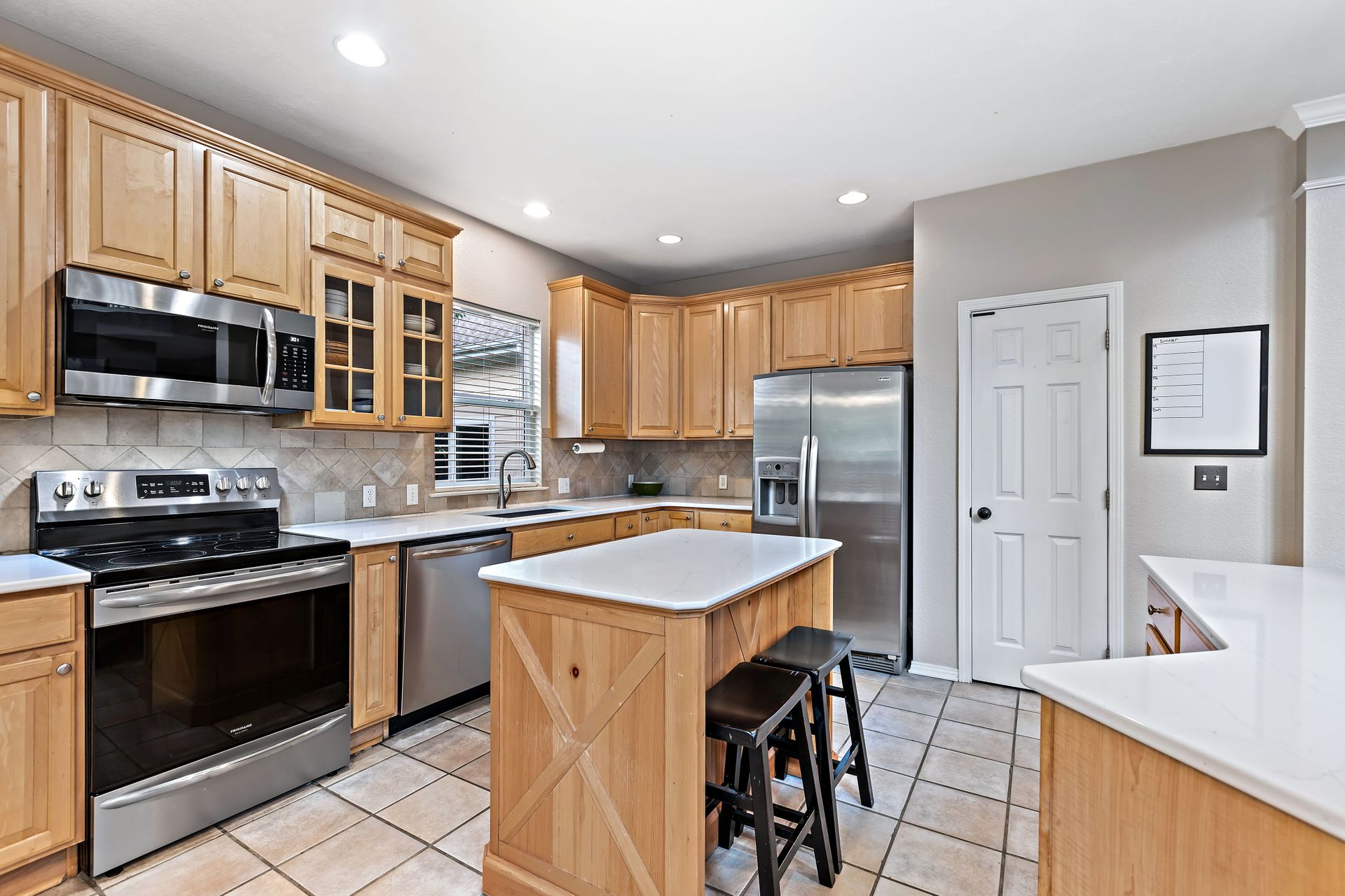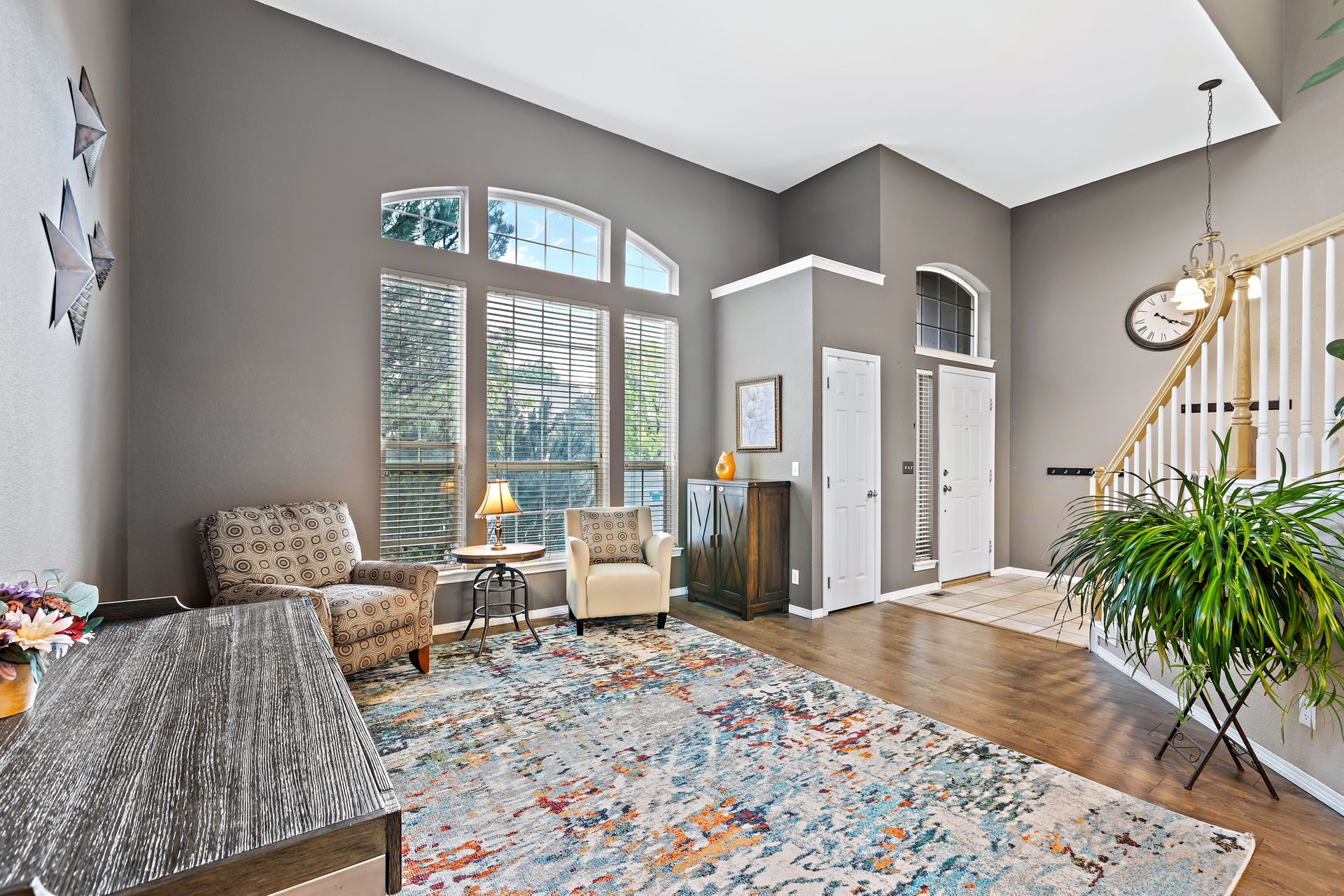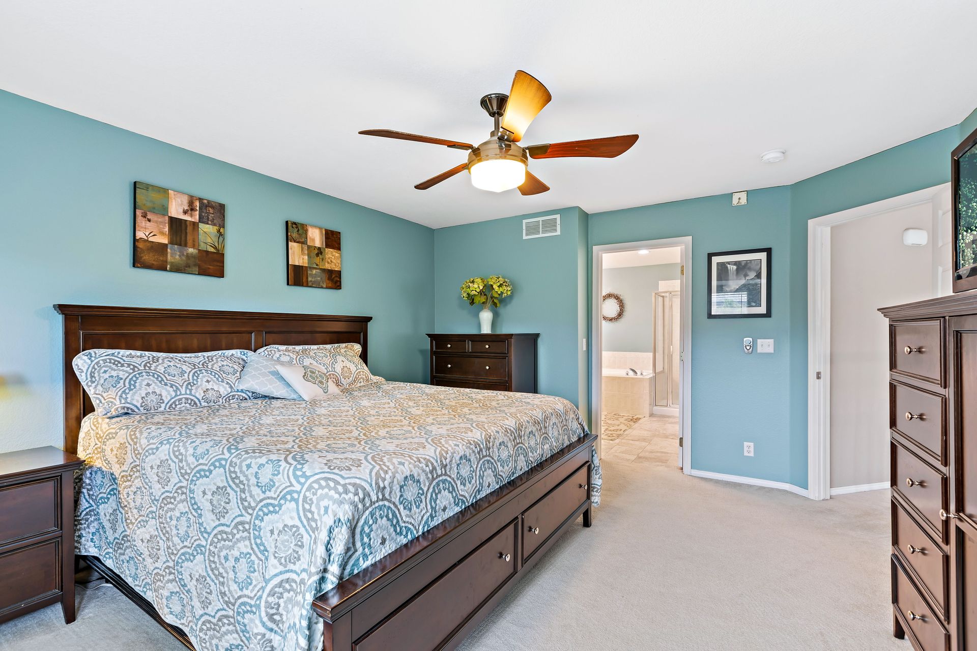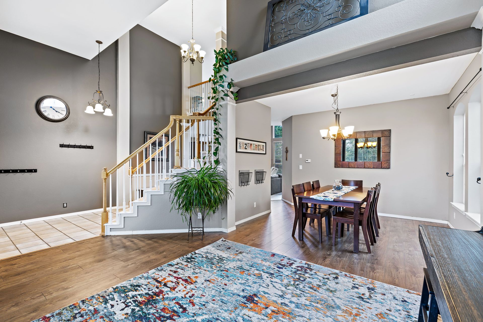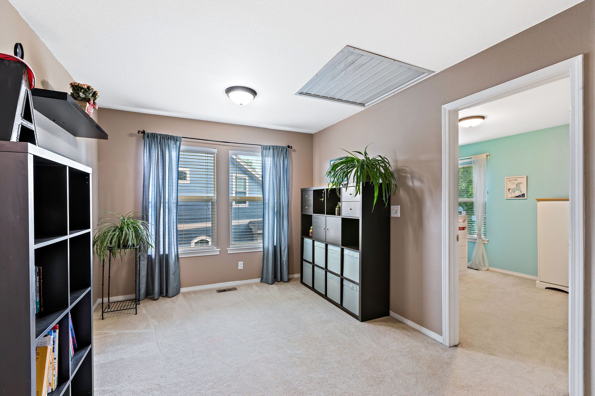 Two-story home on quiet cul-de-sac with over 2,400 square feet of finished living area, plus an unfinished basement. This beautiful Stonegate home welcomes you with a grand staircase in the foyer alongside the formal living and dining rooms. Light pours in from the oversized windows as you continue to the eat-in kitchen and great room with soaring ceilings and views of the large fully fenced backyard, complete with a sizable deck and raised garden beds. Back inside, an office with French doors and a laundry room with access to the the garage round out the main level. Upstairs, the primary bedroom features a spacious five-piece primary bath and a walk-in closet. Down the hall, a loft sits between two additional bedrooms that share another full bath. Steps away from access to Cherry Creek Regional Trail and Challenger Regional Park with easy access to E-740 and I-25.