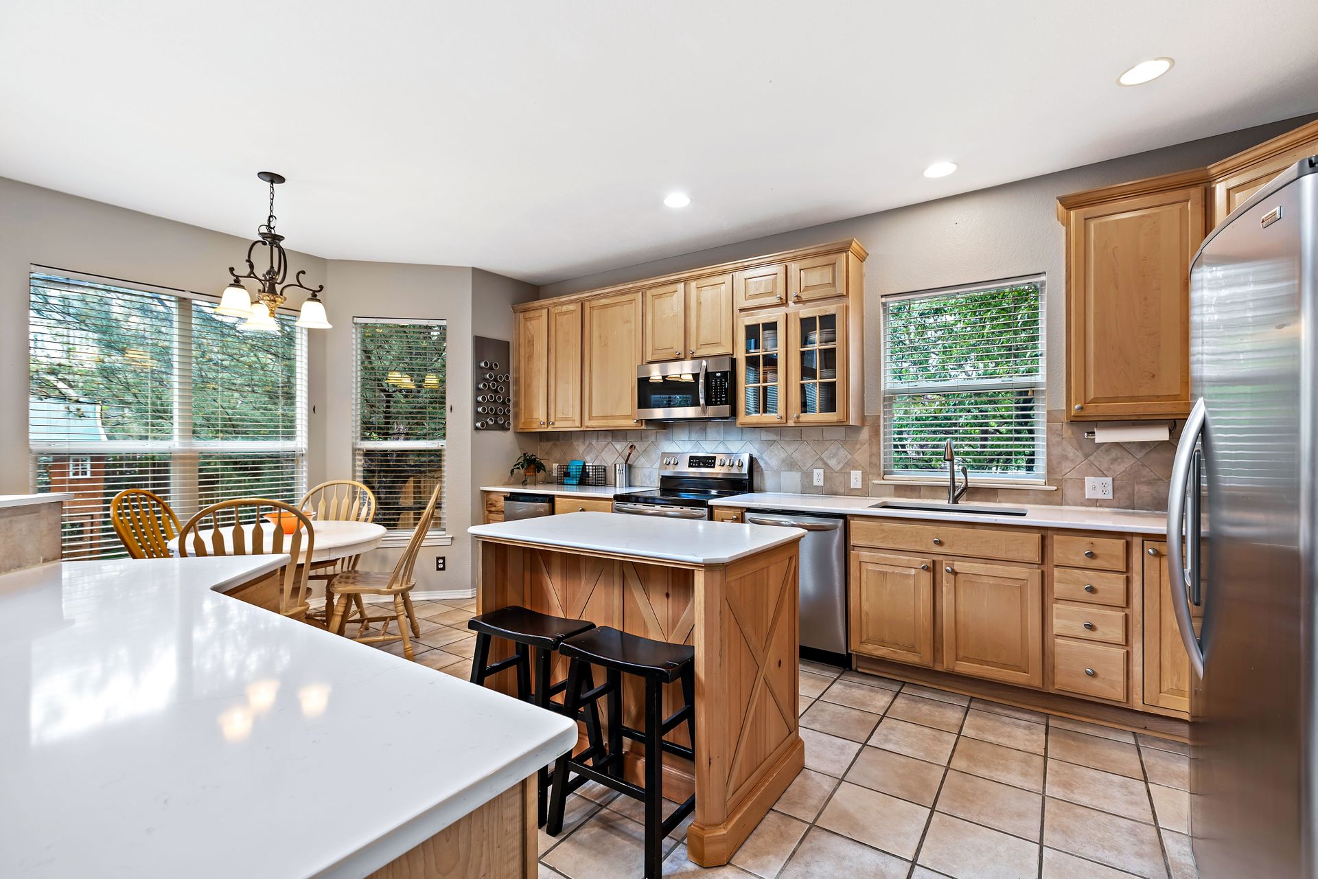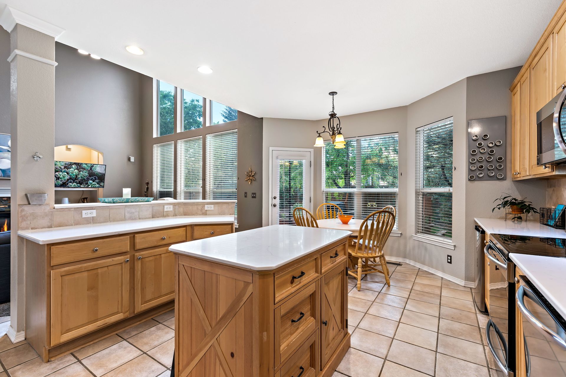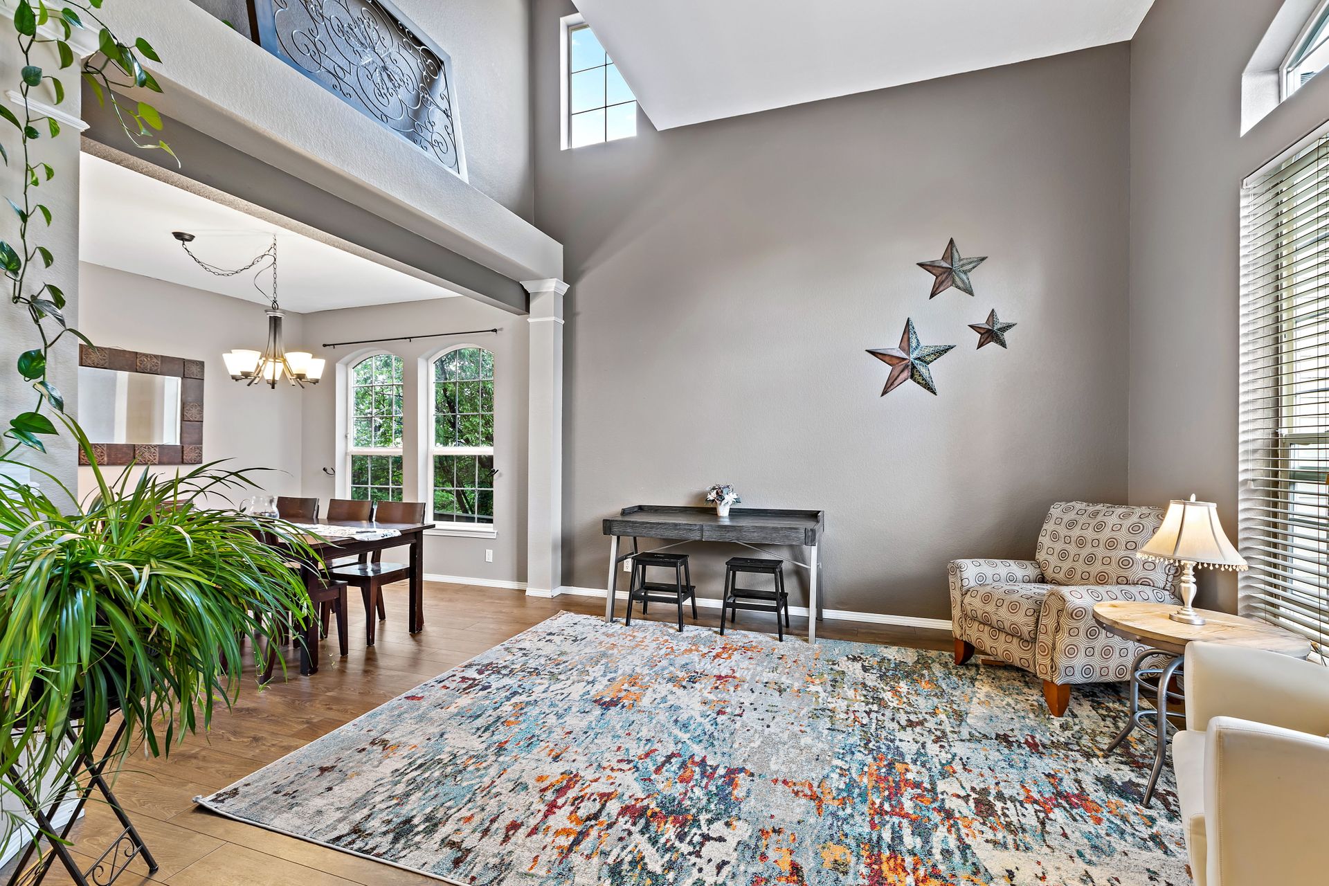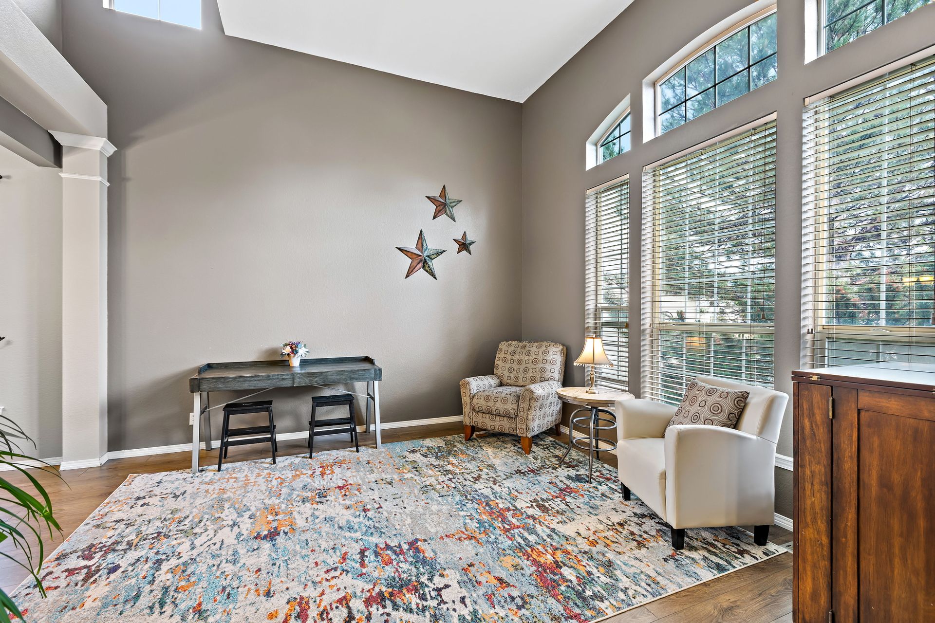 Two-story home on quiet cul-de-sac with over 2,400 square feet of finished living area, plus an unfinished basement. This beautiful Stonegate home welcomes you with a grand staircase in the foyer alongside the formal living and dining rooms. Light pours in from the oversized windows as you continue to the eat-in kitchen and great room with soaring ceilings and views of the large fully fenced backyard, complete with a sizable deck and raised garden beds. Back inside, an office with French doors and a laundry room with access to the the garage round out the main level. Upstairs, the primary bedroom features a spacious five-piece primary bath and a walk-in closet. Down the hall, a loft sits between two additional bedrooms that share another full bath. Steps away from access to Cherry Creek Regional Trail and Challenger Regional Park with easy access to E-740 and I-25.