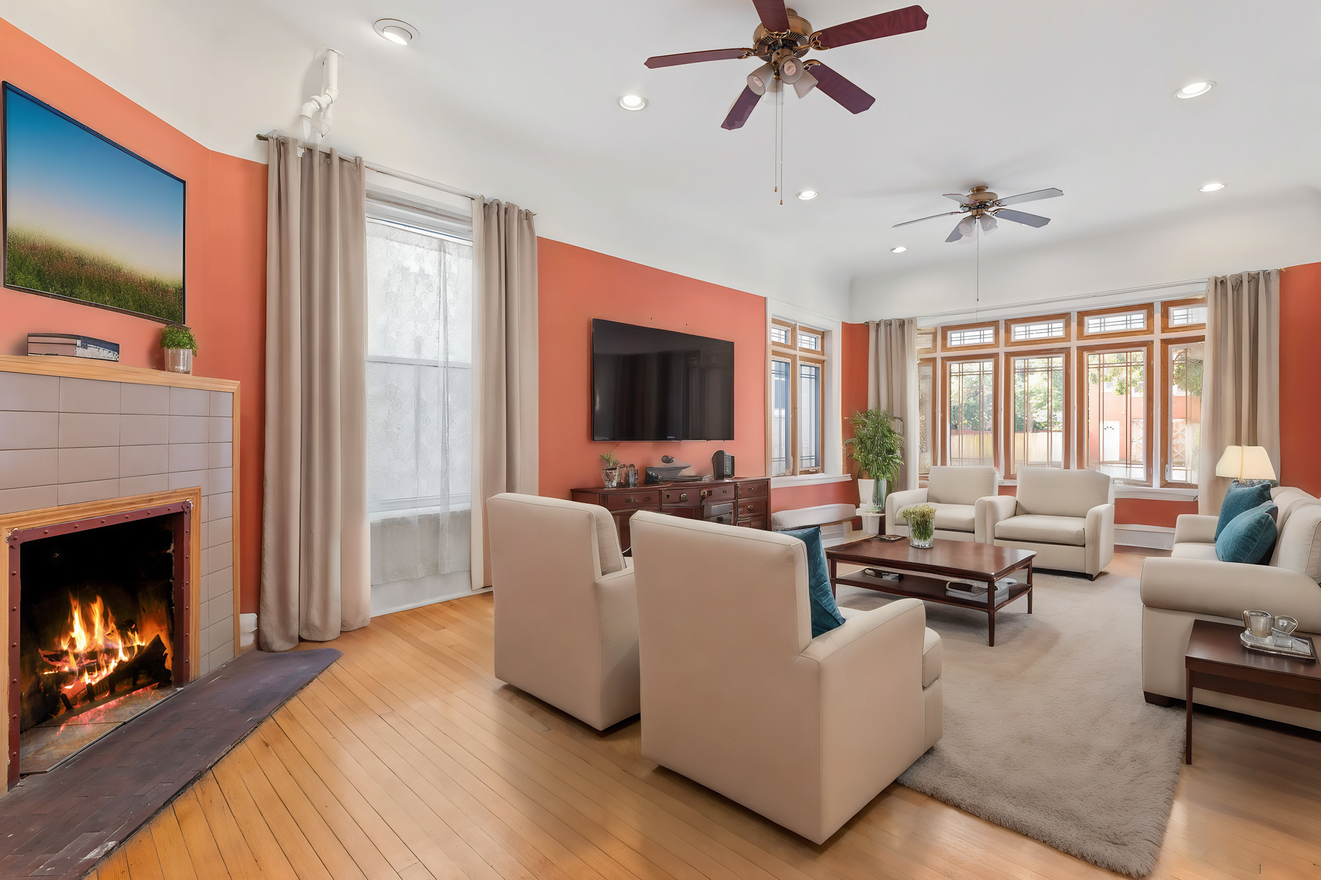 Experience the epitome of Prairie Style architecture with this extraordinary residence located in the heart of North Kenwood. This magnificent home seamlessly blends historical elegance with modern amenities, offering a unique opportunity for discerning homeowners. With 6 bedrooms, 4 bathrooms, 4 fireplaces, and a grand ballroom/family room located on the third floor, this thoughtfully designed mansion provides comfort and luxury. It sits on an oversize lot ideal for outdoor gatherings, gardening, or future expansions. A unique feature of this property is its two ADUs (Accessory Dwelling Units), perfect for generating rental income or offering a private living space for in-laws or guests. The home's prime location offers steps-away access to the lake, allowing for leisurely strolls along the water's edge with stunning lake views. You’ll also be minutes from downtown, providing easy access to Chicago's bustling city center while enjoying the tranquility of this historic neighborhood. Moreover, you are surrounded by prestigious universities and world-renowned museums, immersing you in the rich cultural tapestry of the area. In addition to its aesthetic appeal, this home boasts updated mechanics that ensure functionality and peace of mind. The roof was replaced in 2017, the sump pump in 2022, and a Dunkirk boiler was installed in 2018. The windows were updated in 2002, a 50-gallon Rheem hot water tank was installed in 2022, and a 200 amp circuit breaker was added in 2008. The basement features a 7' ceiling height, providing additional space for storage or potential living areas. Embrace the heritage and craftsmanship of Prairie Style design, characterized by clean lines, natural materials, and an emphasis on harmony with the environment. This home is not just a place to live, but a statement of your personal style and appreciation for architectural excellence. Customize every detail to reflect your vision and lifestyle in this historic and vibrant community.