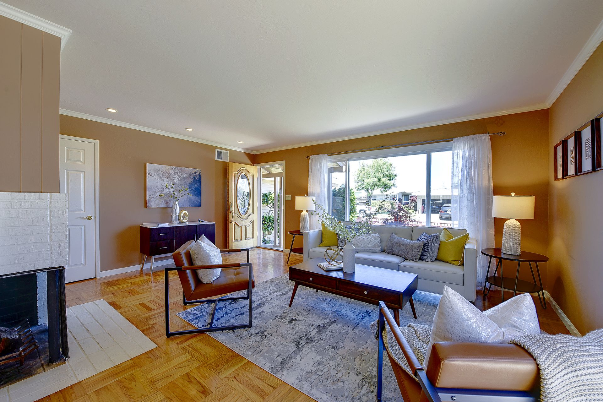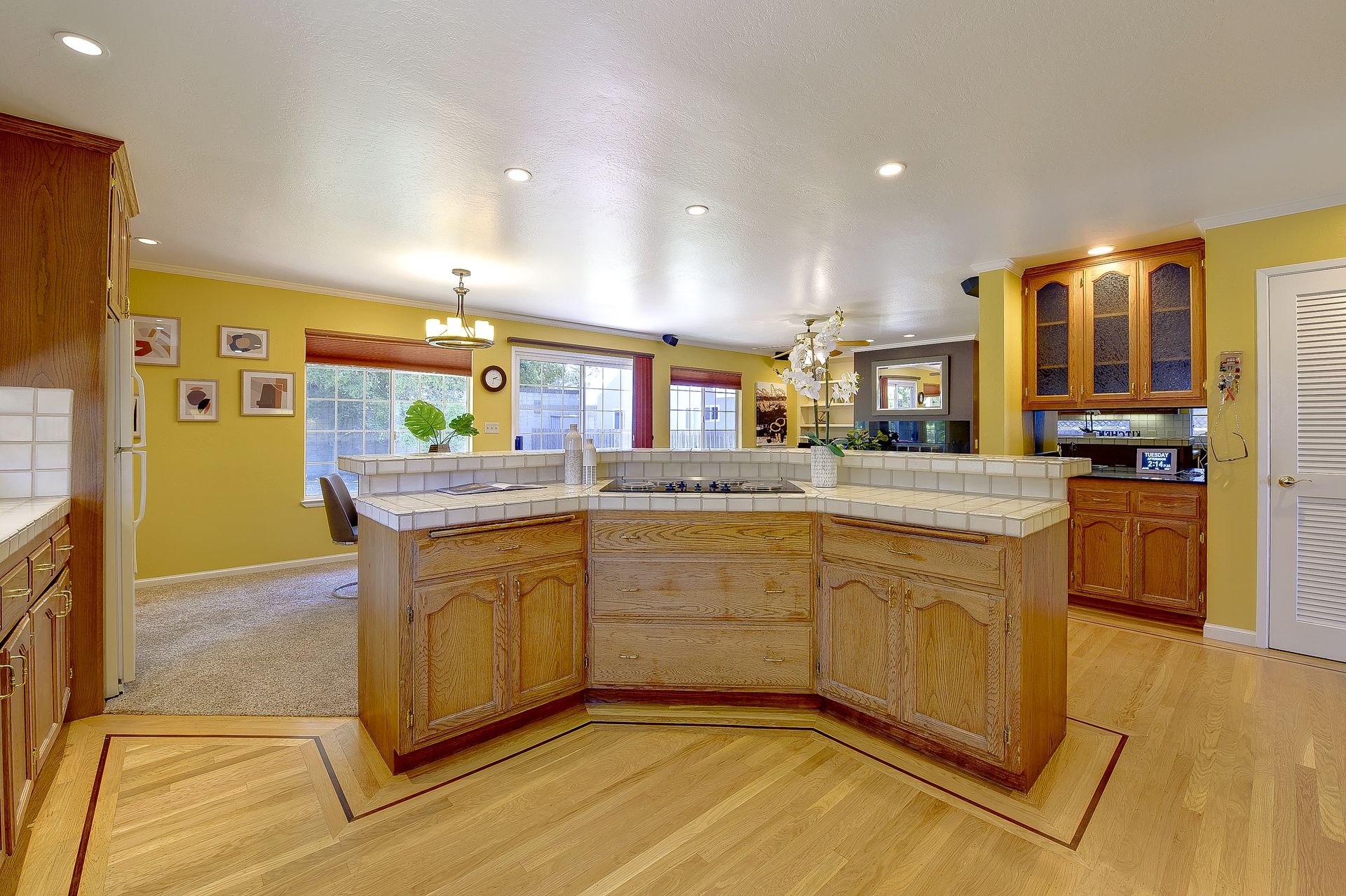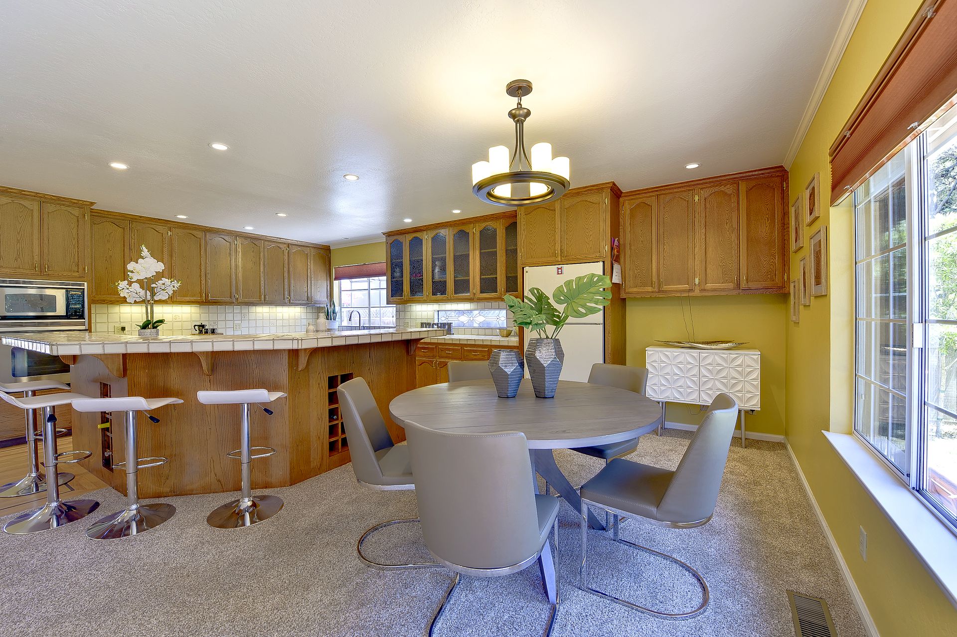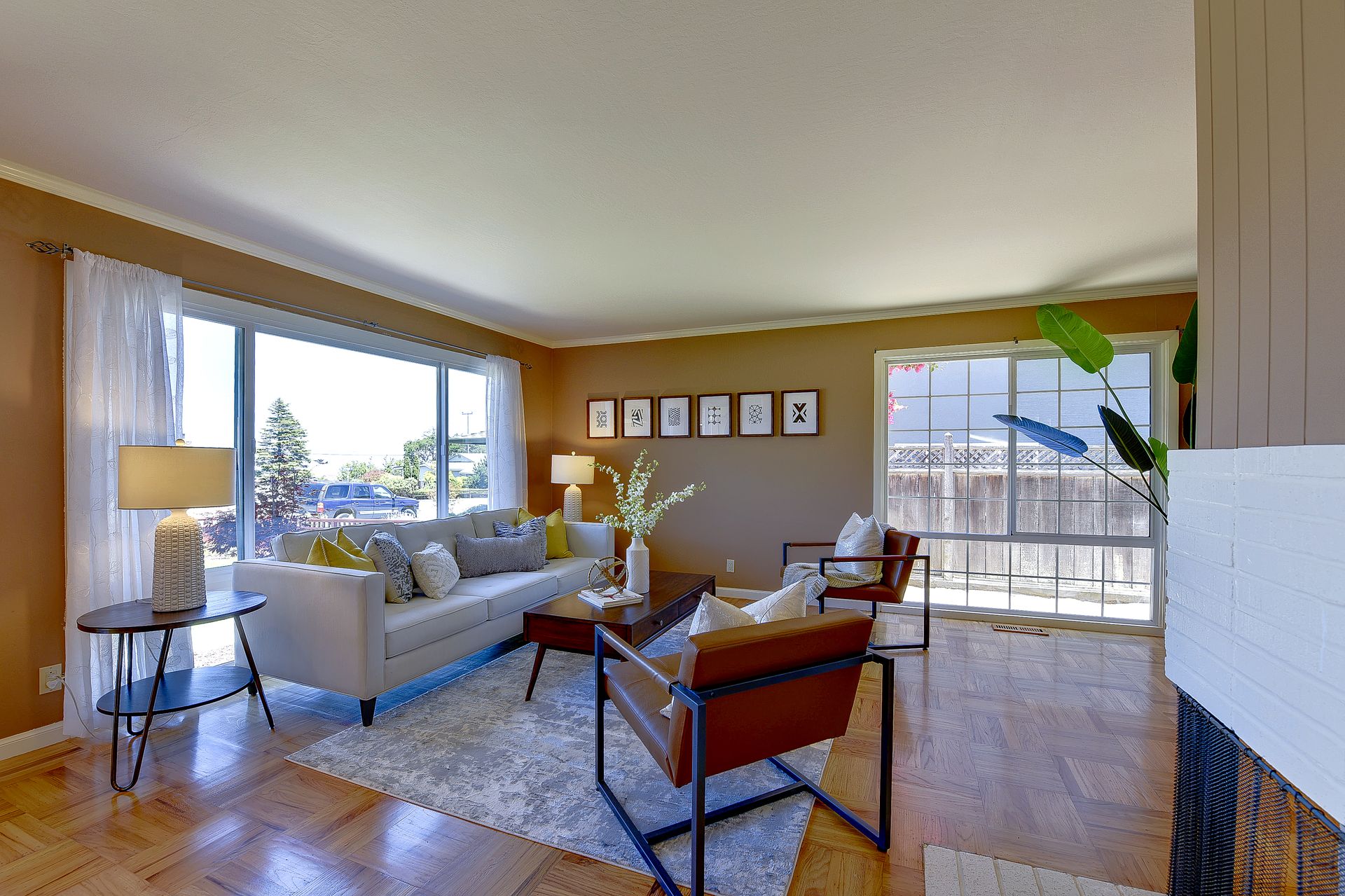 This fabulous three bedroom, two bath ranch style home, is located in the desirable Meadows neighborhood of Millbrae. Features include an updated kitchen with tile countertops, stainless steel appliances including a Thermador cooktop with a built-in vent, a G.E. oven, microwave and dishwasher, a garden window, Oak cabinets, recessed lighting, a center island, breakfast bar, pantry and crown molding; a spacious family room with a fireplace, wet bar, built-in bookshelves and a ceiling fan; a living room with parquet floors and a fireplace; double pane windows; a modelled hall bathroom with a skylight; and an attractive master bedroom suite with a walk-in closet includes closet organizers, crown molding, a ceiling fan and a nicely remodeled master bathroom which features granite countertops with dual sinks, a separate tub and shower stall, oversized tile floors and a skylight. Enjoy the lovely landscaped front yard, large back yard, attached two-car garage and more. With approximately 1,760 square feet of livable space this home sits on an approximately 8,808 square foot lot.