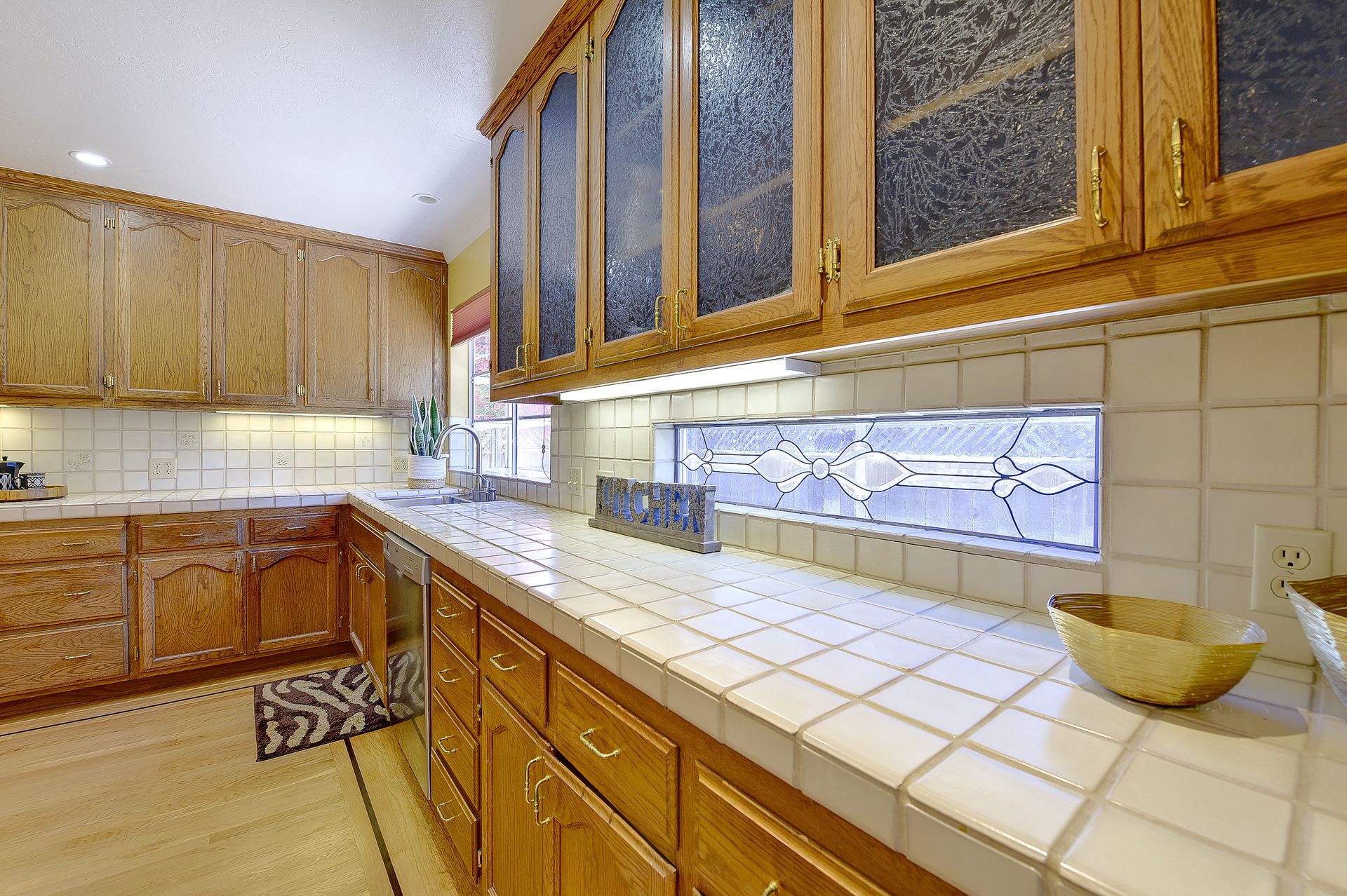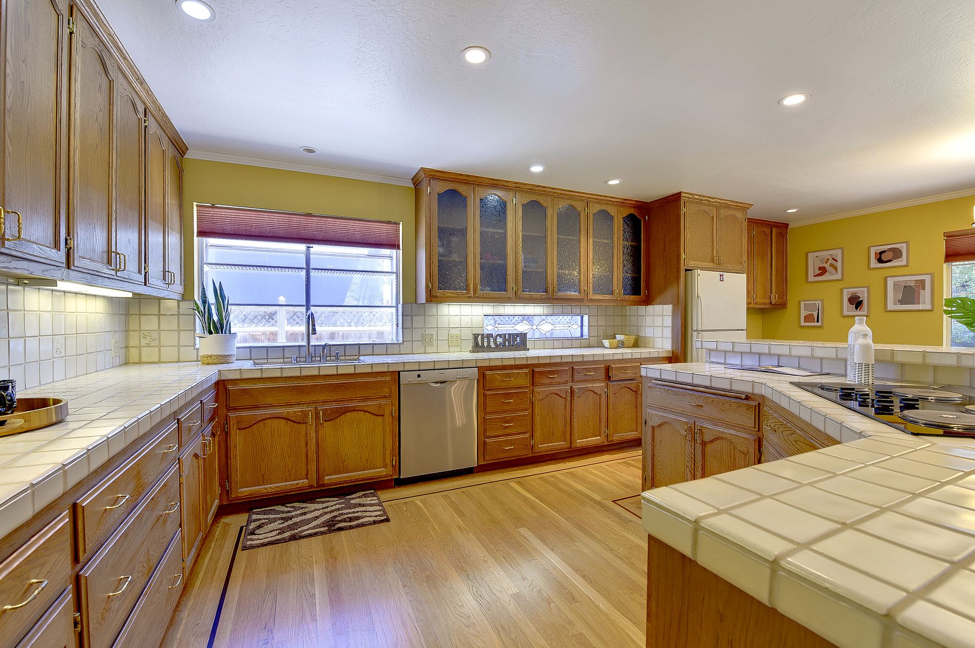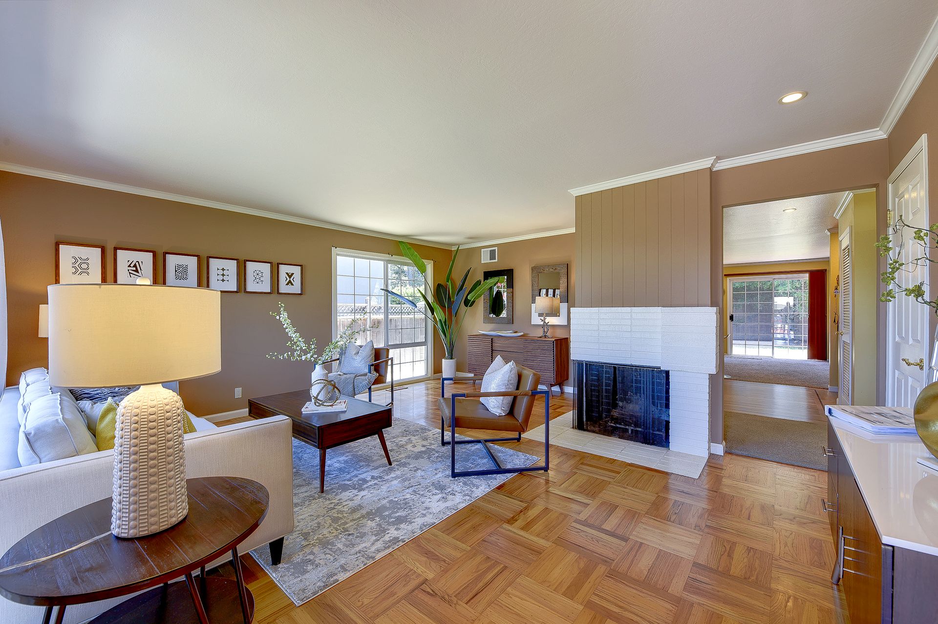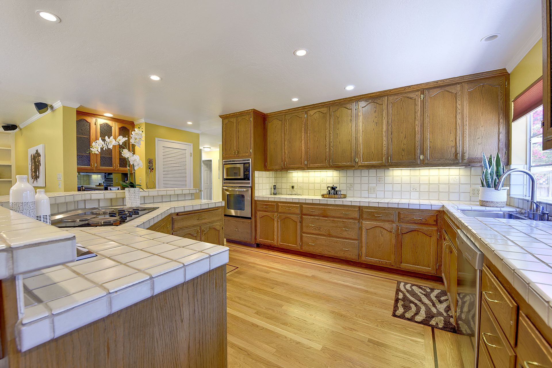 This fabulous three bedroom, two bath ranch style home, is located in the desirable Meadows neighborhood of Millbrae. Features include an updated kitchen with tile countertops, stainless steel appliances including a Thermador cooktop with a built-in vent, a G.E. oven, microwave and dishwasher, a garden window, Oak cabinets, recessed lighting, a center island, breakfast bar, pantry and crown molding; a spacious family room with a fireplace, wet bar, built-in bookshelves and a ceiling fan; a living room with parquet floors and a fireplace; double pane windows; a modelled hall bathroom with a skylight; and an attractive master bedroom suite with a walk-in closet includes closet organizers, crown molding, a ceiling fan and a nicely remodeled master bathroom which features granite countertops with dual sinks, a separate tub and shower stall, oversized tile floors and a skylight. Enjoy the lovely landscaped front yard, large back yard, attached two-car garage and more. With approximately 1,760 square feet of livable space this home sits on an approximately 8,808 square foot lot.