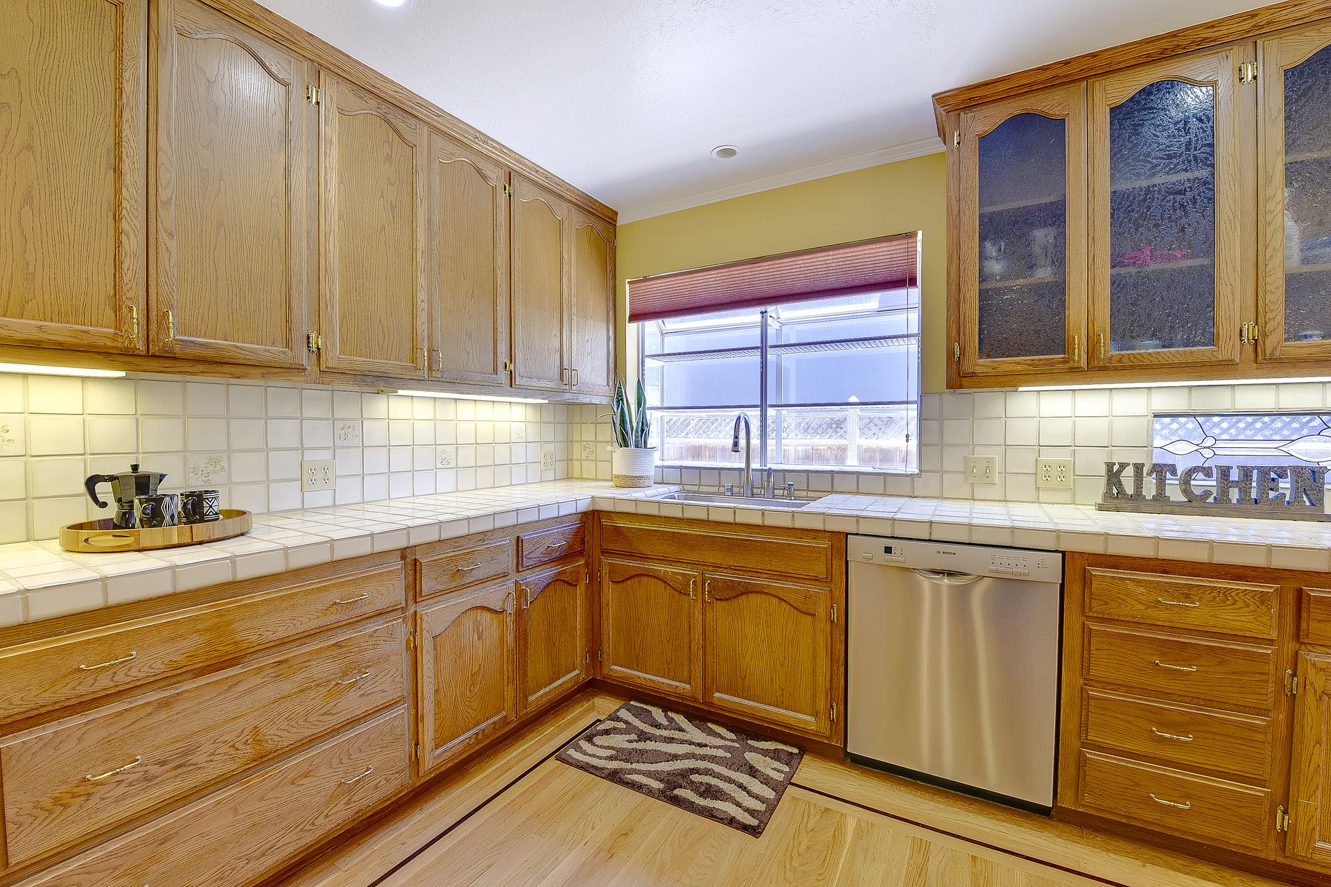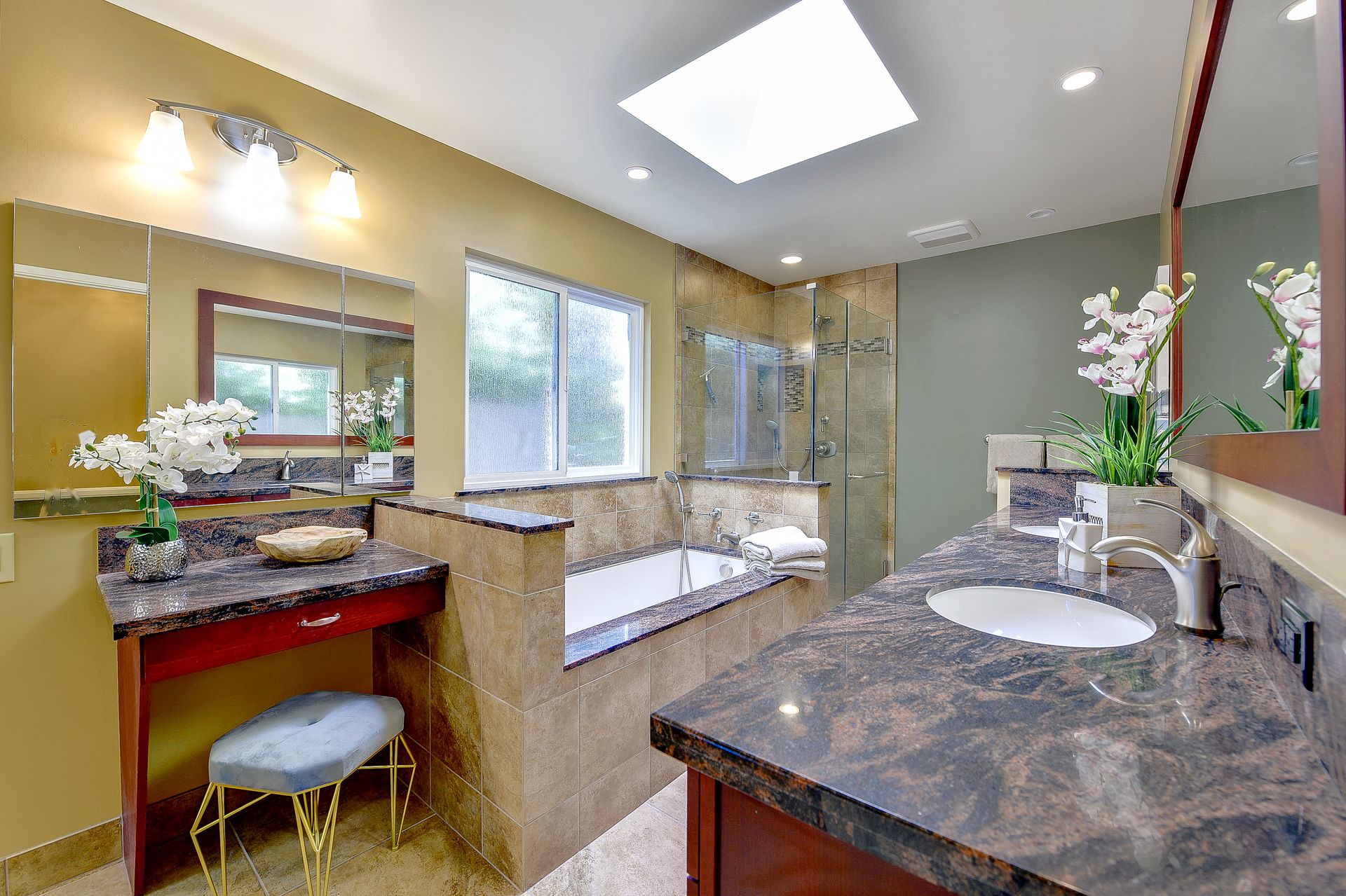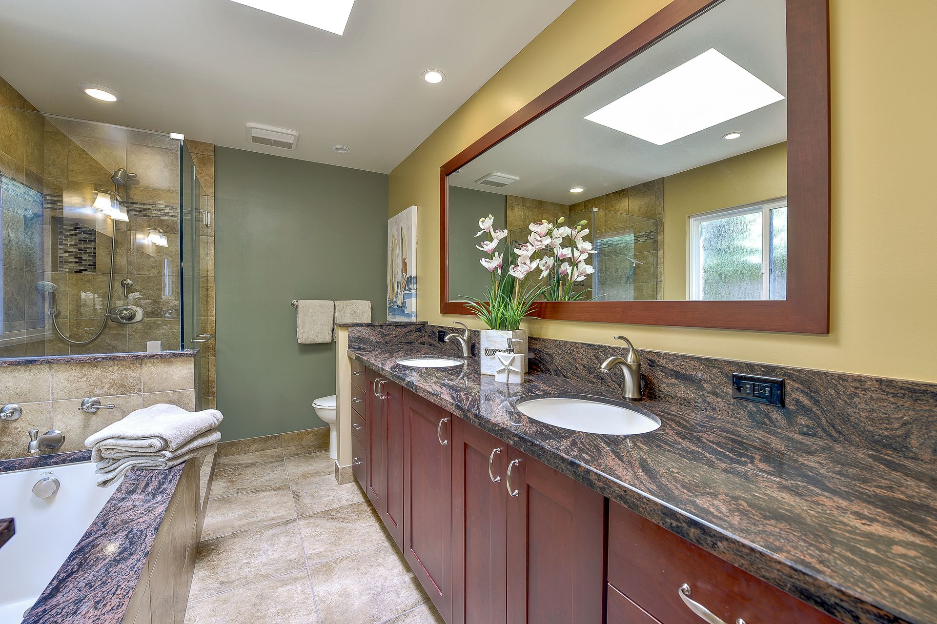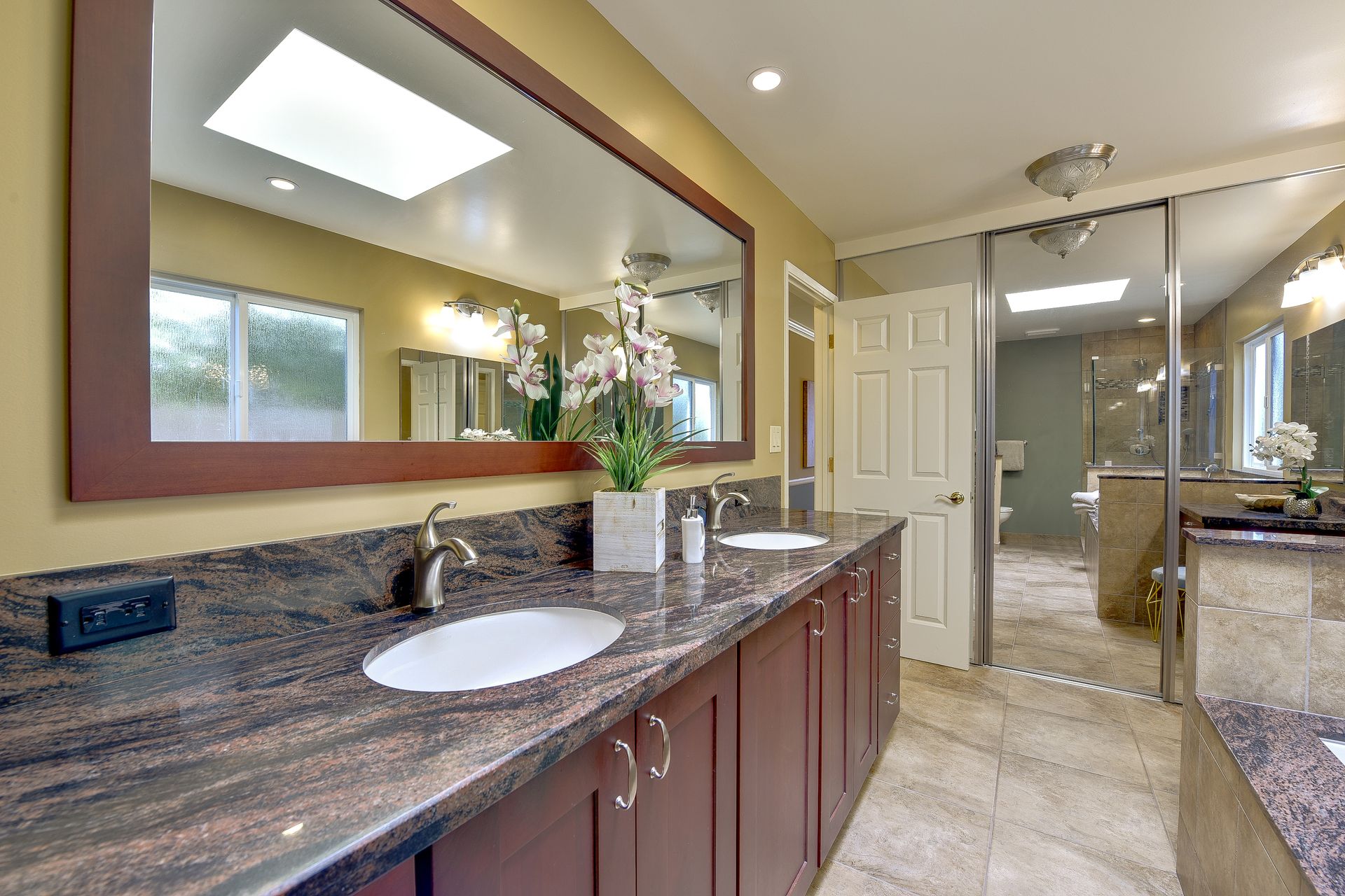 This fabulous three bedroom, two bath ranch style home, is located in the desirable Meadows neighborhood of Millbrae. Features include an updated kitchen with tile countertops, stainless steel appliances including a Thermador cooktop with a built-in vent, a G.E. oven, microwave and dishwasher, a garden window, Oak cabinets, recessed lighting, a center island, breakfast bar, pantry and crown molding; a spacious family room with a fireplace, wet bar, built-in bookshelves and a ceiling fan; a living room with parquet floors and a fireplace; double pane windows; a modelled hall bathroom with a skylight; and an attractive master bedroom suite with a walk-in closet includes closet organizers, crown molding, a ceiling fan and a nicely remodeled master bathroom which features granite countertops with dual sinks, a separate tub and shower stall, oversized tile floors and a skylight. Enjoy the lovely landscaped front yard, large back yard, attached two-car garage and more. With approximately 1,760 square feet of livable space this home sits on an approximately 8,808 square foot lot.