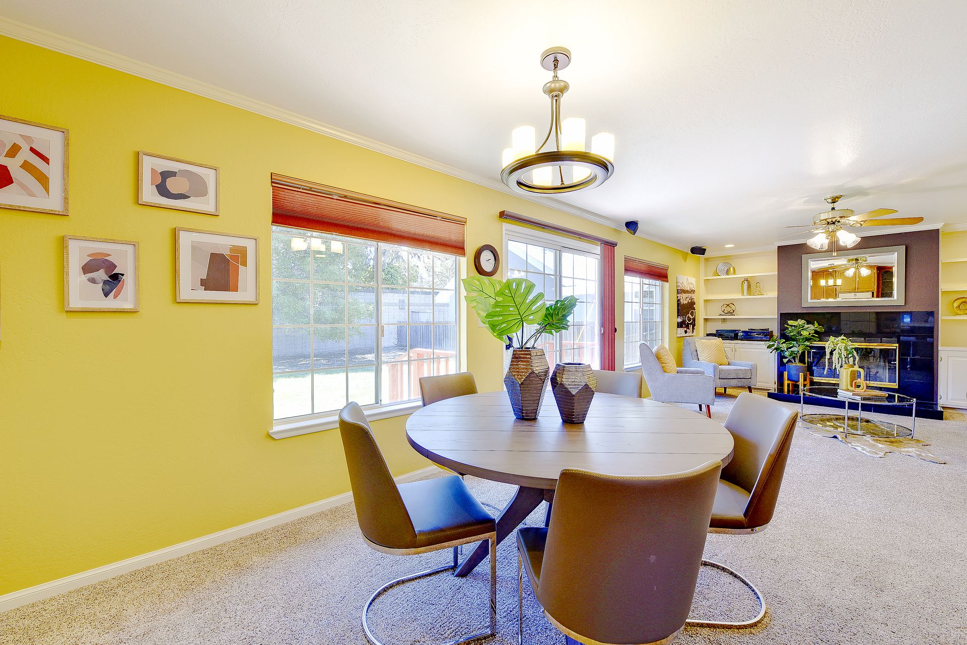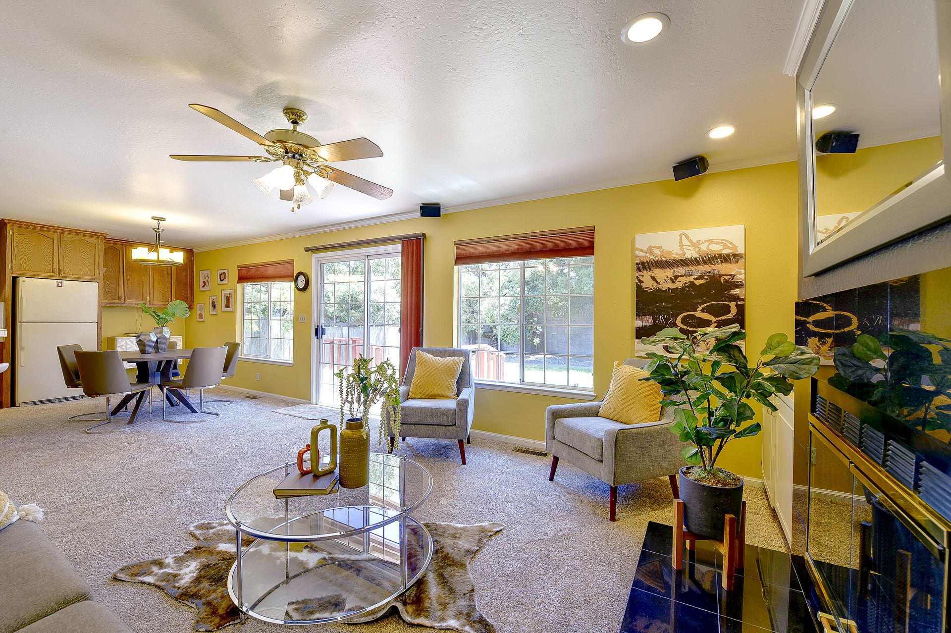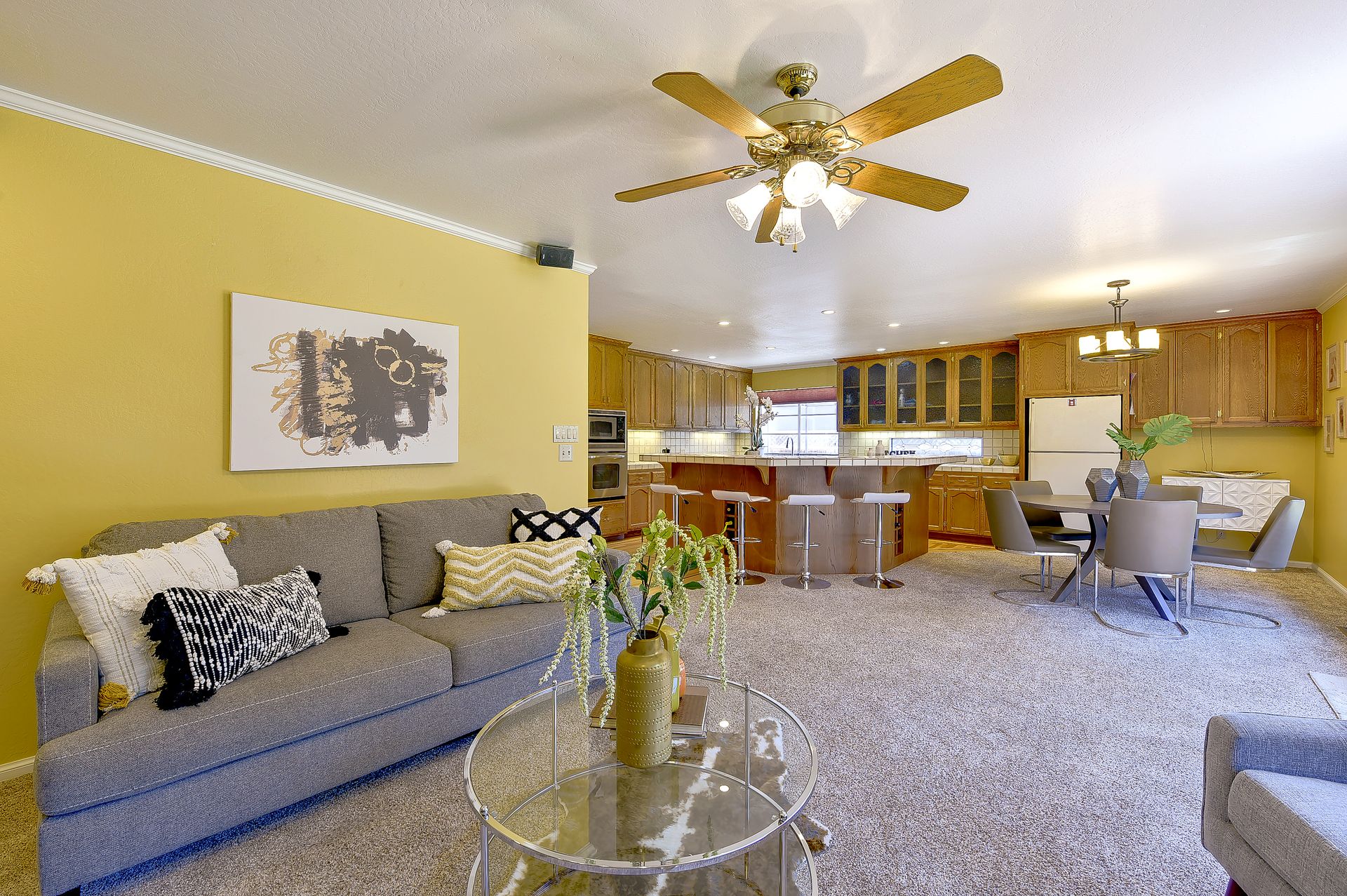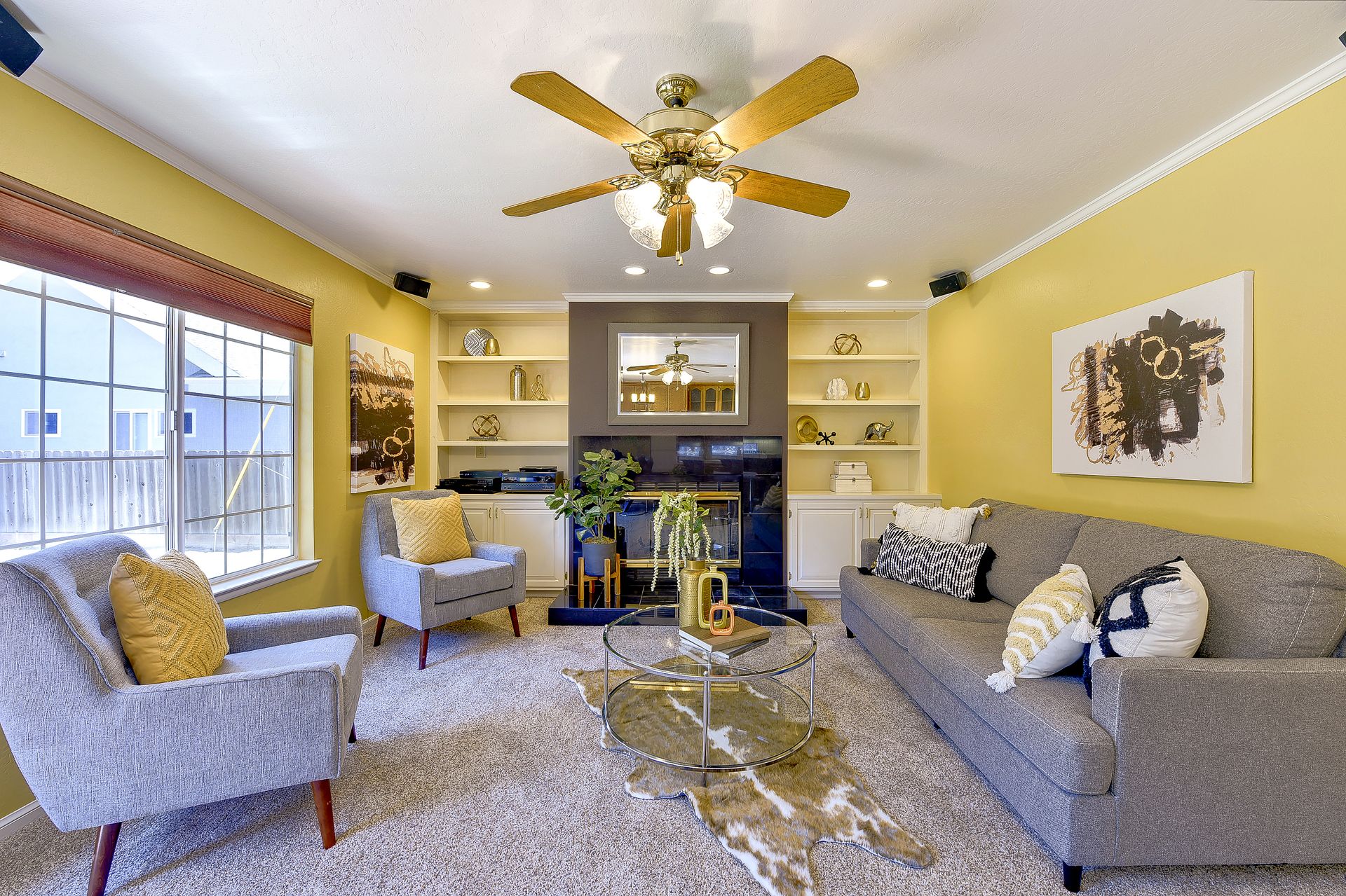This fabulous three bedroom, two bath ranch style home, is located in the desirable Meadows neighborhood of Millbrae. Features include an updated kitchen with tile countertops, stainless steel appliances including a Thermador cooktop with a built-in vent, a G.E. oven, microwave and dishwasher, a garden window, Oak cabinets, recessed lighting, a center island, breakfast bar, pantry and crown molding; a spacious family room with a fireplace, wet bar, built-in bookshelves and a ceiling fan; a living room with parquet floors and a fireplace; double pane windows; a modelled hall bathroom with a skylight; and an attractive master bedroom suite with a walk-in closet includes closet organizers, crown molding, a ceiling fan and a nicely remodeled master bathroom which features granite countertops with dual sinks, a separate tub and shower stall, oversized tile floors and a skylight. Enjoy the lovely landscaped front yard, large back yard, attached two-car garage and more. With approximately 1,760 square feet of livable space this home sits on an approximately 8,808 square foot lot.