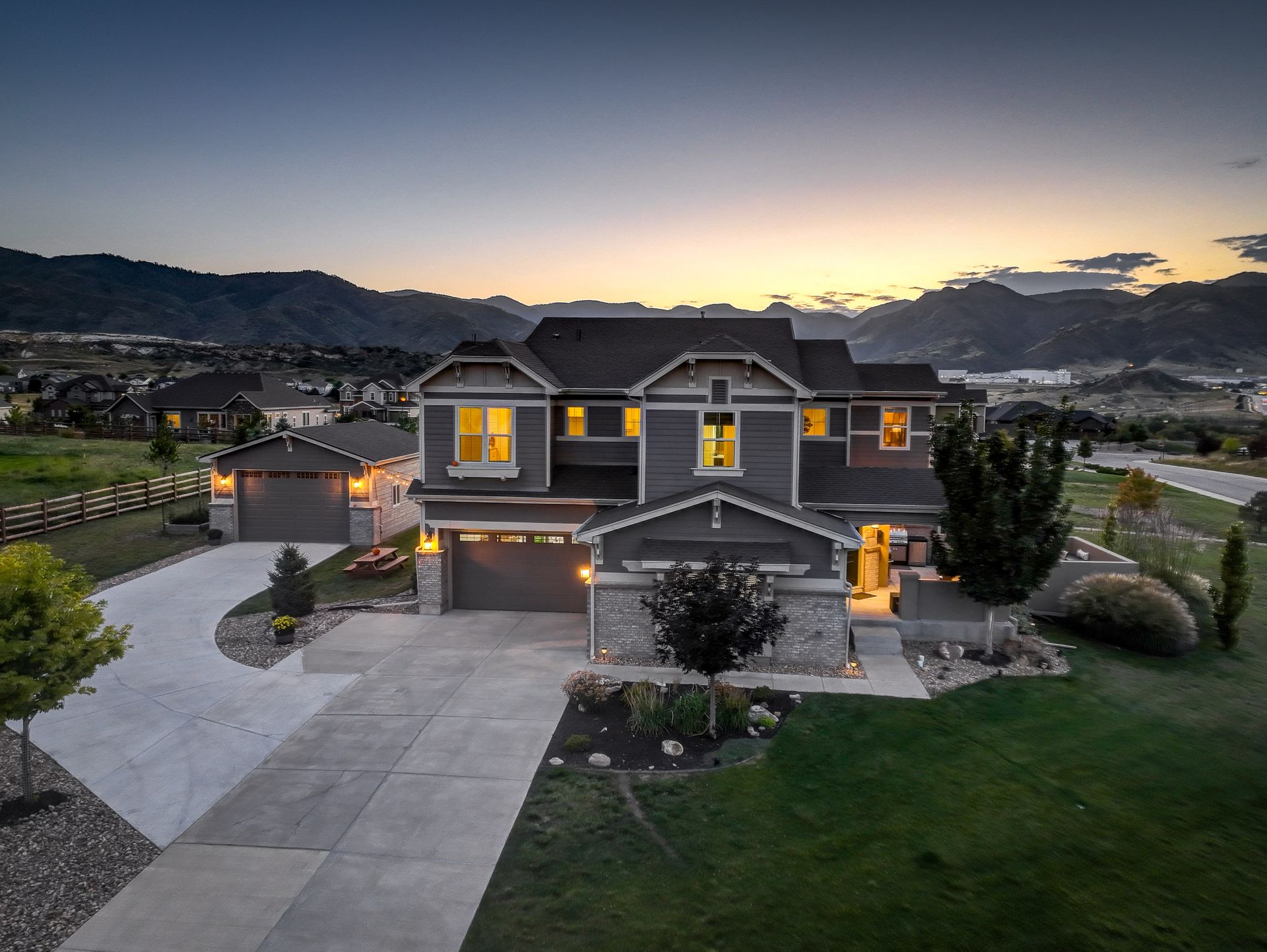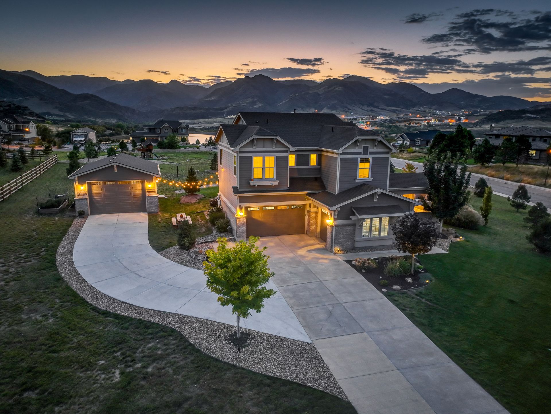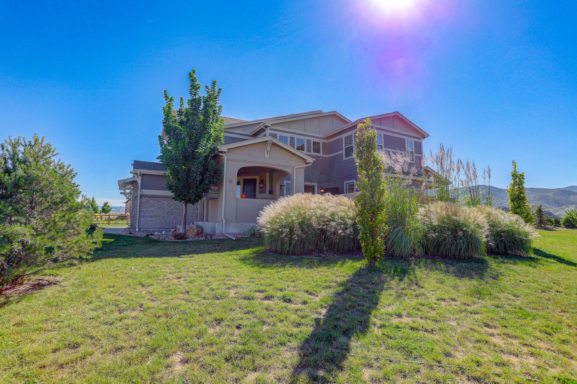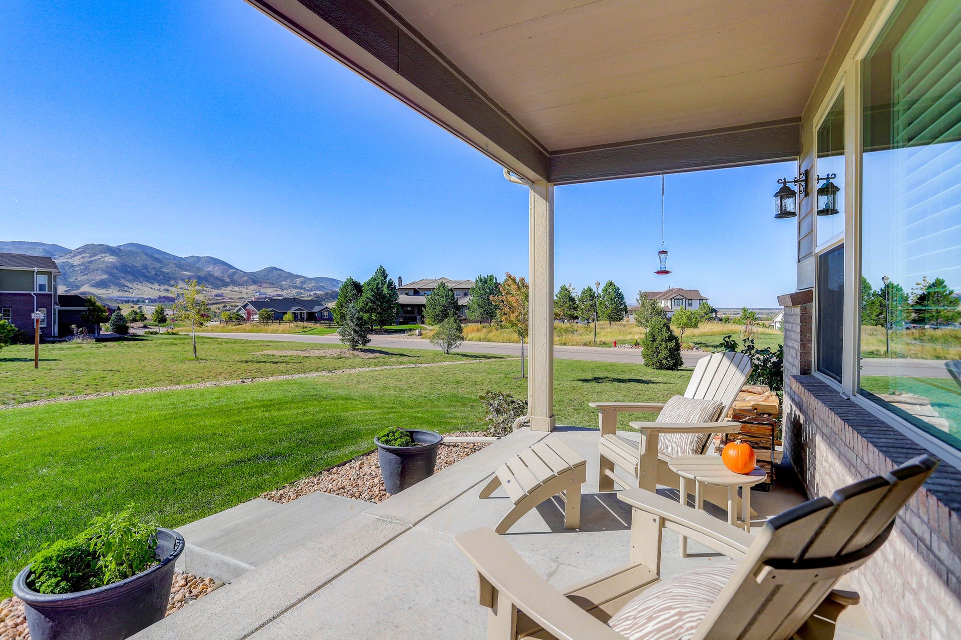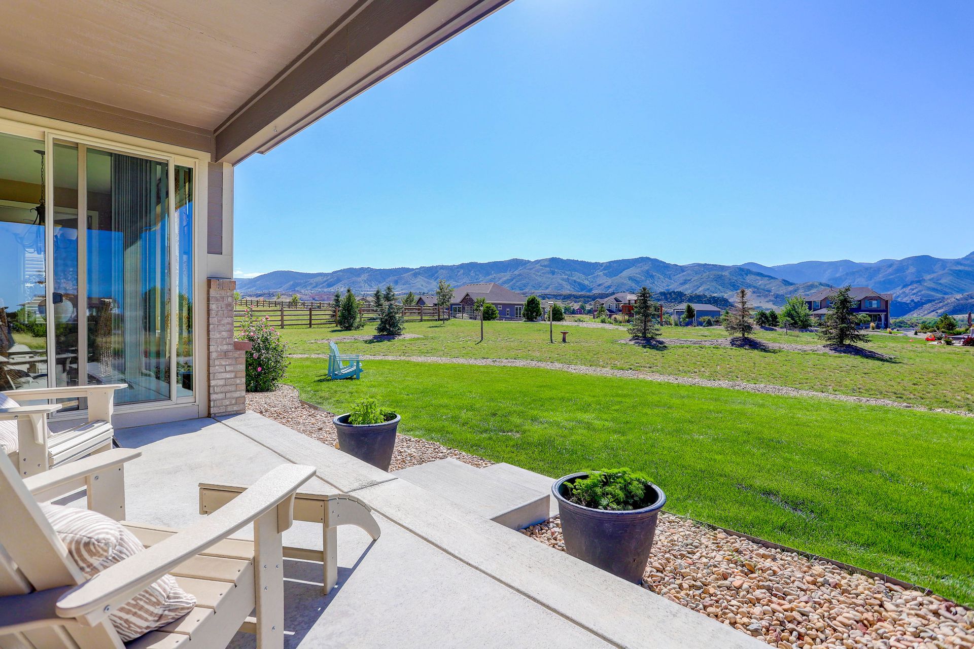 Welcome to the highly sought-after community of The Estates at Chatfield Farms. Nestled amidst the natural beauty of the mountains, pride of ownership radiates in every corner of this beautiful home. With its captivating mountain views and an array of exquisite features, this estate is a must see. As you step inside, you'll be greeted by the warmth and charm of this stellar home. The recently refinished red oak floors on the main level exude timeless elegance. The spacious layout provides ample room for both relaxation and entertainment. One of the most enchanting features of this home is the outdoor patio that offers a haven of privacy. Whether you're savoring your morning coffee or hosting a soirée under the stars, this space will undoubtedly become your personal sanctuary. The true pièce de résistance is the unobstructed mountain views, viewable throughout the home. Imagine waking up to the awe-inspiring sight of majestic peaks and endless horizons, a view that never gets old and never fails to inspire. The three-car attached garage, complemented by an oversized detached garage/shop holds endless possibilities for hobbyists or outdoor enthusiasts. This exceptional property offers an unparalleled lifestyle that few can rival. Don't miss the opportunity to make it your very own.