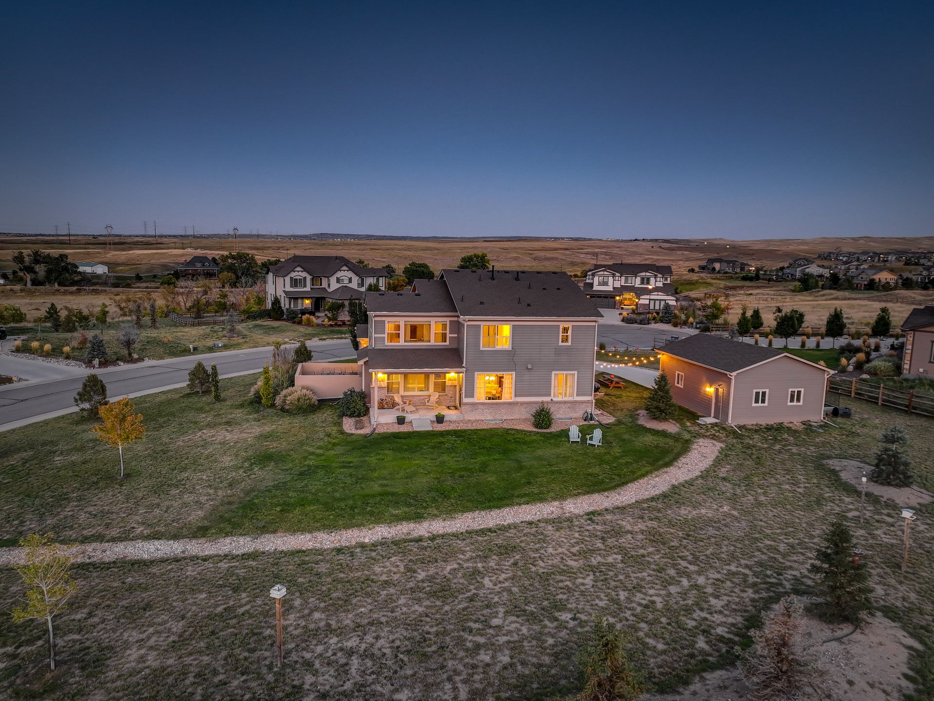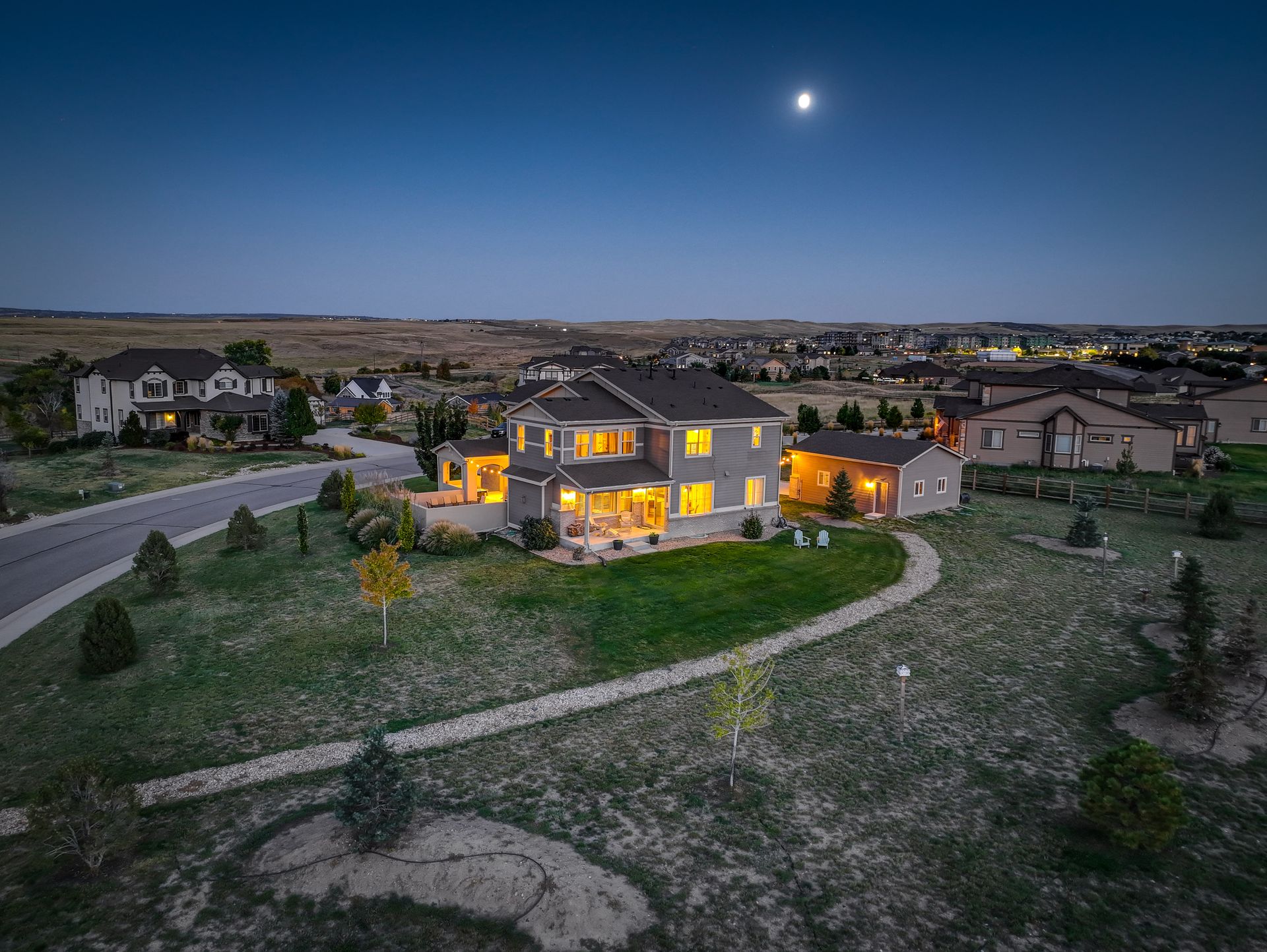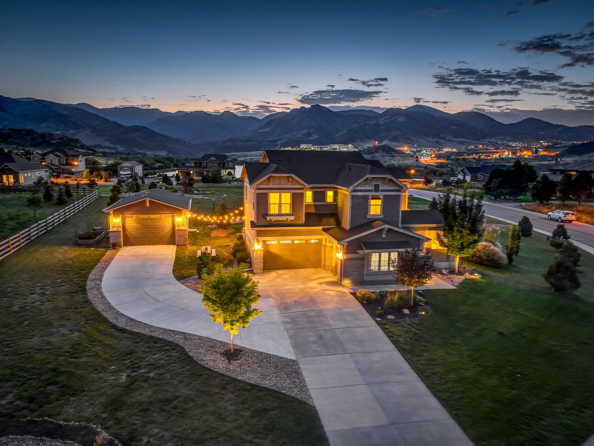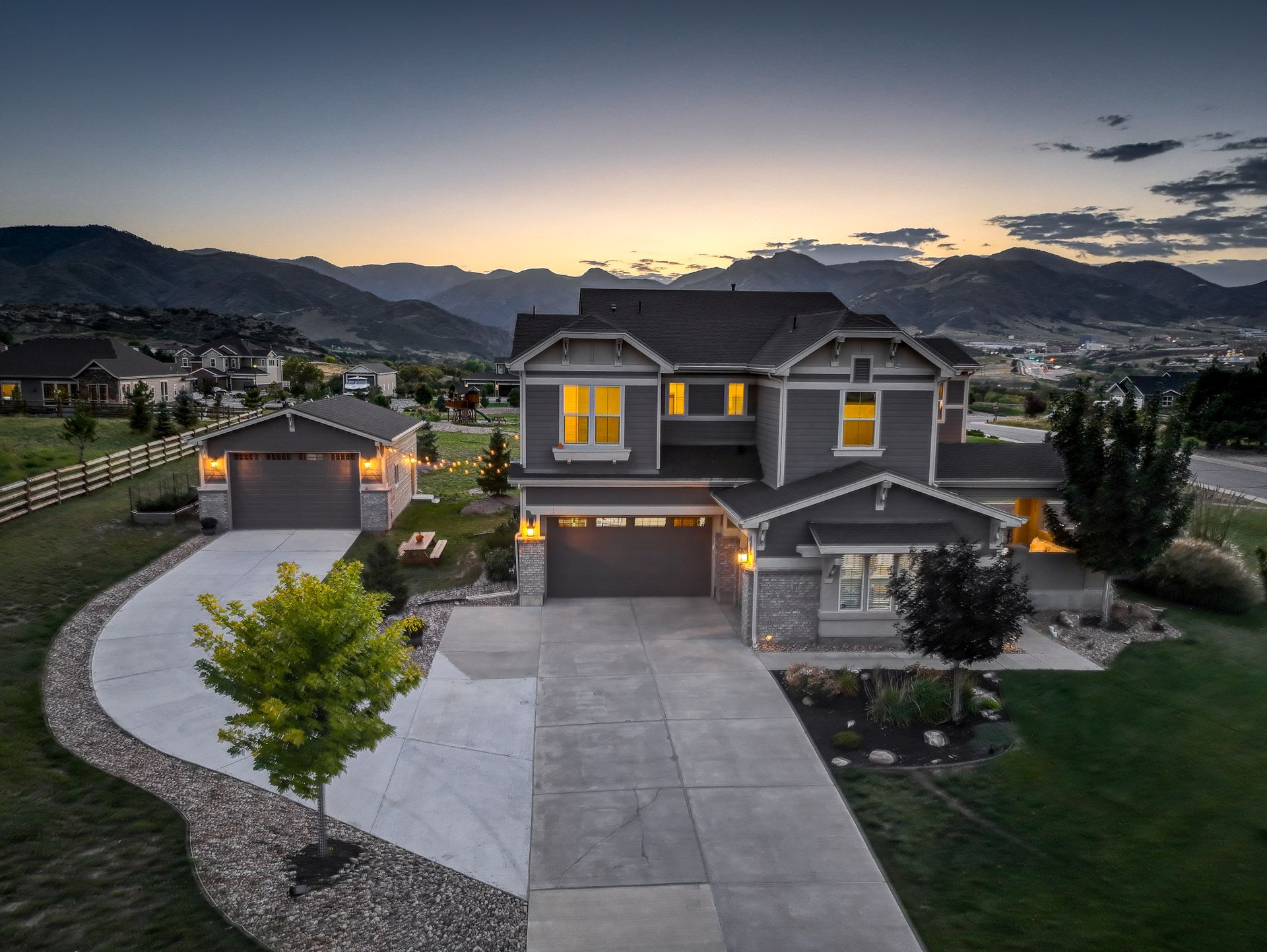Welcome to the highly sought-after community of The Estates at Chatfield Farms. Nestled amidst the natural beauty of the mountains, pride of ownership radiates in every corner of this beautiful home. With its captivating mountain views and an array of exquisite features, this estate is a must see. As you step inside, you'll be greeted by the warmth and charm of this stellar home. The recently refinished red oak floors on the main level exude timeless elegance. The spacious layout provides ample room for both relaxation and entertainment. One of the most enchanting features of this home is the outdoor patio that offers a haven of privacy. Whether you're savoring your morning coffee or hosting a soirée under the stars, this space will undoubtedly become your personal sanctuary. The true pièce de résistance is the unobstructed mountain views, viewable throughout the home. Imagine waking up to the awe-inspiring sight of majestic peaks and endless horizons, a view that never gets old and never fails to inspire. The three-car attached garage, complemented by an oversized detached garage/shop holds endless possibilities for hobbyists or outdoor enthusiasts. This exceptional property offers an unparalleled lifestyle that few can rival. Don't miss the opportunity to make it your very own.