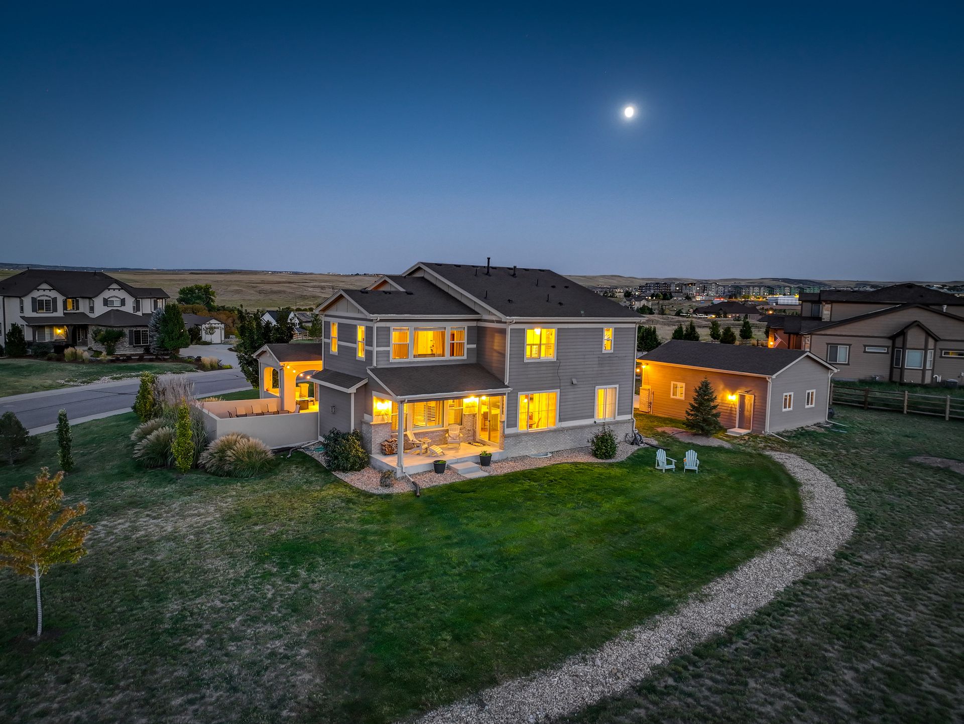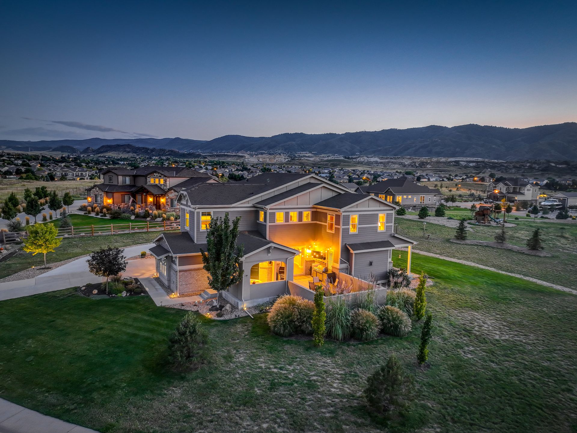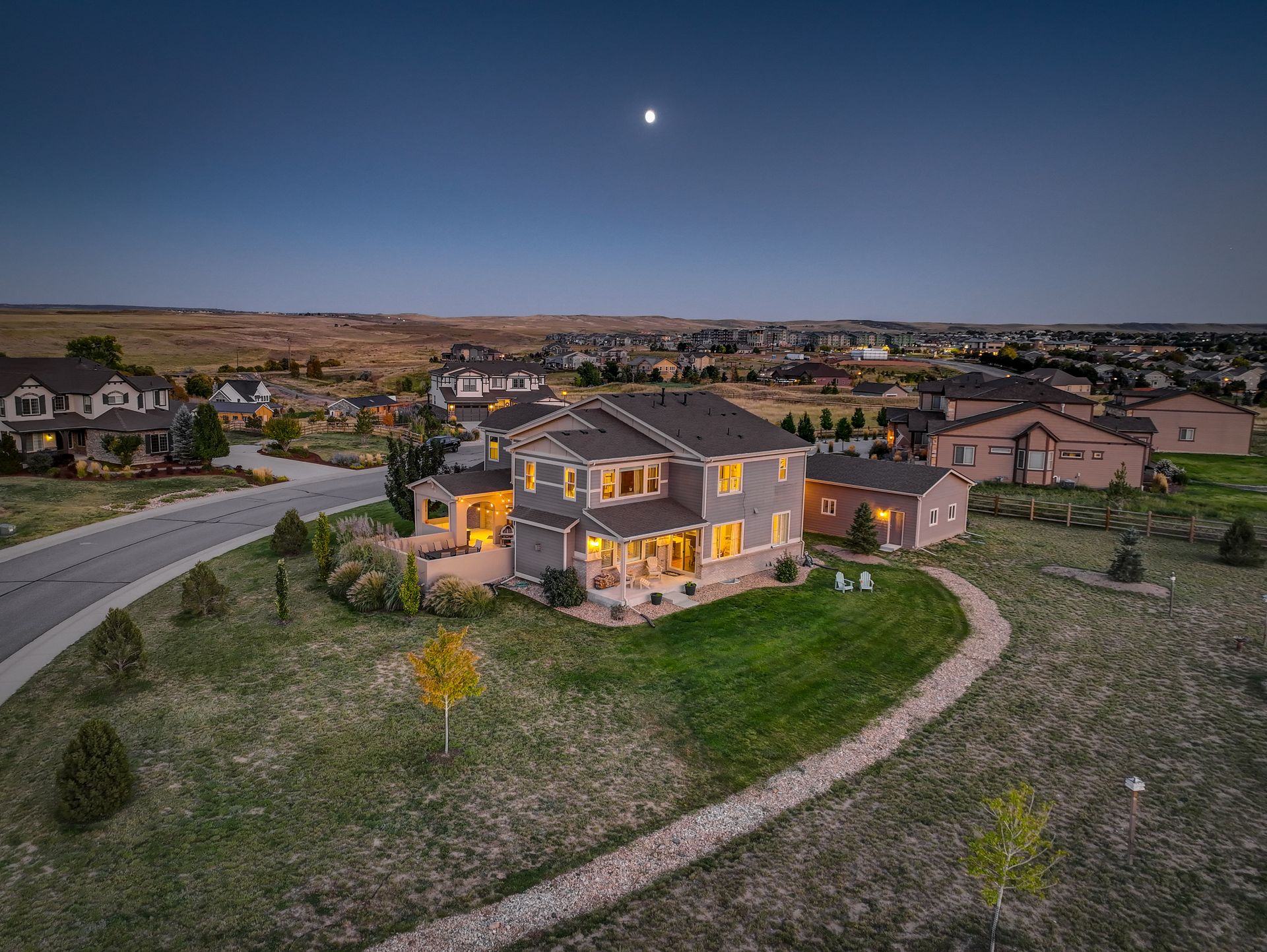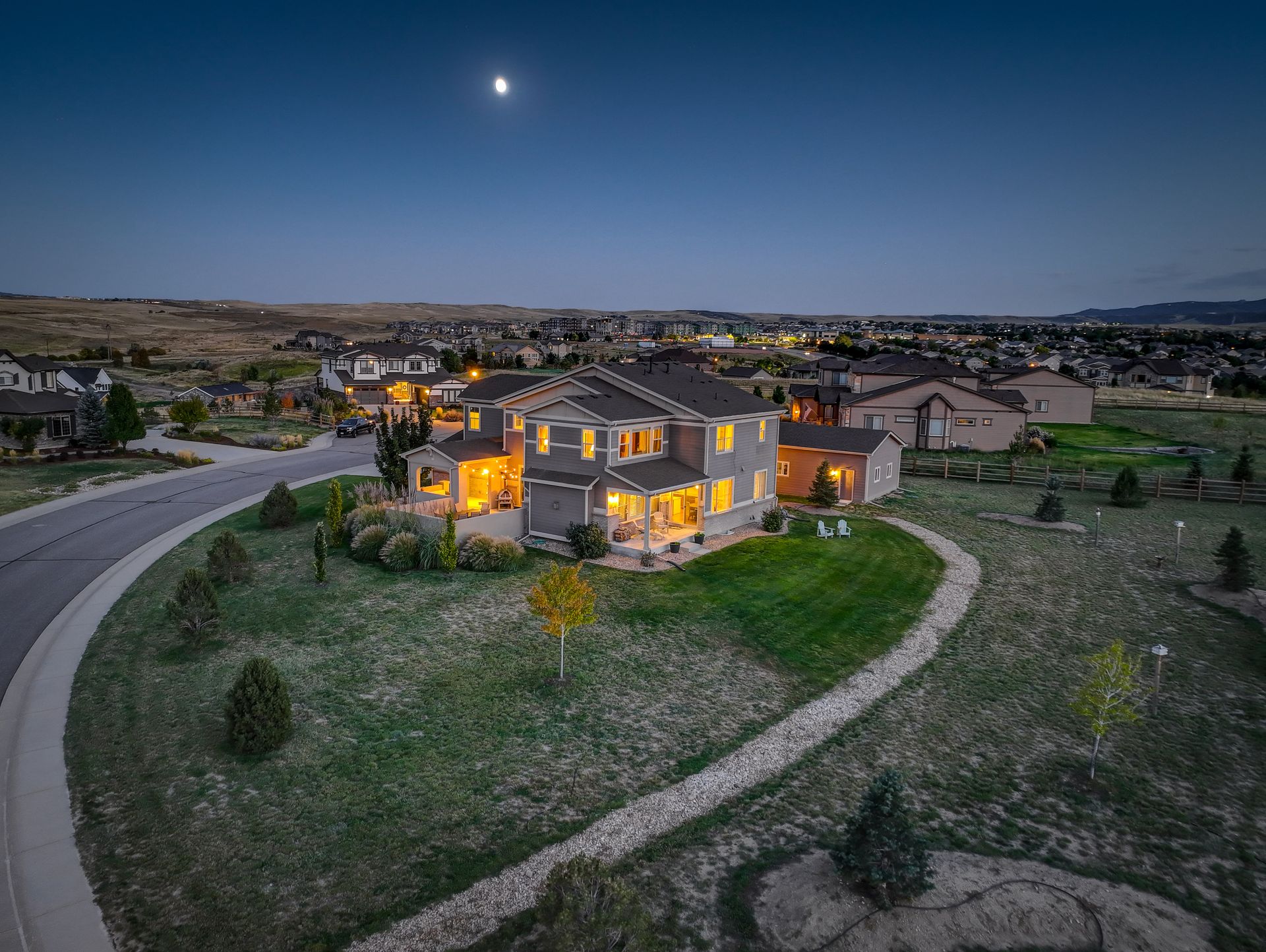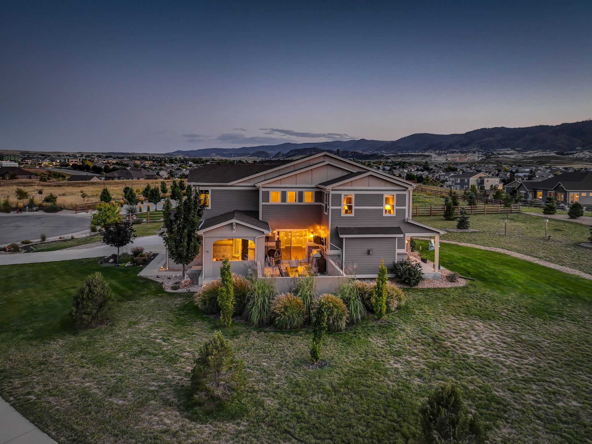 Welcome to the highly sought-after community of The Estates at Chatfield Farms. Nestled amidst the natural beauty of the mountains, pride of ownership radiates in every corner of this beautiful home. With its captivating mountain views and an array of exquisite features, this estate is a must see. As you step inside, you'll be greeted by the warmth and charm of this stellar home. The recently refinished red oak floors on the main level exude timeless elegance. The spacious layout provides ample room for both relaxation and entertainment. One of the most enchanting features of this home is the outdoor patio that offers a haven of privacy. Whether you're savoring your morning coffee or hosting a soirée under the stars, this space will undoubtedly become your personal sanctuary. The true pièce de résistance is the unobstructed mountain views, viewable throughout the home. Imagine waking up to the awe-inspiring sight of majestic peaks and endless horizons, a view that never gets old and never fails to inspire. The three-car attached garage, complemented by an oversized detached garage/shop holds endless possibilities for hobbyists or outdoor enthusiasts. This exceptional property offers an unparalleled lifestyle that few can rival. Don't miss the opportunity to make it your very own.