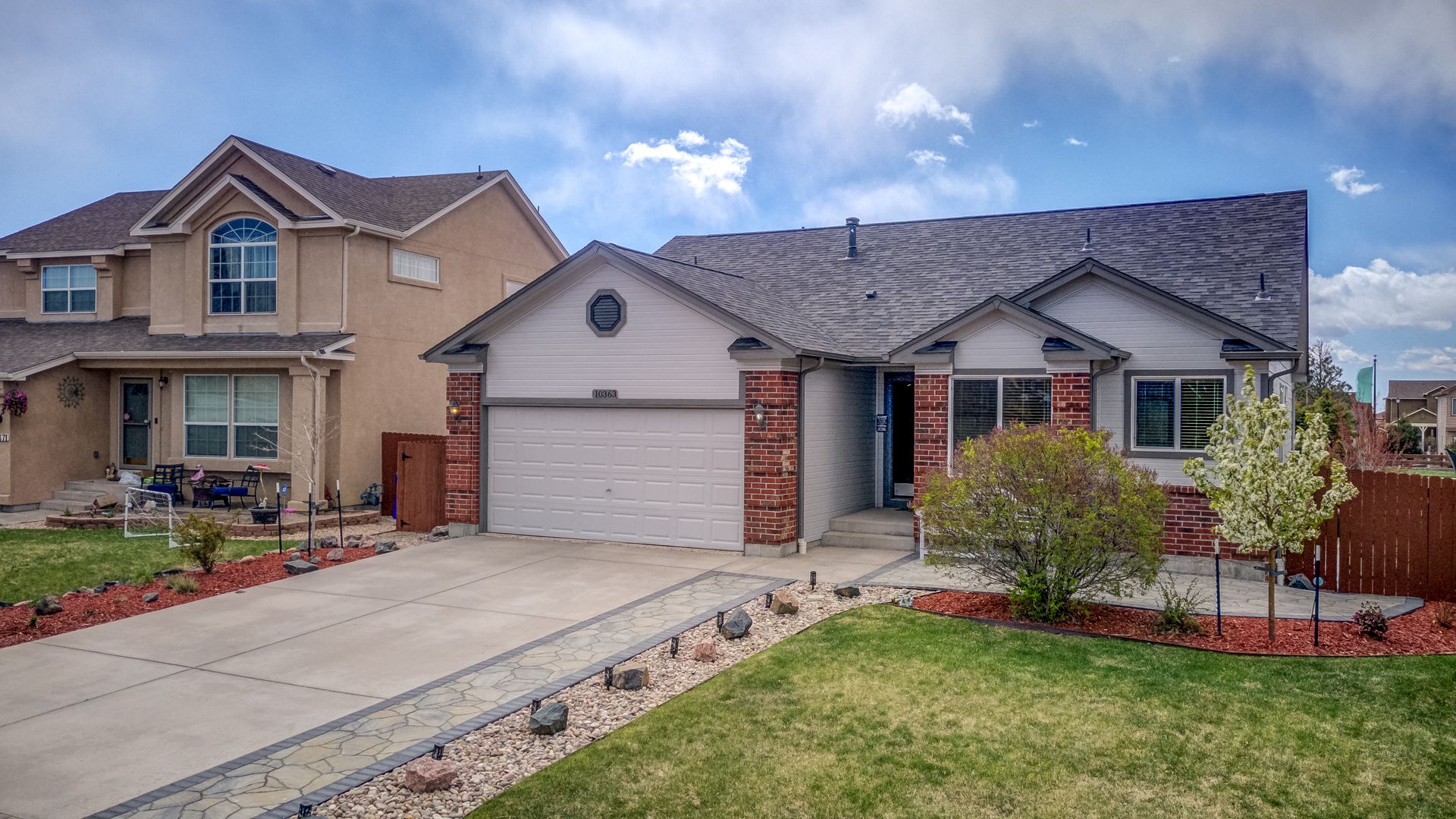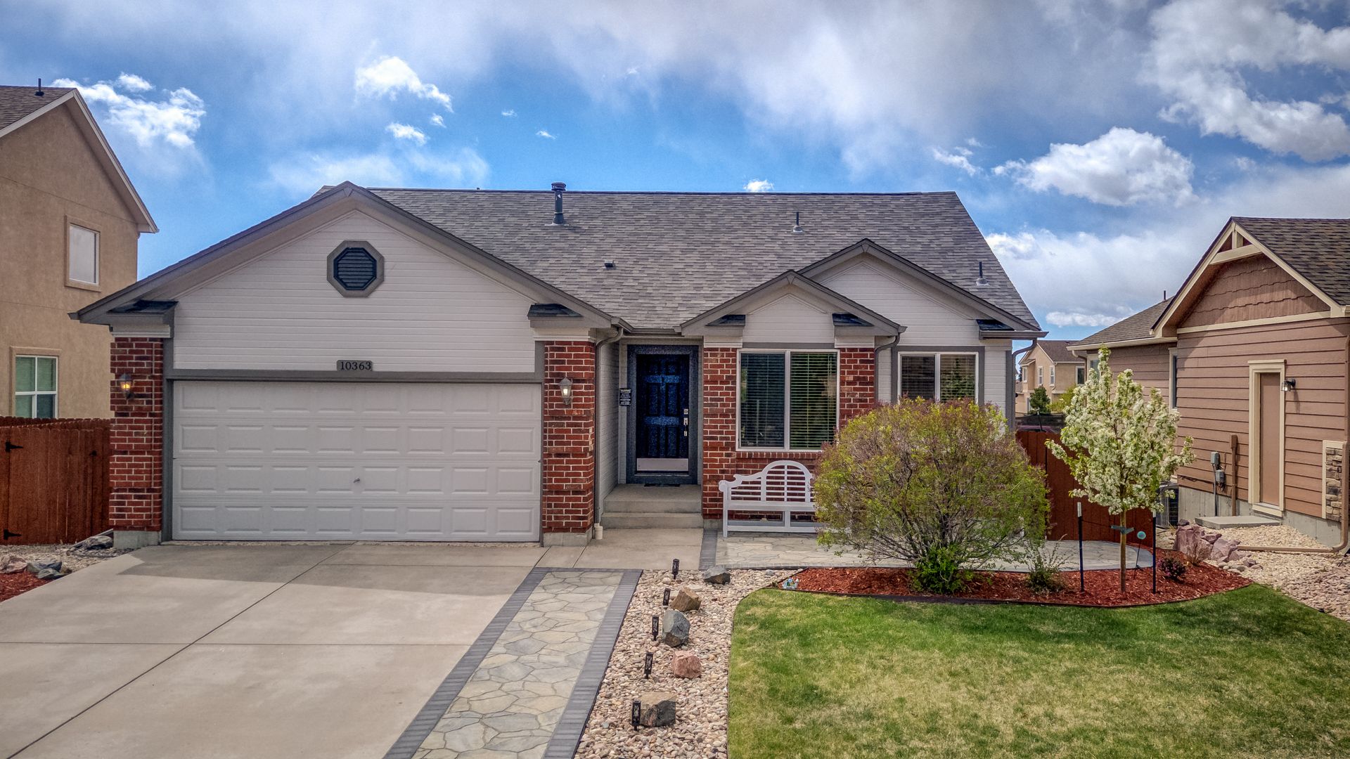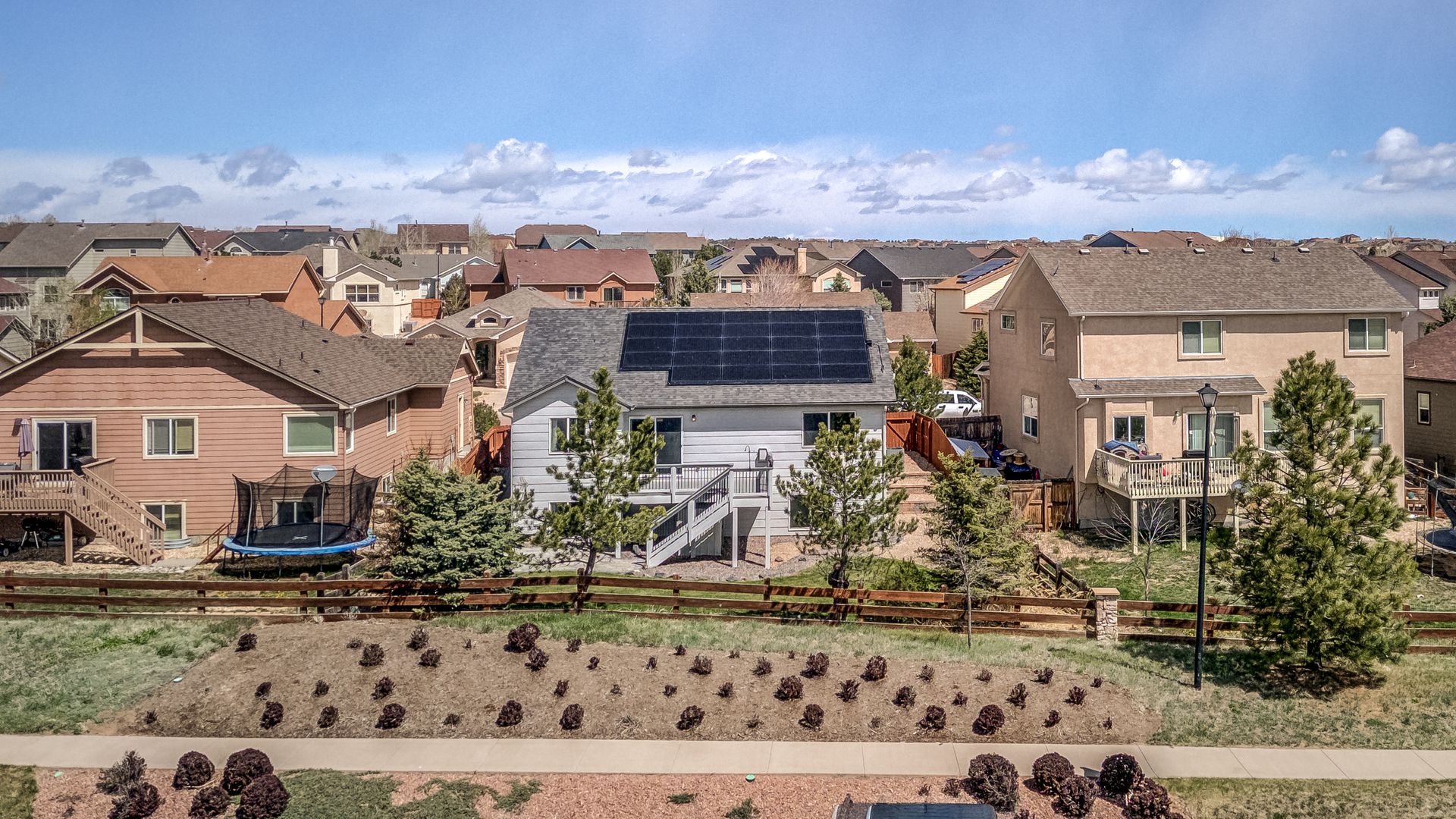 "LOCATION! This very well maintained rancher is in the perfect setting! It's located near the community rec center, between 2 parks, and between the high school, middle school, and 2 elementary schools. And it's loaded with updates, both inside and out! On the exterior you can enjoy a composite deck, new trees/perennials, stone patio, privacy fence, newer roof w/40-yr transferable warranty high-impact shingles, fresh paint, wifi managed sprinkler system, 2 EV outlets in the garage, and lien-free solar (with battery backup). Walking inside, the kitchen includes granite counters, stainless steel appliances, soft-close cabinets, LVP flooring, and an eat-in kitchen area with formal dining right around the corner. Also on the main floor you'll notice the vaulted ceilings, living area with gas fireplace, a master suite with large walk-in closet and full bath with dual-sink vanity. A 2nd bedroom and full bath complete this floor. The lower level includes a large living area wired for surround sound, wet bar w/mini fridge and wine fridge, laundry room, 2 bedrooms w/walk-in closets, a full bath with dual vanities, and double-insulated walls for energy savings and noise tampering. This house is truly a MUST SEE!"