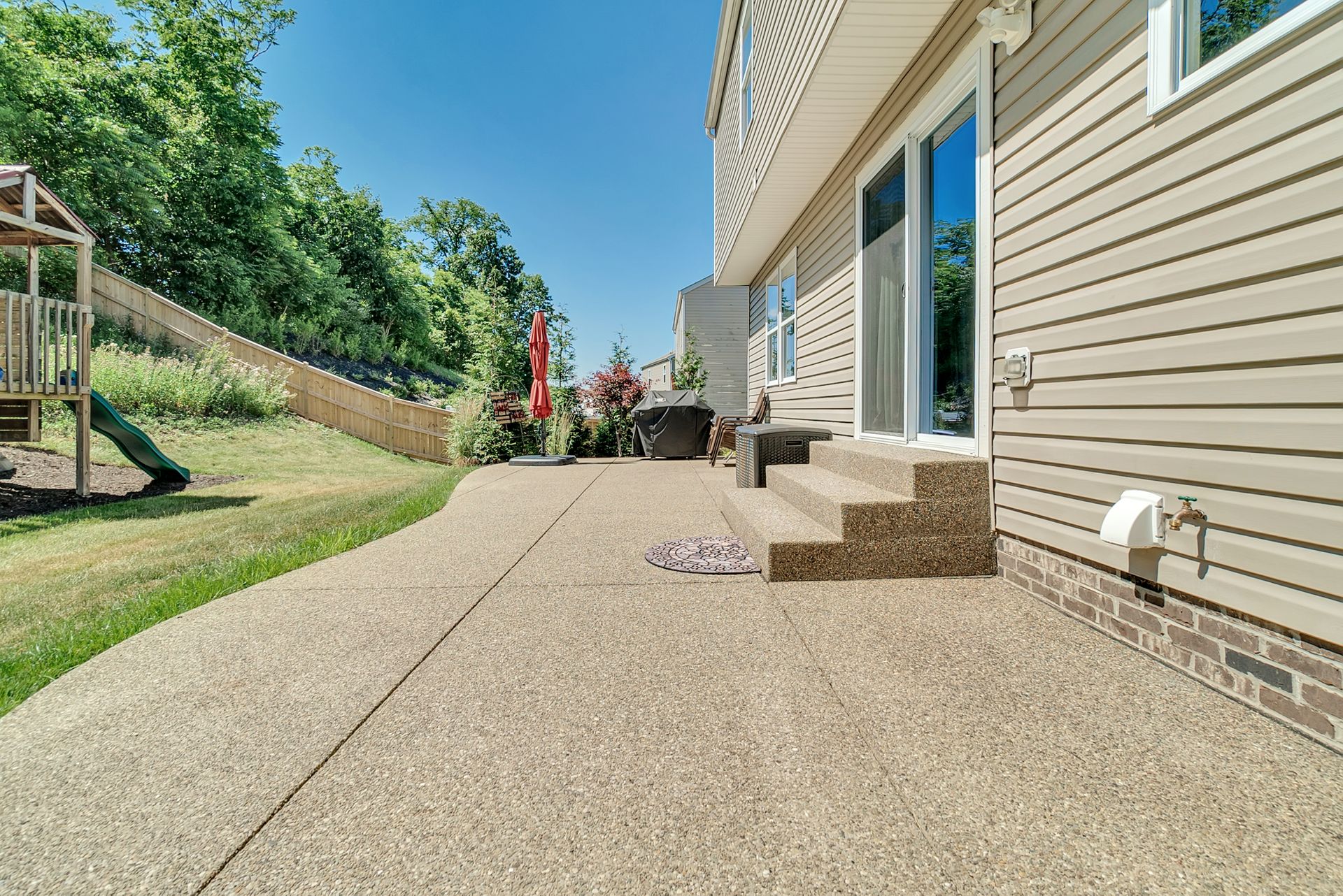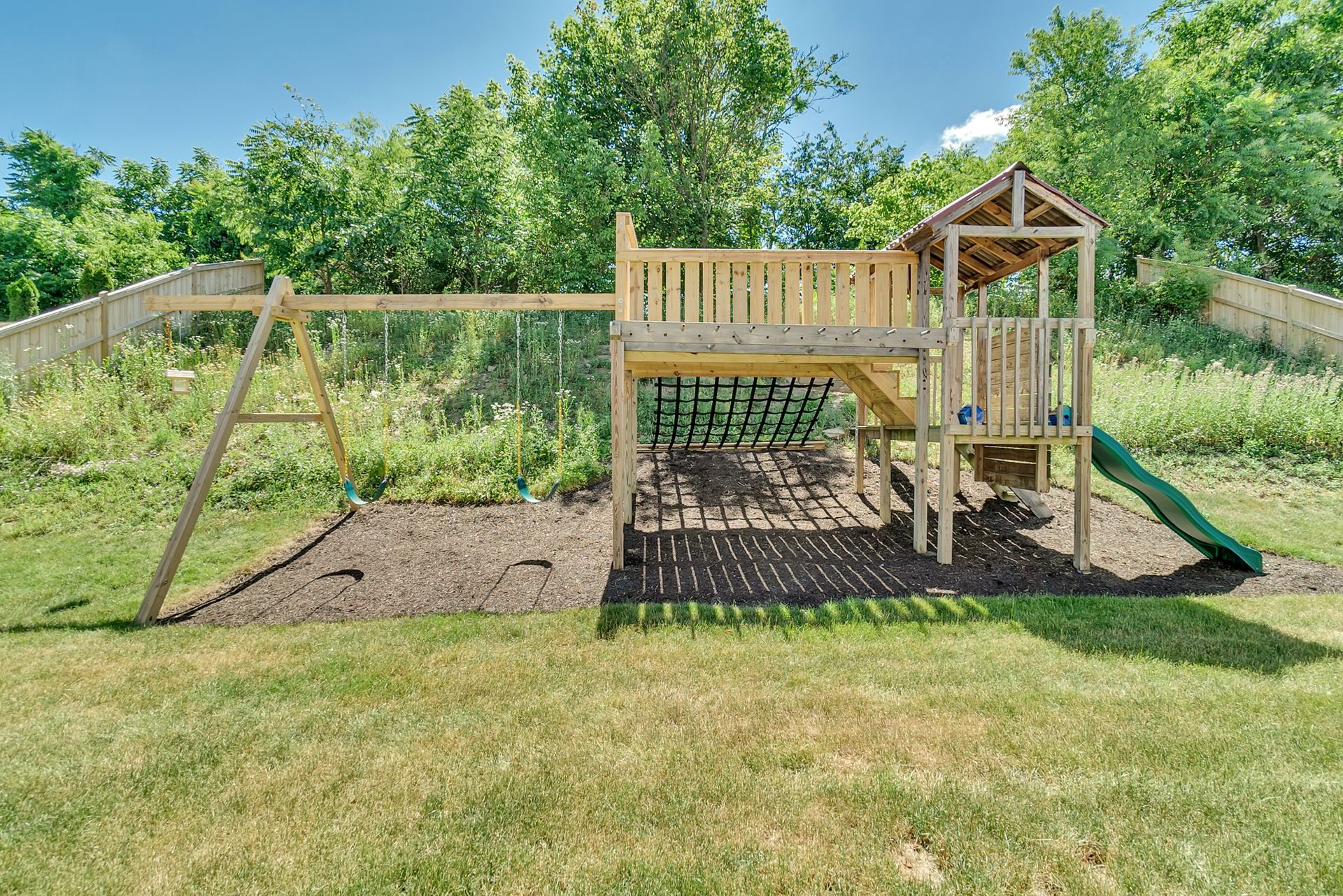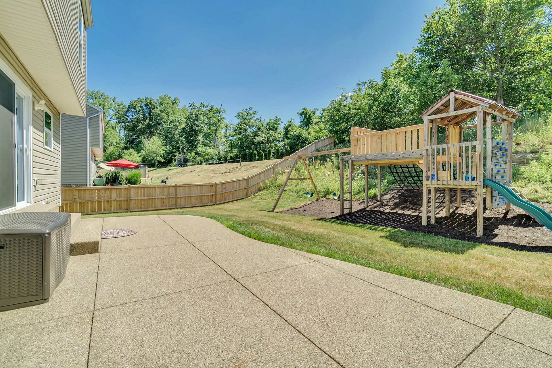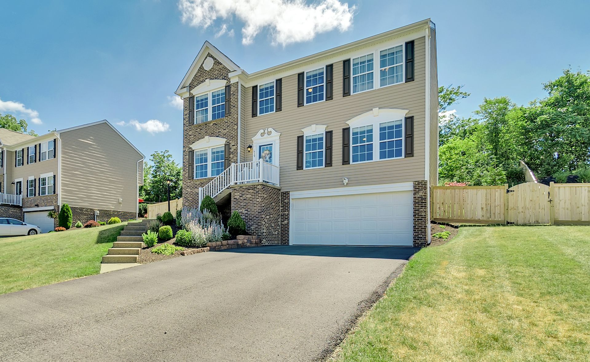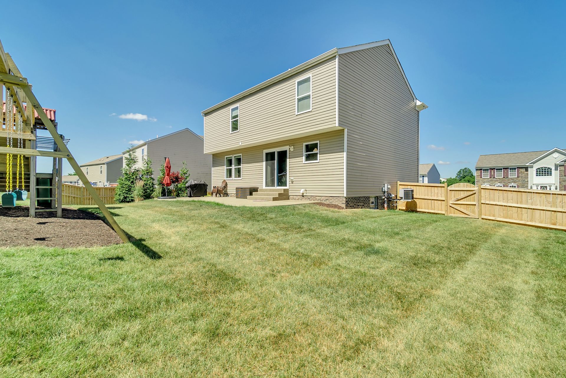 This home has great curb appeal with its lovely landscaping and aggregate steps and walkway. The home boasts a beautiful spacious kitchen with stainless steel appliances, a large island, recessed lighting, a pantry and an eating area which faces the sliding door to the patio and yard. A large family room that is adjacent to the kitchen, the dining room, laundry, one-half bath and the den complete the main floor. The master suite with a vaulted ceiling and a huge walk-in closet features a full bath with a double bowl sink, a soaking tub and a separate shower. Three additional bedrooms and a hall bath are included on the second floor. There are a finished game room and a full bath in the basement. The home offers a large two-car garage as well as a fenced-in yard with a beautiful aggregate patio and a swing set.