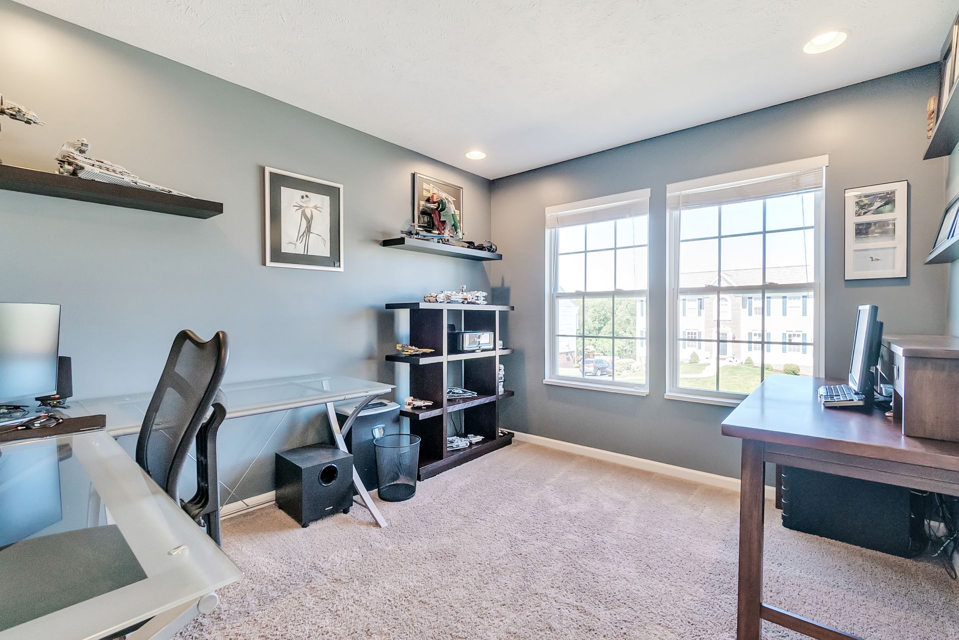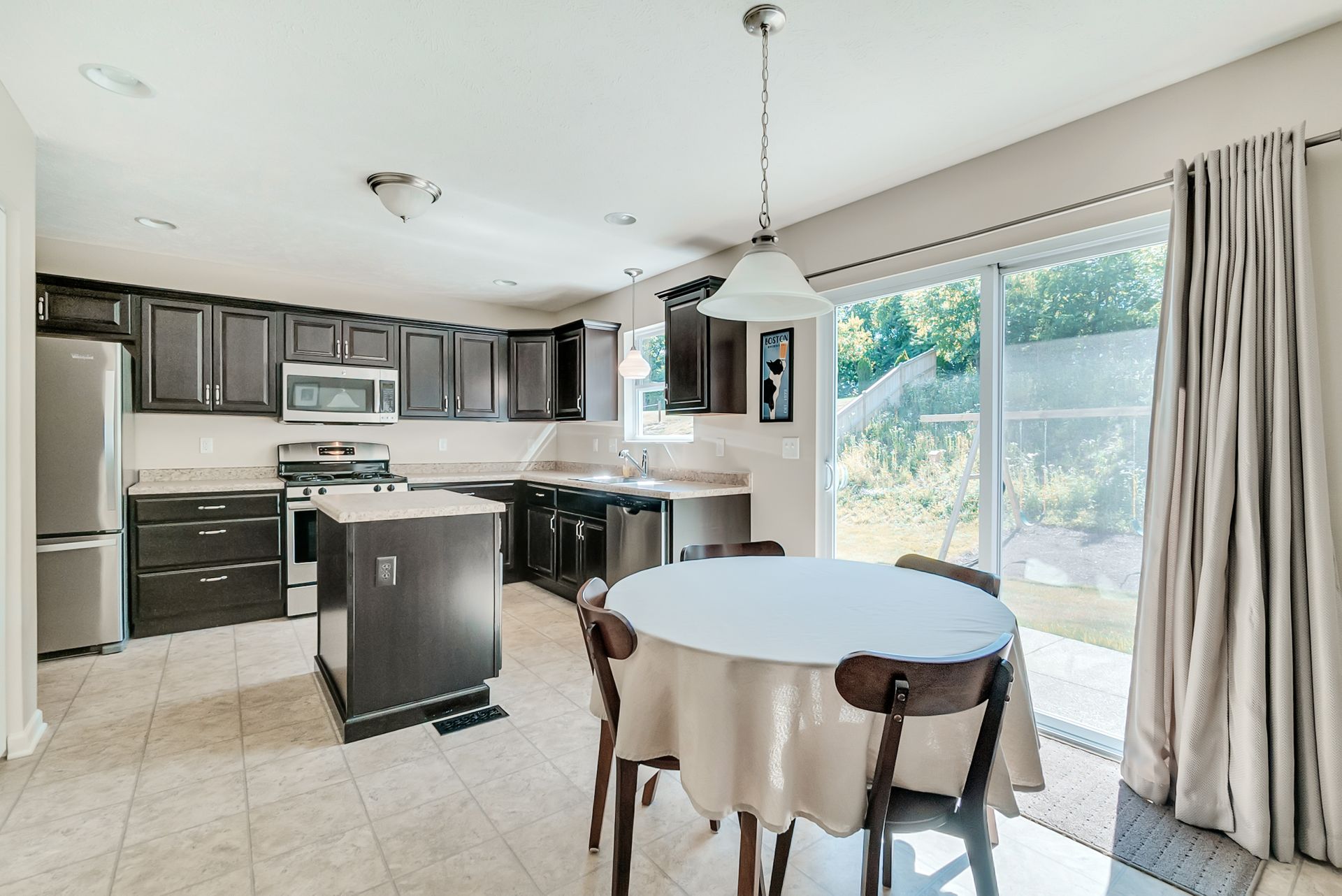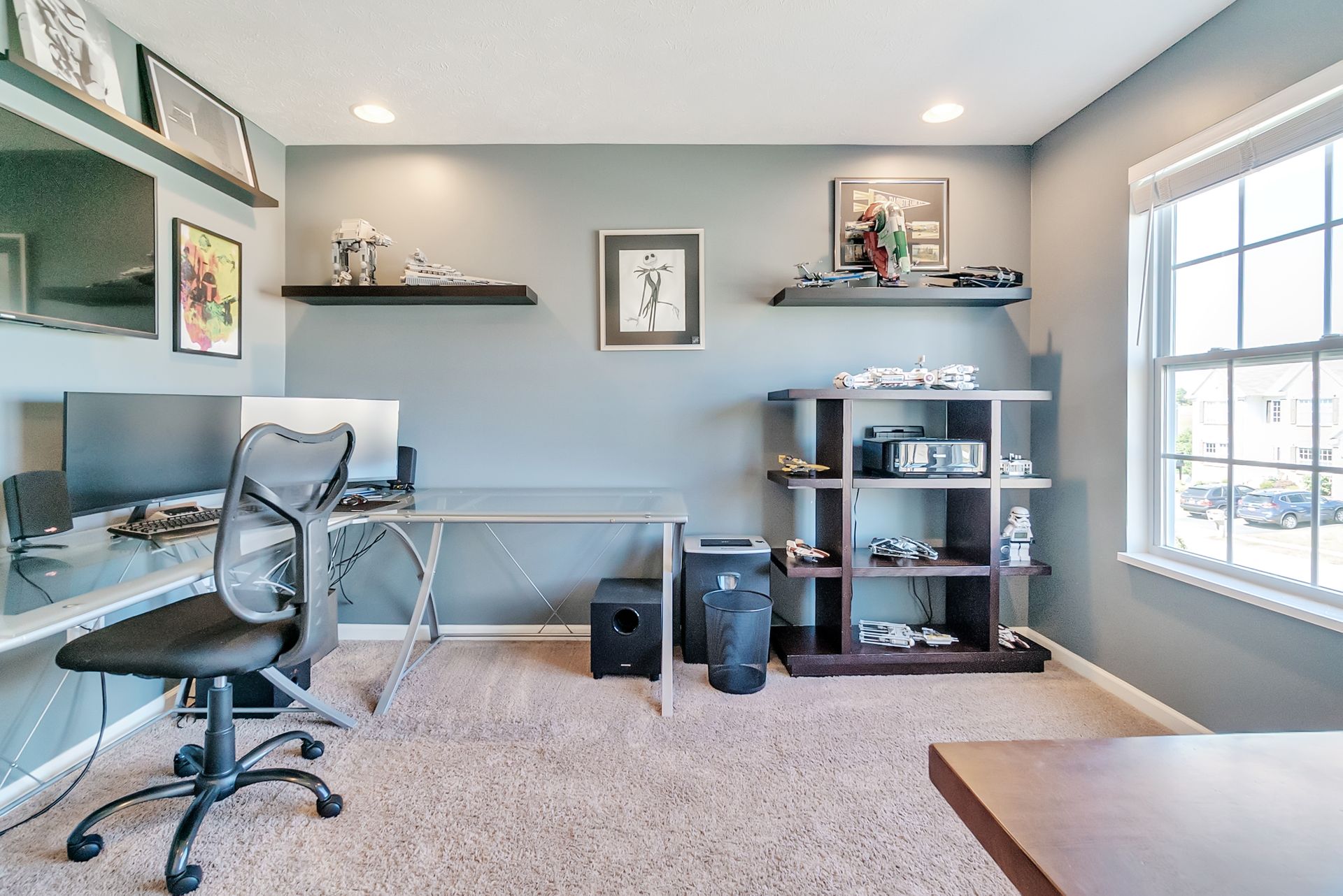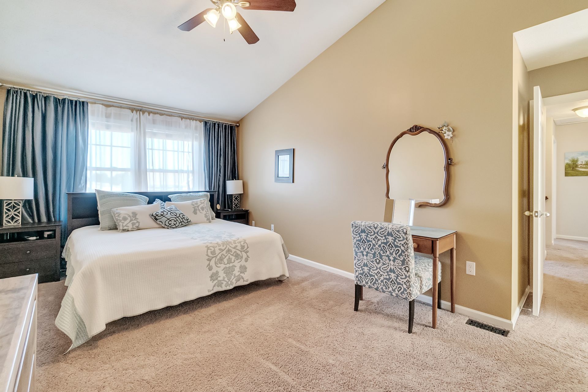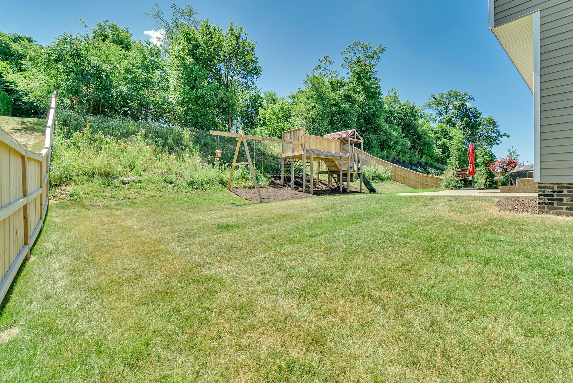 This home has great curb appeal with its lovely landscaping and aggregate steps and walkway. The home boasts a beautiful spacious kitchen with stainless steel appliances, a large island, recessed lighting, a pantry and an eating area which faces the sliding door to the patio and yard. A large family room that is adjacent to the kitchen, the dining room, laundry, one-half bath and the den complete the main floor. The master suite with a vaulted ceiling and a huge walk-in closet features a full bath with a double bowl sink, a soaking tub and a separate shower. Three additional bedrooms and a hall bath are included on the second floor. There are a finished game room and a full bath in the basement. The home offers a large two-car garage as well as a fenced-in yard with a beautiful aggregate patio and a swing set.