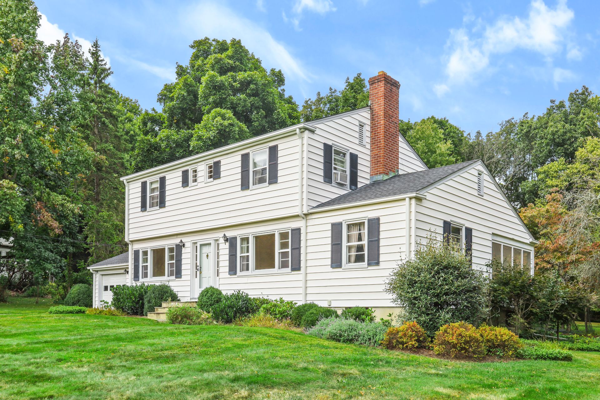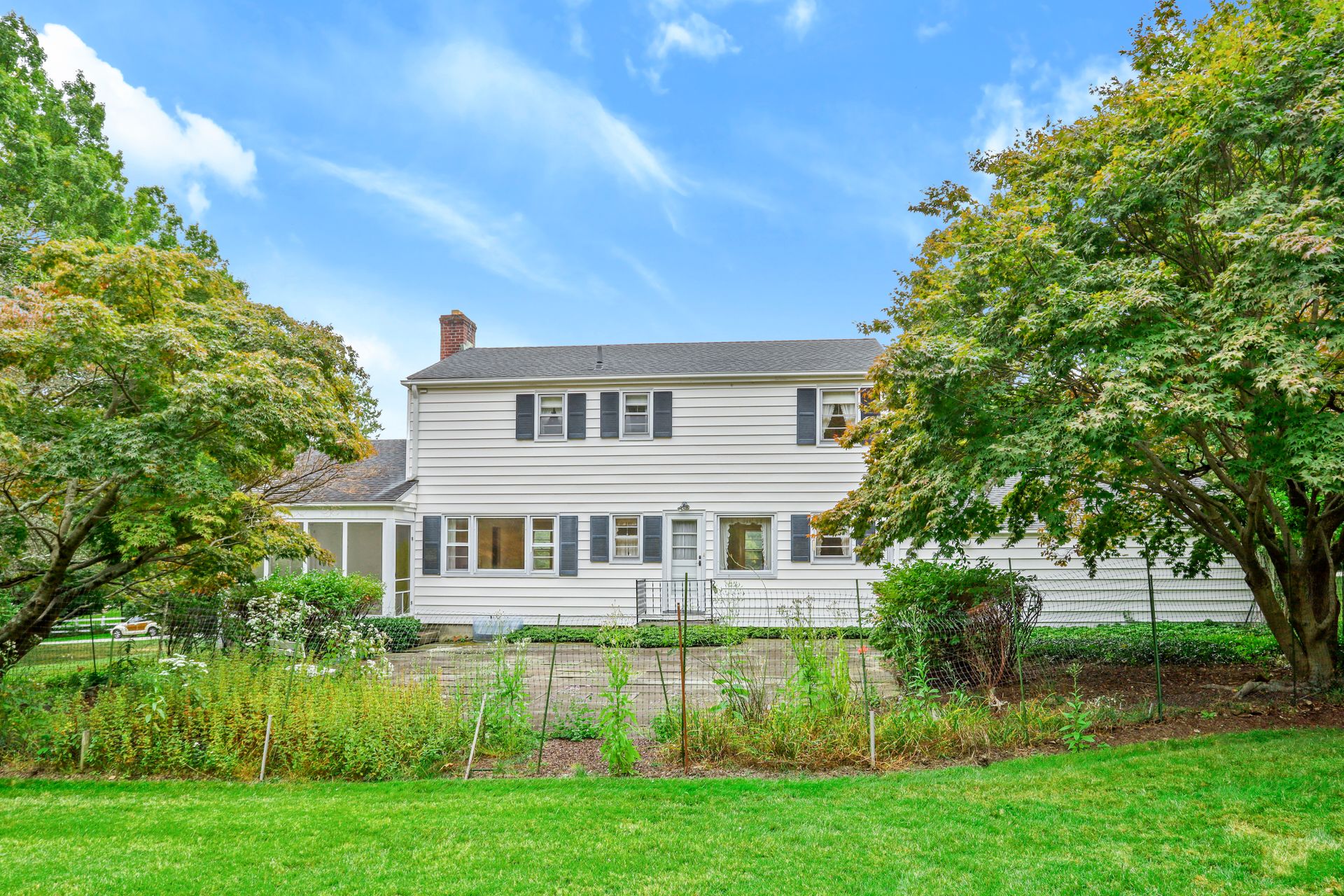 Sitting on over an acre of park-like property, this true Center Hall Colonial is calling you home! As you enter this home, on the right is the sun filled formal living room boasting two triple windows, fireplace, door to the screened-in porch and access to the home office/den with built-in cabinets and shelving. On the left is the formal dining room with a triple window and door to the eat-in kitchen. A powder room completes this floor. Upstairs is a primary suite featuring a walk-in closet, alcove to the attic and private bath with a shower, two additional bedrooms with double closets and a hall bath. Both levels have beautiful hardwood floors. The full basement has a large work room, recreation room, laundry and a door out to the side yard. Enjoy the private, level and spacious back yard with a stone patio, perennial gardens and mature shrubs and trees. A great place for outdoor recreation and entertaining.