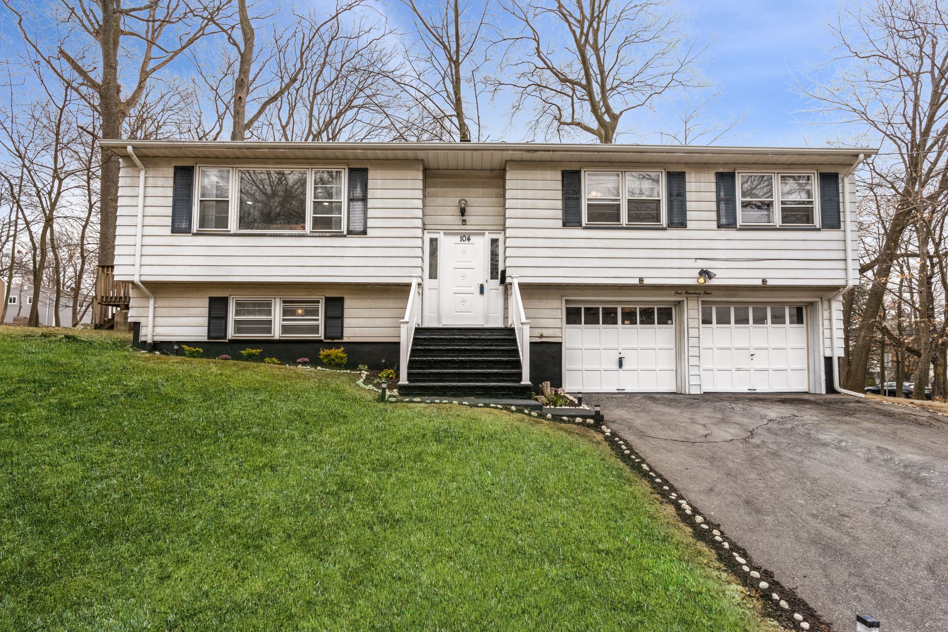 Ground level contains large bedroom, family room, updated full bath and 2 car garage. Brand new washer/dryer, electric panel and recess lights. The roof, central air, hot water heater and furnace are 2 years old.