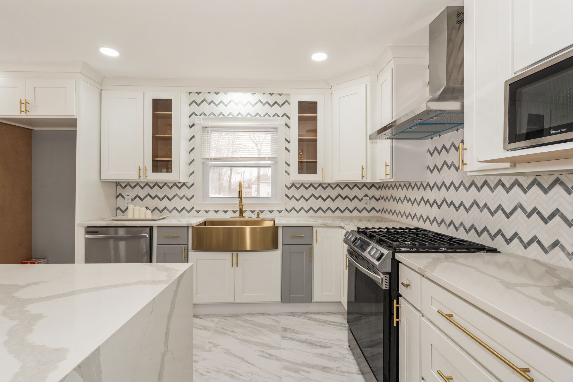 The first floor has a bright open floor plan with LR, DR, magnificent updated quartz kitchen with Center Island and stainless steel appliances. This open floor plan opens up to a deck overlooking scenic yard.