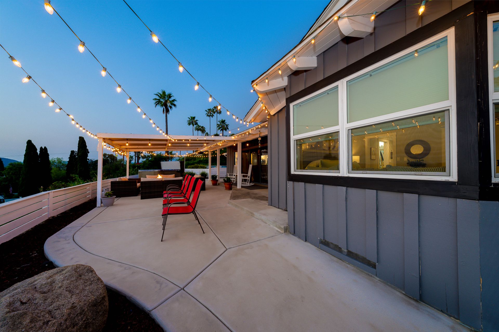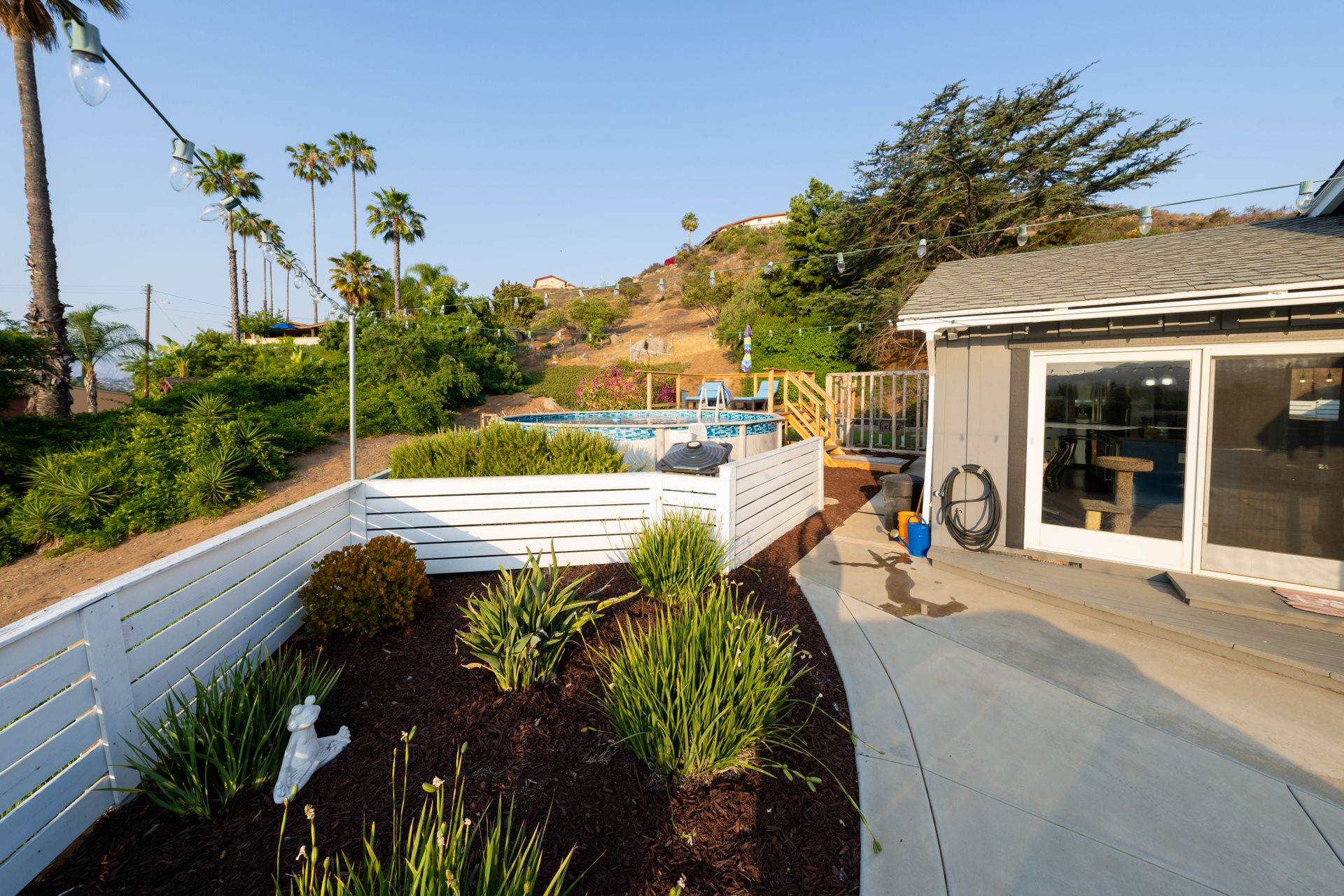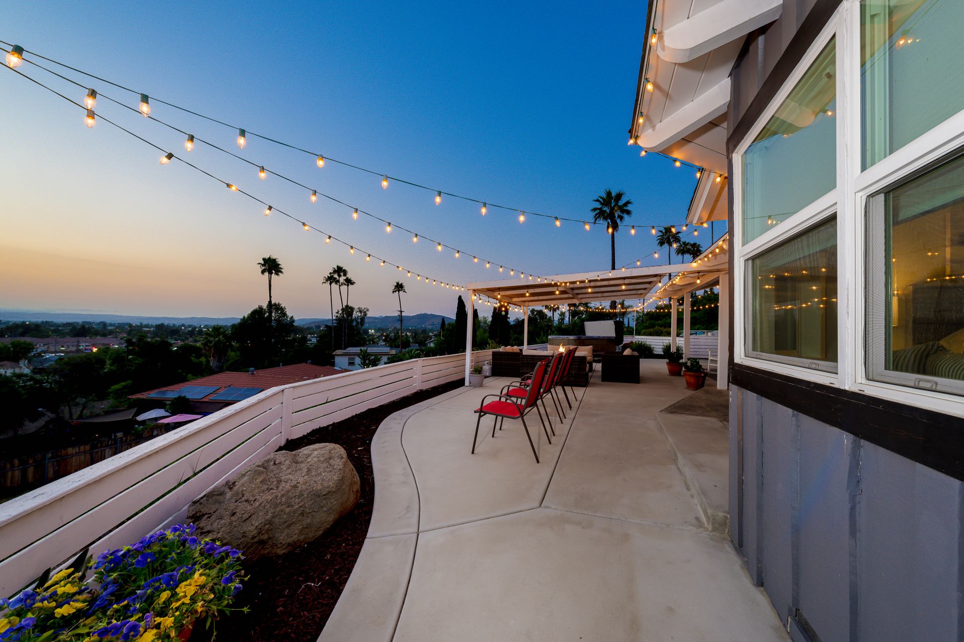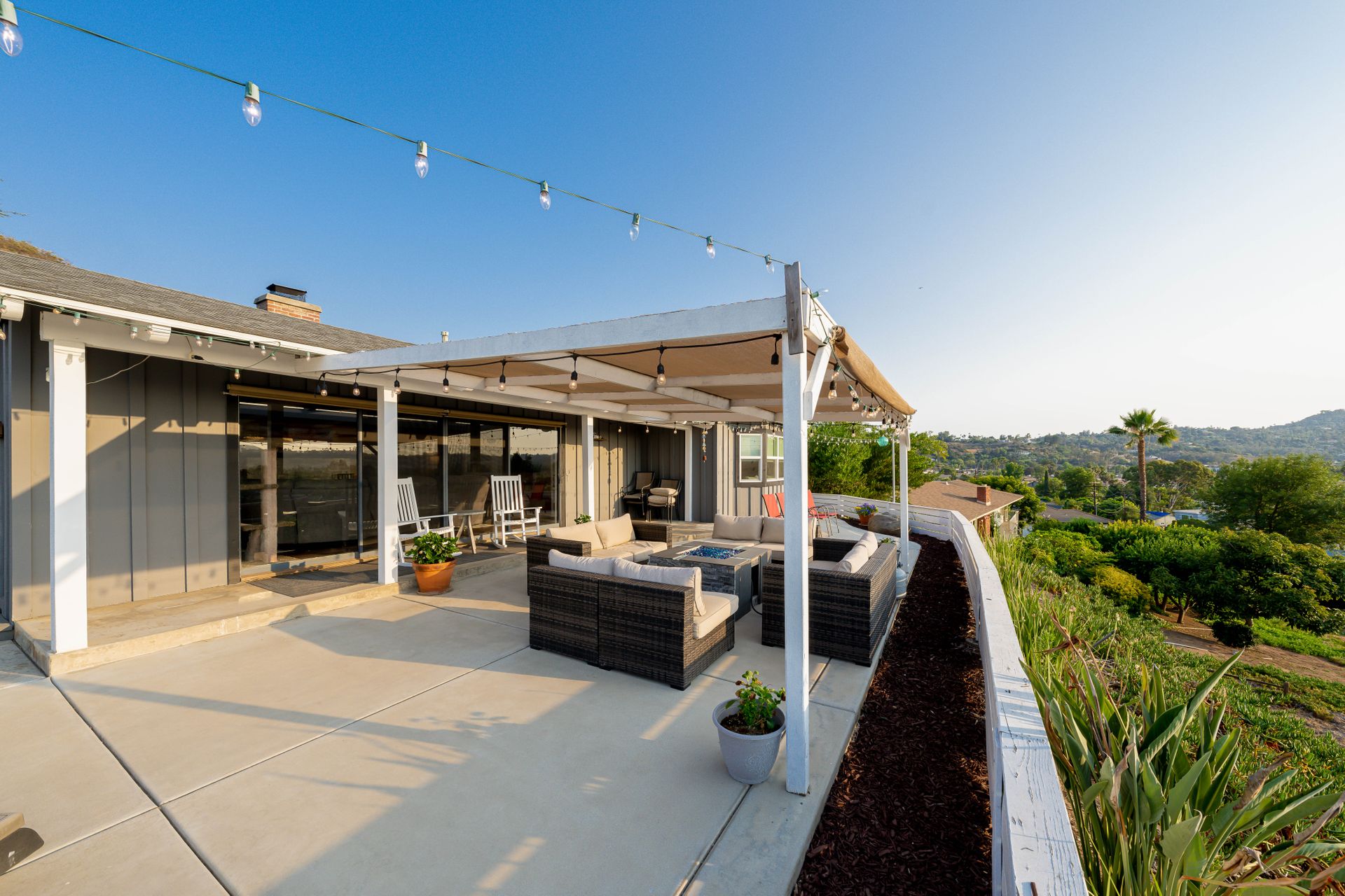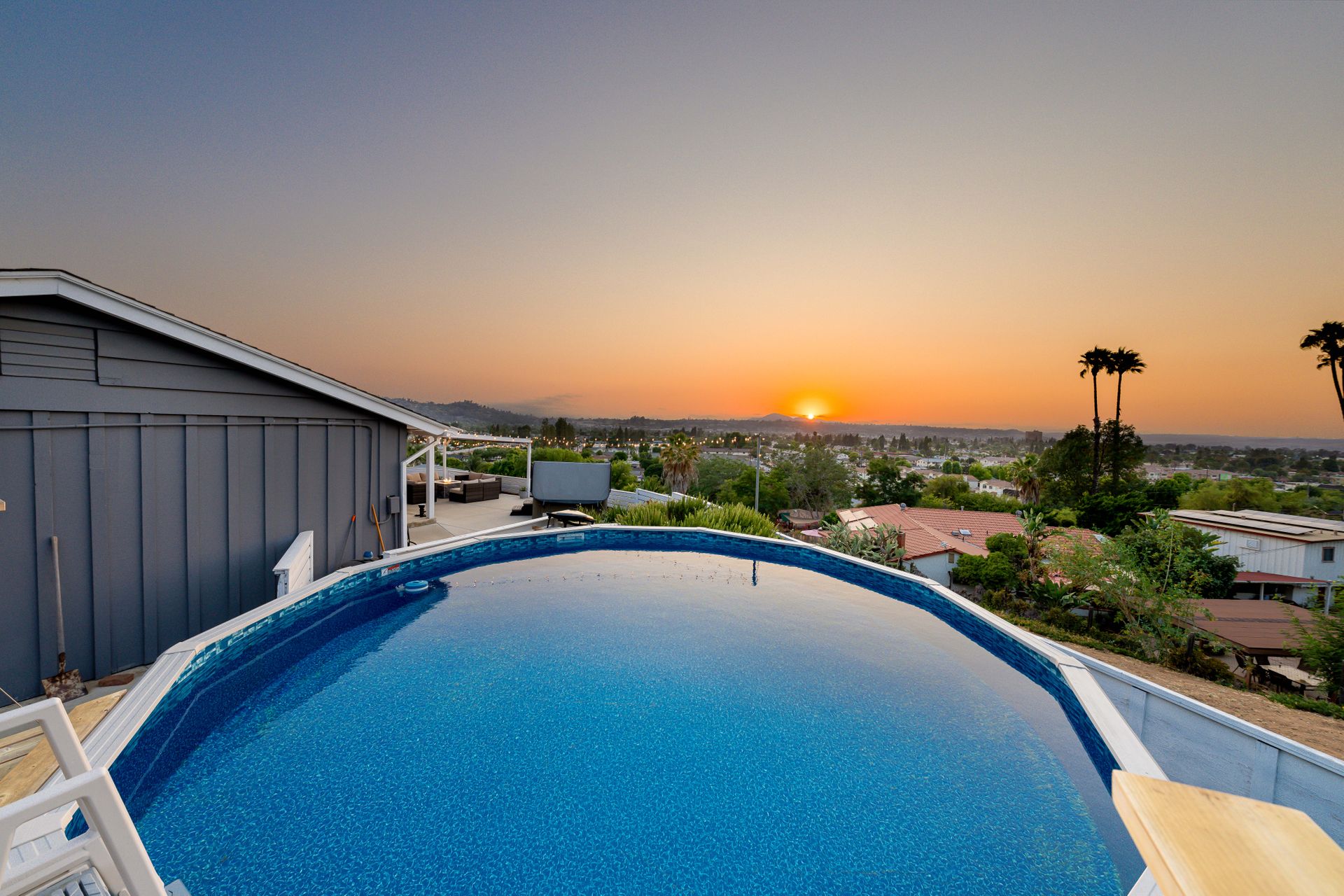 Welcome to Paradise! Are you searching for the perfect home to entertain? This is it! The stunning views stretching across the valley will take your breath away. Step into this open floorplan with views from nearly every room. The spacious kitchen has a large island, stainless steel appliances, wine fridge & more! The dining room has a beautiful brick wall & vaulted ceilings with exposed wood beams. Both rooms flow into the living room where you will find the brick fireplace, custom wood décor wall & large, sliding glass doors to enjoy more great views! The master bedroom offers a walk-in closet, vanity, large windows, a slider to the side yard & more! The master bath features his & her sinks, a custom shower with a rain showerhead, and a separate soaking tub. Outdoor living at its finest including a lovely living space with built-in BBQ, wet bar, ceiling fans, TV hookups & more! On the west end of the property, there is a large, covered patio that includes gorgeous views, a fireplace, & a jacuzzi spa. Don't forget the above-ground pool with a large deck, raised garden bed, and an extended lot down below perfect for kids, pets, etc. Located up a private drive, this property opens up to a large driveway with parking for multiple cars, potential space for RV, and an attached 2 car garage. Keep your utility bills low with your own solar! Do not let this great home pass you by!