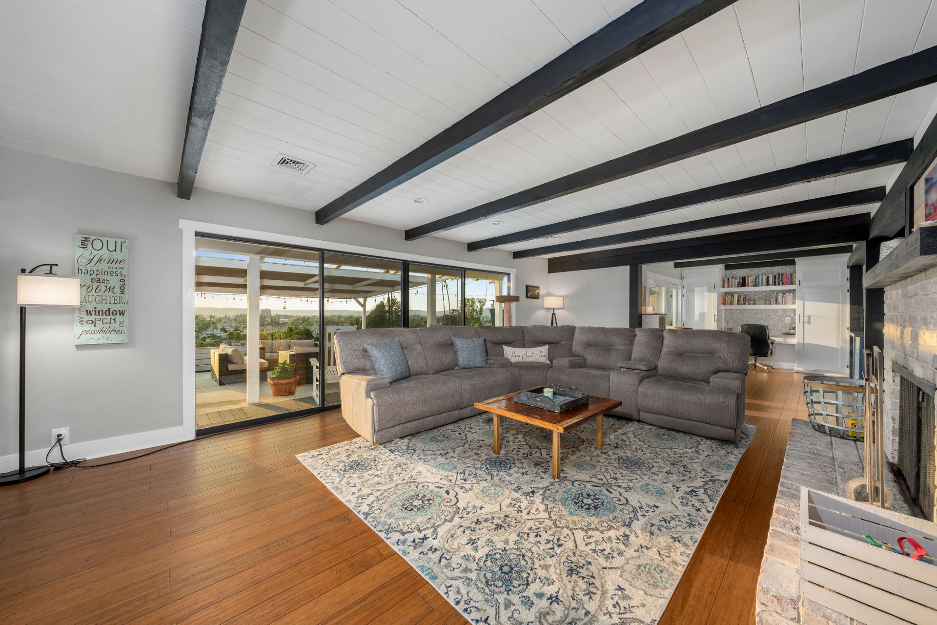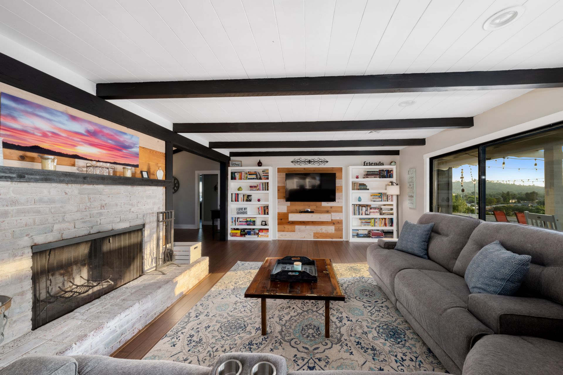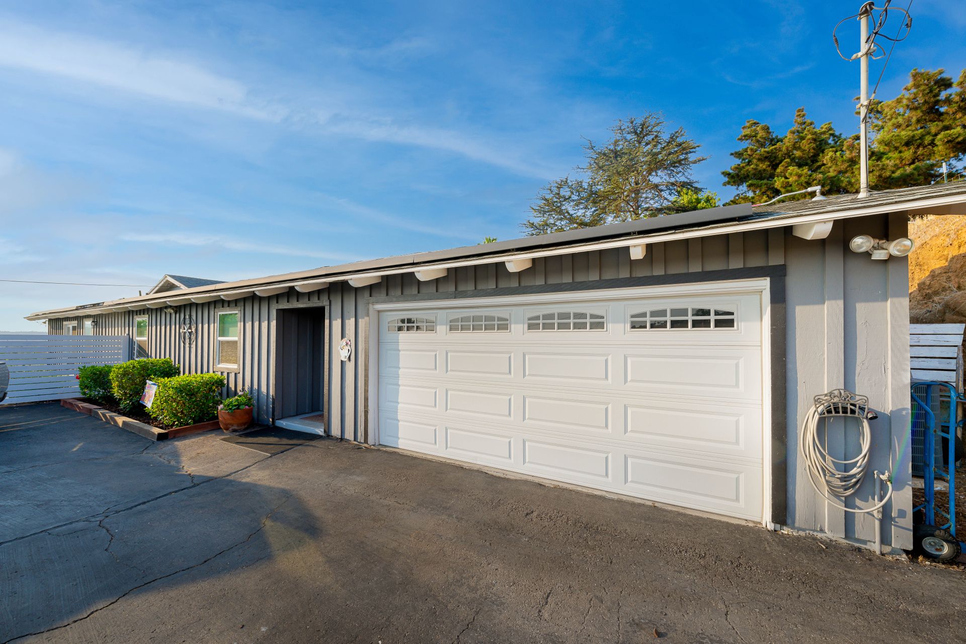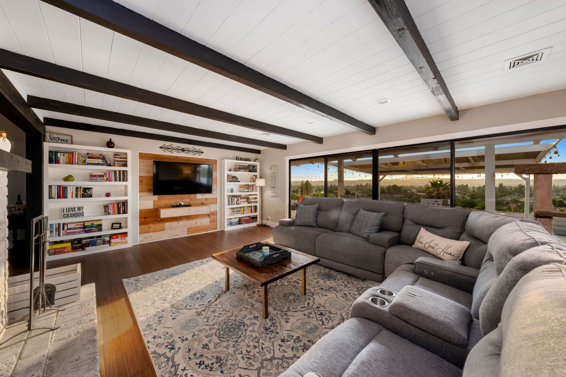 Welcome to Paradise! Are you searching for the perfect home to entertain? This is it! The stunning views stretching across the valley will take your breath away. Step into this open floorplan with views from nearly every room. The spacious kitchen has a large island, stainless steel appliances, wine fridge & more! The dining room has a beautiful brick wall & vaulted ceilings with exposed wood beams. Both rooms flow into the living room where you will find the brick fireplace, custom wood décor wall & large, sliding glass doors to enjoy more great views! The master bedroom offers a walk-in closet, vanity, large windows, a slider to the side yard & more! The master bath features his & her sinks, a custom shower with a rain showerhead, and a separate soaking tub. Outdoor living at its finest including a lovely living space with built-in BBQ, wet bar, ceiling fans, TV hookups & more! On the west end of the property, there is a large, covered patio that includes gorgeous views, a fireplace, & a jacuzzi spa. Don't forget the above-ground pool with a large deck, raised garden bed, and an extended lot down below perfect for kids, pets, etc. Located up a private drive, this property opens up to a large driveway with parking for multiple cars, potential space for RV, and an attached 2 car garage. Keep your utility bills low with your own solar! Do not let this great home pass you by!