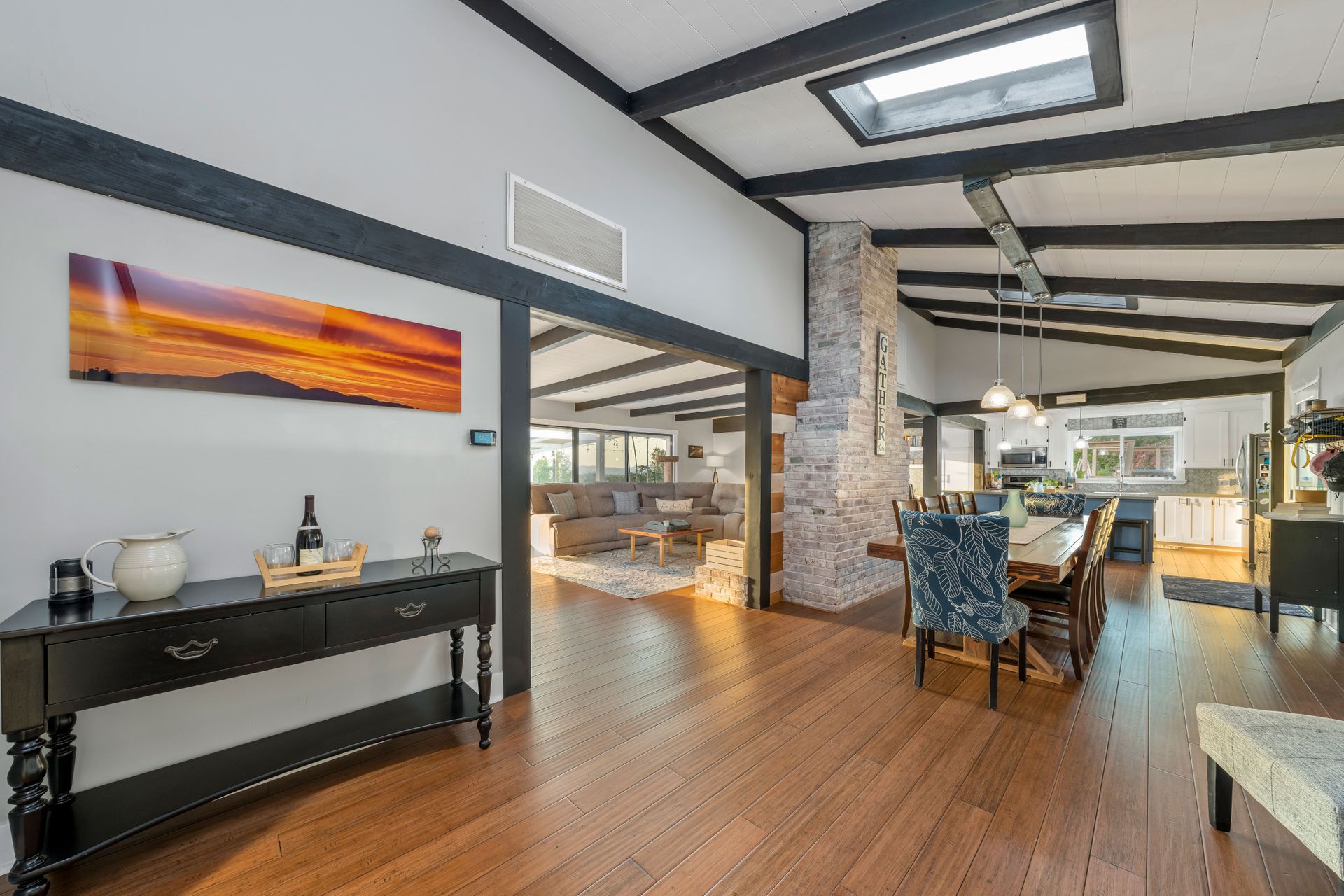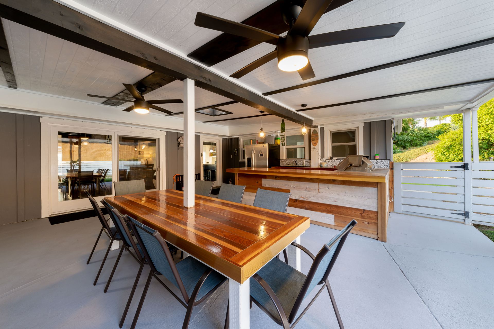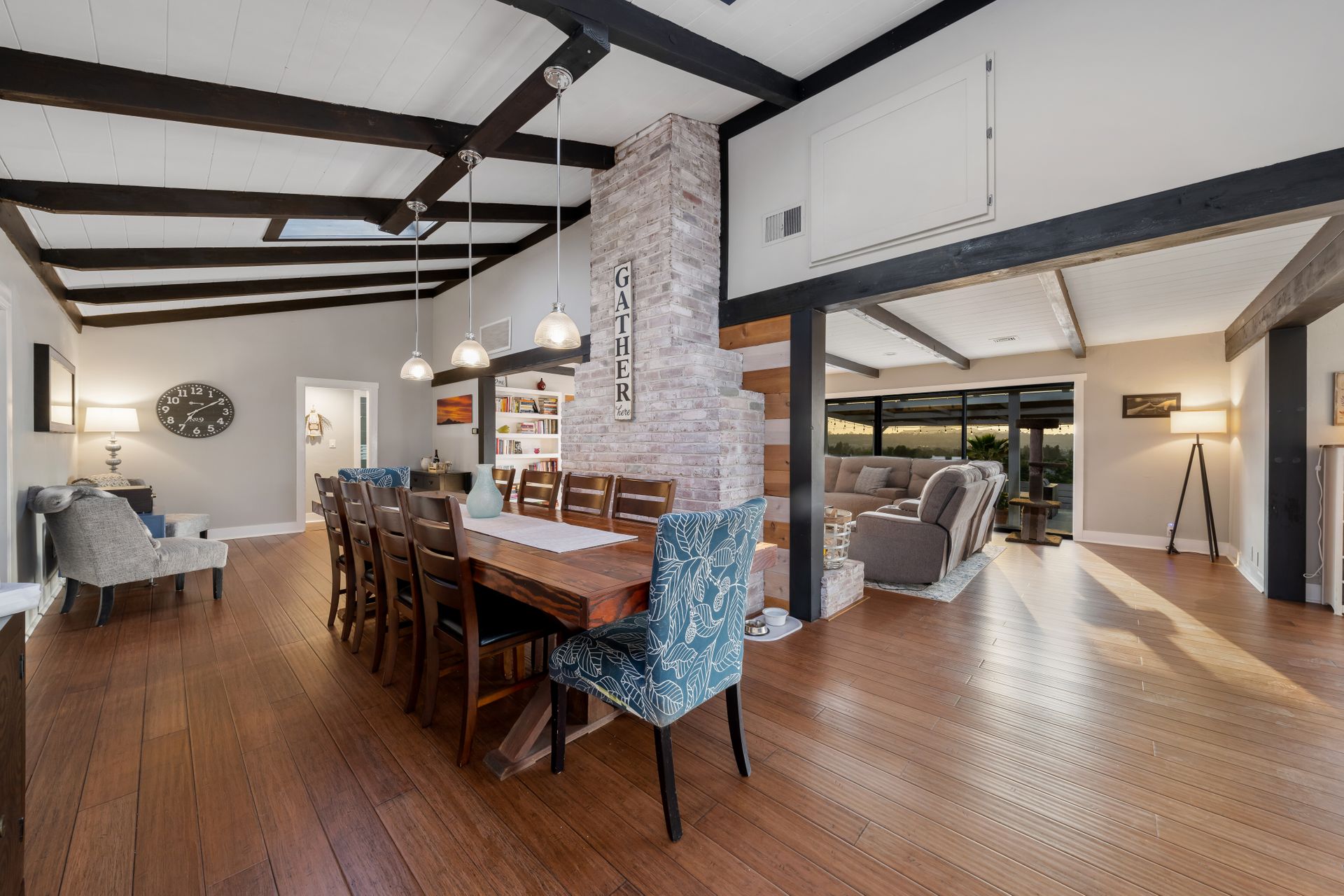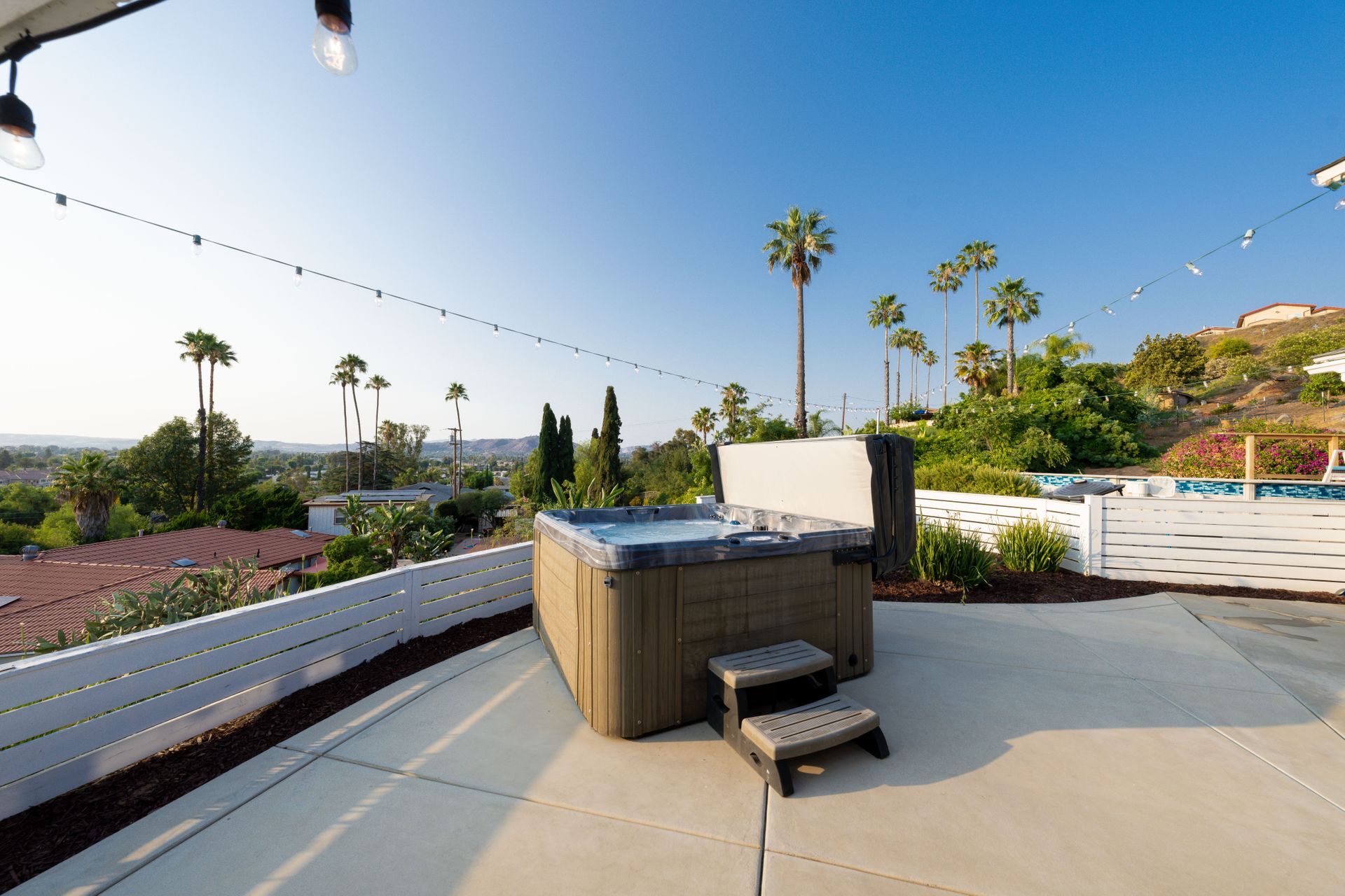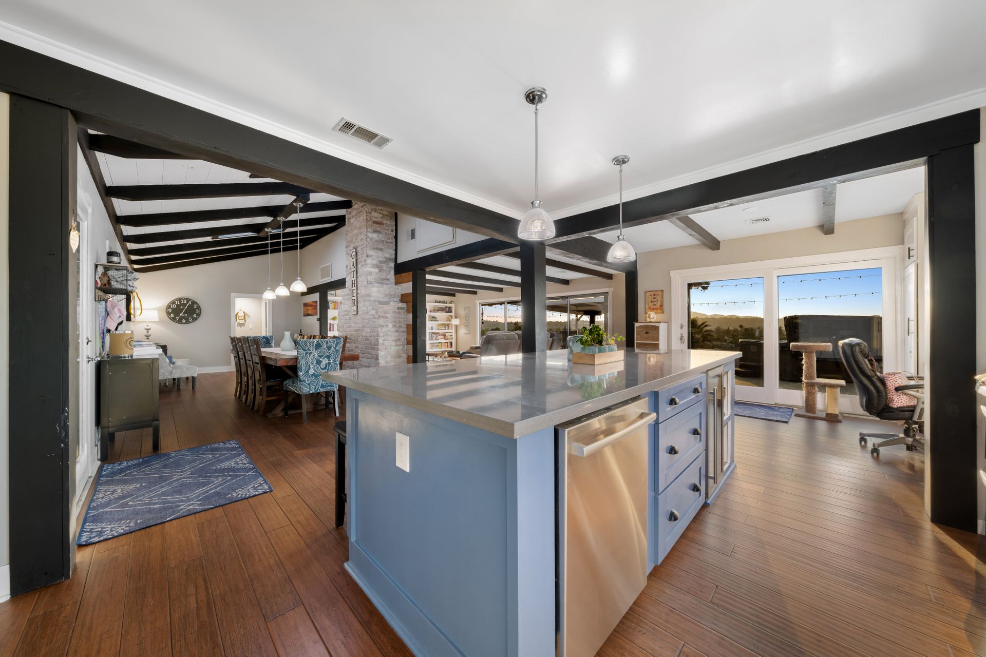 Welcome to Paradise! Are you searching for the perfect home to entertain? This is it! The stunning views stretching across the valley will take your breath away. Step into this open floorplan with views from nearly every room. The spacious kitchen has a large island, stainless steel appliances, wine fridge & more! The dining room has a beautiful brick wall & vaulted ceilings with exposed wood beams. Both rooms flow into the living room where you will find the brick fireplace, custom wood décor wall & large, sliding glass doors to enjoy more great views! The master bedroom offers a walk-in closet, vanity, large windows, a slider to the side yard & more! The master bath features his & her sinks, a custom shower with a rain showerhead, and a separate soaking tub. Outdoor living at its finest including a lovely living space with built-in BBQ, wet bar, ceiling fans, TV hookups & more! On the west end of the property, there is a large, covered patio that includes gorgeous views, a fireplace, & a jacuzzi spa. Don't forget the above-ground pool with a large deck, raised garden bed, and an extended lot down below perfect for kids, pets, etc. Located up a private drive, this property opens up to a large driveway with parking for multiple cars, potential space for RV, and an attached 2 car garage. Keep your utility bills low with your own solar! Do not let this great home pass you by!