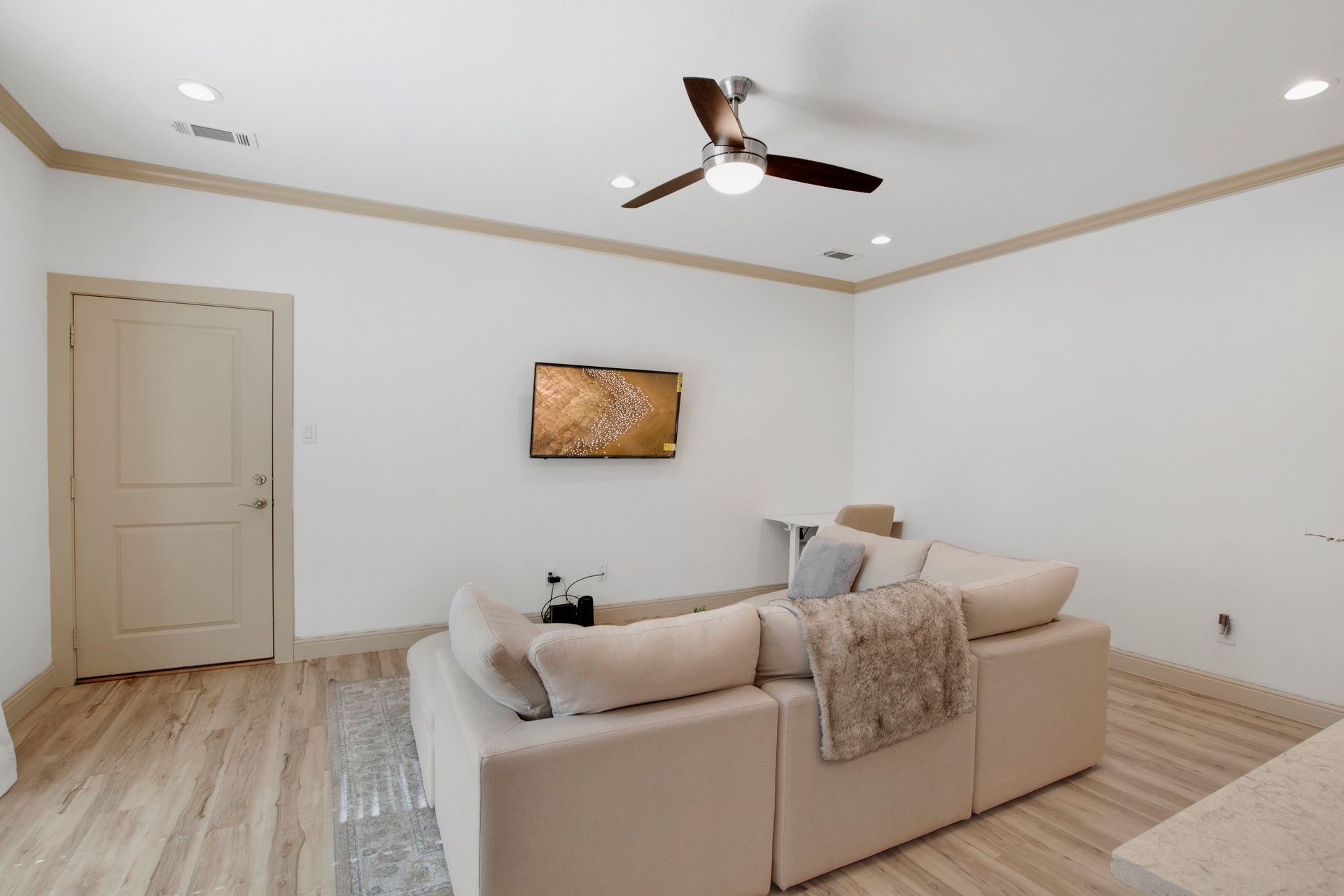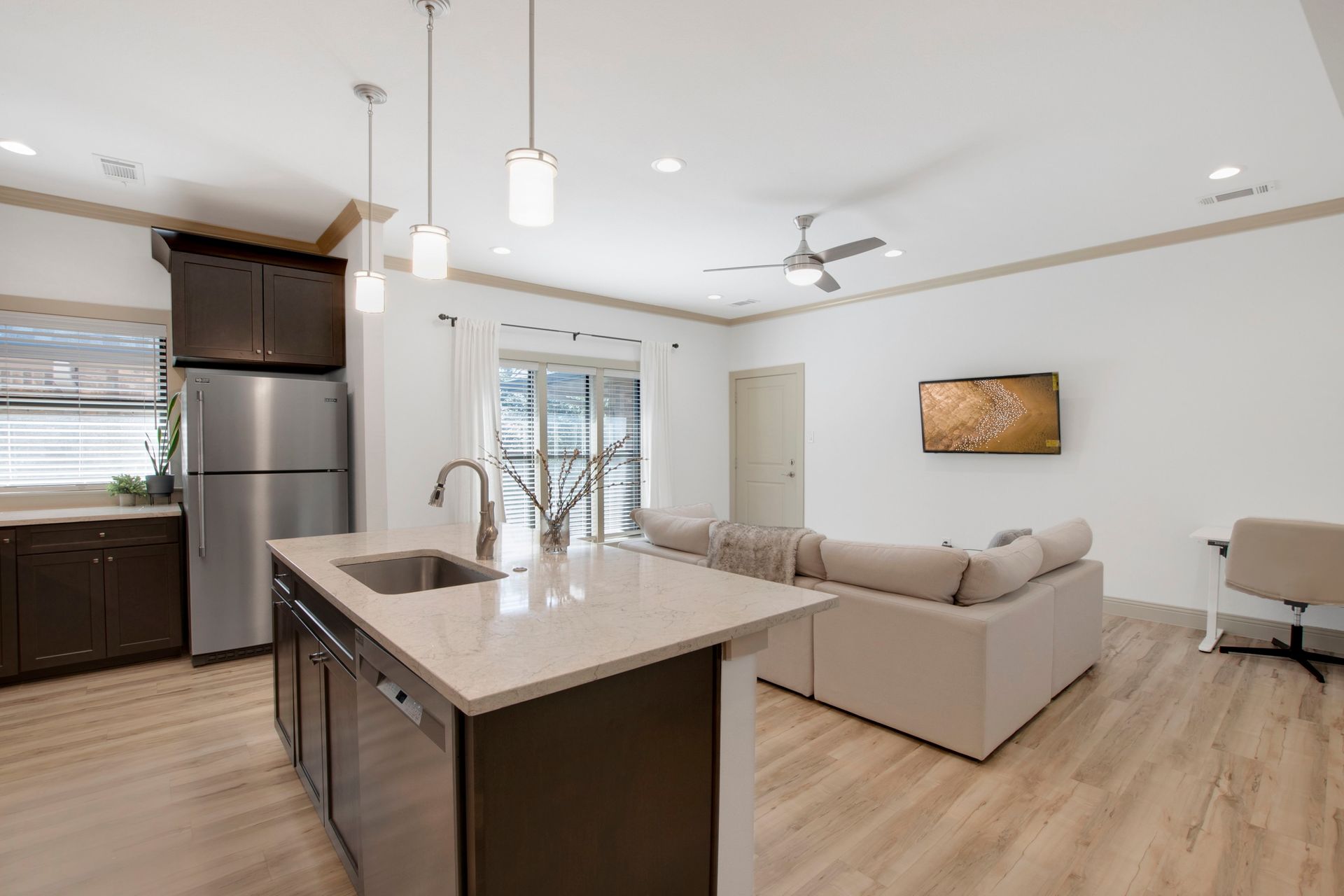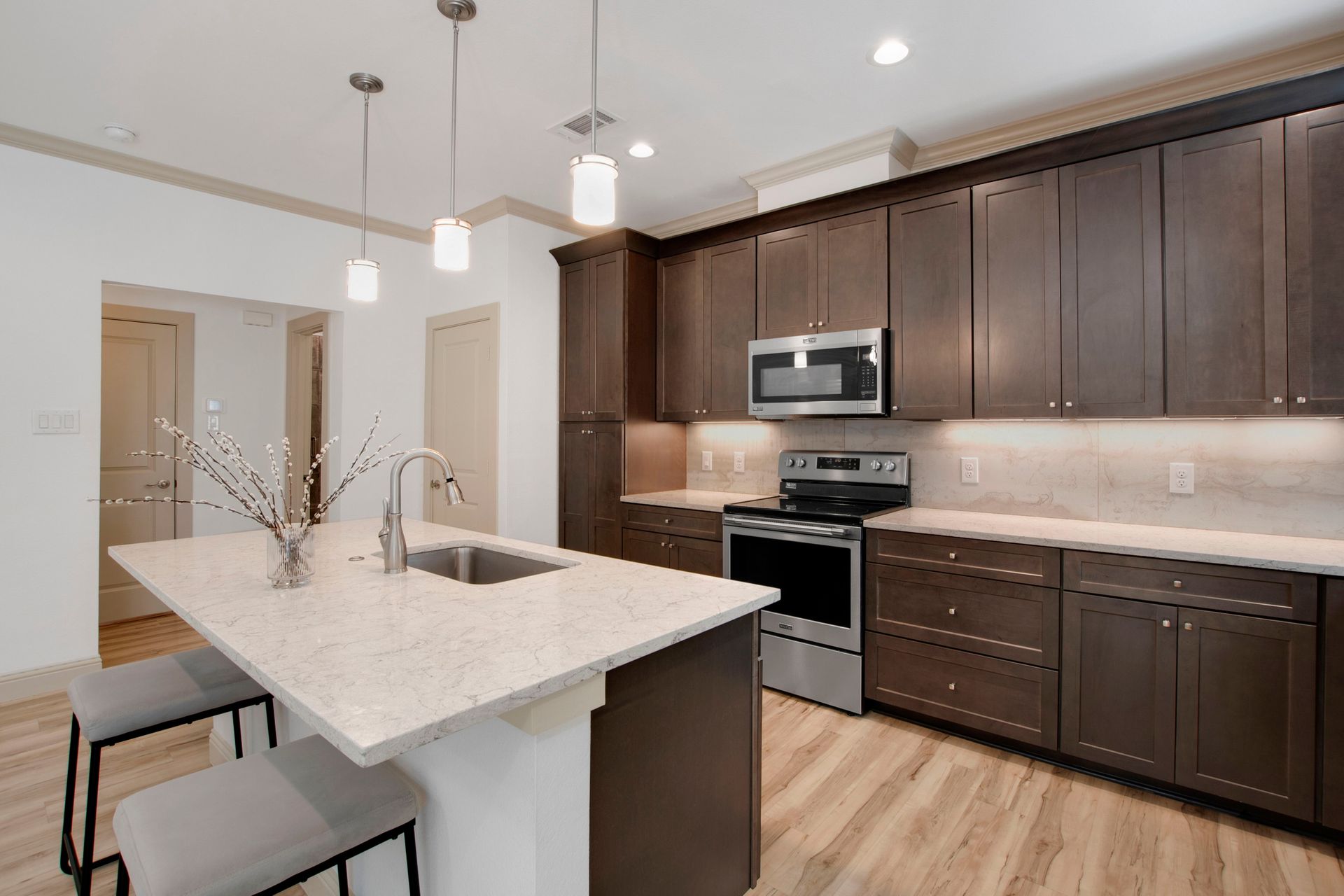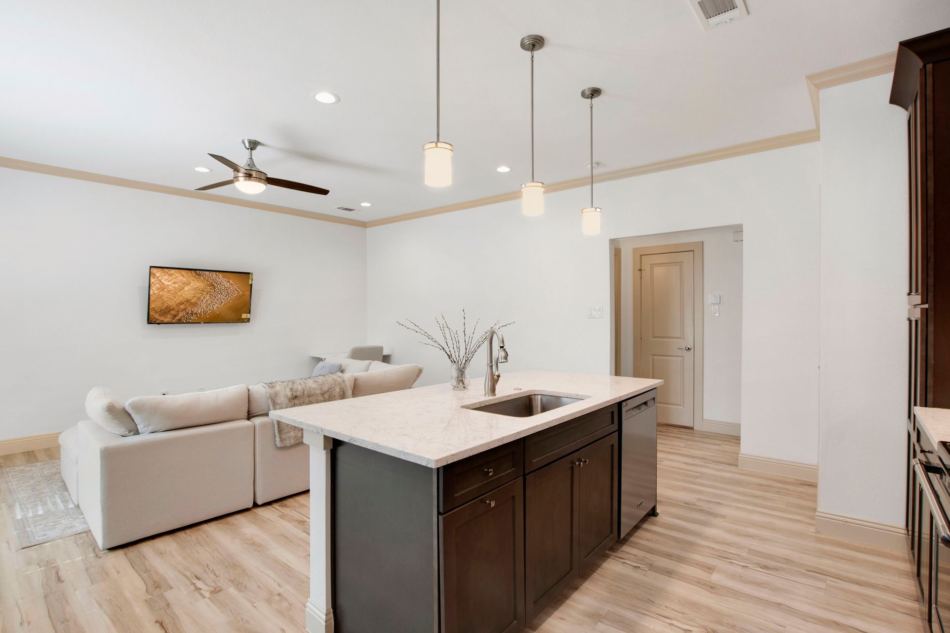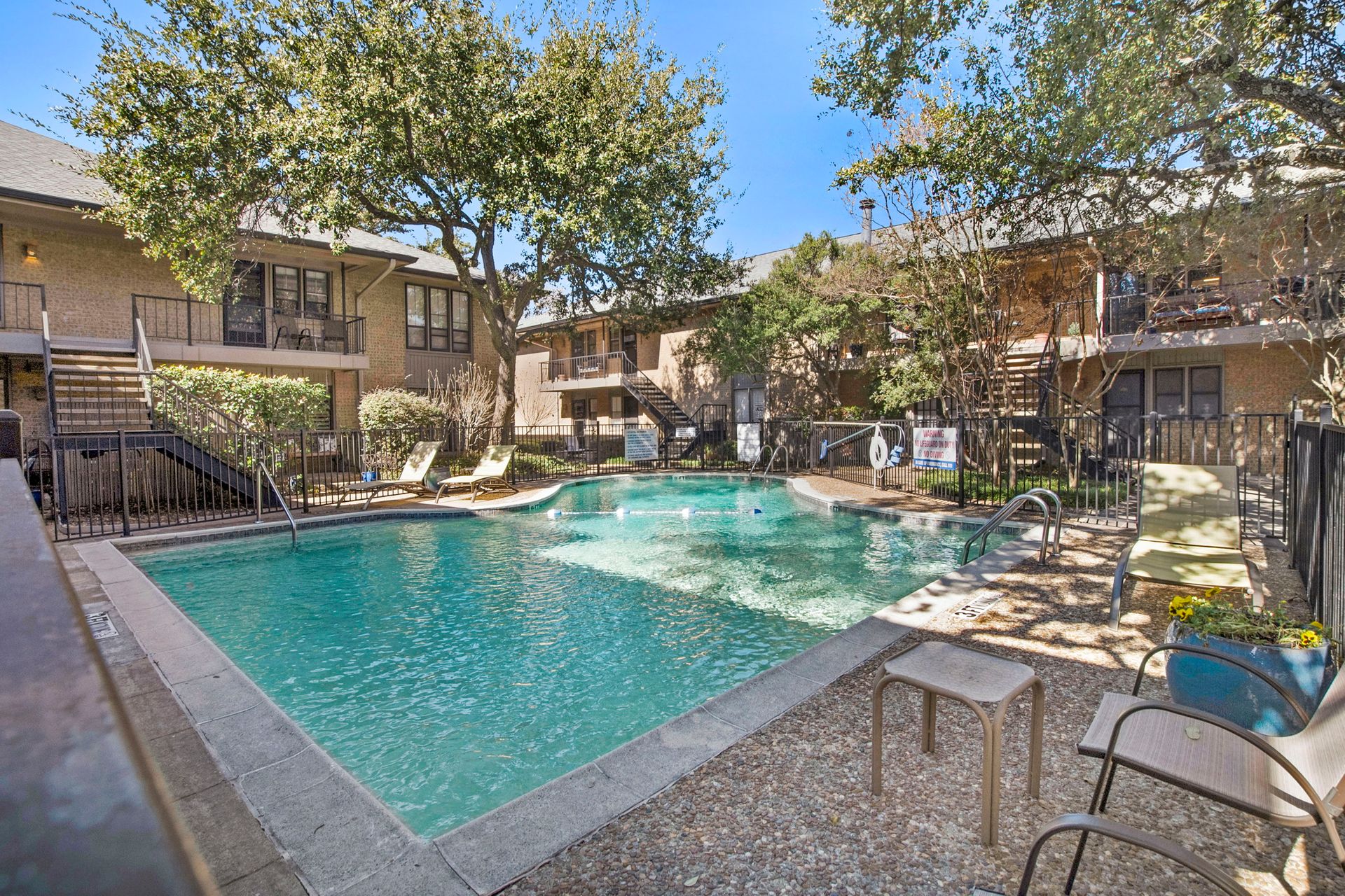 Welcome home to the Best Kept Secret in Preston Hollow, 5800 Royal Lane Condos. This fabulous condo was completely renovated meticulously in 2022 with modern finishes blending luxury and convenience. The spacious open floorplan with high ceilings and crown molding invites a flood of natural light from the large, new energy-efficient windows. The kitchen is a chef's dream, with a beautiful, oversized island, large enough for a breakfast bar, a plethora of upgraded cabinets, lots of counter space, quartz countertops, and stainless steel appliances with refrigerator included. Your primary suite has a large walk-in closet and access to your private balcony. The bathroom is tastefully done with quartz countertops and a luxurious large shower. This condo features a very large hall closet for storage or potential office space! New energy-efficient windows throughout! Washer and dryer included. The HOA dues include all utilities and internet, full access to four swimming pools, landscaping, and blanket exterior insurance. This location can't be beat! Conveniently located near upscale Preston Royal with great dining, shopping, and Central Market! The assigned parking space is a short distance from your front door! Come and join the Welcoming 5800 Royal Lane Community and make this your happy place today!
