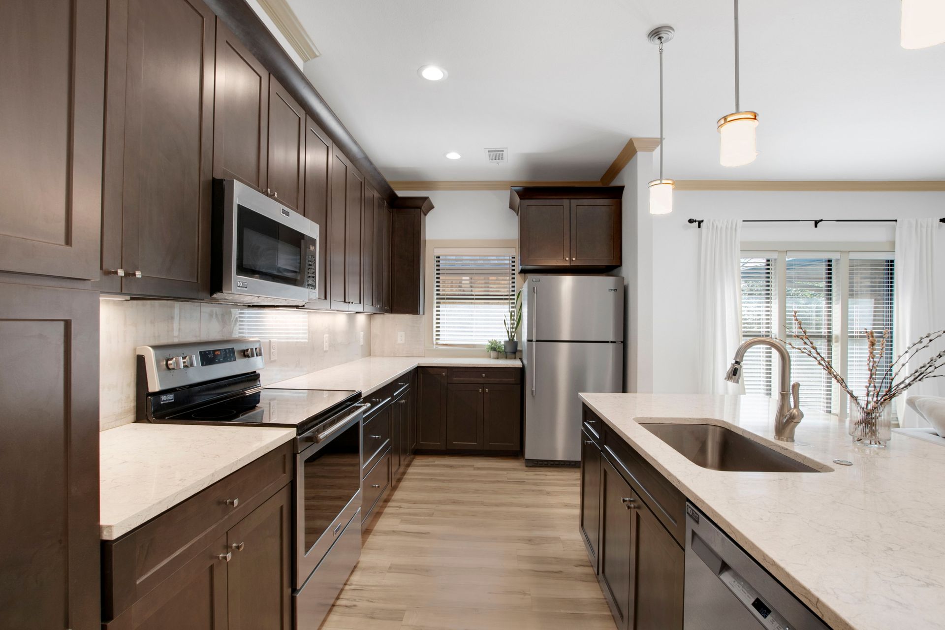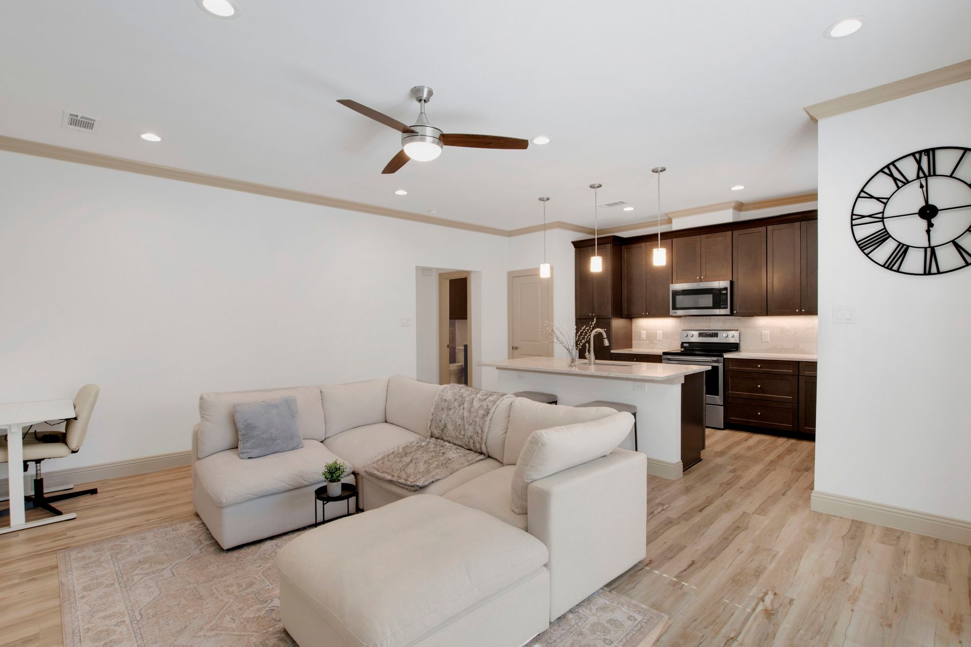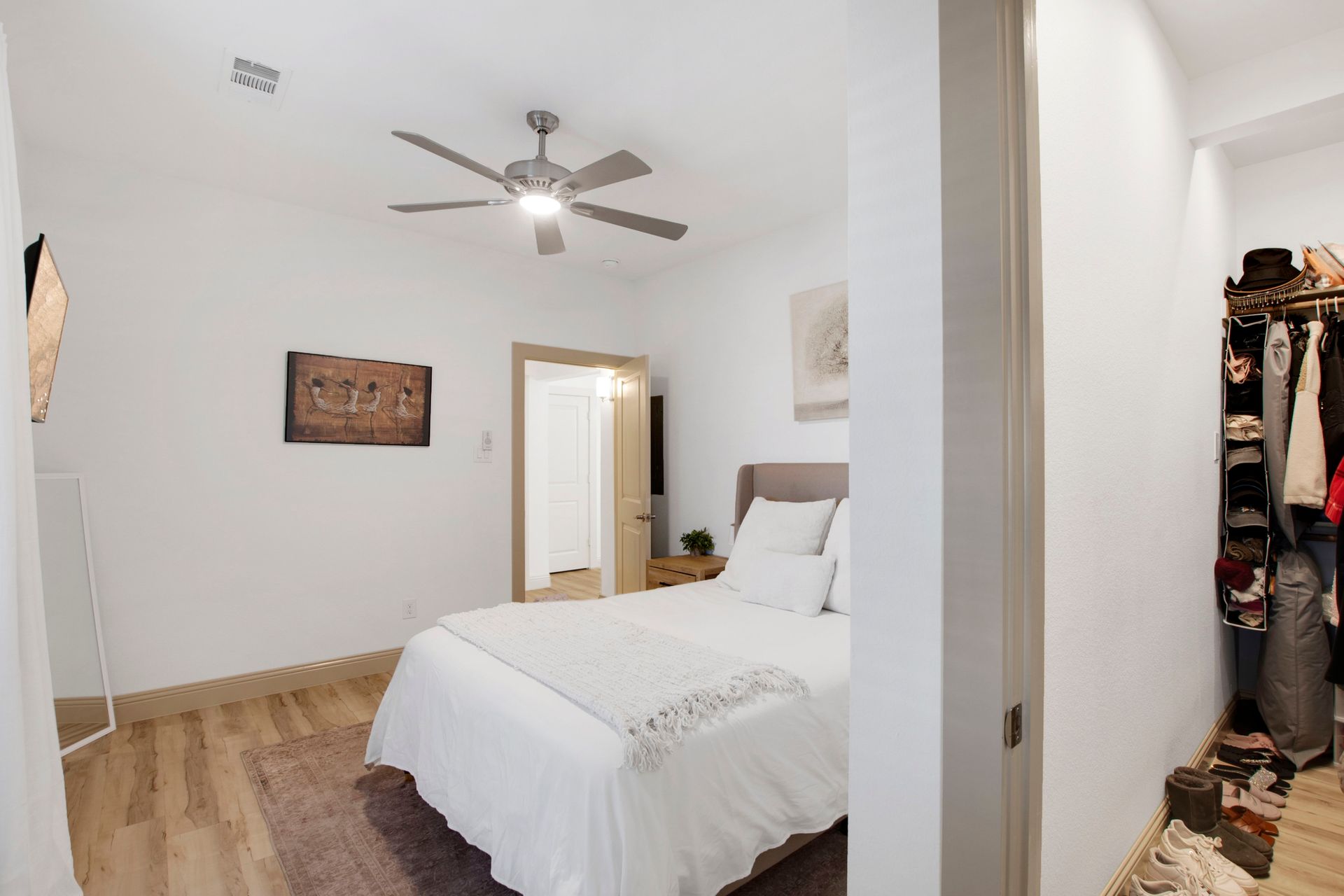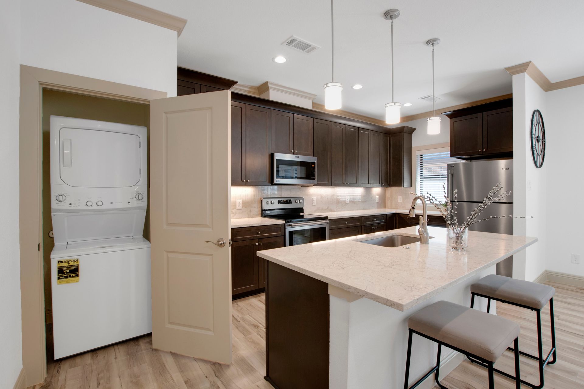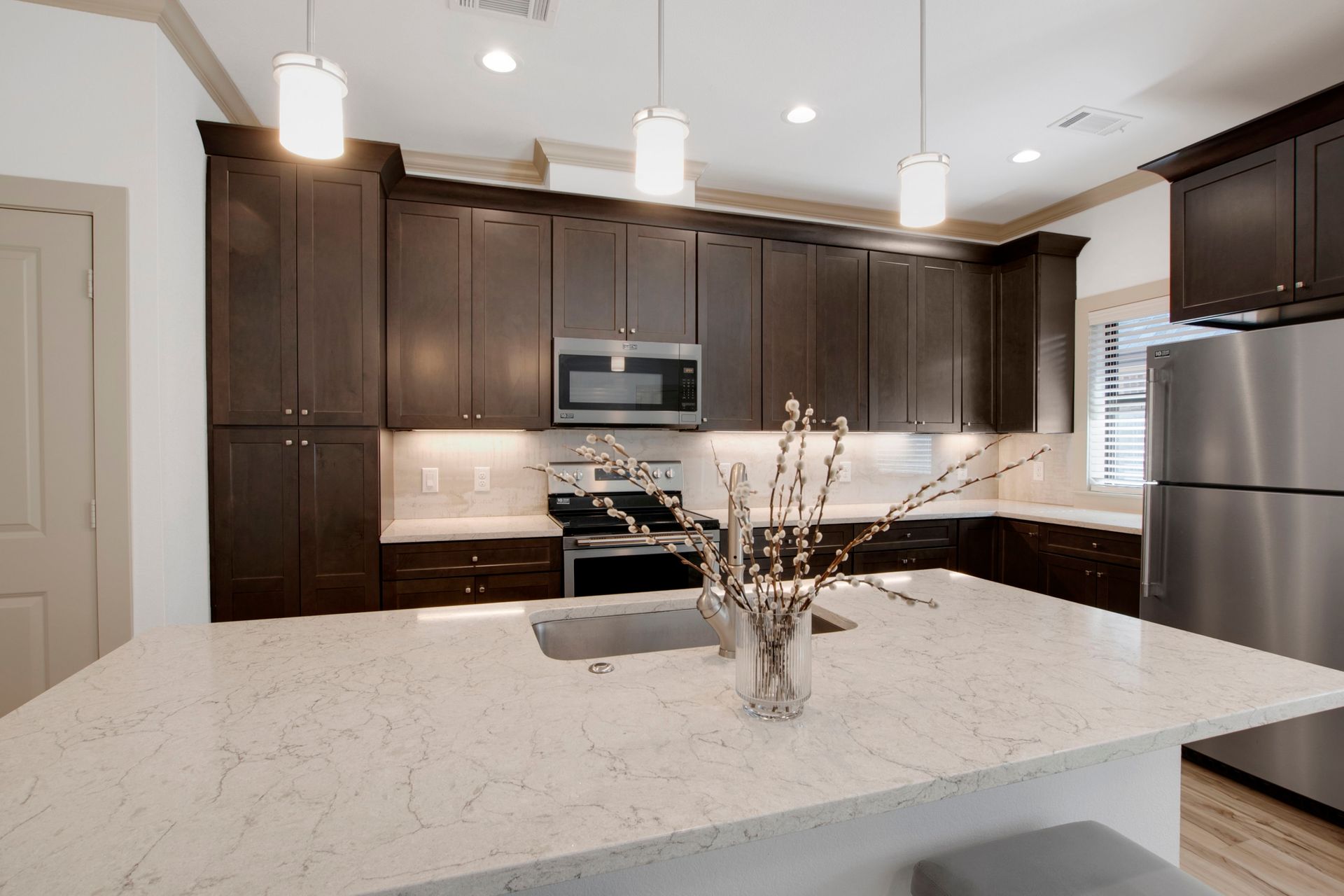 Welcome home to the Best Kept Secret in Preston Hollow, 5800 Royal Lane Condos. This fabulous condo was completely renovated meticulously in 2022 with modern finishes blending luxury and convenience. The spacious open floorplan with high ceilings and crown molding invites a flood of natural light from the large, new energy-efficient windows. The kitchen is a chef's dream, with a beautiful, oversized island, large enough for a breakfast bar, a plethora of upgraded cabinets, lots of counter space, quartz countertops, and stainless steel appliances with refrigerator included. Your primary suite has a large walk-in closet and access to your private balcony. The bathroom is tastefully done with quartz countertops and a luxurious large shower. This condo features a very large hall closet for storage or potential office space! New energy-efficient windows throughout! Washer and dryer included. The HOA dues include all utilities and internet, full access to four swimming pools, landscaping, and blanket exterior insurance. This location can't be beat! Conveniently located near upscale Preston Royal with great dining, shopping, and Central Market! The assigned parking space is a short distance from your front door! Come and join the Welcoming 5800 Royal Lane Community and make this your happy place today!