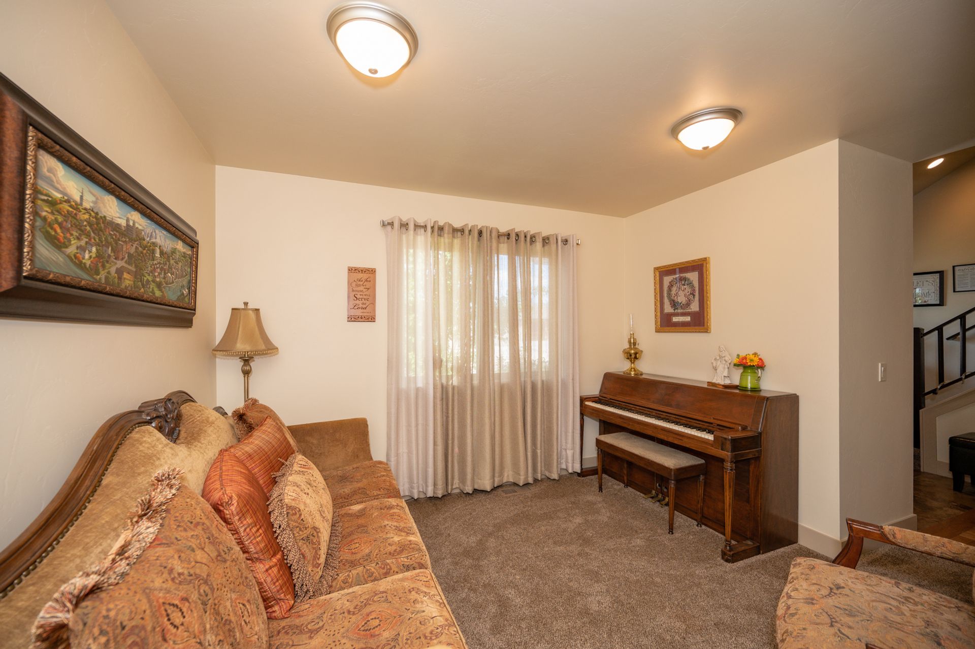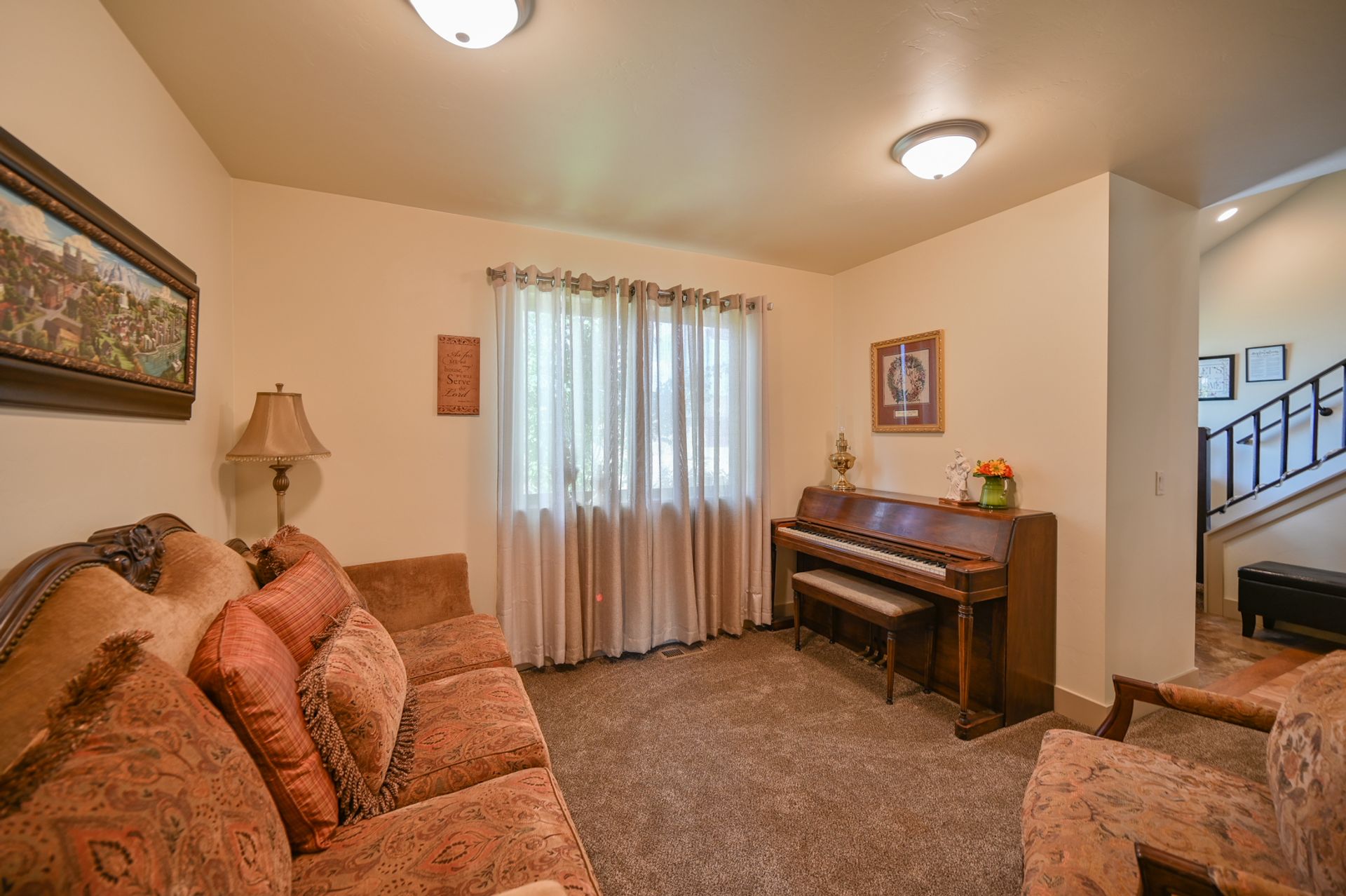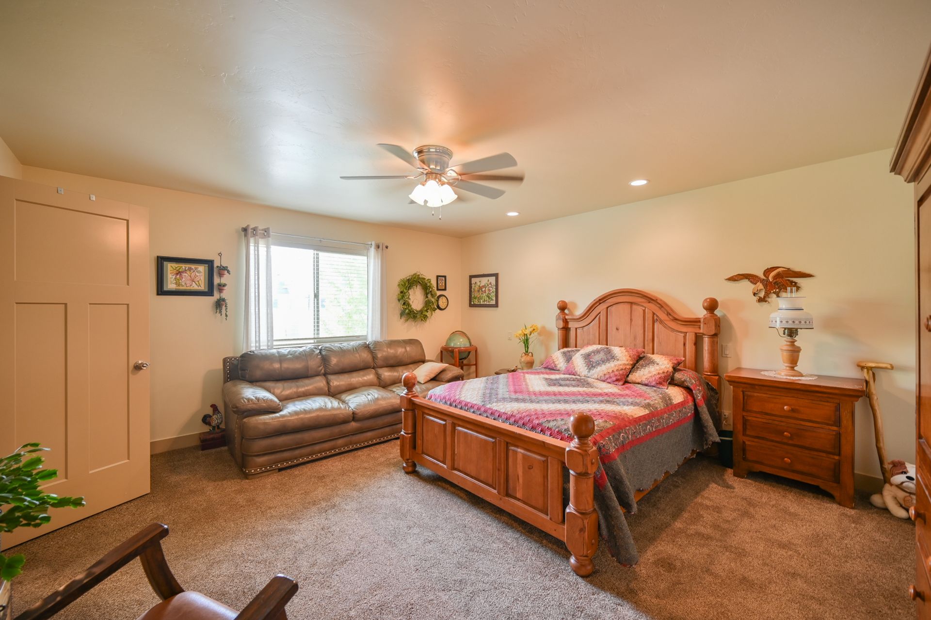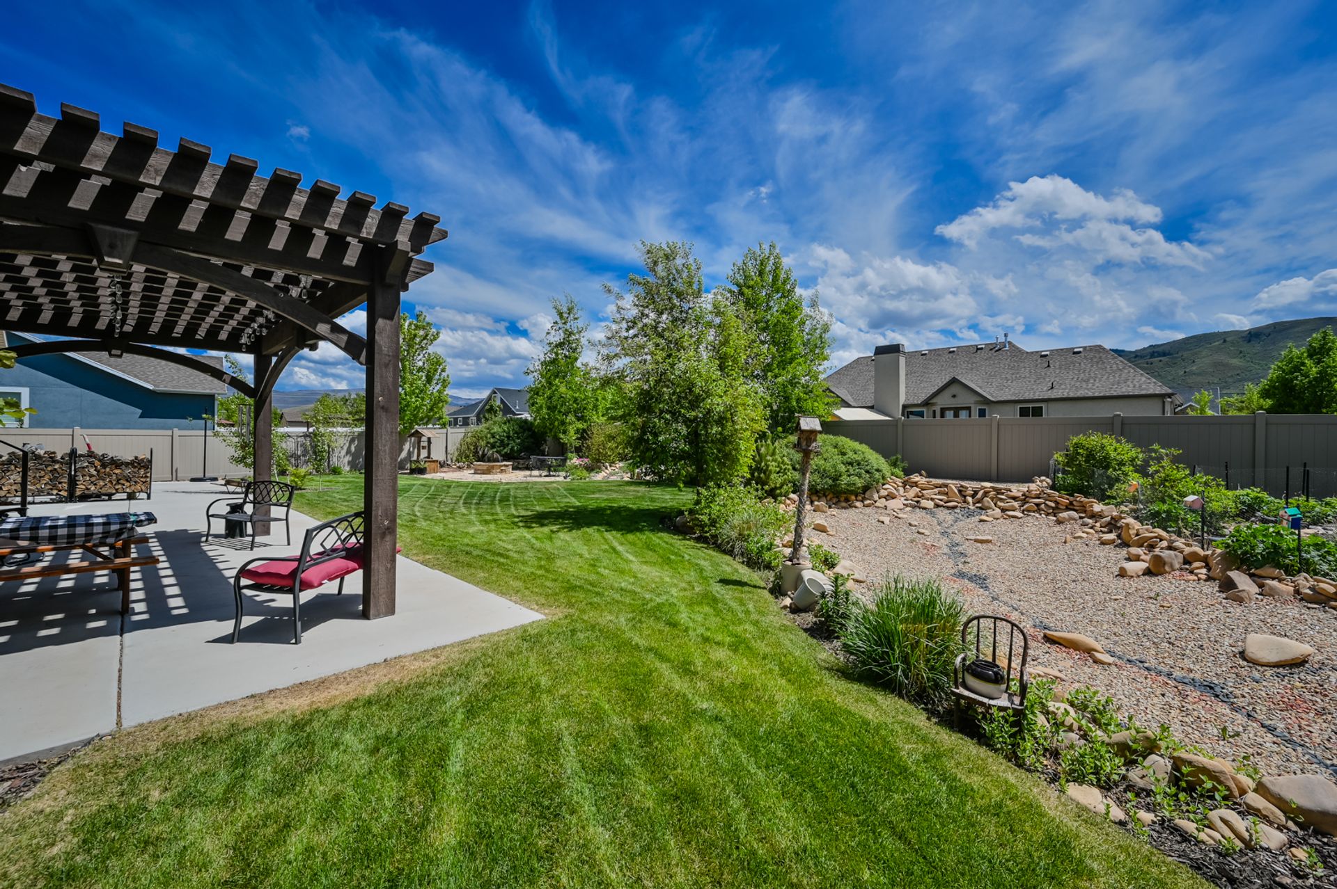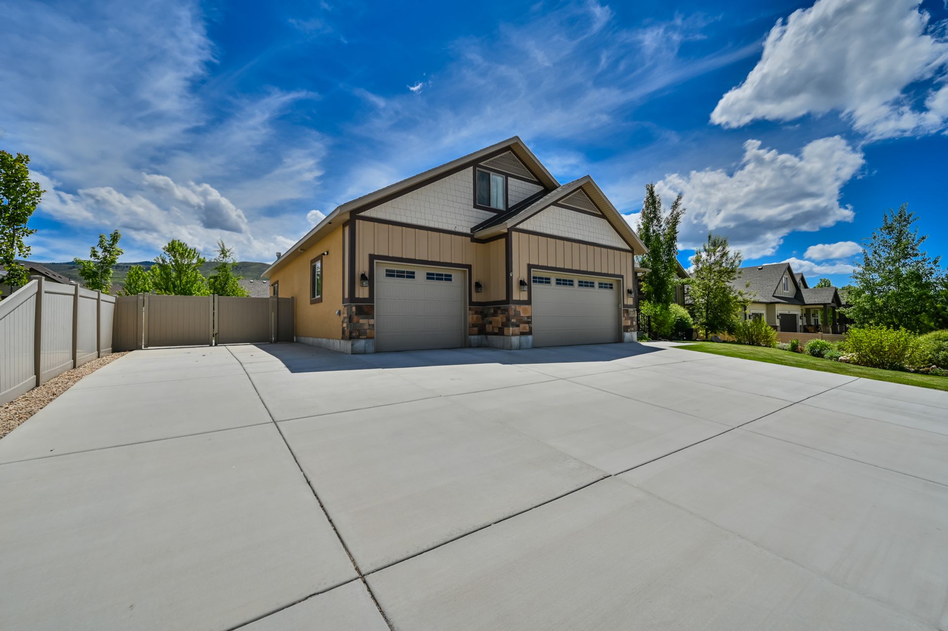 Lovely Heber City Rambler with 1200 sq. ft. bonus room over garage. Open great room * Wonderful engineered hardwood oak floors * Large walk-in pantry * Custom granite countertops throughout * Vaulted family room and kitchen area * Sitting room in front could be another bedroom if needed * Double sinks, double seated shower, vanity in master-suite * Lots of closet storage * Bonus room upstairs has a large family room with an entertainment unit that would stay (not equipment), a full bath and a large bedroom or office/den. Upstairs has its own Carrier heating/air system. Full daylight basement has a bedroom & full bath finished with plenty of room to grow. Huge 3-car garage. Third car bay is double deep tandem, with hot & cold water tap for washing cars as well as a sink. Garage is also heated. $10,000 gorgeous Pergola and $40,000 back yard with wonderful garden area. Wired for Christmas lights. Huge RV pad is also an upgrade provided. Minutes from world class skiing, Blue ribbon fishing & boating at Jordanelle & Deer Creek Reservoirs plus Championship golf. Don't miss out on this great home!