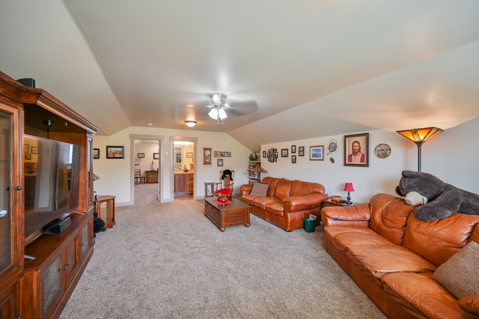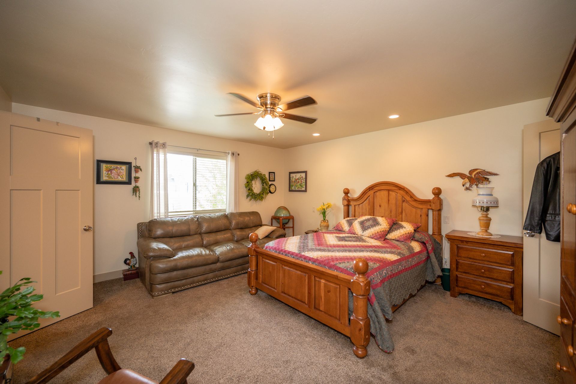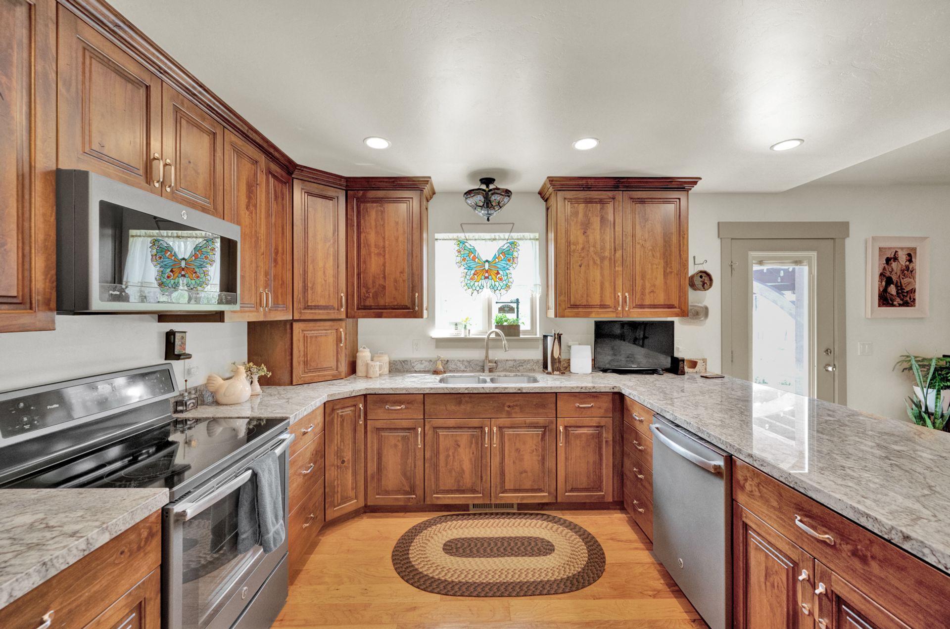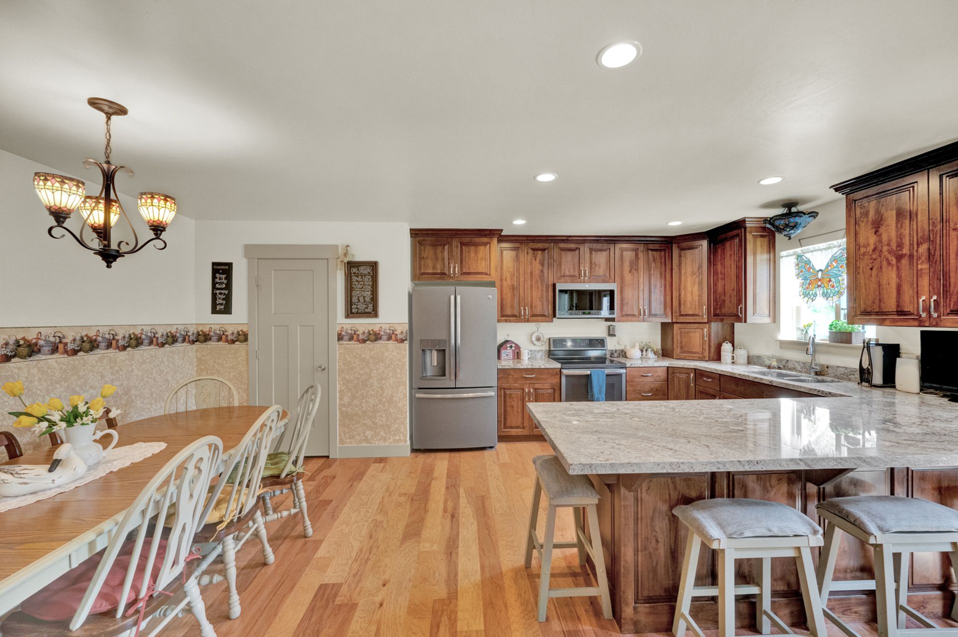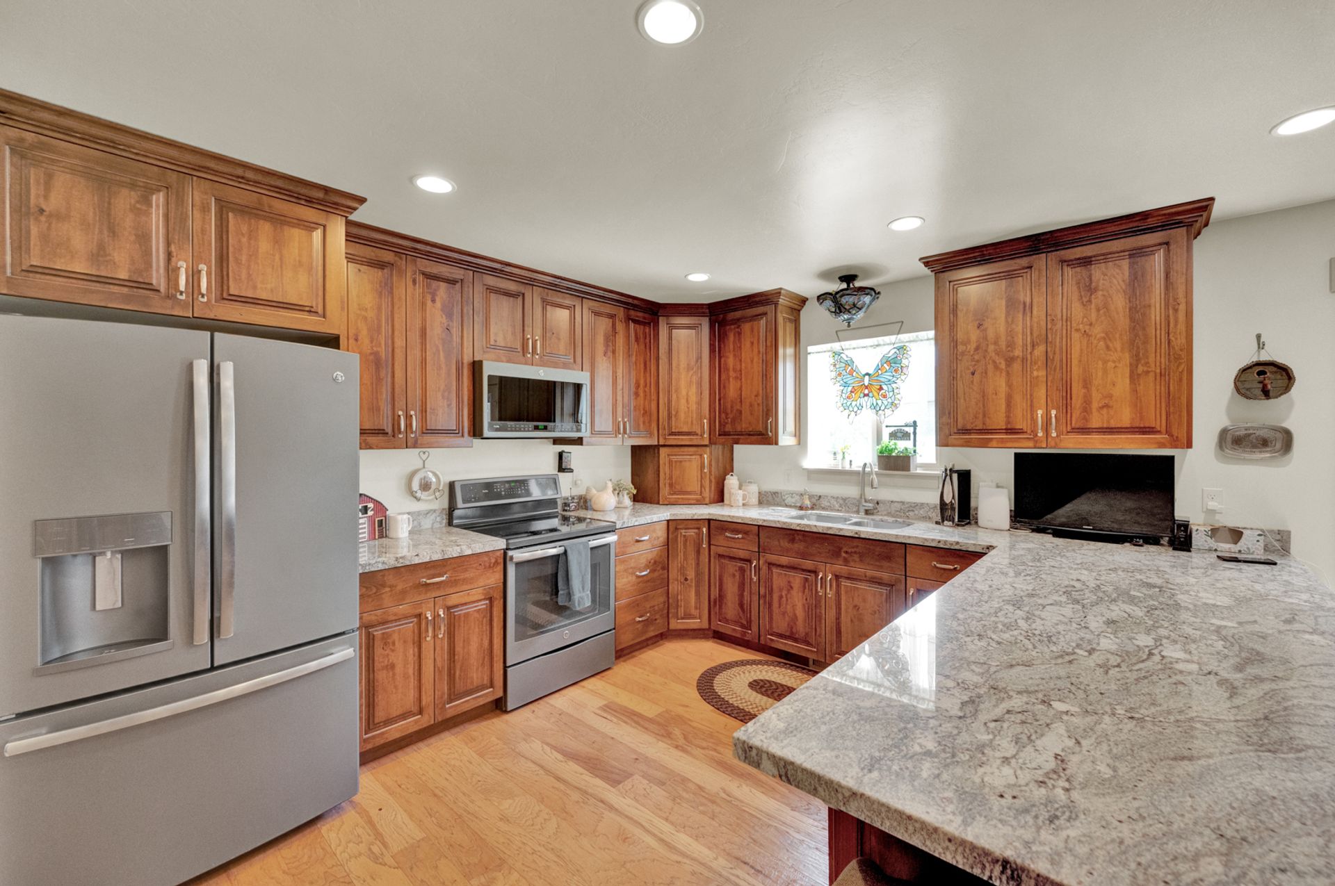 Lovely Heber City Rambler with 1200 sq. ft. bonus room over garage. Open great room * Wonderful engineered hardwood oak floors * Large walk-in pantry * Custom granite countertops throughout * Vaulted family room and kitchen area * Sitting room in front could be another bedroom if needed * Double sinks, double seated shower, vanity in master-suite * Lots of closet storage * Bonus room upstairs has a large family room with an entertainment unit that would stay (not equipment), a full bath and a large bedroom or office/den. Upstairs has its own Carrier heating/air system. Full daylight basement has a bedroom & full bath finished with plenty of room to grow. Huge 3-car garage. Third car bay is double deep tandem, with hot & cold water tap for washing cars as well as a sink. Garage is also heated. $10,000 gorgeous Pergola and $40,000 back yard with wonderful garden area. Wired for Christmas lights. Huge RV pad is also an upgrade provided. Minutes from world class skiing, Blue ribbon fishing & boating at Jordanelle & Deer Creek Reservoirs plus Championship golf. Don't miss out on this great home!