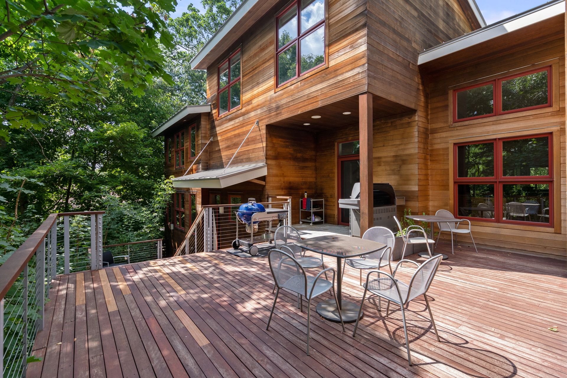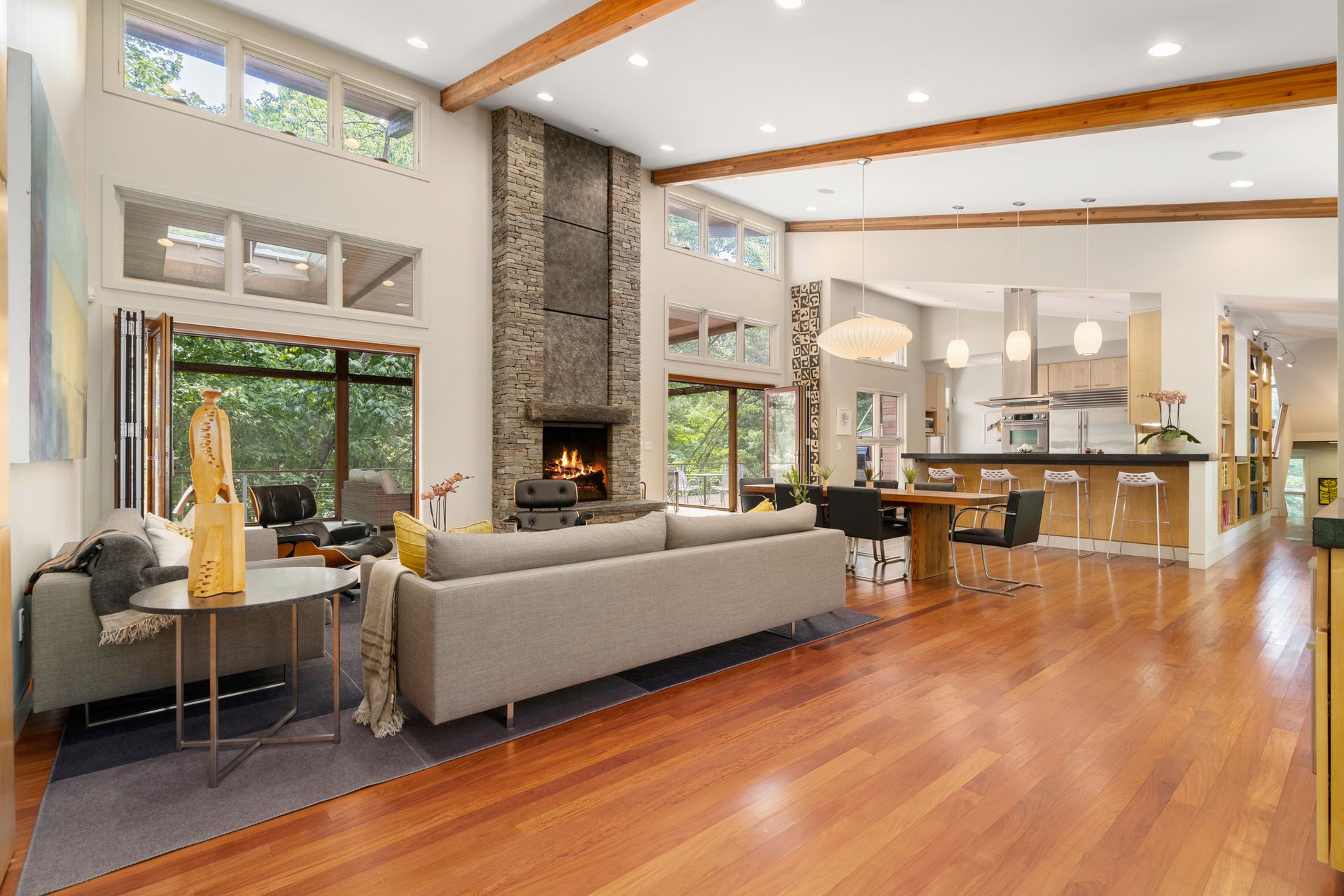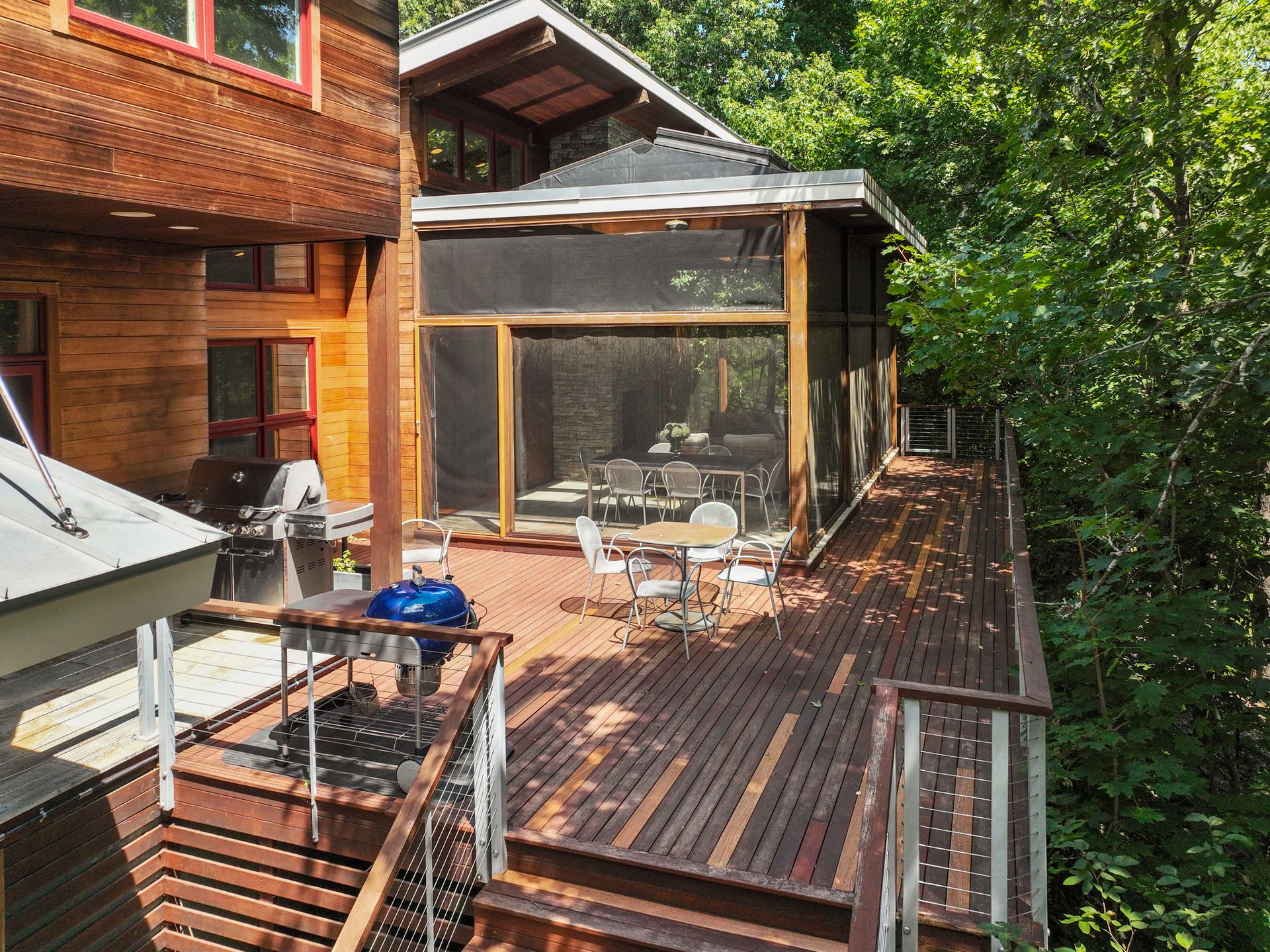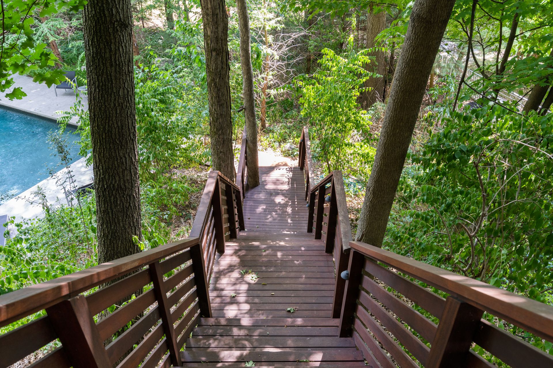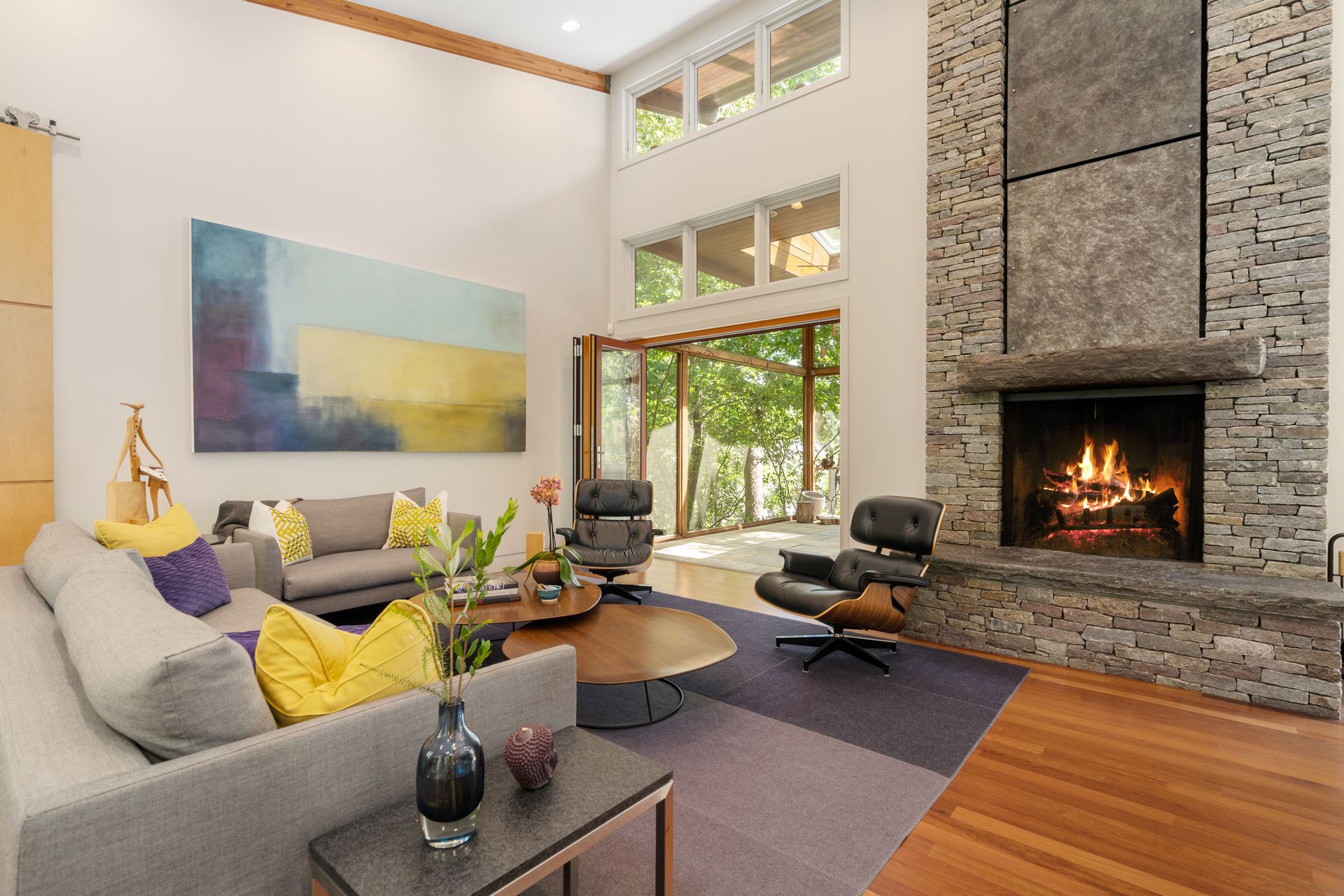 Stunning Multi-level modern home located in desirable Newton Highlands. This one-of-a-kind 2010 custom built house sits in a secluded cul-de-sac on an approximately .74 acre lot surrounded by tall trees. Beautifully designed to incorporate tasteful architectural features throughout. This amazing home rivals the most elegant New England mountain resorts with tree top wooded views and inviting heated swimming pool offering a peaceful oasis. Contemporary open floor plan featuring fabulous living and dining space that is designed with dramatic high ceiling and a double-sided fireplace that leads through glass doors to the magnificent screened sun room with a beautiful privacy overlooking the tall trees. Outdoor living doesn't stop there, enjoy the open feel of the two-level deck on your way down for a dip in the heated pool and backyard area. Spectacular gourmet kitchen with concrete counter tops and high end appliances. Also on this level is a guest bedroom and home office. The upper levels include an impressive primary suite, plus two additional generous size bedrooms and laundry room. The lower level offers a recreation/family room with a wet bar and a separate gym, full bath and storage.