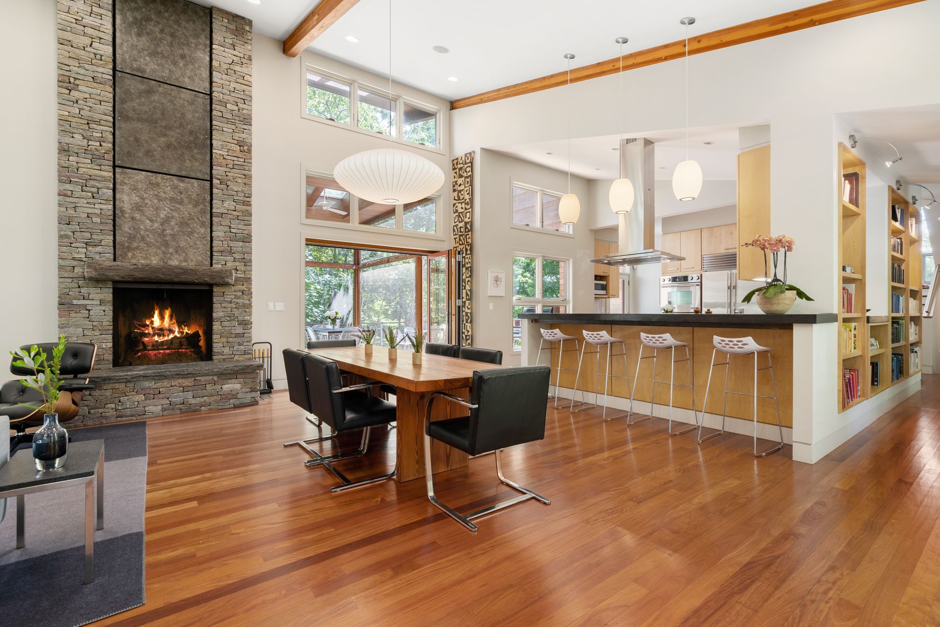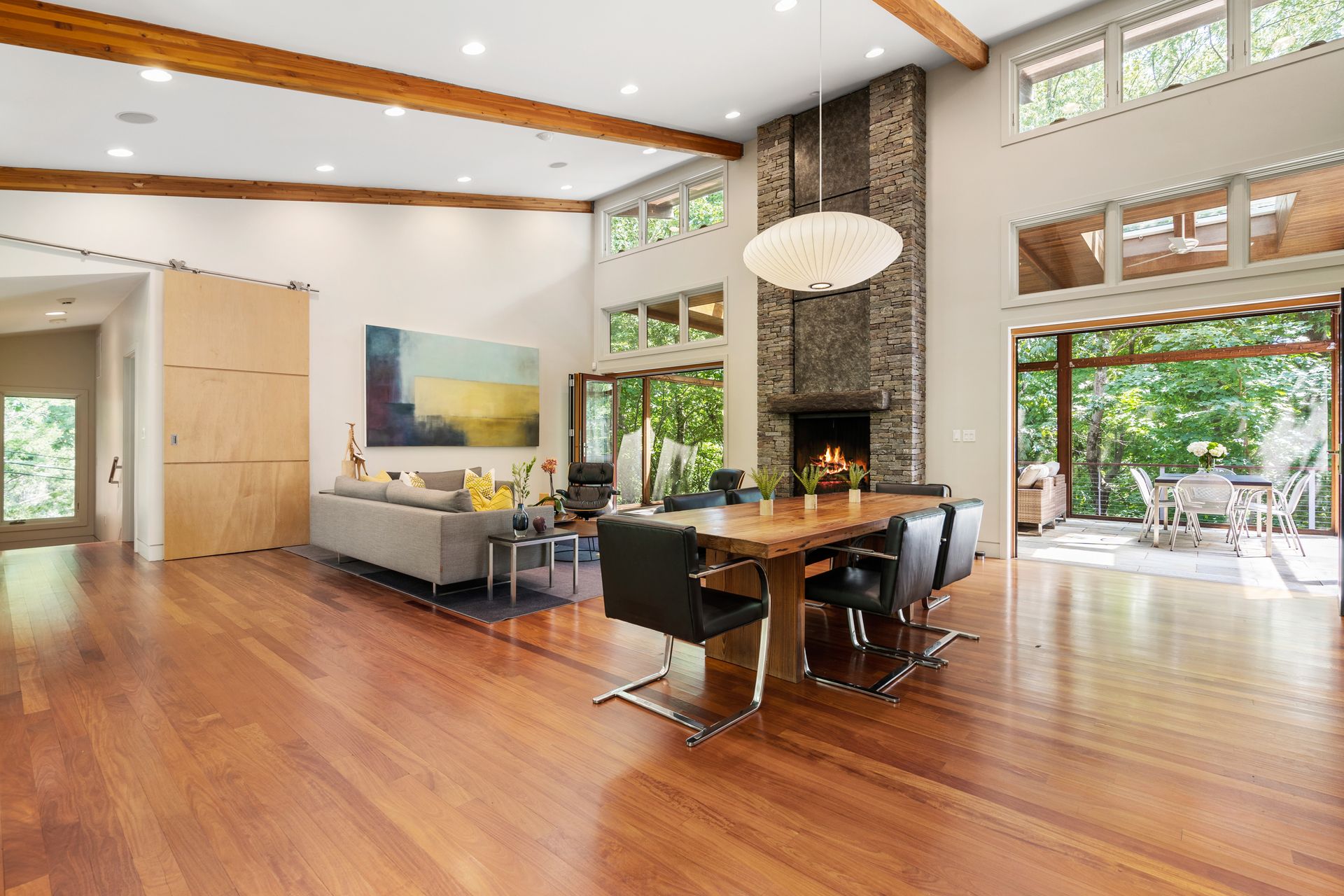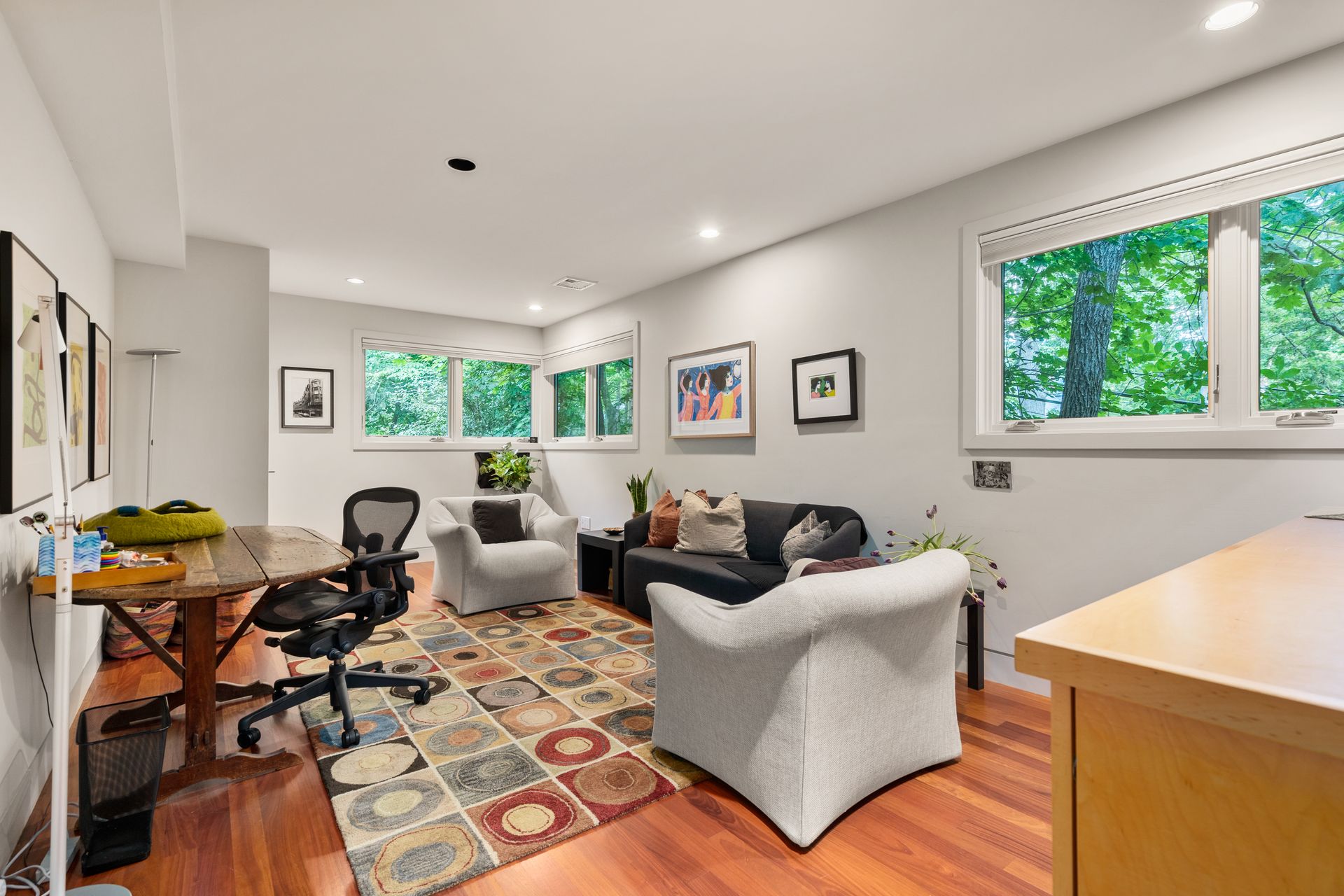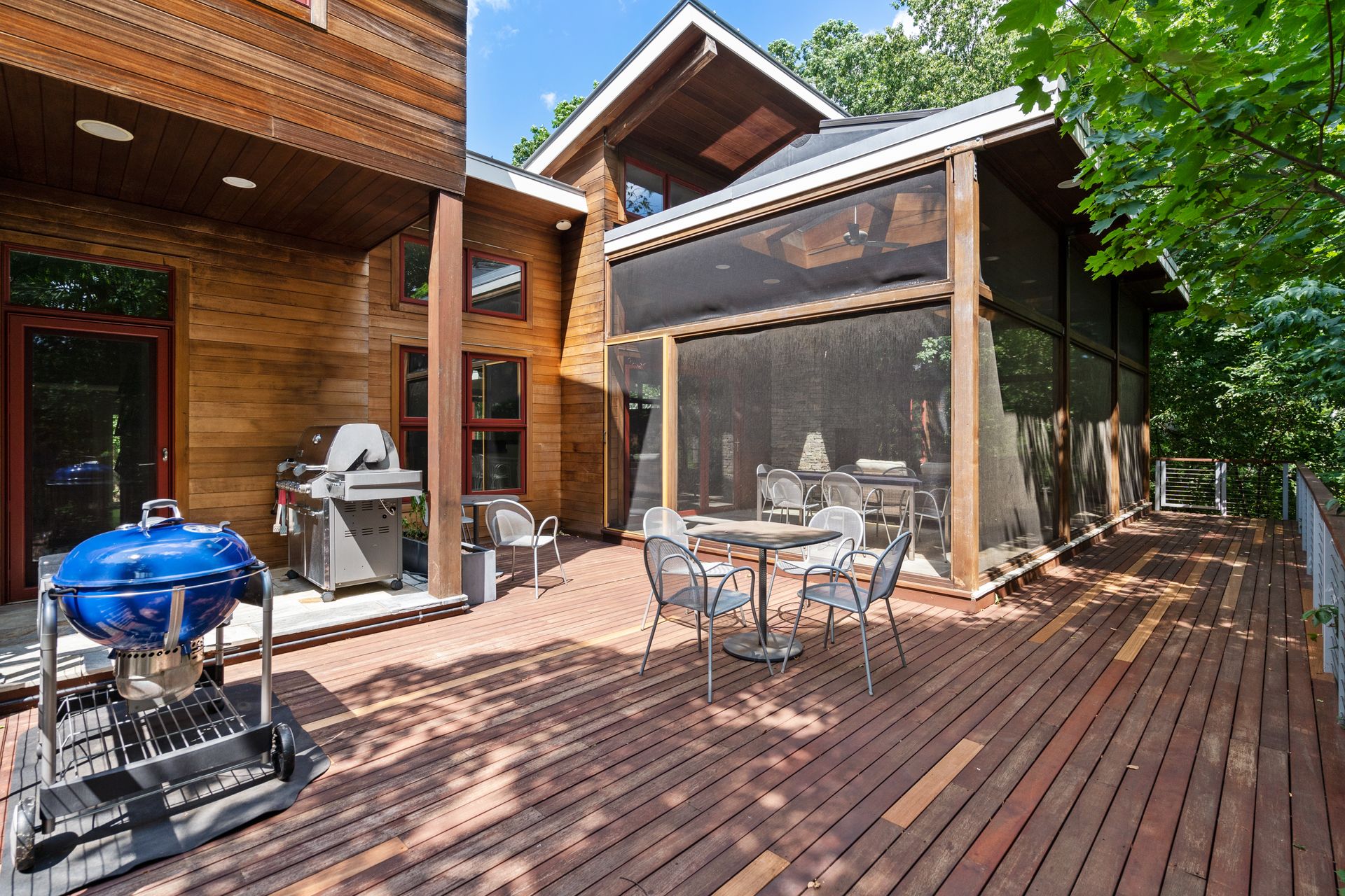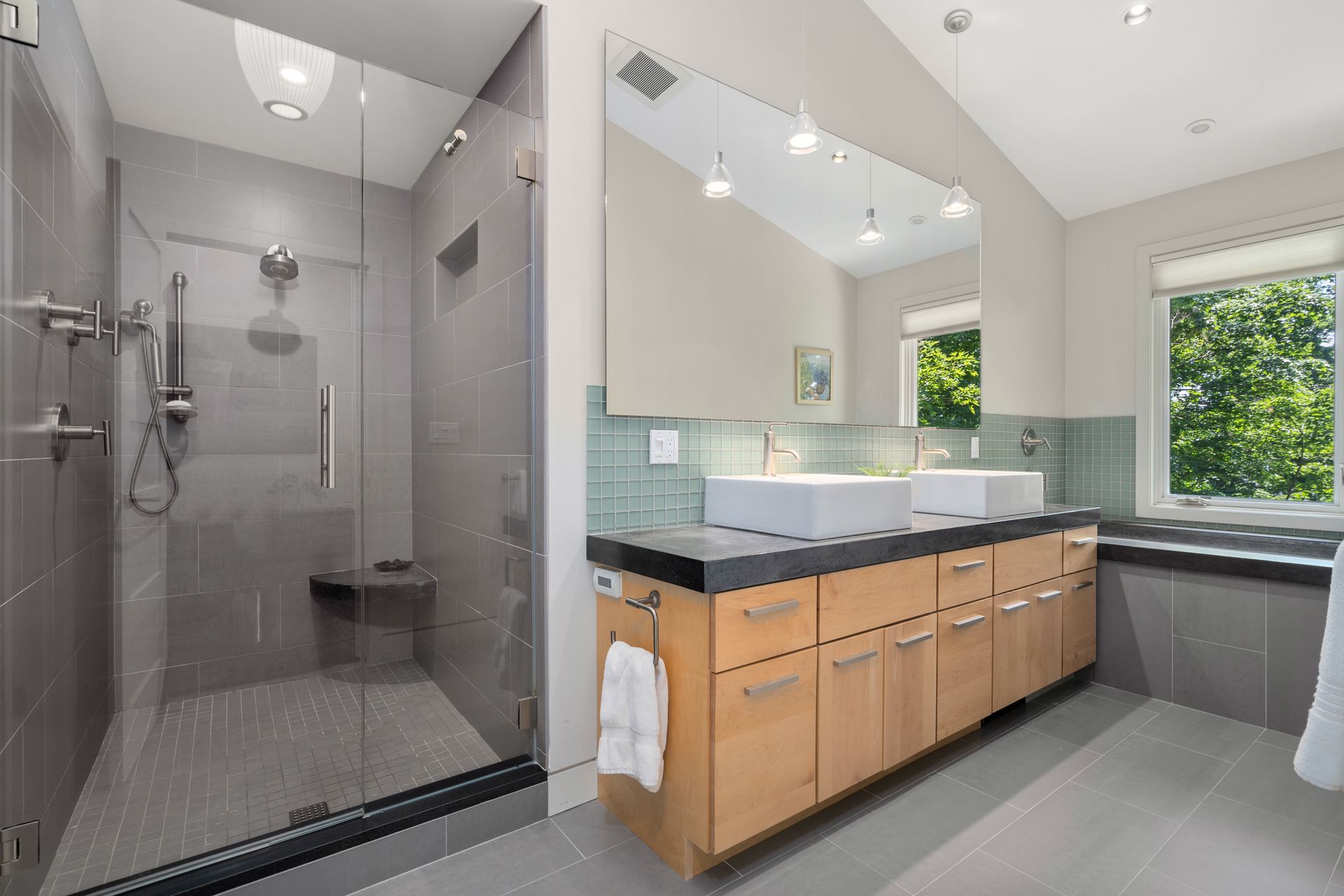 Stunning Multi-level modern home located in desirable Newton Highlands. This one-of-a-kind 2010 custom built house sits in a secluded cul-de-sac on an approximately .74 acre lot surrounded by tall trees. Beautifully designed to incorporate tasteful architectural features throughout. This amazing home rivals the most elegant New England mountain resorts with tree top wooded views and inviting heated swimming pool offering a peaceful oasis. Contemporary open floor plan featuring fabulous living and dining space that is designed with dramatic high ceiling and a double-sided fireplace that leads through glass doors to the magnificent screened sun room with a beautiful privacy overlooking the tall trees. Outdoor living doesn't stop there, enjoy the open feel of the two-level deck on your way down for a dip in the heated pool and backyard area. Spectacular gourmet kitchen with concrete counter tops and high end appliances. Also on this level is a guest bedroom and home office. The upper levels include an impressive primary suite, plus two additional generous size bedrooms and laundry room. The lower level offers a recreation/family room with a wet bar and a separate gym, full bath and storage.