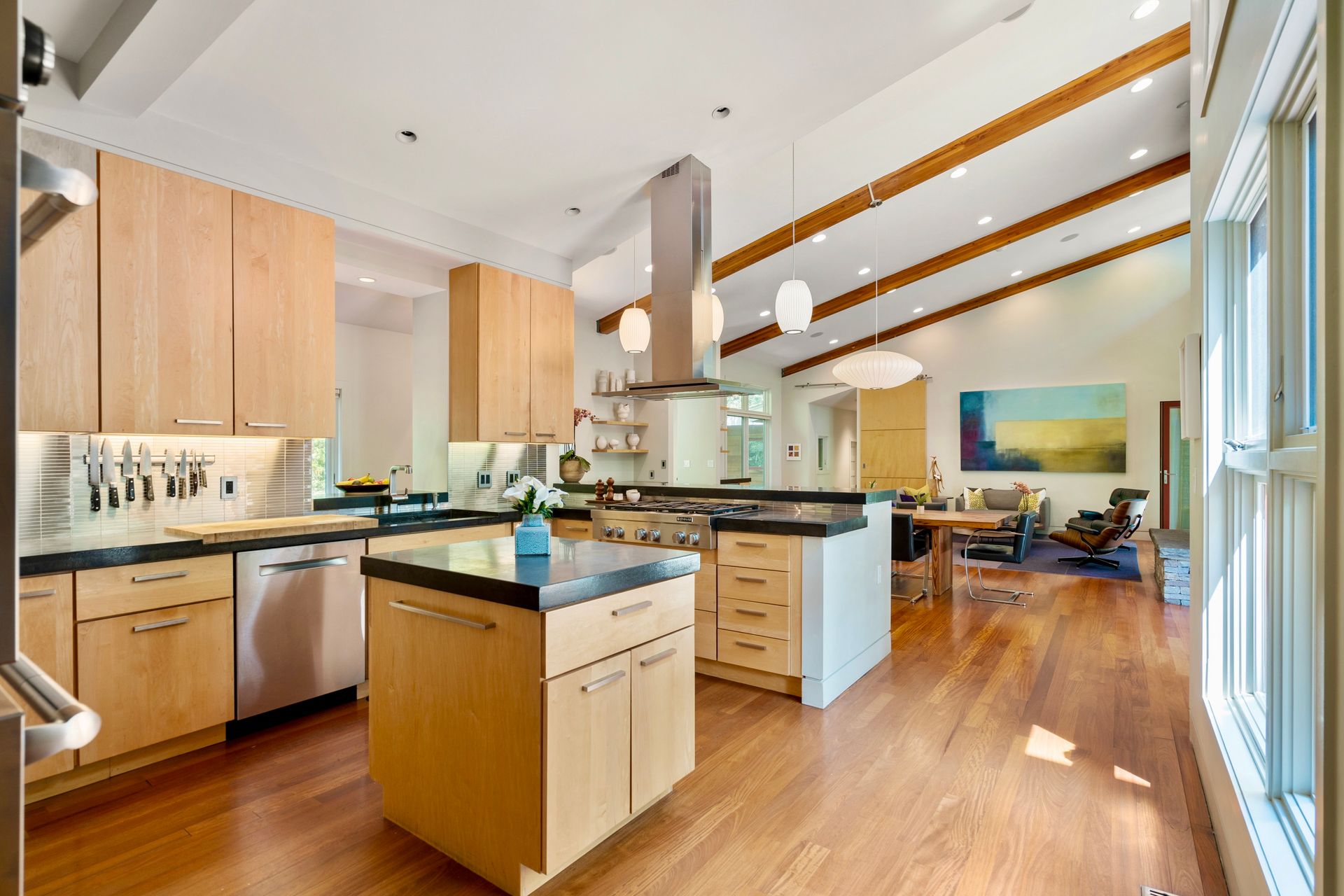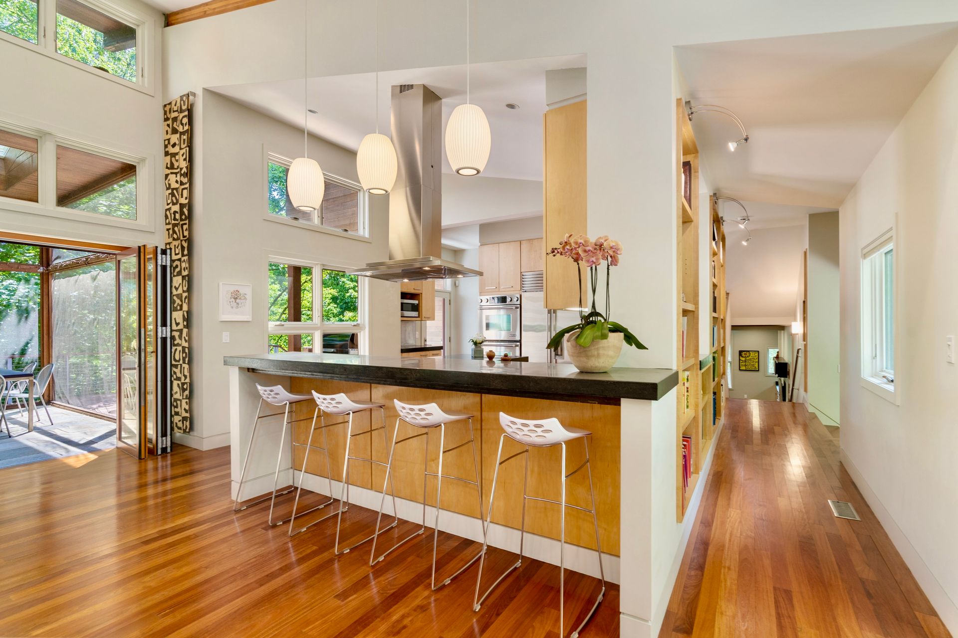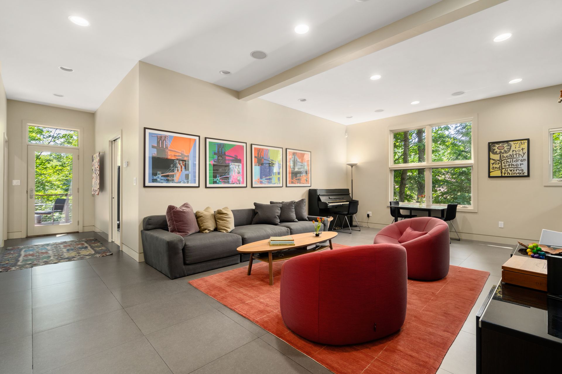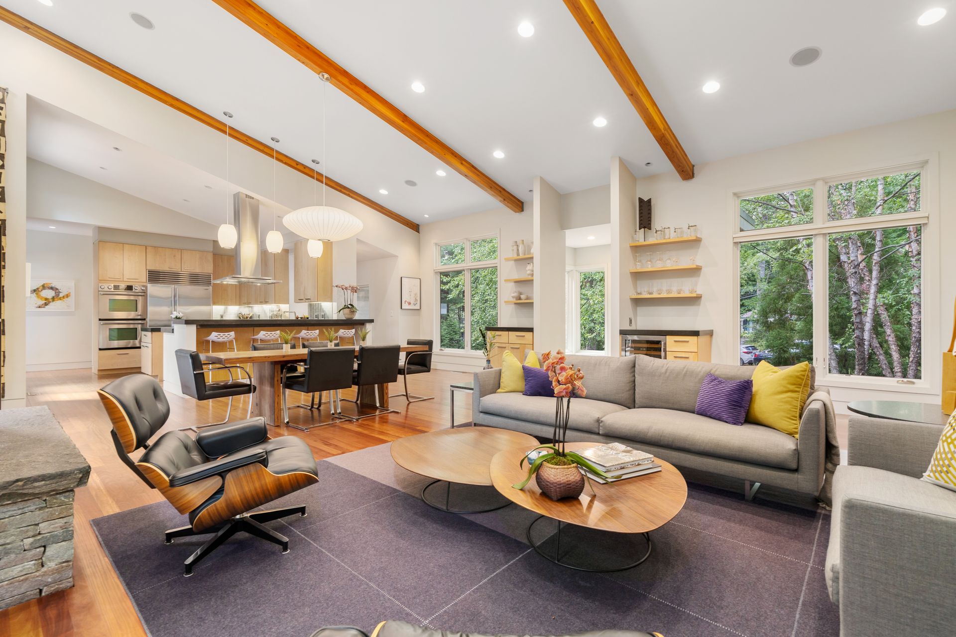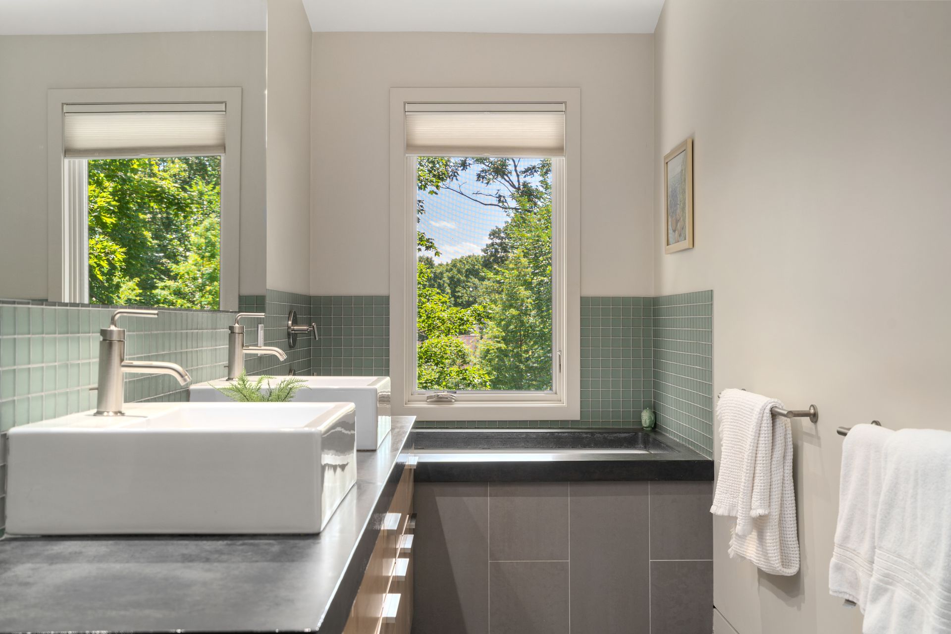 Stunning Multi-level modern home located in desirable Newton Highlands. This one-of-a-kind 2010 custom built house sits in a secluded cul-de-sac on an approximately .74 acre lot surrounded by tall trees. Beautifully designed to incorporate tasteful architectural features throughout. This amazing home rivals the most elegant New England mountain resorts with tree top wooded views and inviting heated swimming pool offering a peaceful oasis. Contemporary open floor plan featuring fabulous living and dining space that is designed with dramatic high ceiling and a double-sided fireplace that leads through glass doors to the magnificent screened sun room with a beautiful privacy overlooking the tall trees. Outdoor living doesn't stop there, enjoy the open feel of the two-level deck on your way down for a dip in the heated pool and backyard area. Spectacular gourmet kitchen with concrete counter tops and high end appliances. Also on this level is a guest bedroom and home office. The upper levels include an impressive primary suite, plus two additional generous size bedrooms and laundry room. The lower level offers a recreation/family room with a wet bar and a separate gym, full bath and storage.