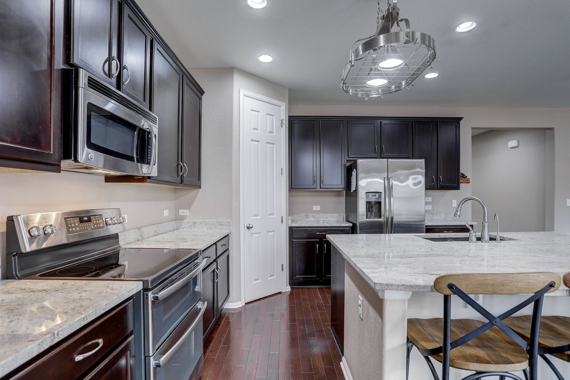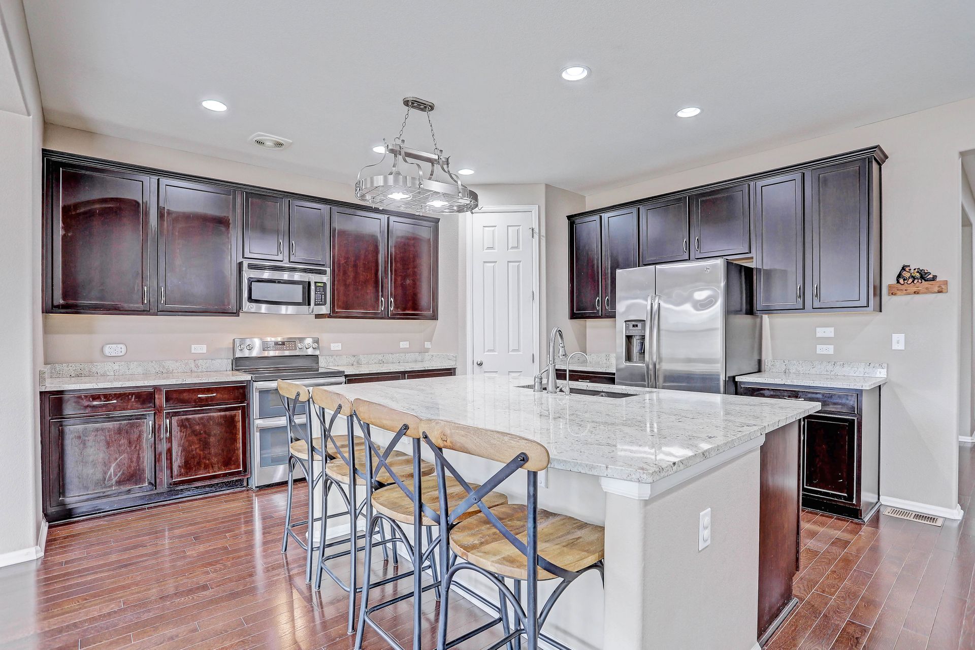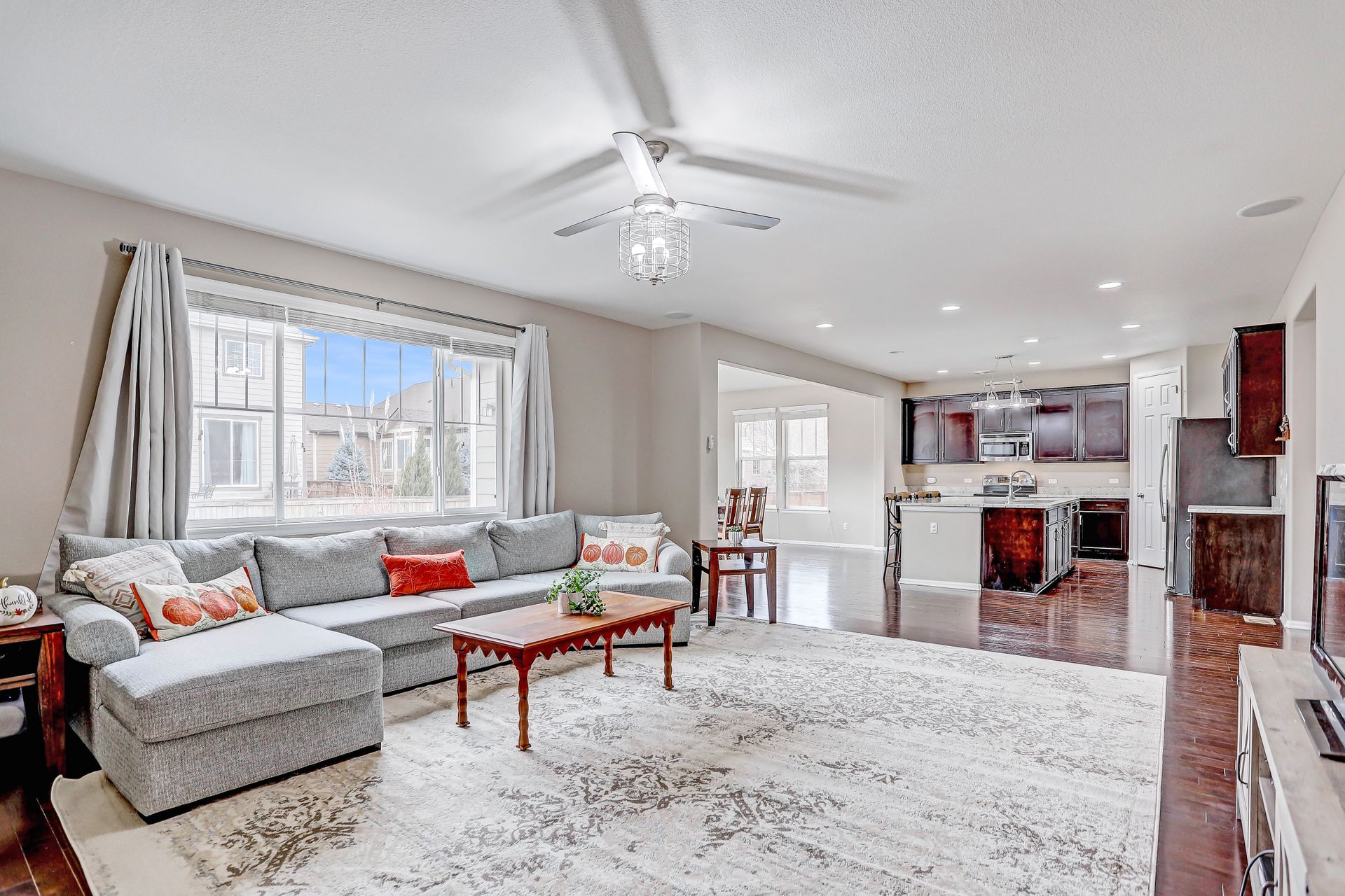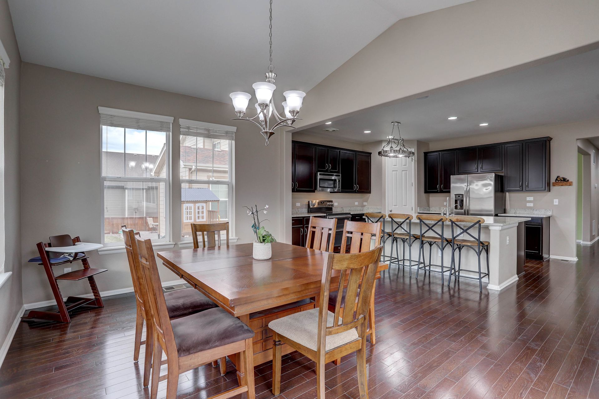 Amazing ranch style home located in the quiet Reunion neighborhood. Head into the bright and open home featuring upgrades throughout. From the flowing wood flooring to the eight-foot doors and ten-foot ceilings, this spacious inviting home is welcoming. The gourmet kitchen is a chef's dream with all stainless appliances, a walk-in pantry, huge kitchen island with sink, extensive stone counters and more. The kitchen opens onto a bright and cheery sunroom/dining space along with a spacious family room with a gas fireplace. The master suite features a recessed ceiling, ceiling fan, walk-in closet and luxurious five-piece bath. The main plan also includes a formal dining/flex space, two more bedrooms, a full bath and laundry. Downstairs features an open floor plan with space for games, a TV viewing space and more. Fourth bedroom, a three-quarter bath and storage space complete the lower level. Exit outside onto a concrete patio and enjoy a gorgeous fully fenced backyard. The three-car garage has high ceilings for additional storage! Two blocks away from Reunion Park with expansive green space and the community pool! Close to the elementary school. The home is perfect for entertaining! Looks almost new and is ready for you!