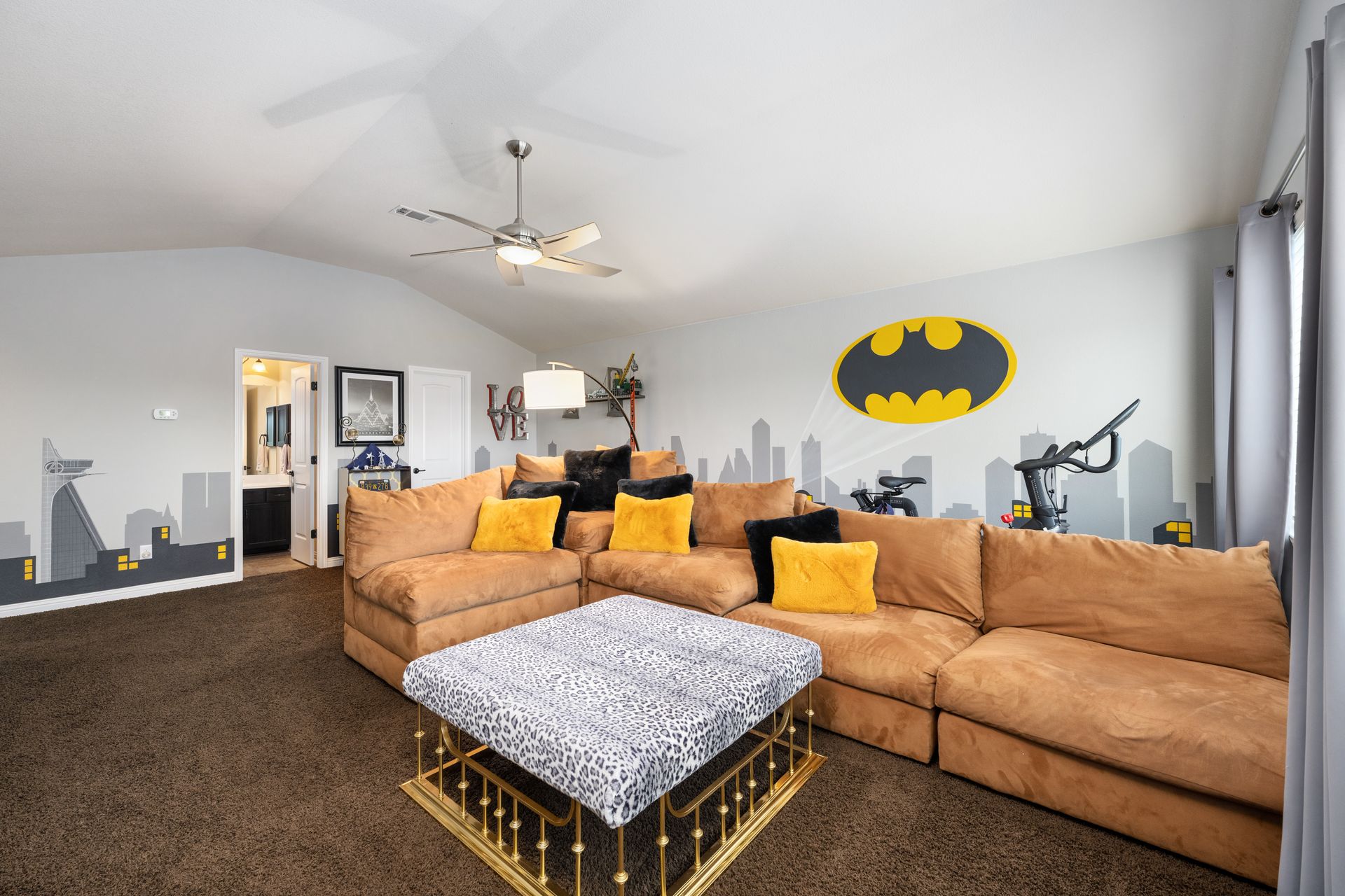 The living room features a cozy fireplace, creating a warm and inviting atmosphere for relaxation. Upstairs, you'll find a media/game room, ideal for entertaining guests. With five bedrooms and three and a half baths, including a main-level owner's suite, this home offers abundant space and privacy for all home buyers and their guests.