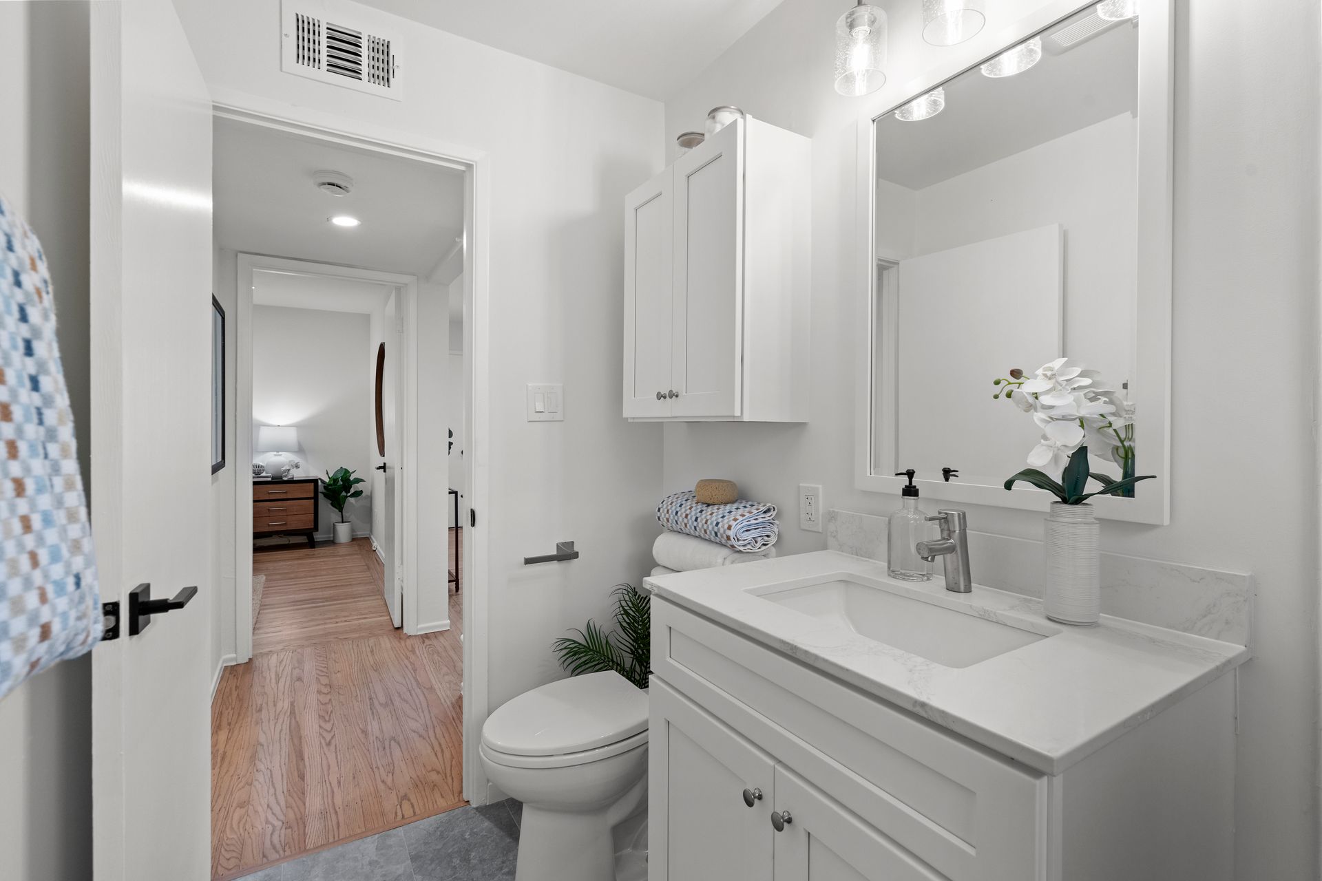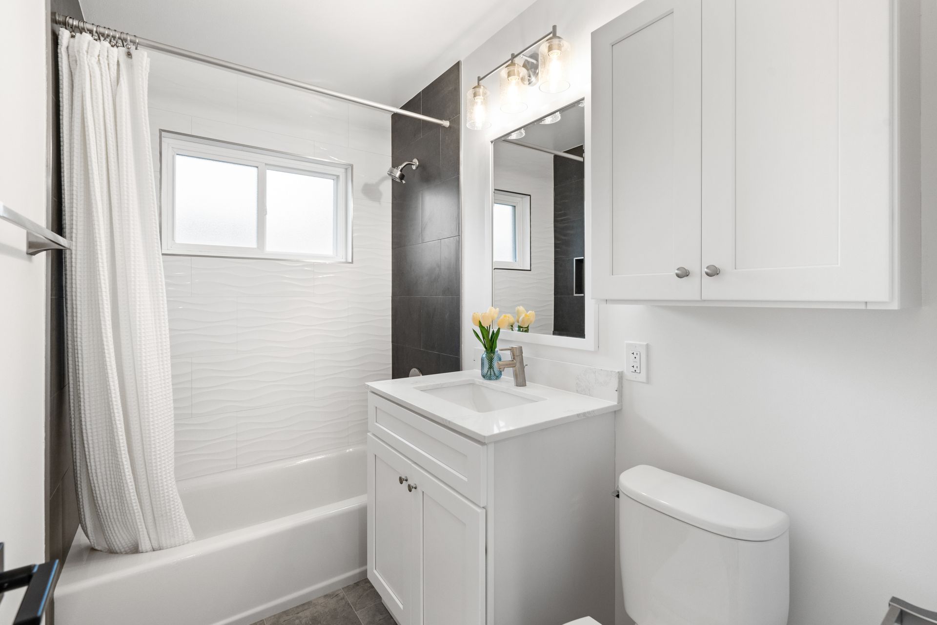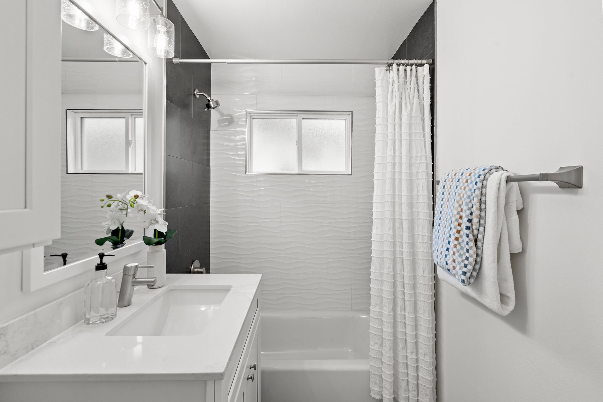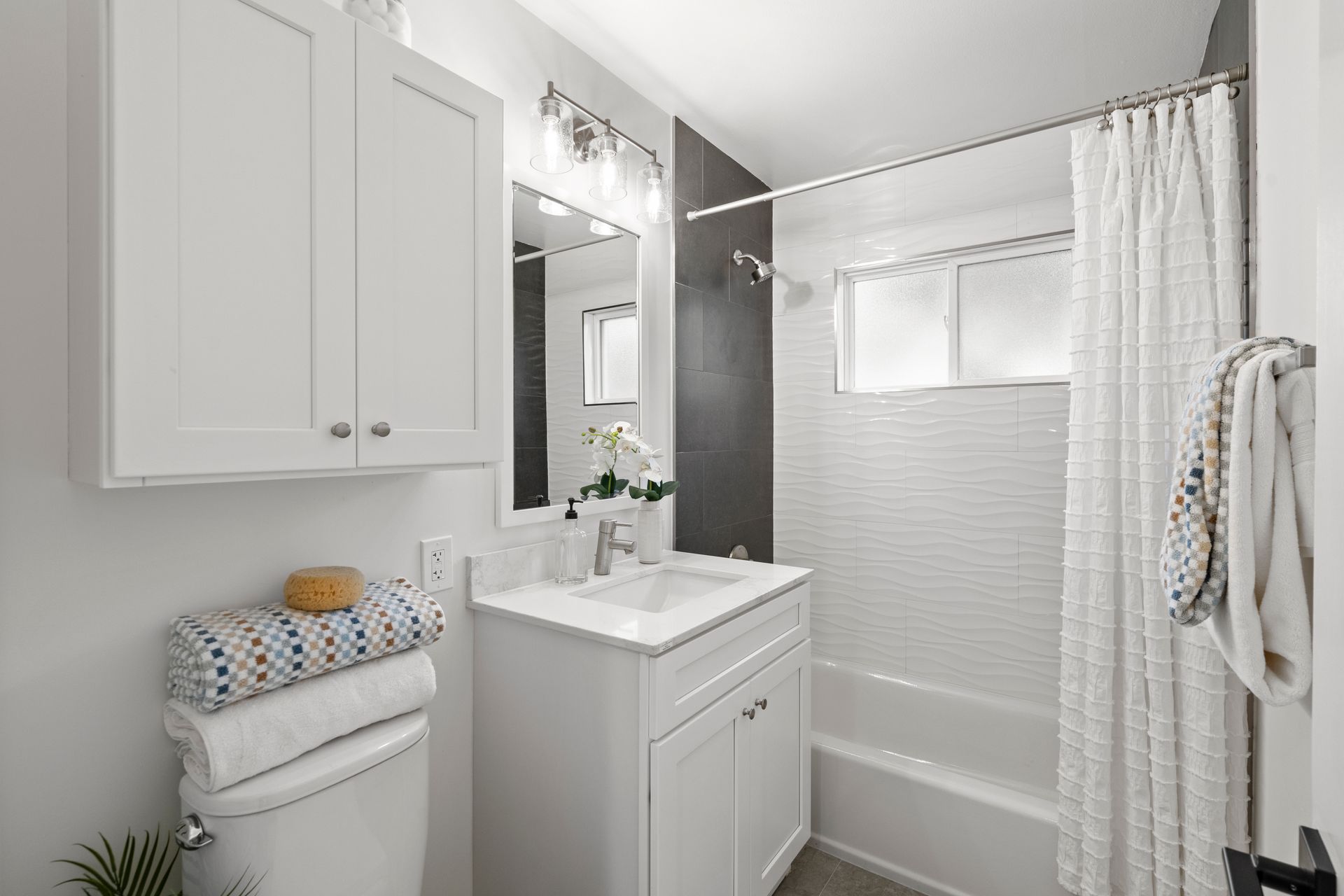 · Sparkling bathrooms with shower over tub, freshly tiled floors and vanities