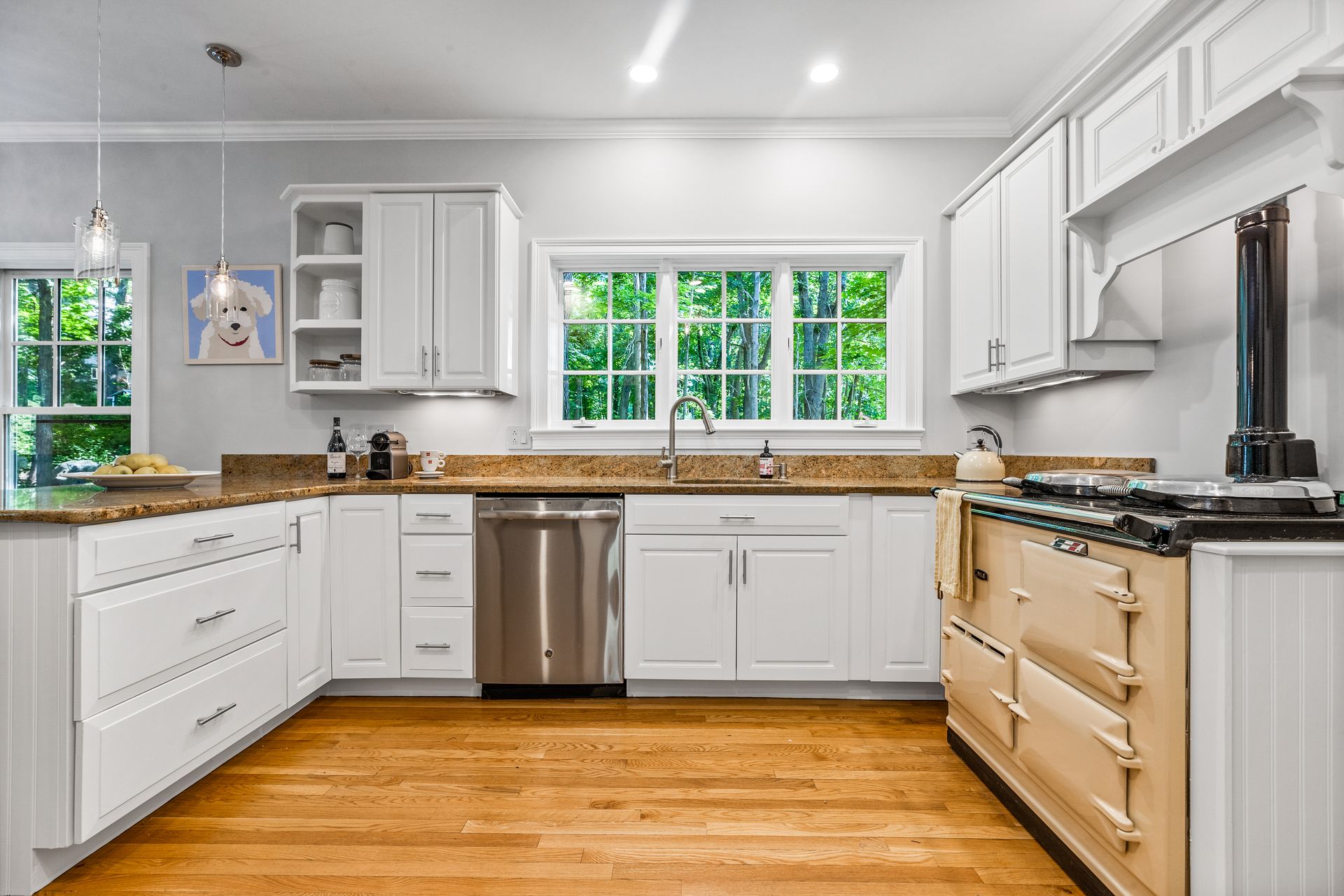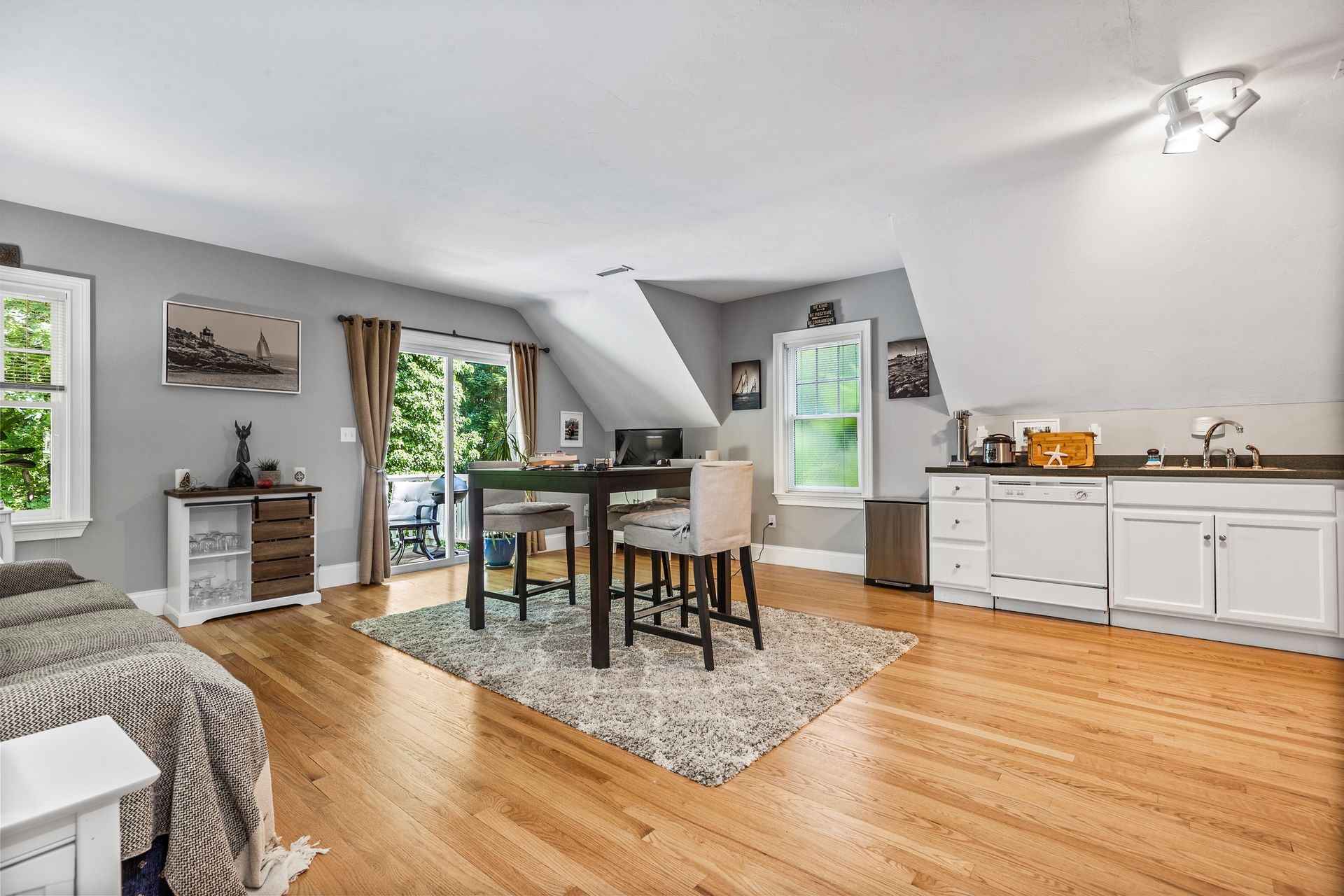 North Scituate stunner with privacy galore! This custom-built shingle-style home serves Beacon Hill flair! The fabulous designer kitchen with custom cabinets and an AGA oven imported from Ireland are not to be missed. Granite countertops and stainless-steel appliances, as well as a beautiful butler's pantry. The dining room opens to a gorgeous living room with a gas fireplace and bookcase. Sliders onto a large deck overlook a private yard. There’s an option for a first-floor bedroom, office or playroom. The second floor boasts a stunning primary suite with dual closets and a gorgeous bath. Two large bedrooms and a full bath complete this floor. The surprising third floor can be multi-use, think office or playroom and two additional bedrooms. Gleaming hardwood floors. Renovated bathrooms and elegant lighting throughout. There’s ample closet space, nine-foot ceilings and a walk-out lower level with more space to enjoy. The sale includes an approximately 2,500 square-foot barn with a huge garage bay and a guest suite. It shows as single-family but is a condex. This is a must-see! Close to the train and village.
