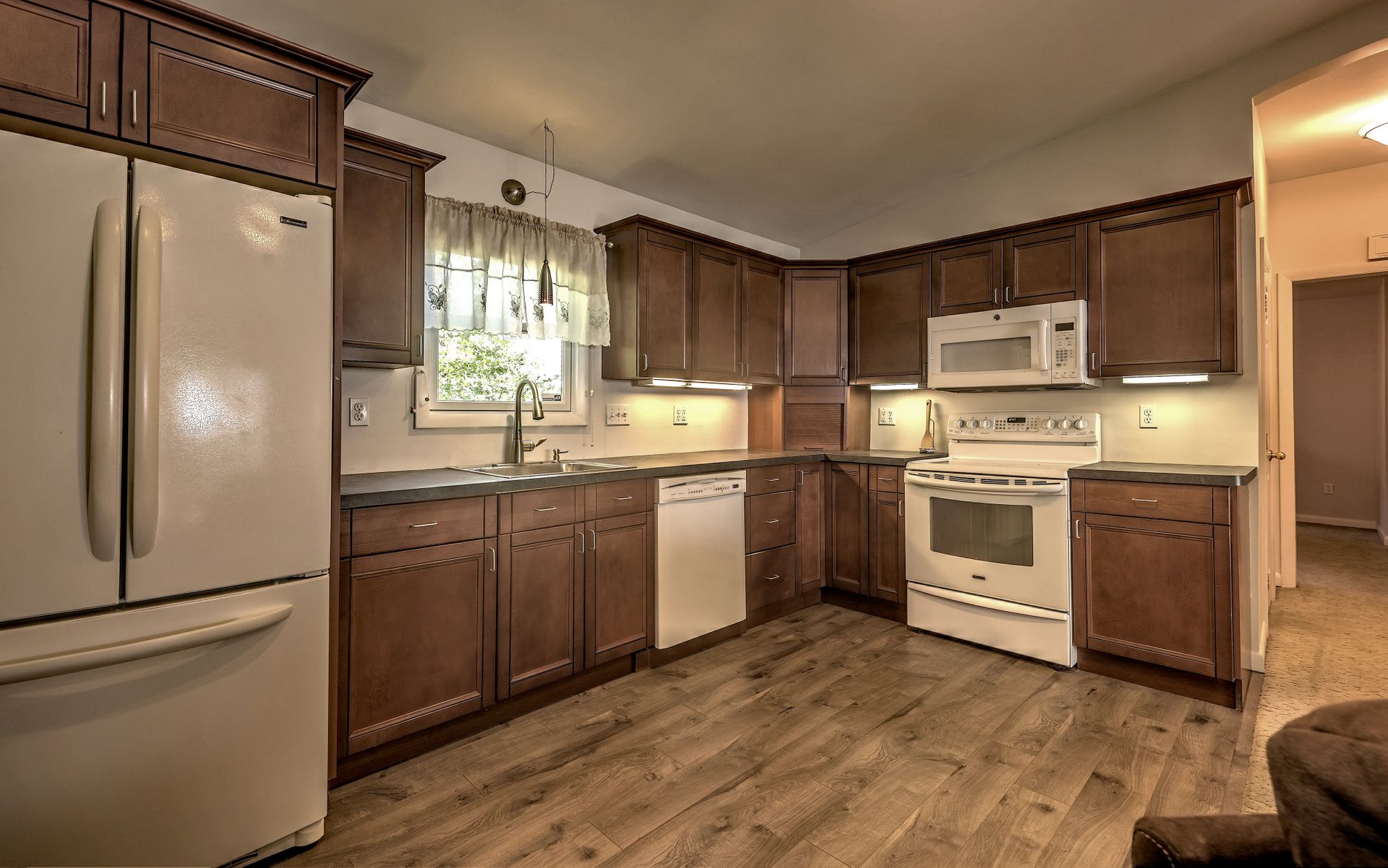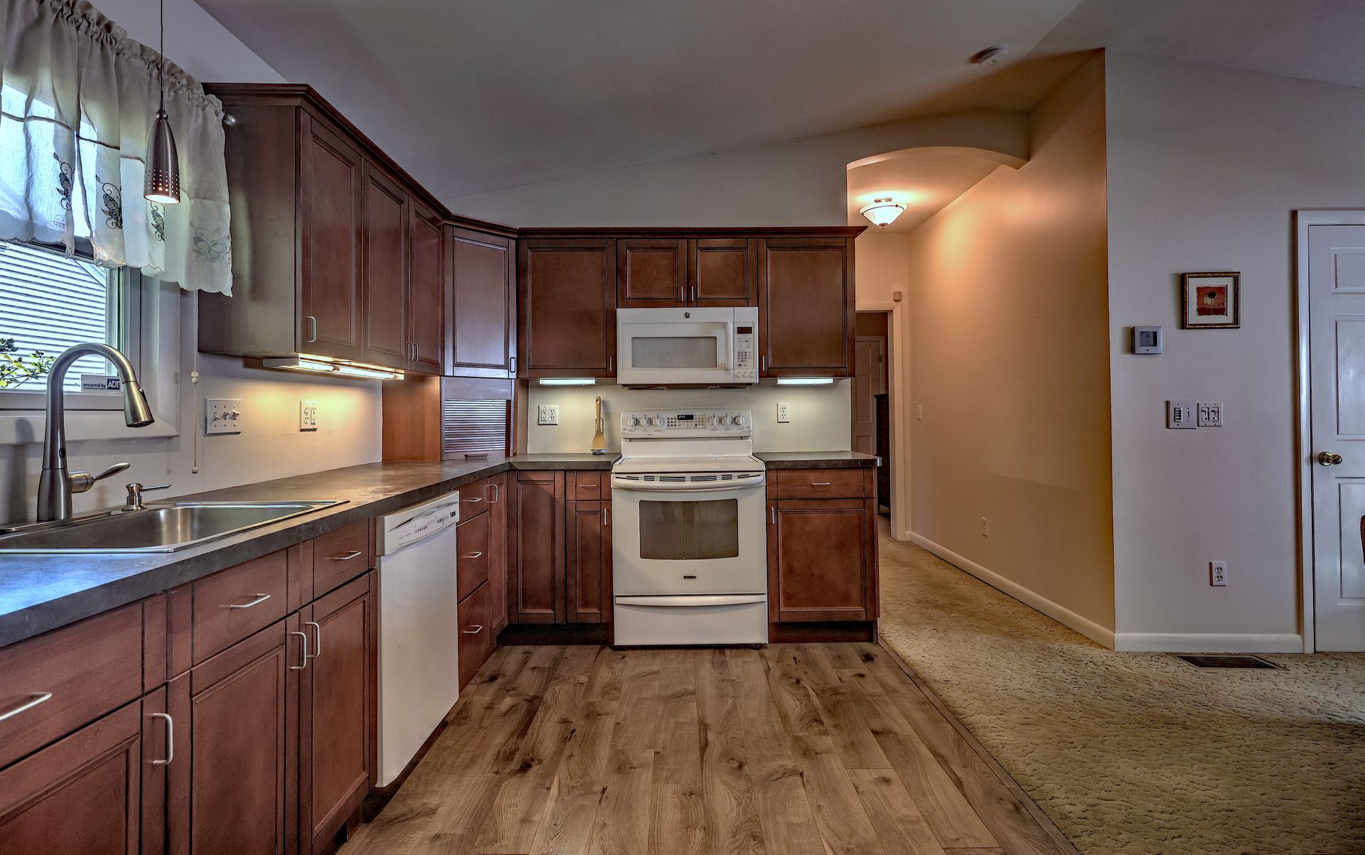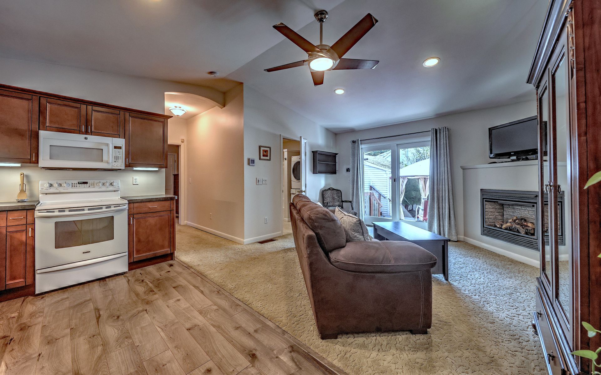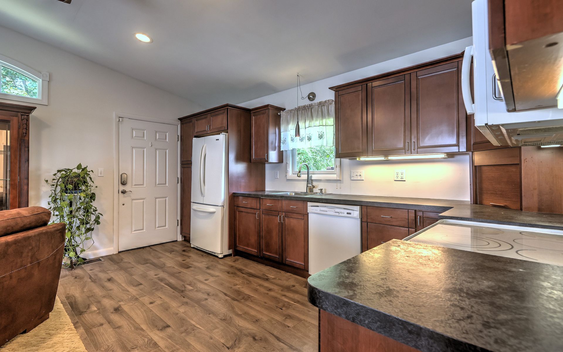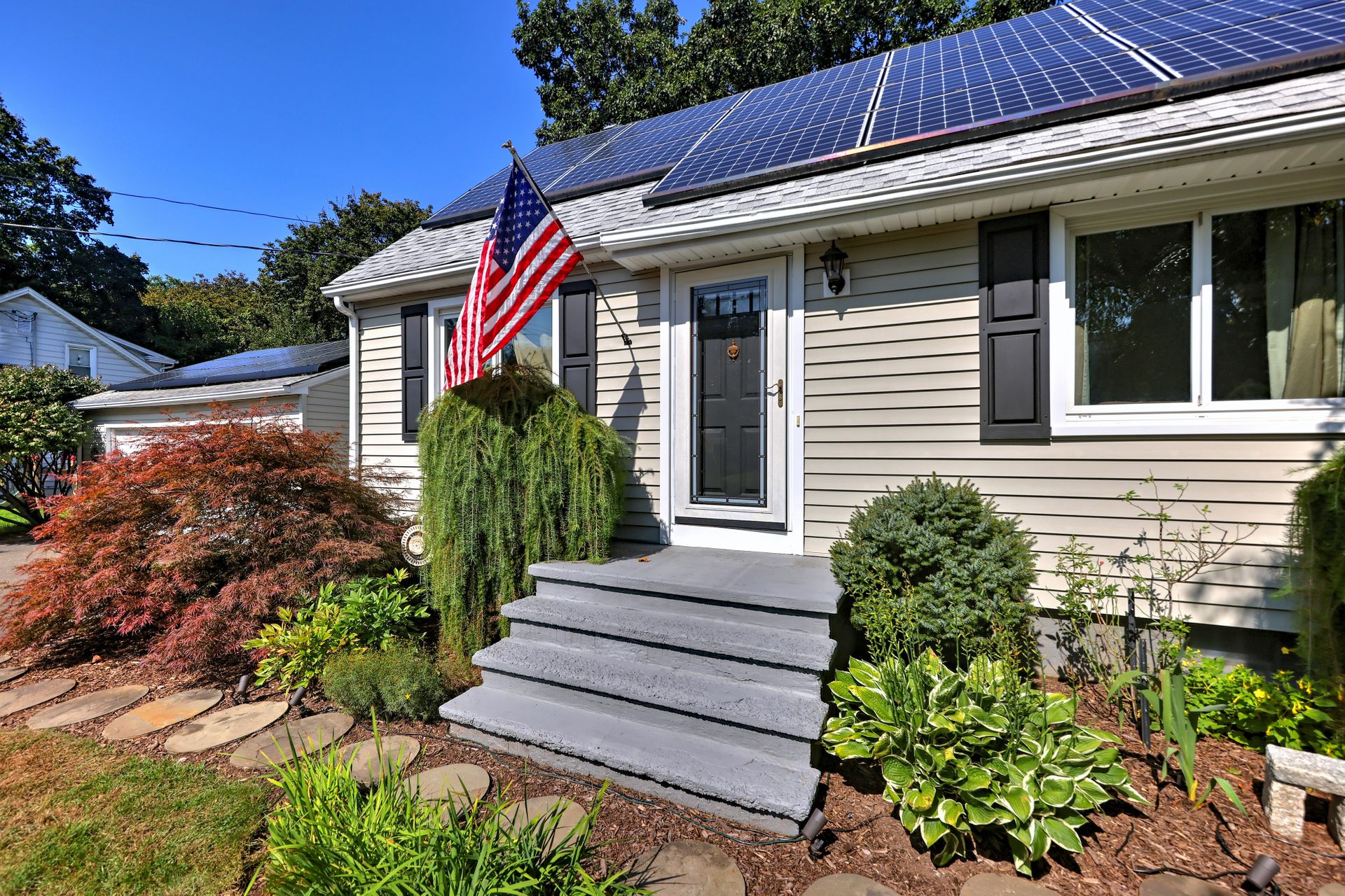 PHENOMENAL, UPDATED HOME with beautiful guest space! Owner pride shows and GLOWS throughout this creampuff cape. With 1912 square feet of impeccably maintained living space and a roomy two-car garage with double garage doors, front and back, this home is much larger and offers so much more than appears from the street. This one has it all- mechanically and cosmetically updated, inside and out! And with new, transferable solar panels, too. Enter through the breezeway which is a terrific mudroom or a home office with access and views to the fenced, private back yard. Both kitchens in the main home and guest area are tastefully updated with upscale materials, as are all three full baths. TWO kitchens, TWO living rooms with TWO gas fireplaces, THREE full baths and THREE bedrooms offer versatility for how you want to live! City water and sewer, too. Newly refinished hardwood floors on main level, 200 amp electrical service, 2021 gas hot water heater, 2009 hybrid energy star hot air furnace and central air. If you have been looking for a true turnkey home, this one checks all the boxes. Truly nothing to do but move into your very own HOME, SWEET HOME! Welcome to WOODBRIDGE!