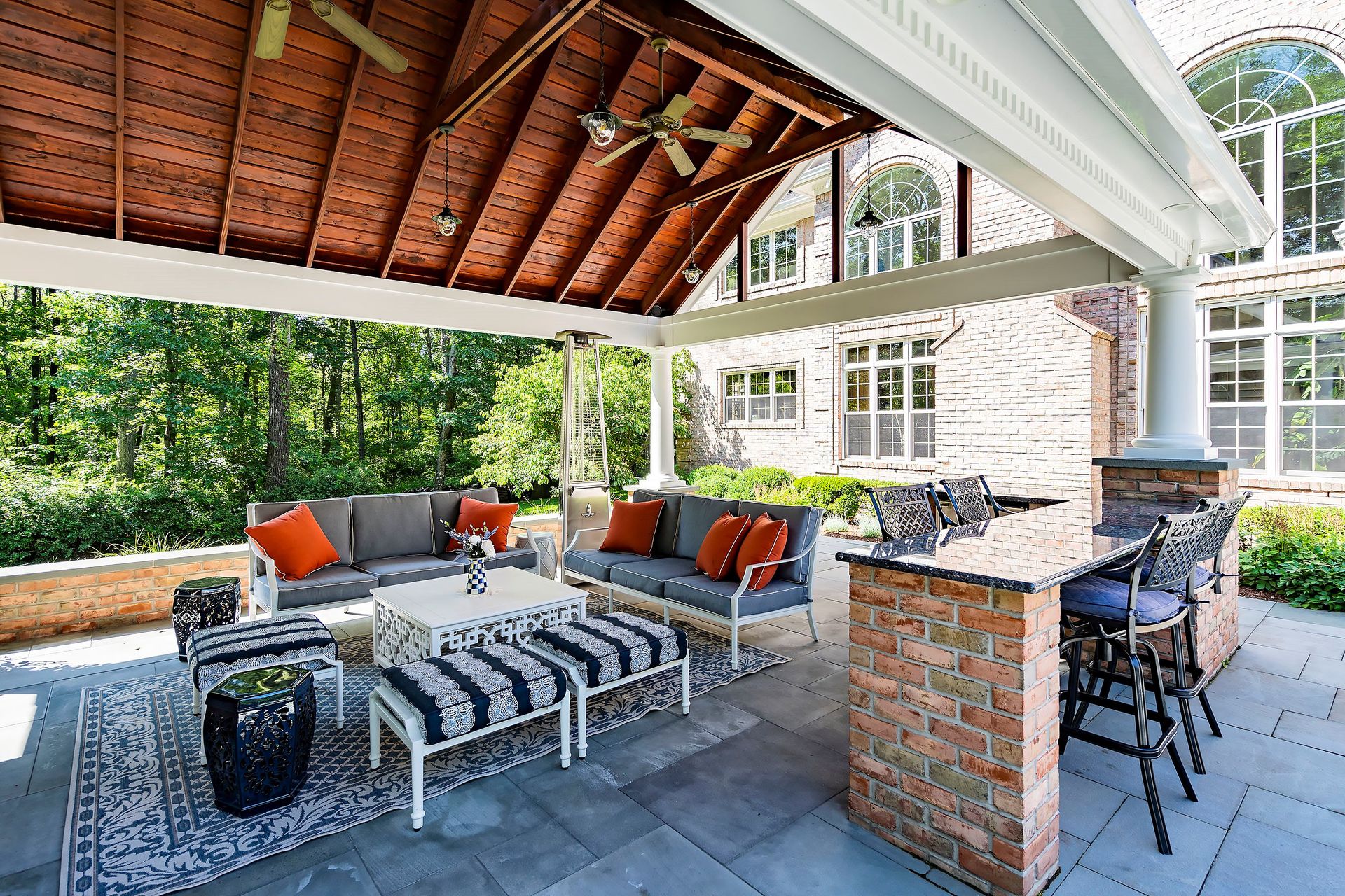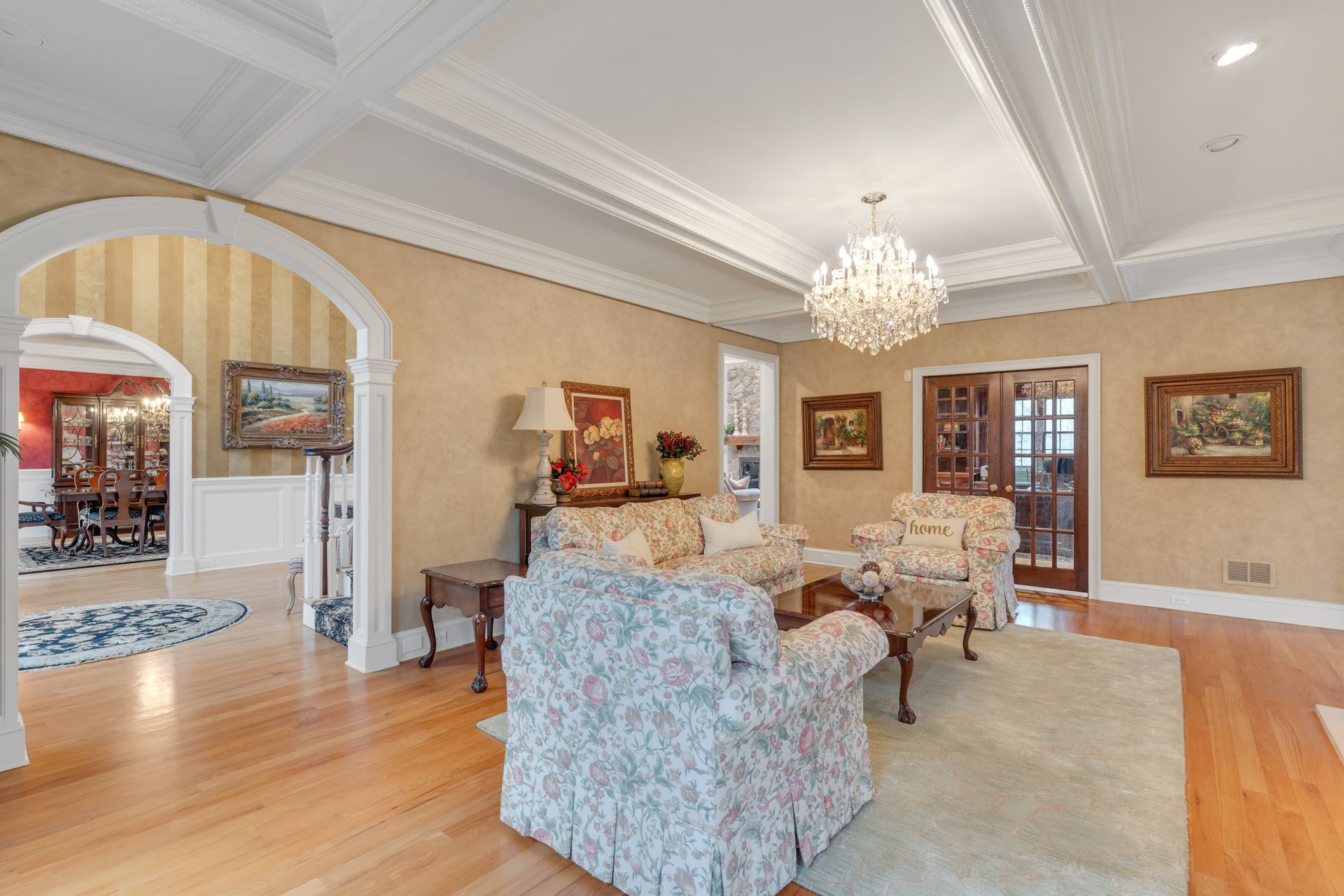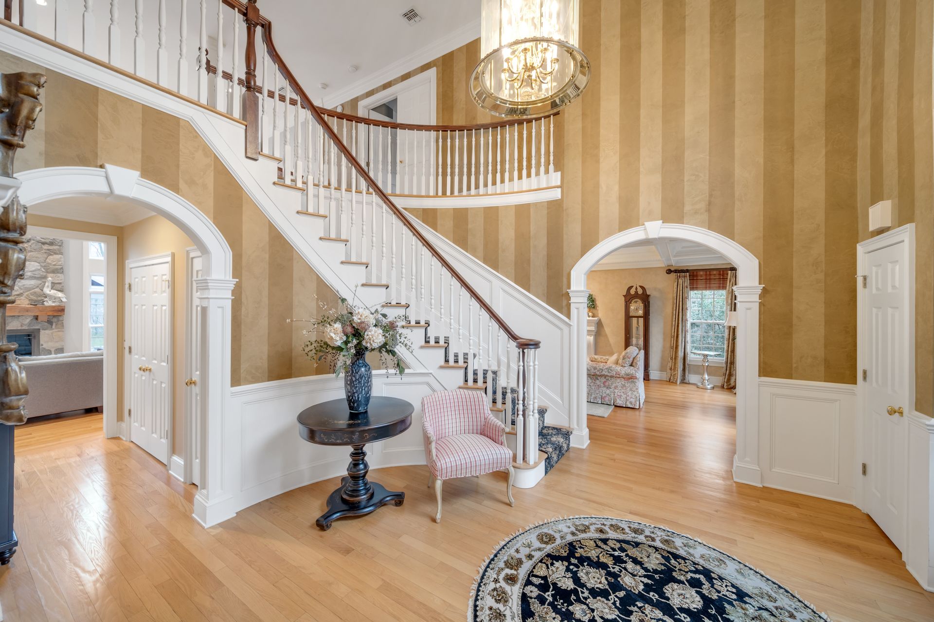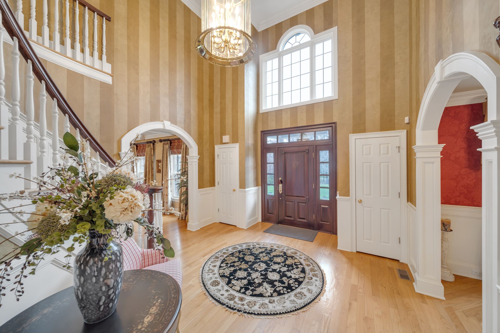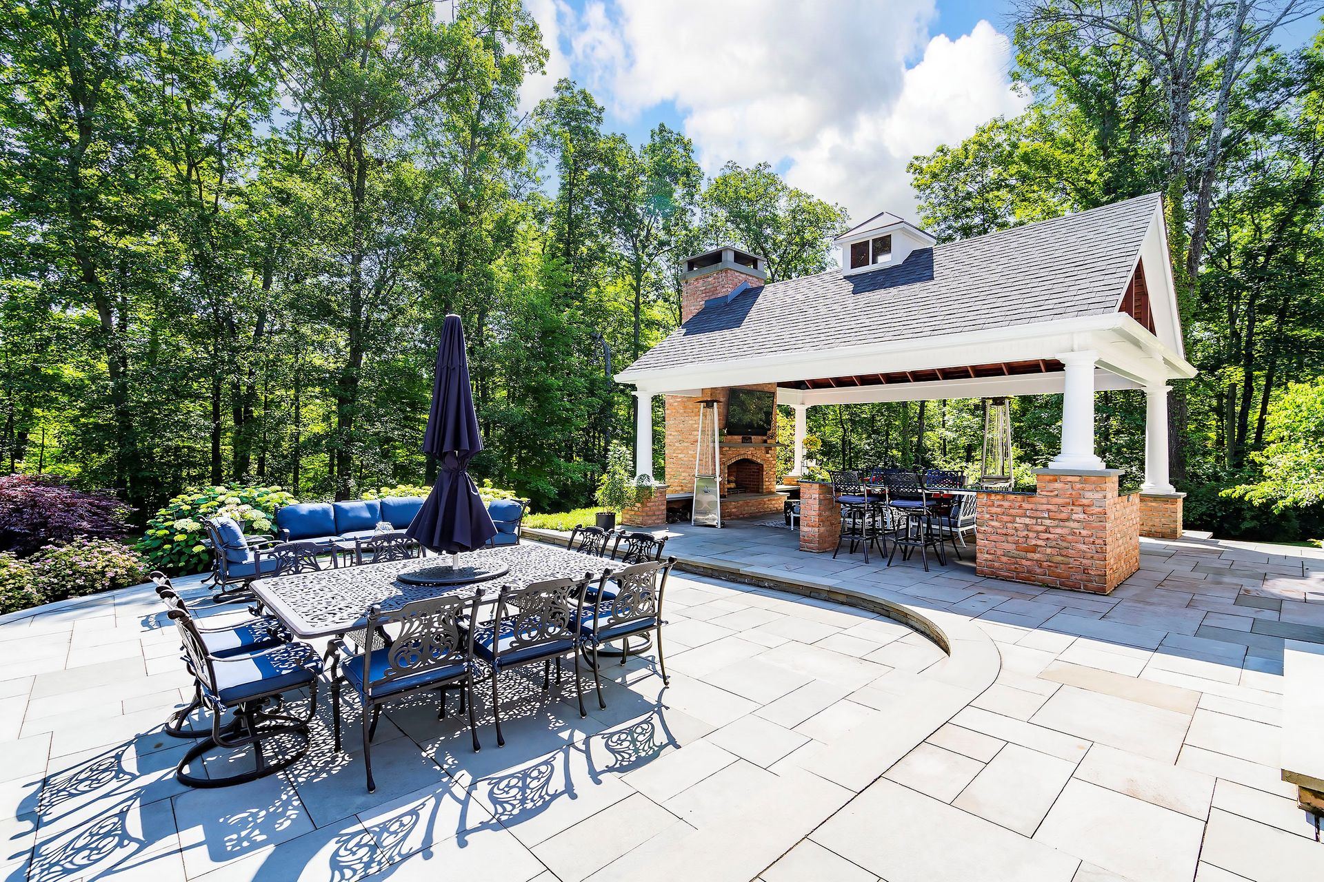 Tucked away in a serene cul-de-sac, this exquisite custom brick colonial is a must-see that sits on nearly six acres of lush greenery, adorned with mature trees and vibrant plantings. This beautiful home includes six bedrooms - five bedrooms plus a media room and recreation room on the second level - and an additional bedroom and full bath on the first level. Boasting an array of luxurious features, including soaring ceilings, a four-car garage, four cozy fireplaces, a refreshing pool with a charming cabana, a pavilion with fireplace and outdoor kitchen and a sophisticated wine cellar, the spacious layout is even further enhanced by intricate moldings. The home also features a handsome wood-paneled library, a bright sunroom, a generous eat-in chef's kitchen equipped with top-of-the-line appliances, an elevator that conveniently serves all three levels and a full house generator for added convenience. A fully finished basement offering a sizable exercise room, a dance studio and another full bath completes this amazing space.