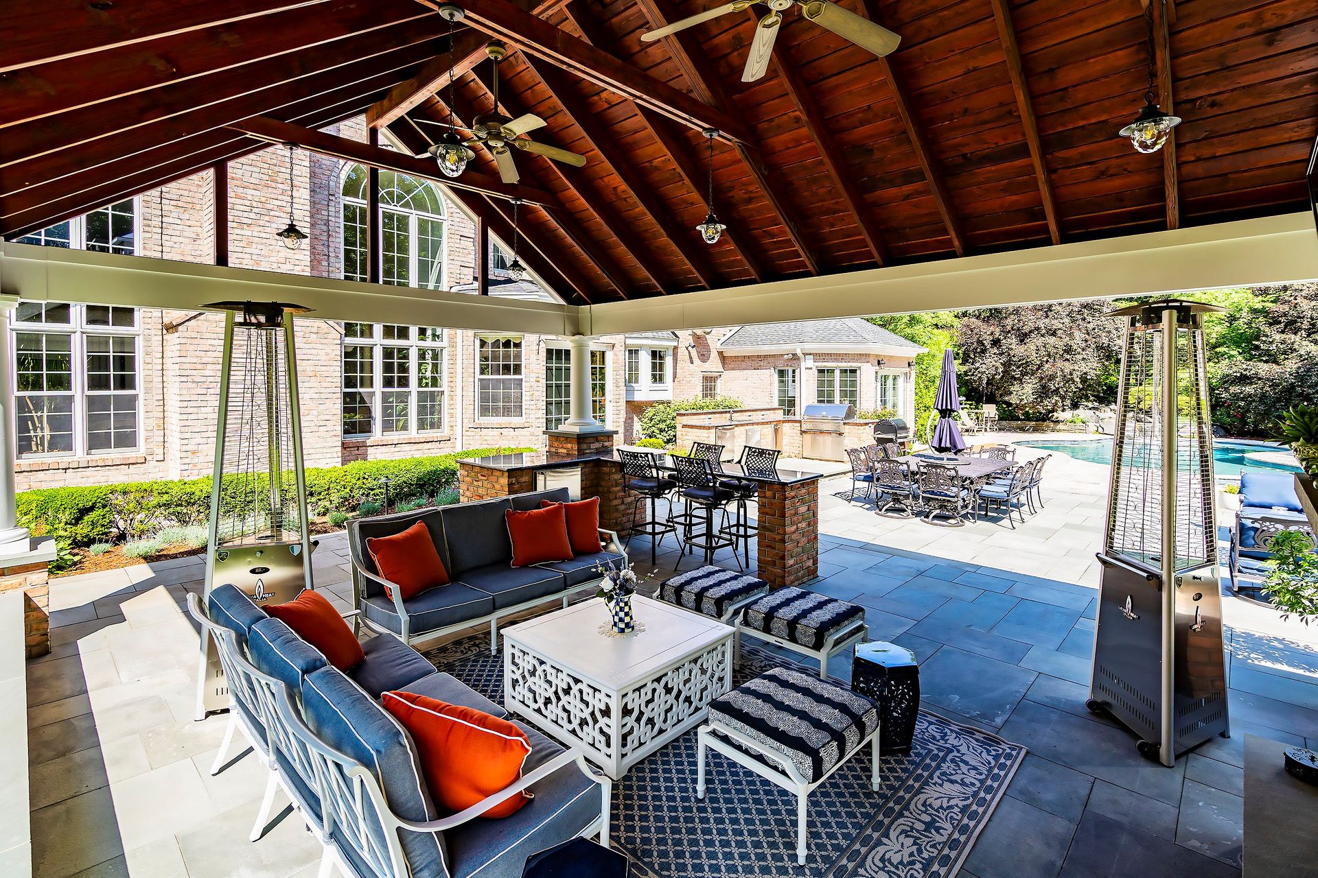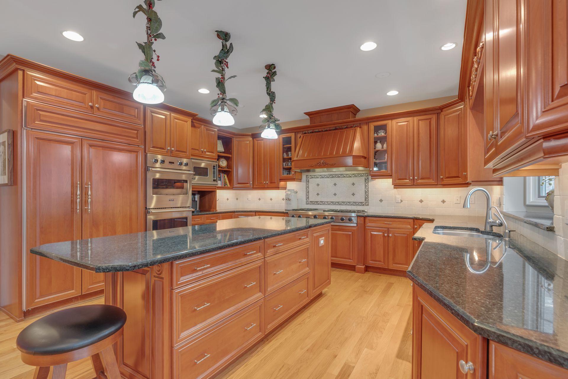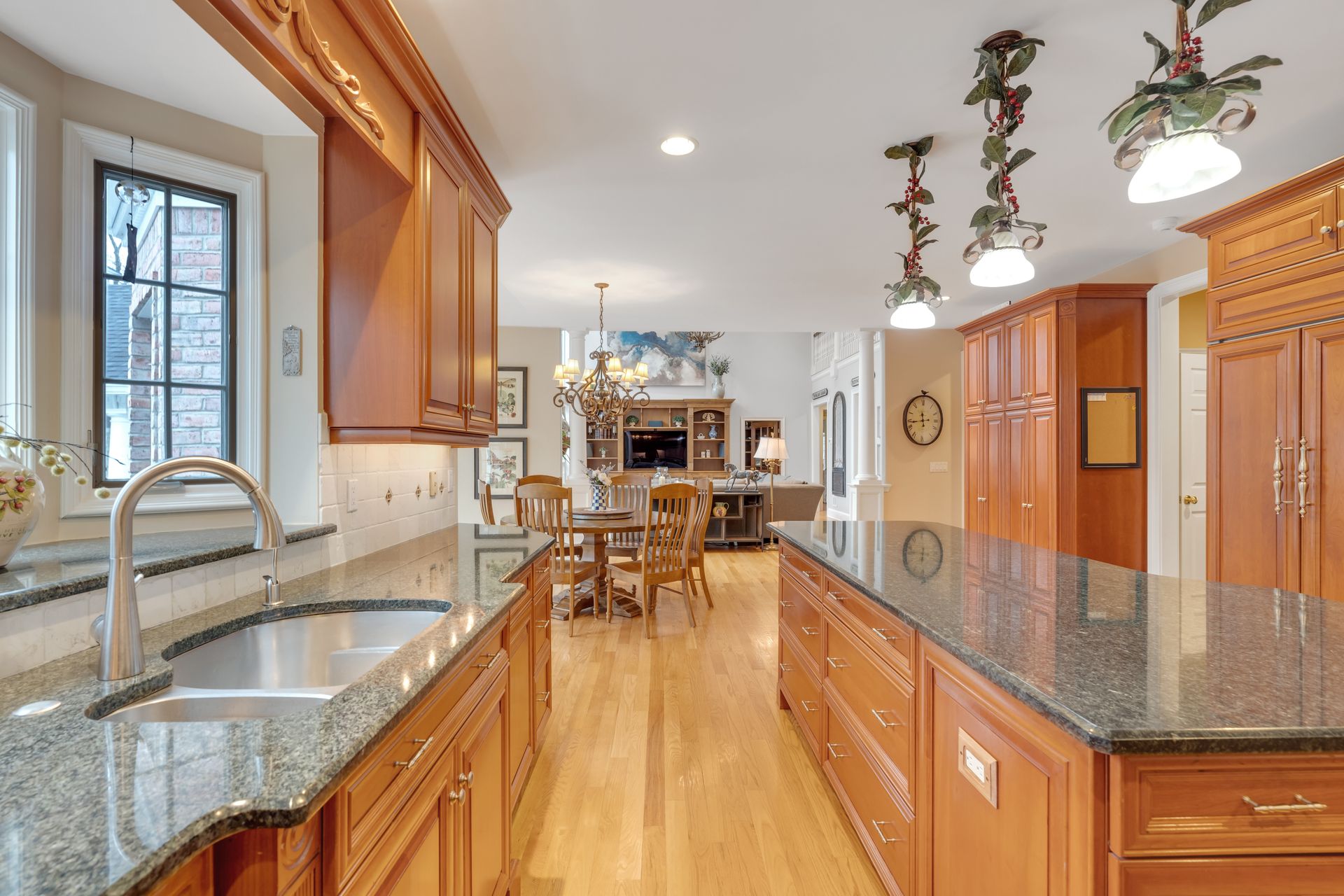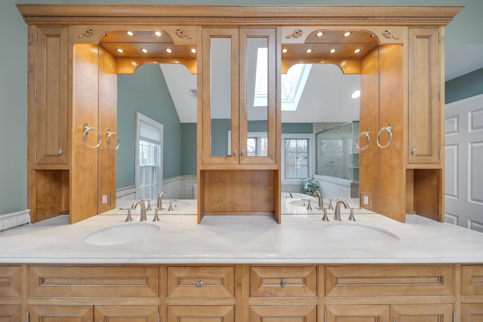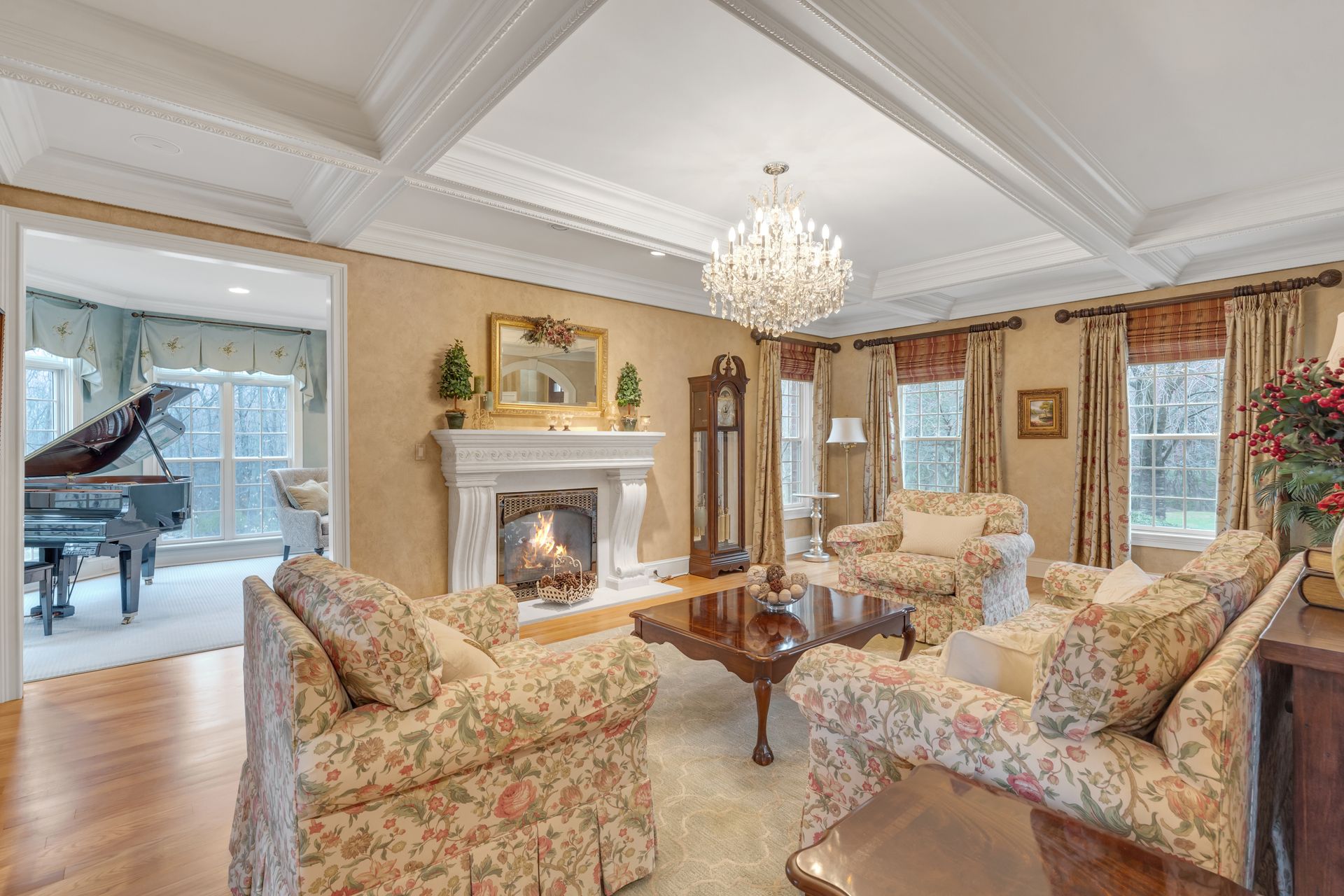 Tucked away in a serene cul-de-sac, this exquisite custom brick colonial is a must-see that sits on nearly six acres of lush greenery, adorned with mature trees and vibrant plantings. This beautiful home includes six bedrooms - five bedrooms plus a media room and recreation room on the second level - and an additional bedroom and full bath on the first level. Boasting an array of luxurious features, including soaring ceilings, a four-car garage, four cozy fireplaces, a refreshing pool with a charming cabana, a pavilion with fireplace and outdoor kitchen and a sophisticated wine cellar, the spacious layout is even further enhanced by intricate moldings. The home also features a handsome wood-paneled library, a bright sunroom, a generous eat-in chef's kitchen equipped with top-of-the-line appliances, an elevator that conveniently serves all three levels and a full house generator for added convenience. A fully finished basement offering a sizable exercise room, a dance studio and another full bath completes this amazing space.