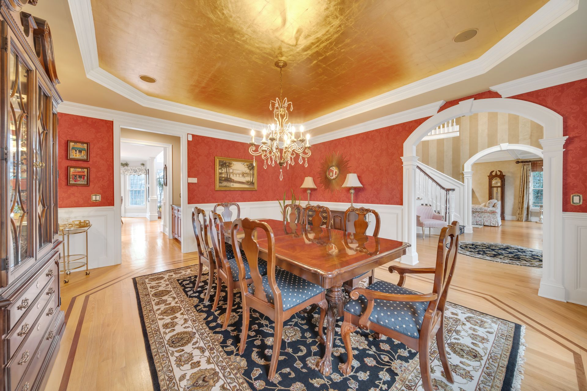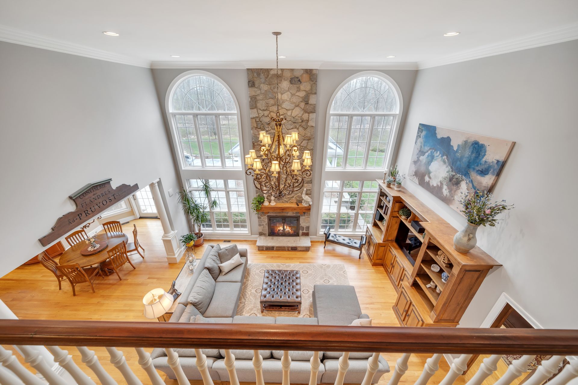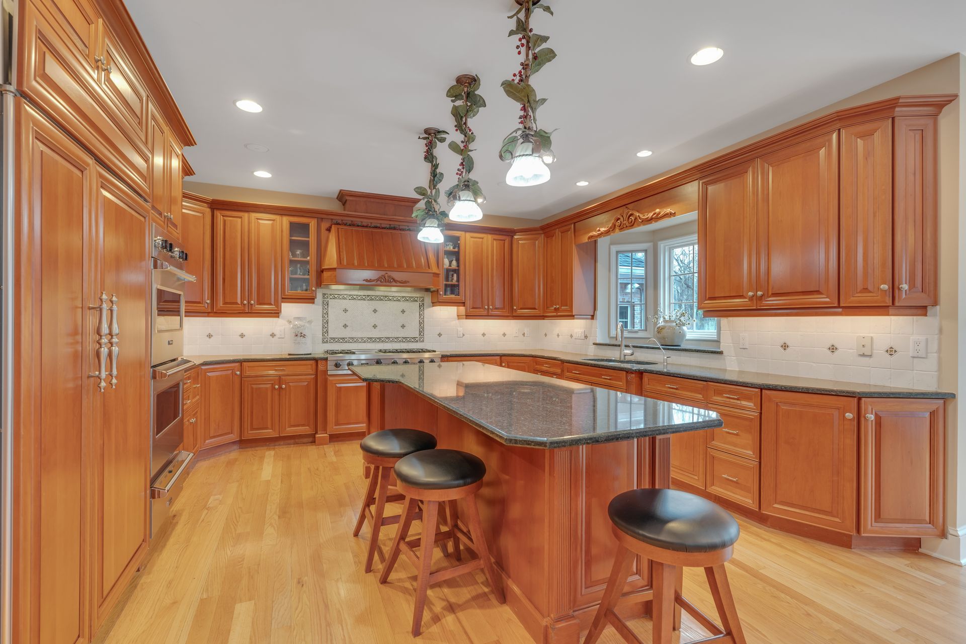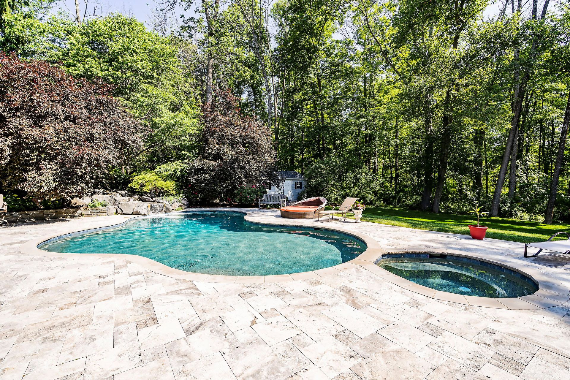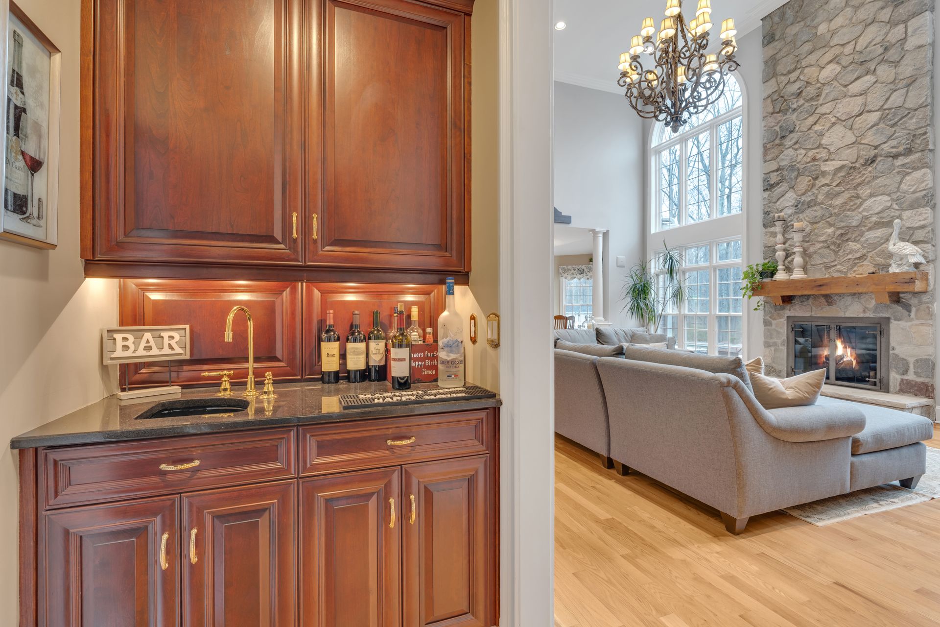 Tucked away in a serene cul-de-sac, this exquisite custom brick colonial is a must-see that sits on nearly six acres of lush greenery, adorned with mature trees and vibrant plantings. This beautiful home includes six bedrooms - five bedrooms plus a media room and recreation room on the second level - and an additional bedroom and full bath on the first level. Boasting an array of luxurious features, including soaring ceilings, a four-car garage, four cozy fireplaces, a refreshing pool with a charming cabana, a pavilion with fireplace and outdoor kitchen and a sophisticated wine cellar, the spacious layout is even further enhanced by intricate moldings. The home also features a handsome wood-paneled library, a bright sunroom, a generous eat-in chef's kitchen equipped with top-of-the-line appliances, an elevator that conveniently serves all three levels and a full house generator for added convenience. A fully finished basement offering a sizable exercise room, a dance studio and another full bath completes this amazing space.