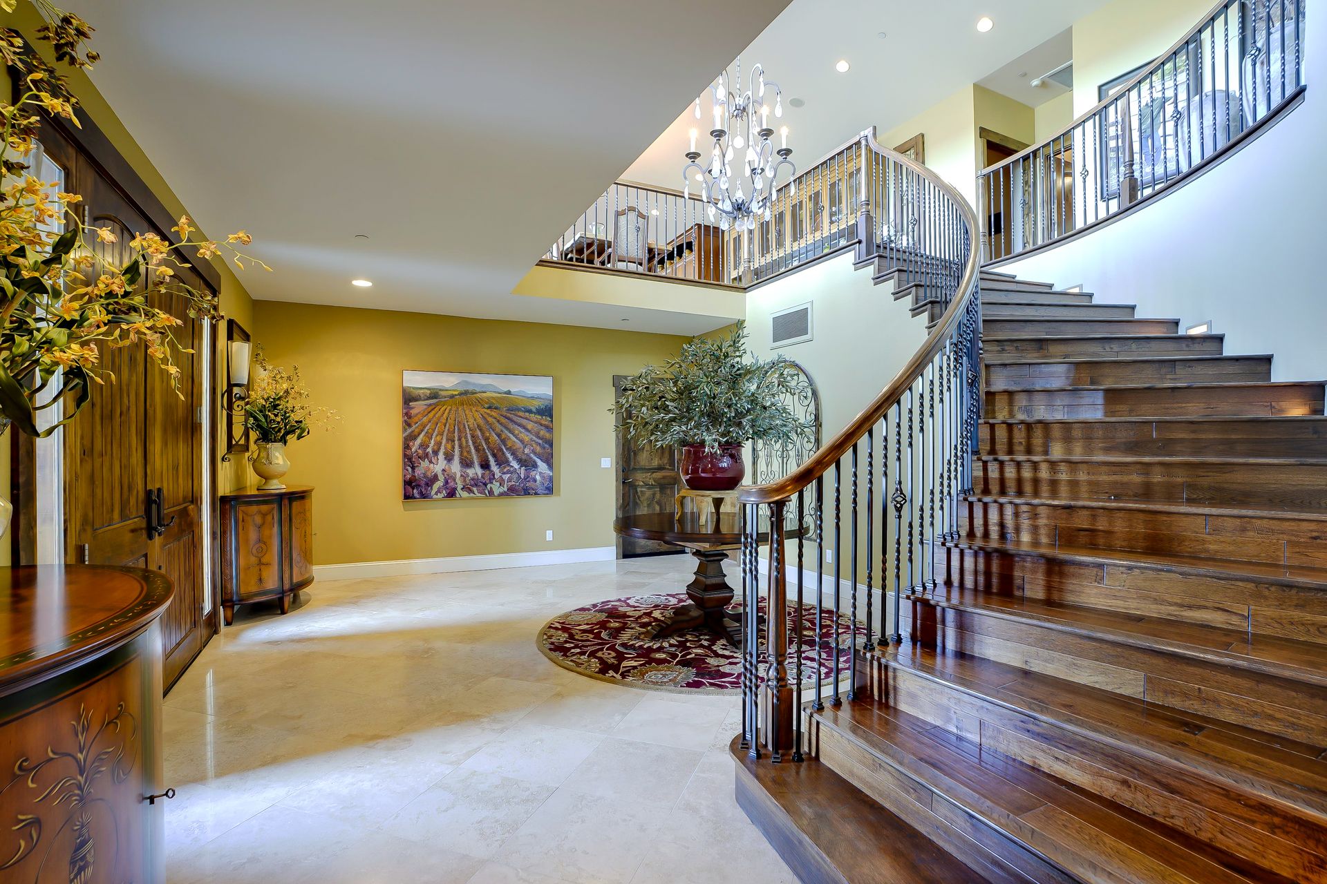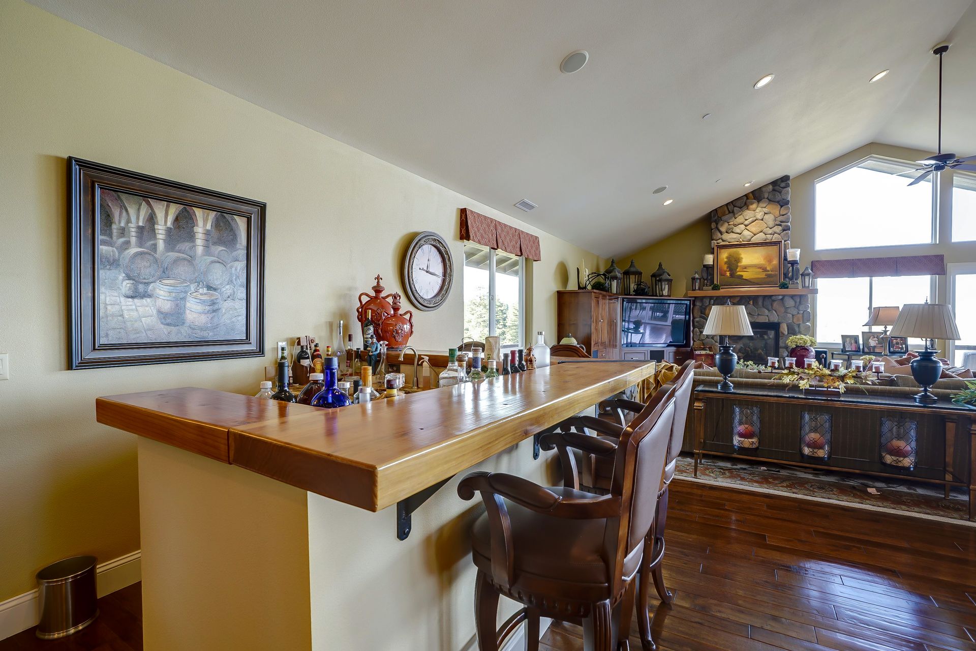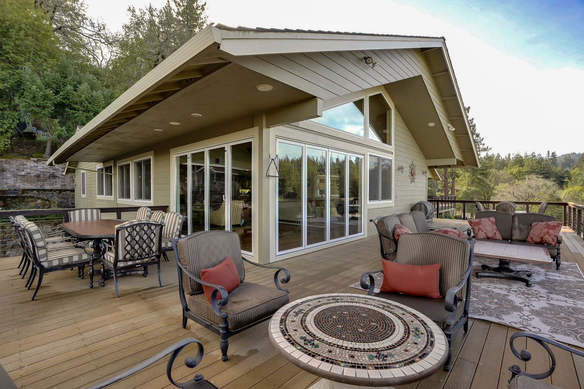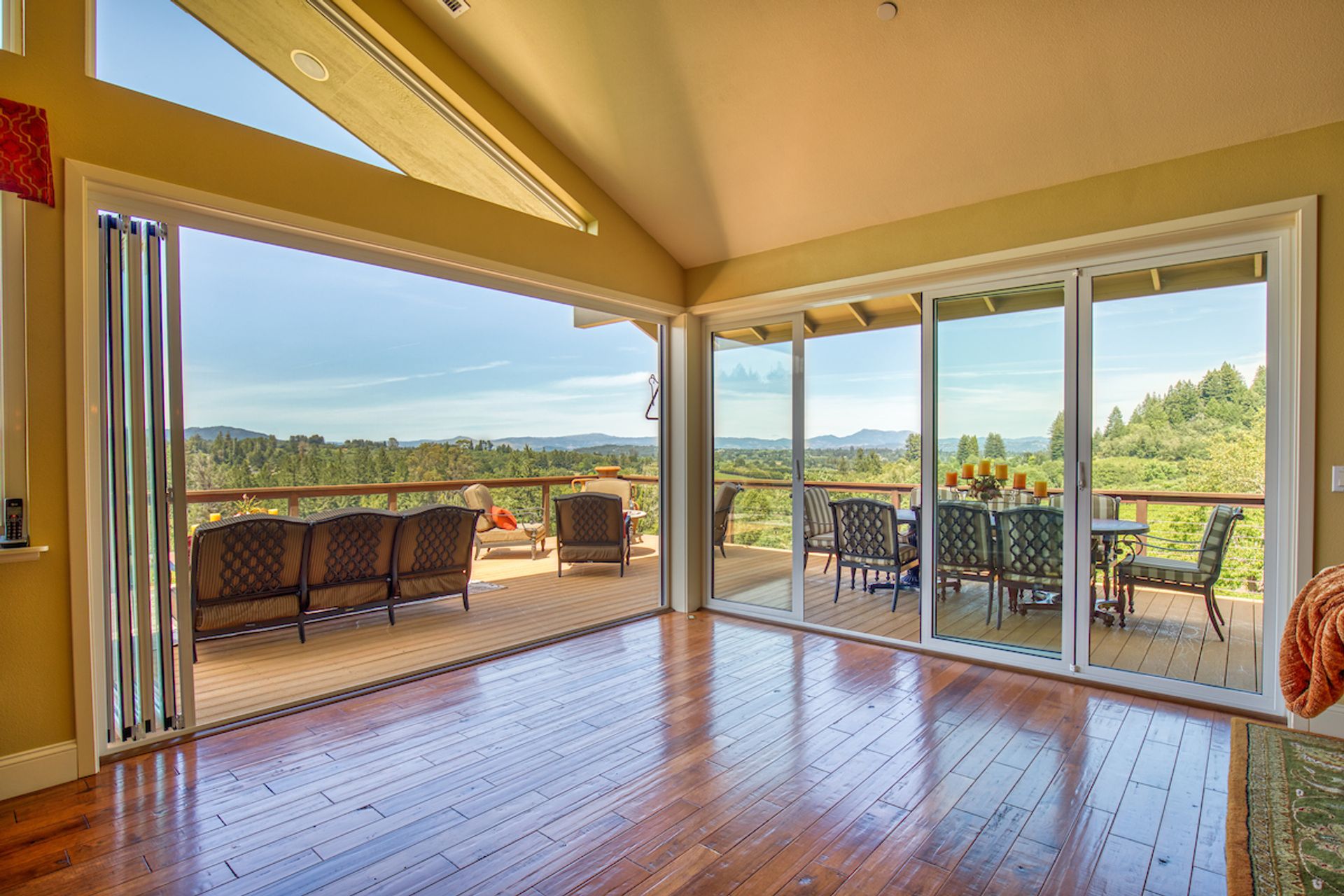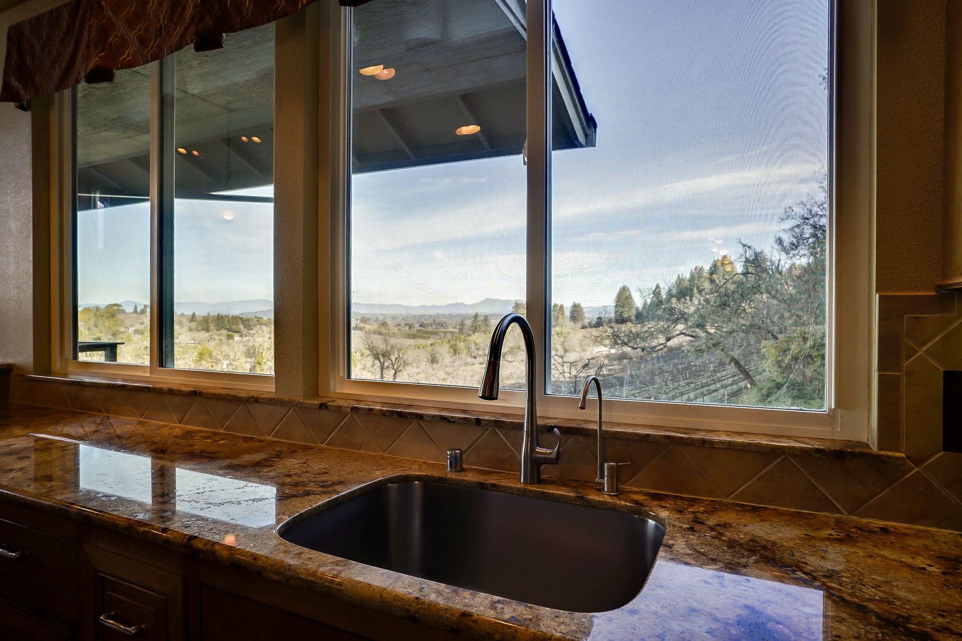 This approximately 18 acre, hilltop gated vineyard estate captures the ultimate Sonoma County dream. With breathtaking views, this stunning retreat features a roughly 6,089 square foot main residence with a two bedroom, one bath guest house, a solar heated pool and hot tub, an outdoor kitchen, cave-style wine cellar, large carport, barn and custom tree fort. The impressive foyer displays the chandelier lit grand staircase to the main level and a seven plus car garage. The lower level offers a large coat closet, office, one-half bath, a guest suite with heated floors and a walk-in closet. Enjoy the main level boasting a great room with vaulted ceilings, glass Nana walls, dining for 12 plus people, a laundry and hobby room, two bedrooms for guests and a master suite with a master closet built for the most discerning and a sun deck with pool access. The kitchen is made for entertaining with a supersized island, prep sink and large seating, three dishwashers, two microwaves, a warming drawer, an eight-burner Wolf range, three ovens, a refrigerator and a wet bar with a wine fridge. Enjoy alfresco dining on the terrace overlooking the approximately 10 acre world class Chardonnay vineyard.