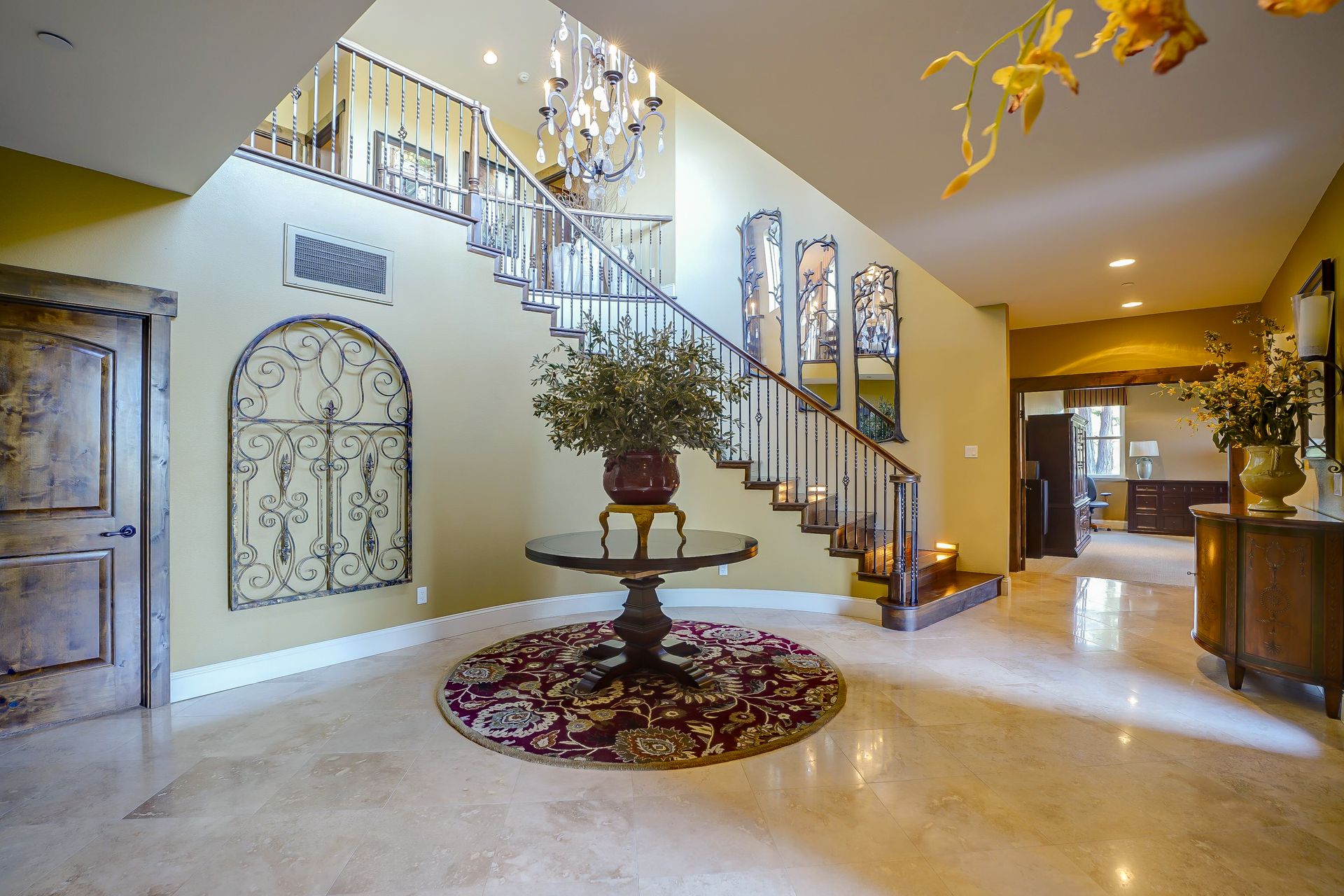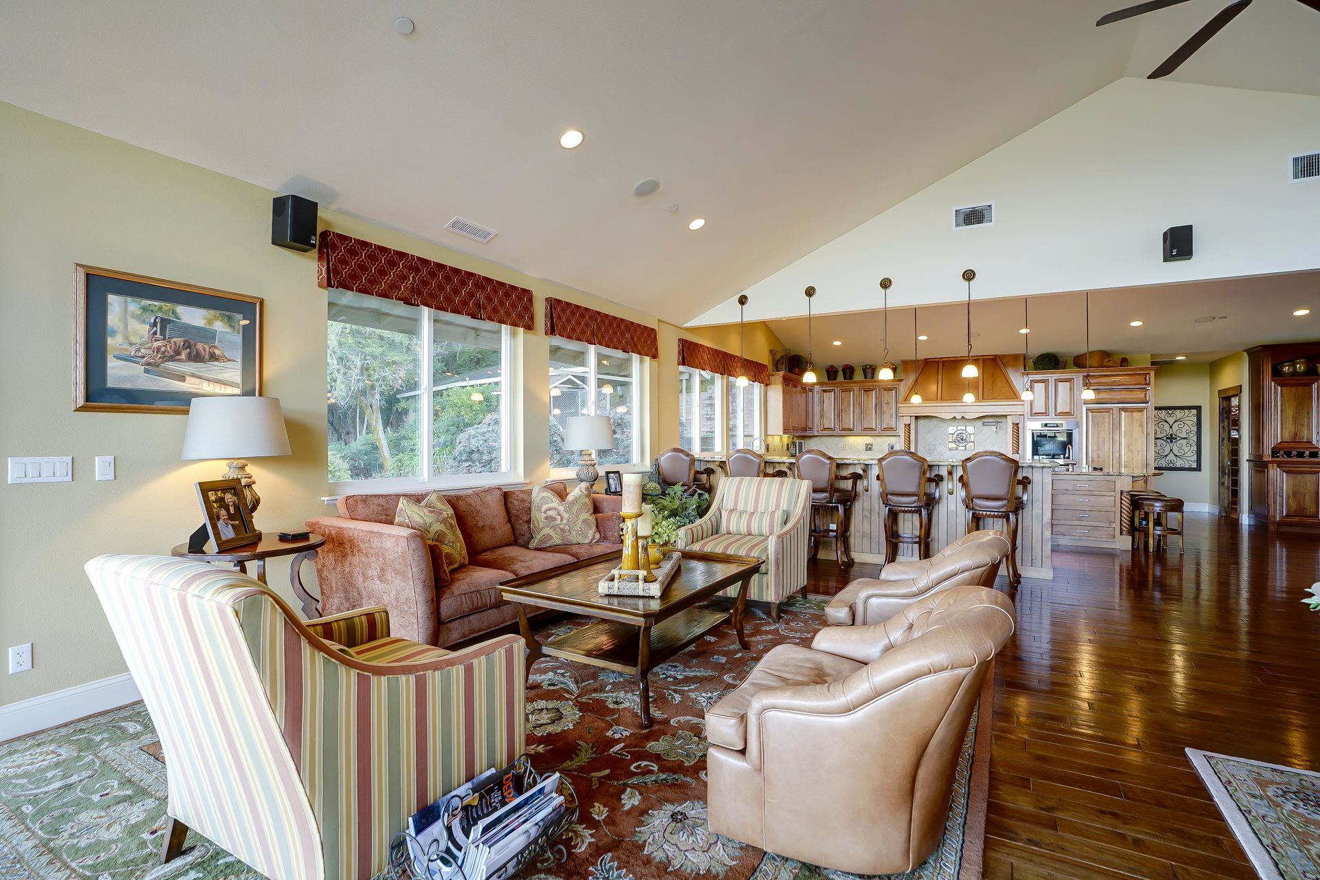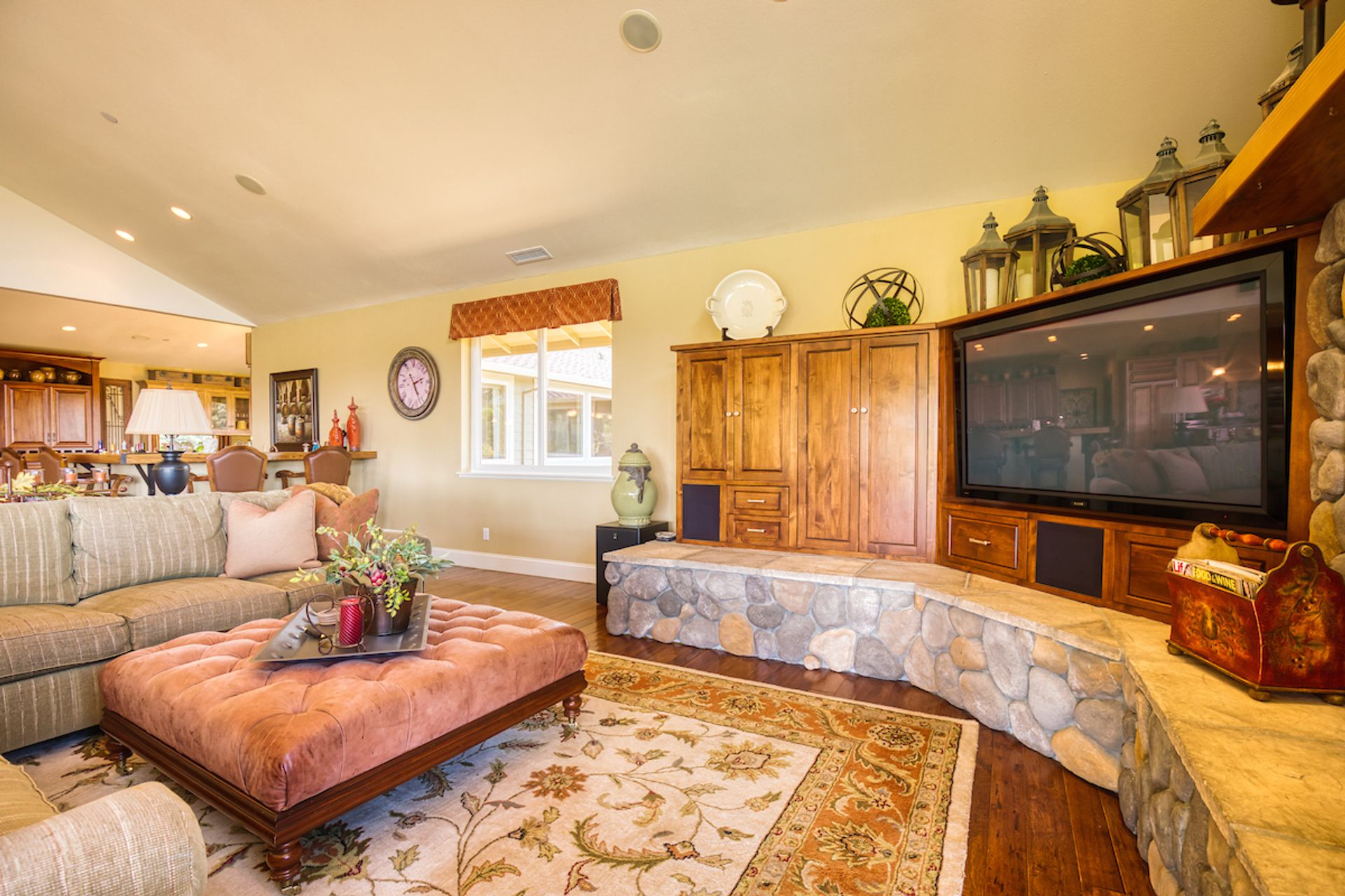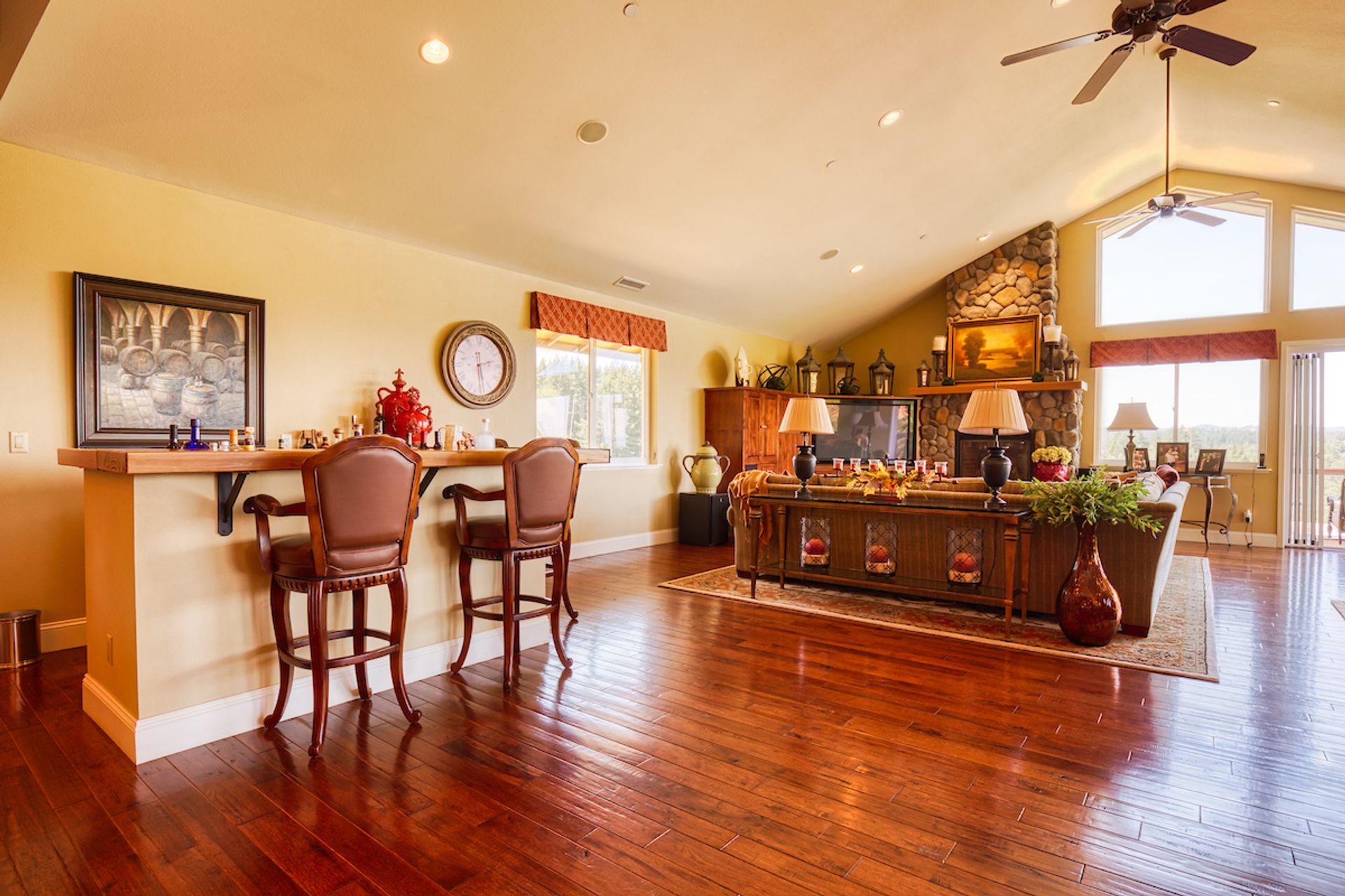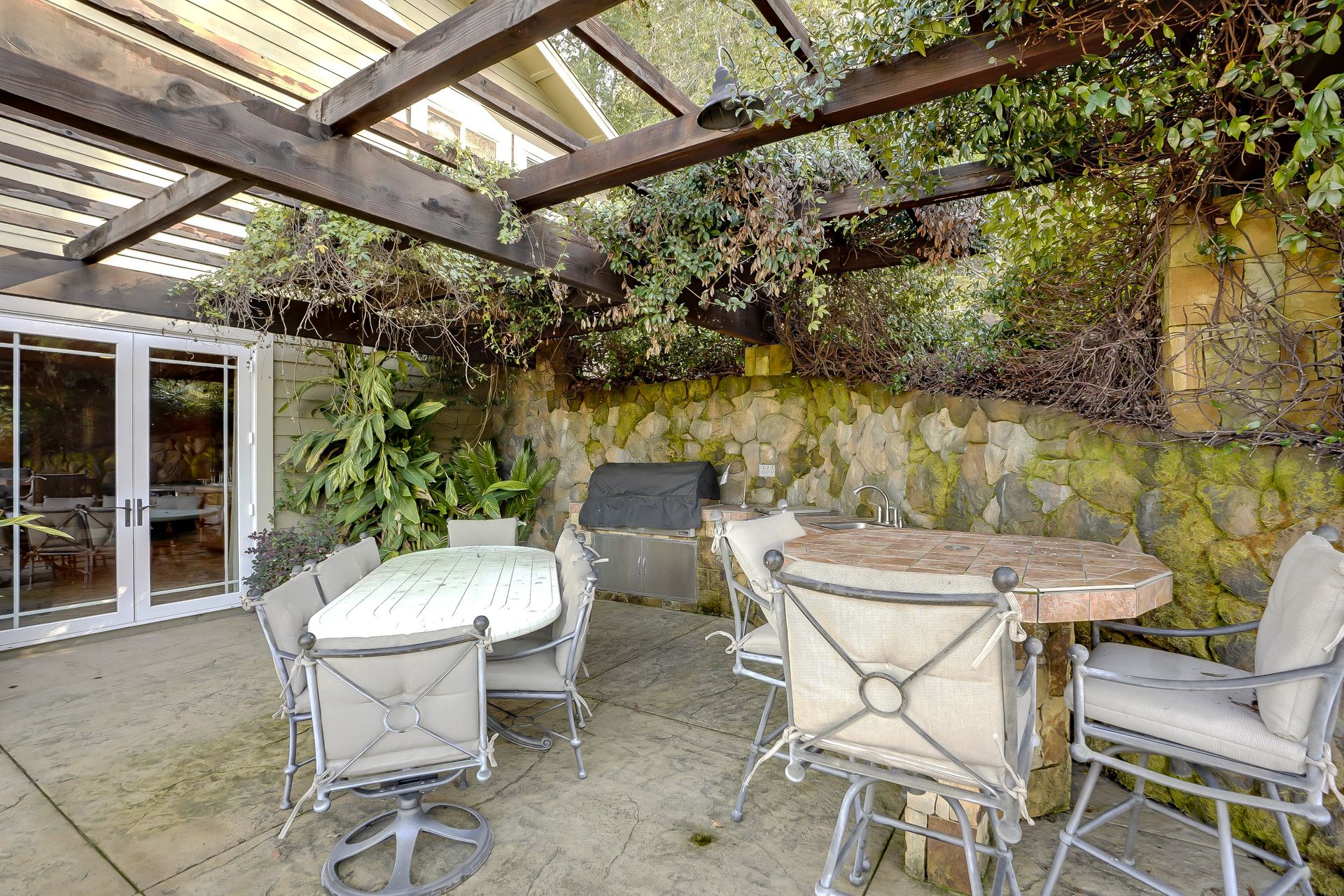 This approximately 18 acre, hilltop gated vineyard estate captures the ultimate Sonoma County dream. With breathtaking views, this stunning retreat features a roughly 6,089 square foot main residence with a two bedroom, one bath guest house, a solar heated pool and hot tub, an outdoor kitchen, cave-style wine cellar, large carport, barn and custom tree fort. The impressive foyer displays the chandelier lit grand staircase to the main level and a seven plus car garage. The lower level offers a large coat closet, office, one-half bath, a guest suite with heated floors and a walk-in closet. Enjoy the main level boasting a great room with vaulted ceilings, glass Nana walls, dining for 12 plus people, a laundry and hobby room, two bedrooms for guests and a master suite with a master closet built for the most discerning and a sun deck with pool access. The kitchen is made for entertaining with a supersized island, prep sink and large seating, three dishwashers, two microwaves, a warming drawer, an eight-burner Wolf range, three ovens, a refrigerator and a wet bar with a wine fridge. Enjoy alfresco dining on the terrace overlooking the approximately 10 acre world class Chardonnay vineyard.