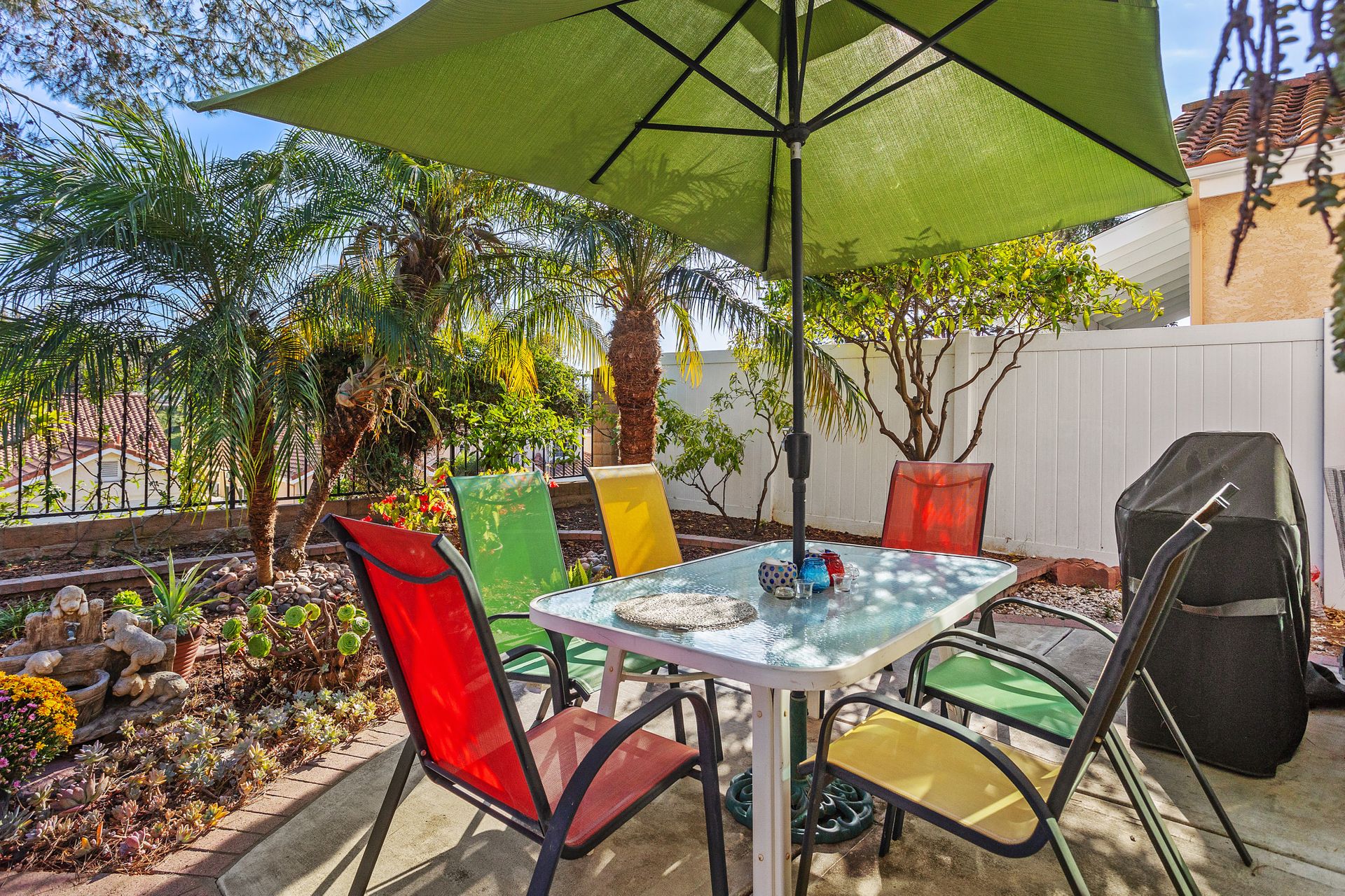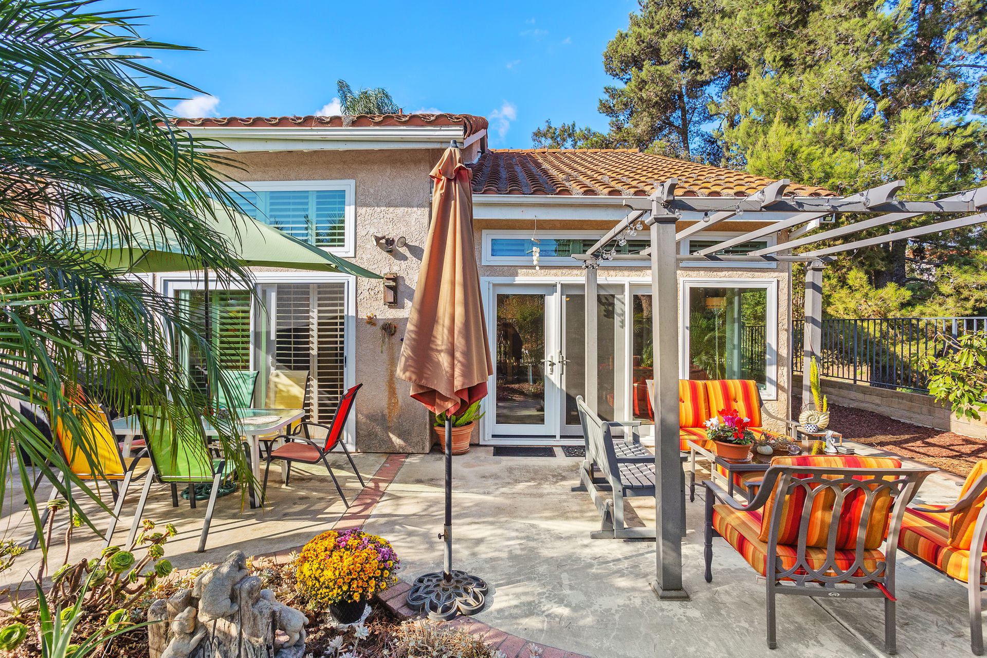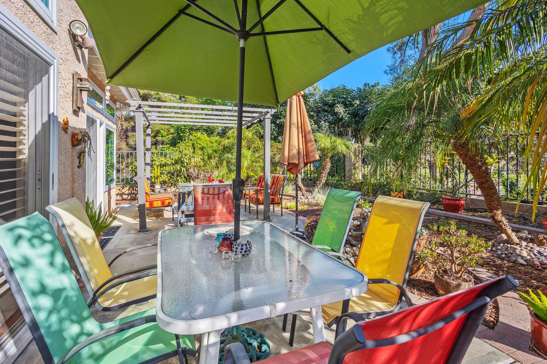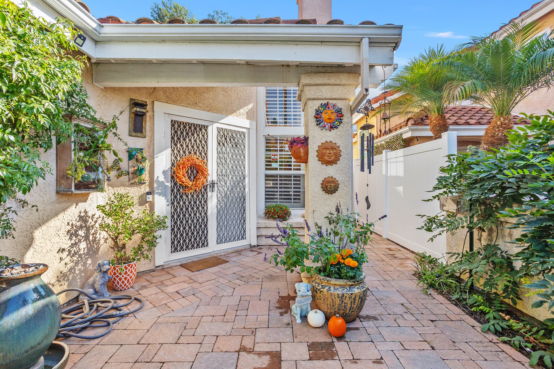 Nestled in the desirable Shadowridge community, this charming 'Lido' home sits peacefully on an elevated cul-de-sac lot, offering a serene retreat. A charming gated courtyard welcomes you into a cheerful and functional home. The primary suite is conveniently located on the main level, while two spacious bedrooms await upstairs. The remodeled kitchen boasts high-end KitchenAid appliances, including an Armoire refrigerator and a six-burner gas range with a griddle. Custom cabinetry, complete with roll-out drawers and a corner Lazy Susan, adds both style and functionality. A garden window invites ample sunlight and custom overhead and under-cabinet lighting creates a warm ambiance.