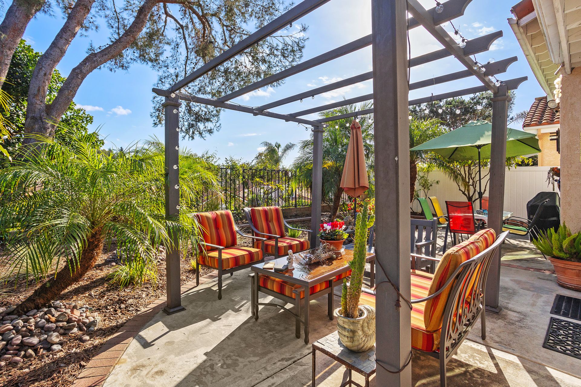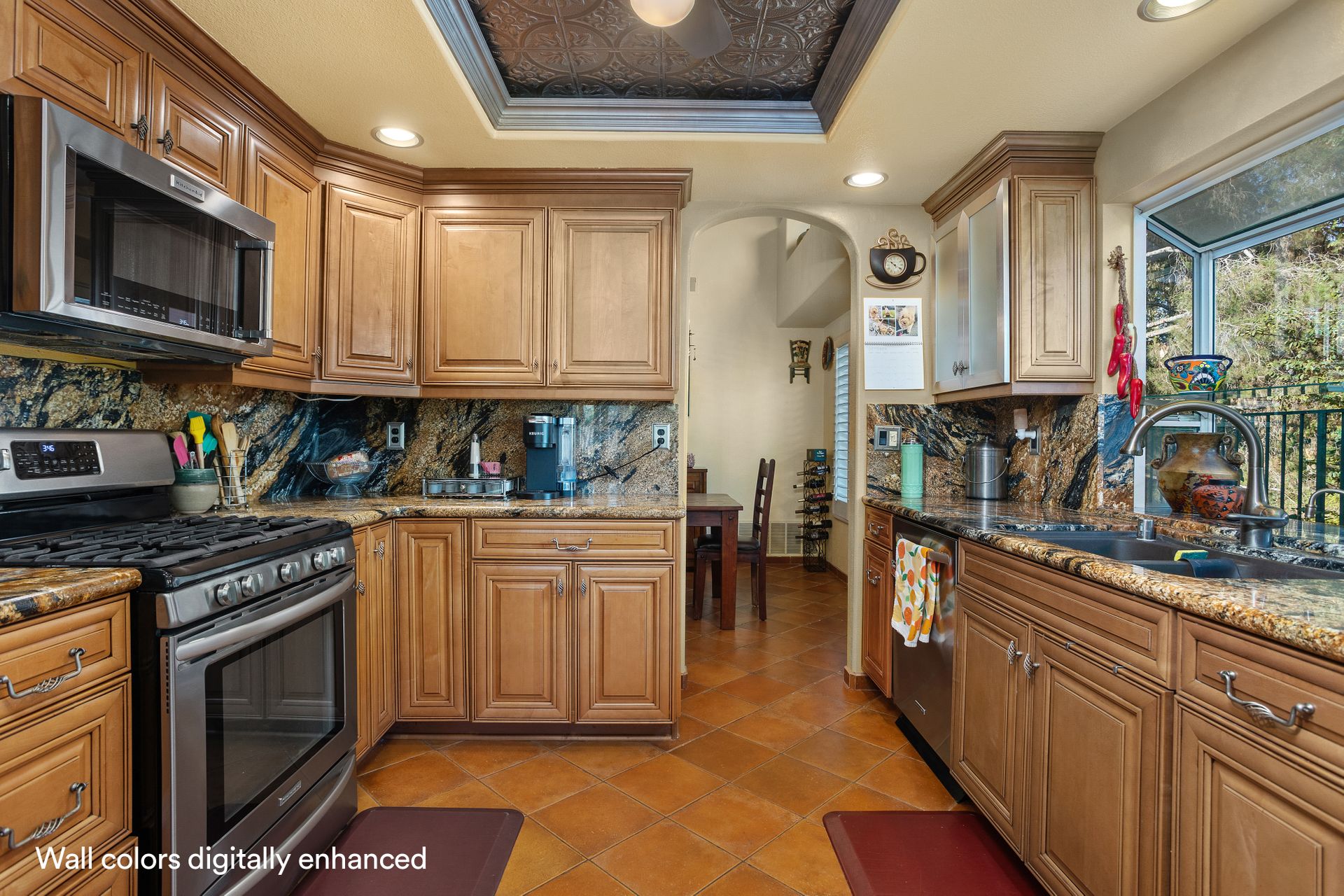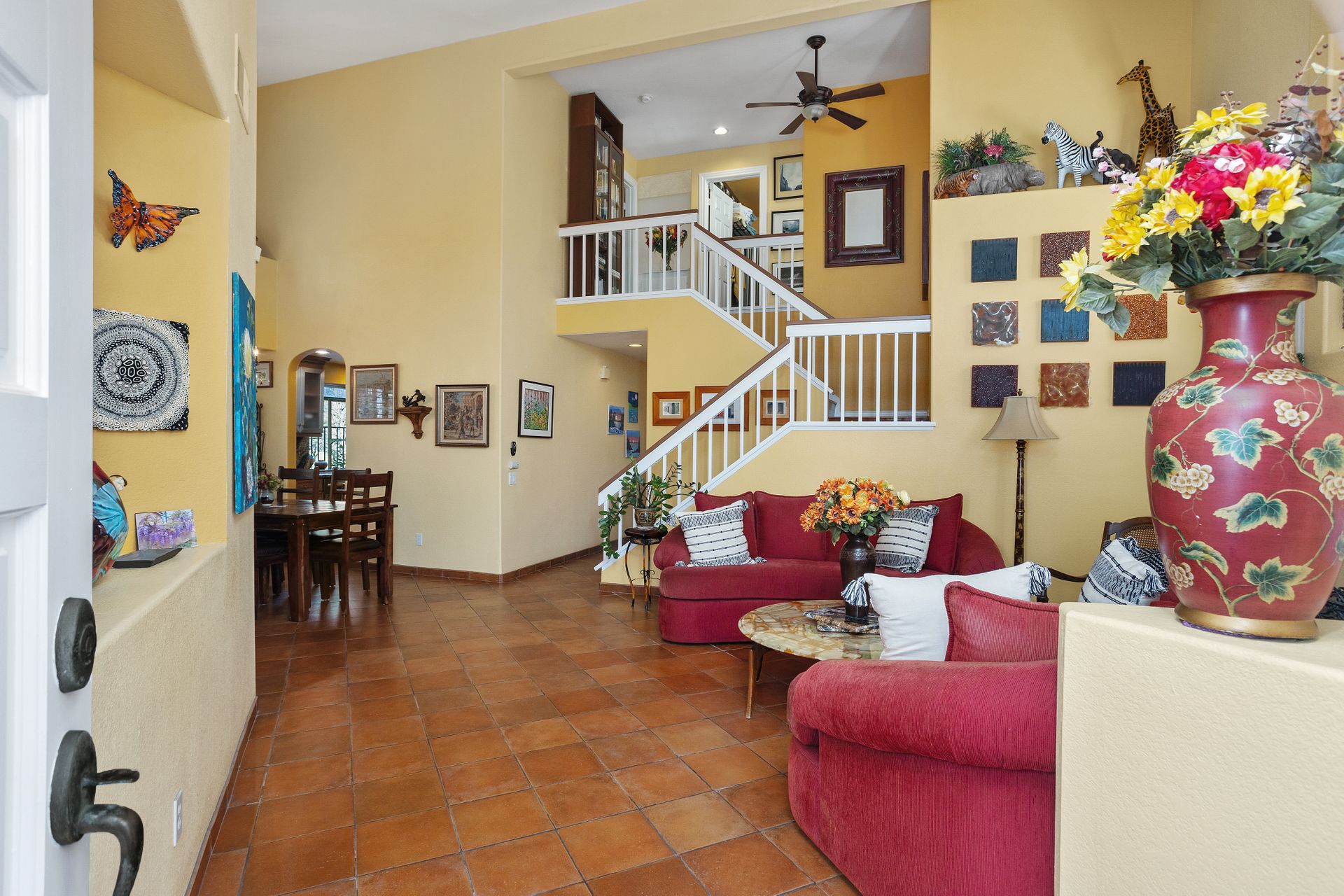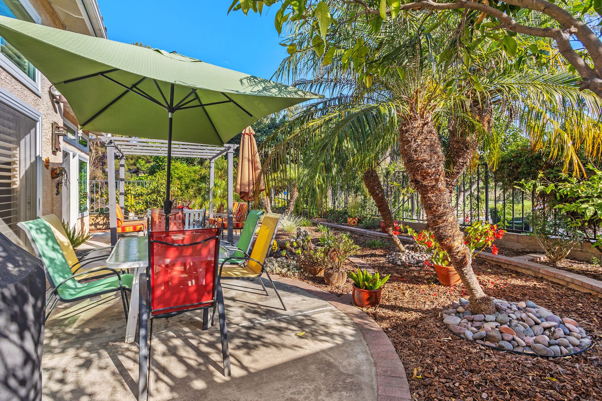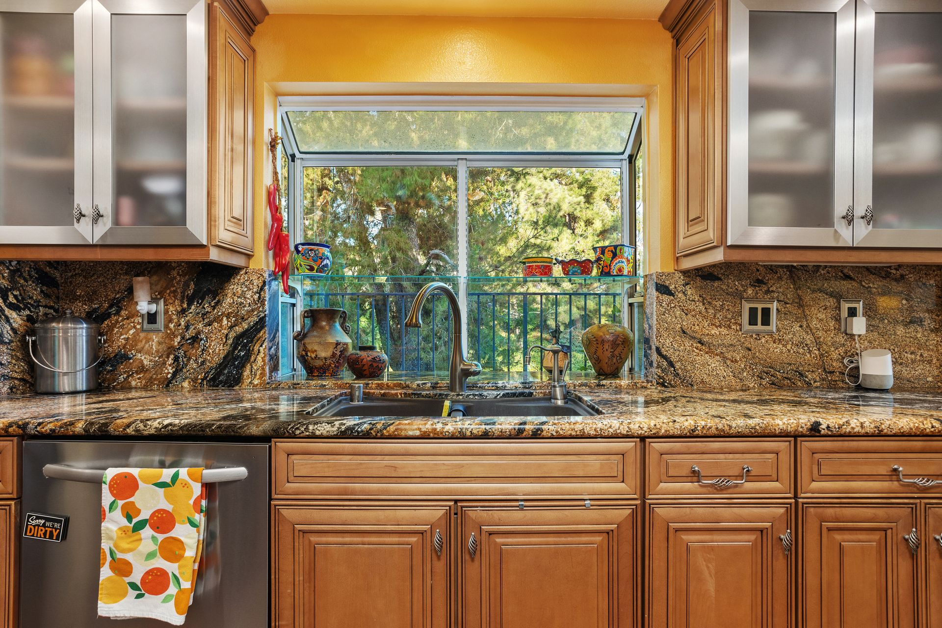 Nestled in the desirable Shadowridge community, this charming 'Lido' home sits peacefully on an elevated cul-de-sac lot, offering a serene retreat. A charming gated courtyard welcomes you into a cheerful and functional home. The primary suite is conveniently located on the main level, while two spacious bedrooms await upstairs. The remodeled kitchen boasts high-end KitchenAid appliances, including an Armoire refrigerator and a six-burner gas range with a griddle. Custom cabinetry, complete with roll-out drawers and a corner Lazy Susan, adds both style and functionality. A garden window invites ample sunlight and custom overhead and under-cabinet lighting creates a warm ambiance.