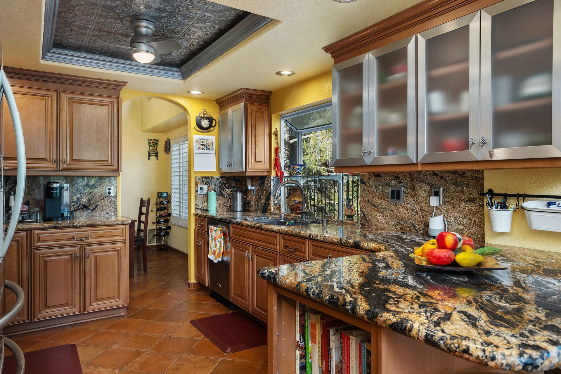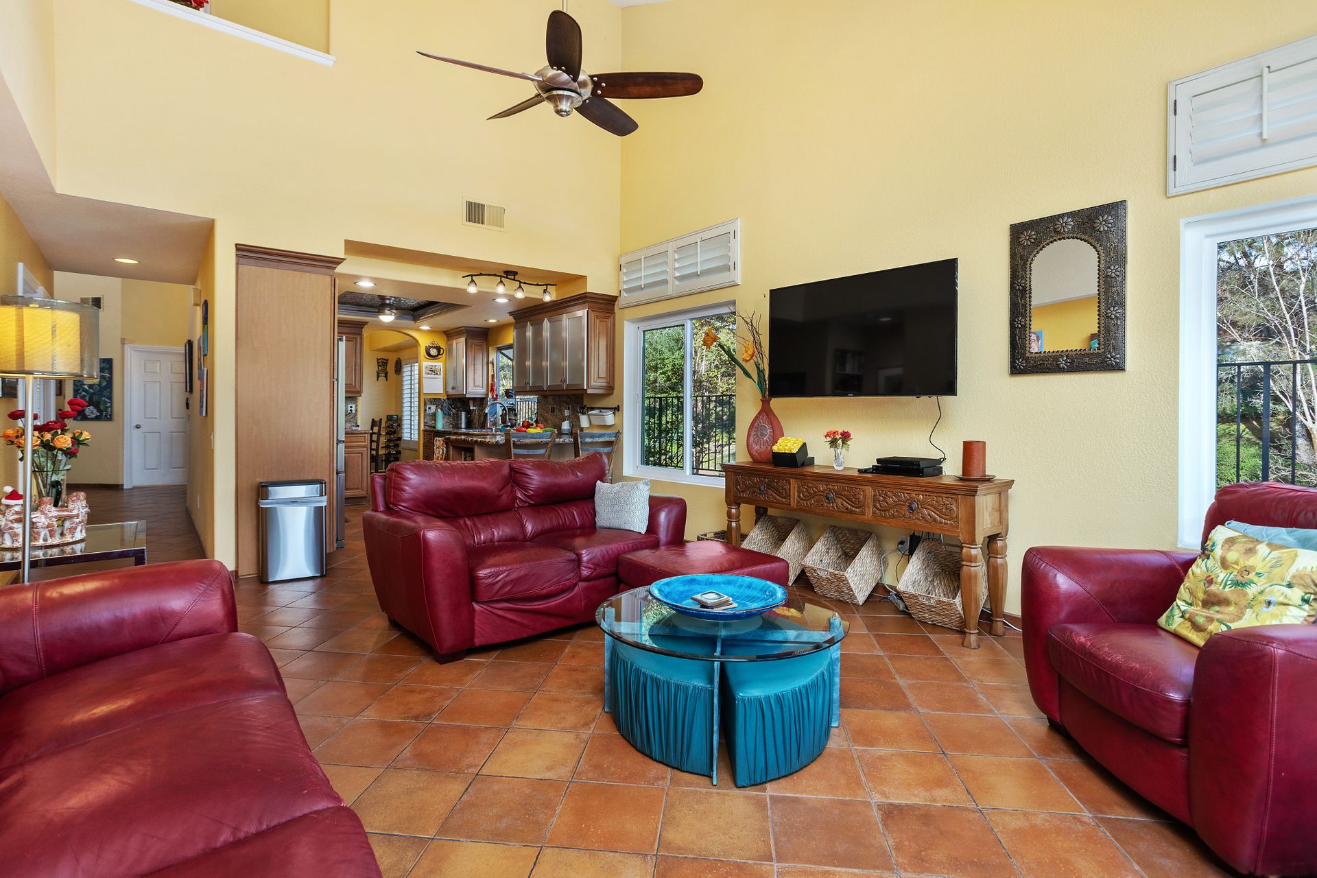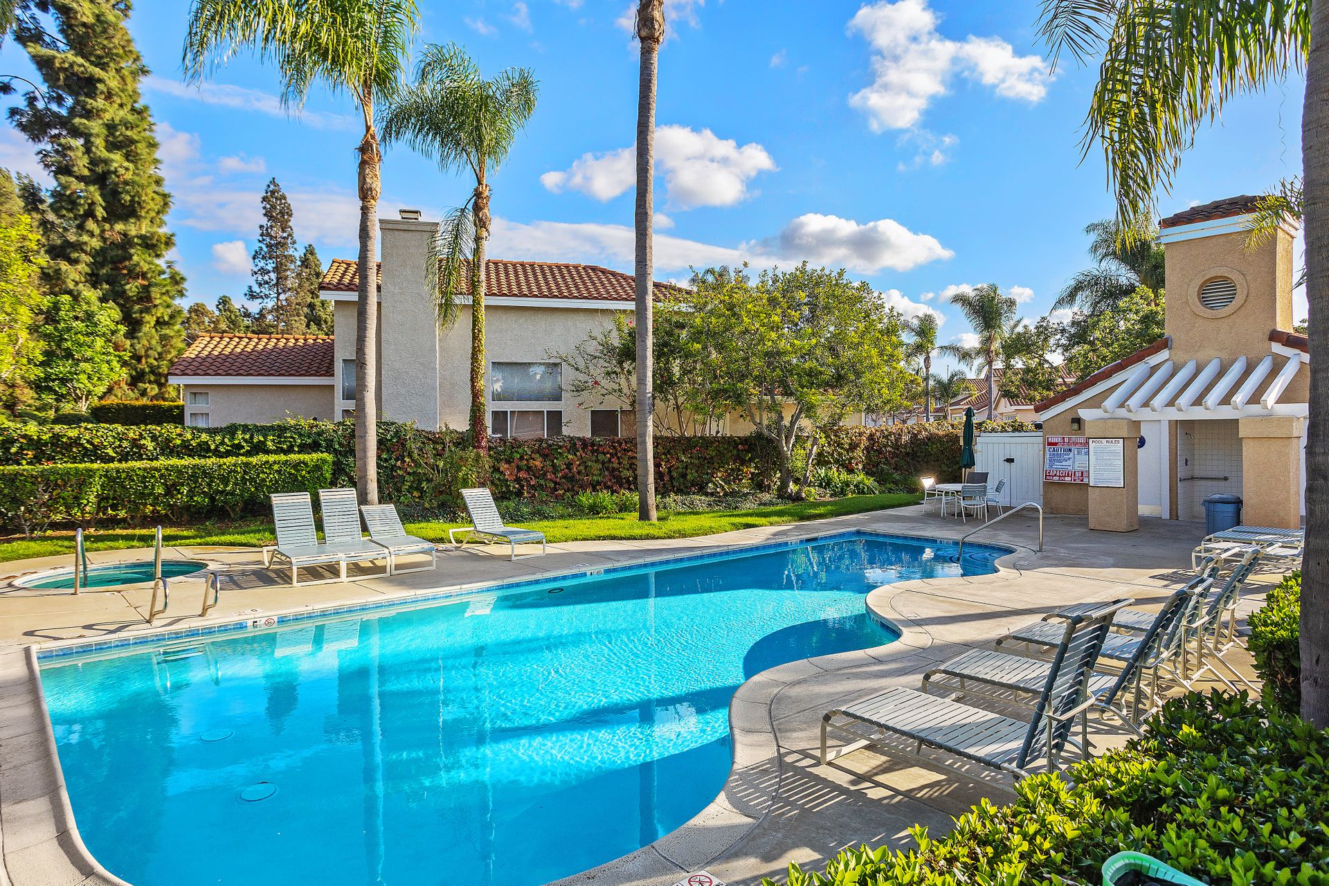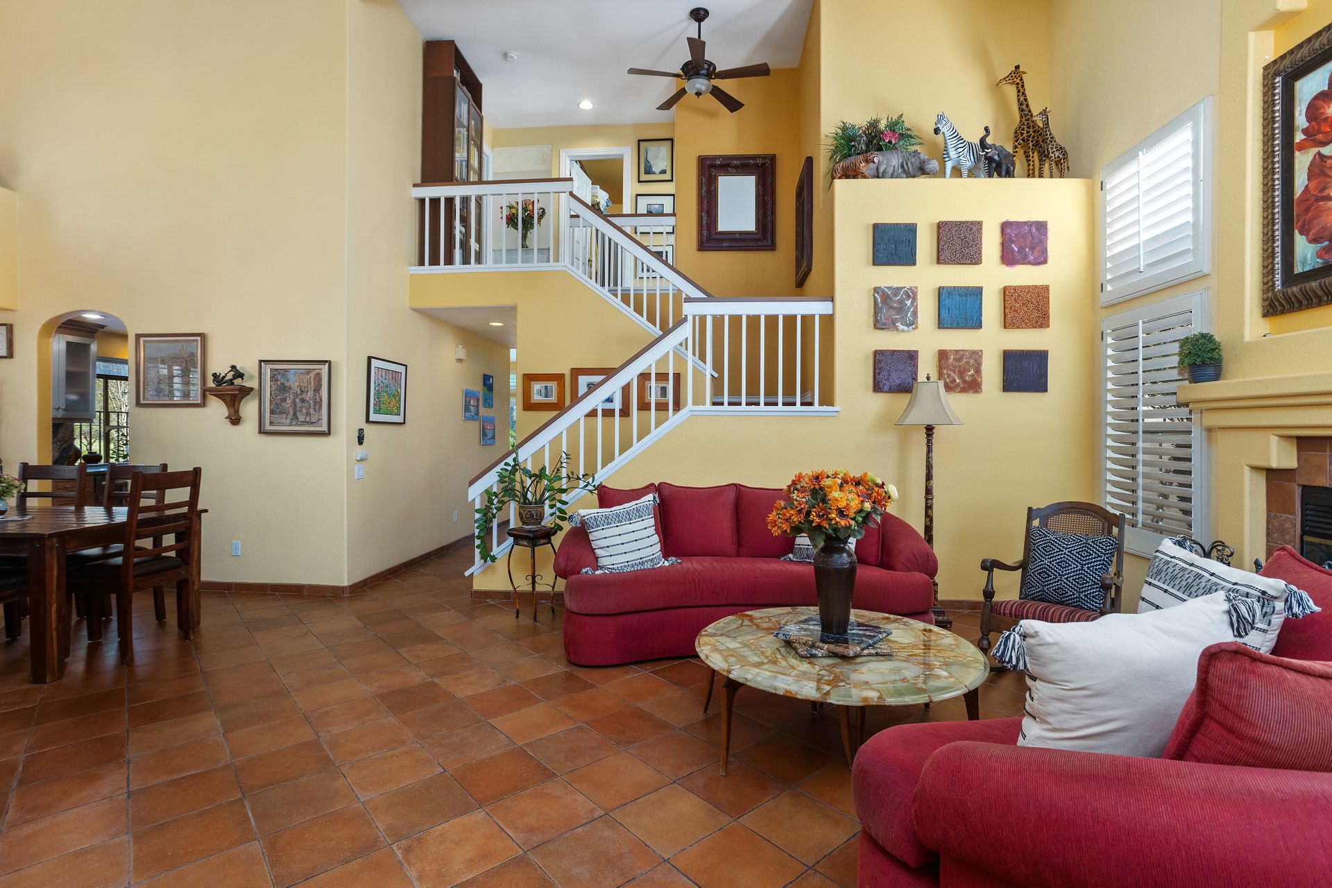 Nestled in the desirable Shadowridge community, this charming 'Lido' home sits peacefully on an elevated cul-de-sac lot, offering a serene retreat. A charming gated courtyard welcomes you into a cheerful and functional home. The primary suite is conveniently located on the main level, while two spacious bedrooms await upstairs. The remodeled kitchen boasts high-end KitchenAid appliances, including an Armoire refrigerator and a six-burner gas range with a griddle. Custom cabinetry, complete with roll-out drawers and a corner Lazy Susan, adds both style and functionality. A garden window invites ample sunlight and custom overhead and under-cabinet lighting creates a warm ambiance.