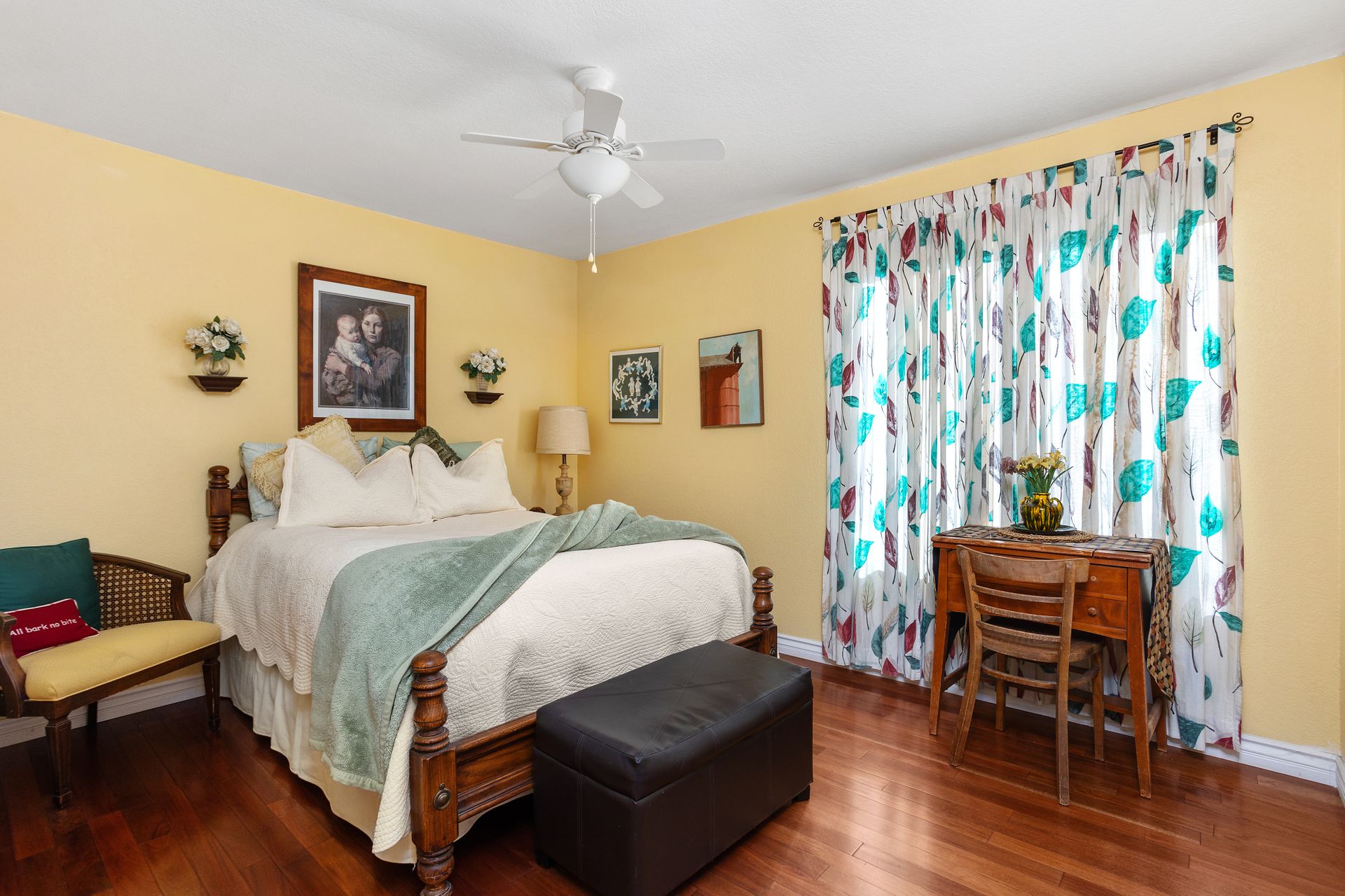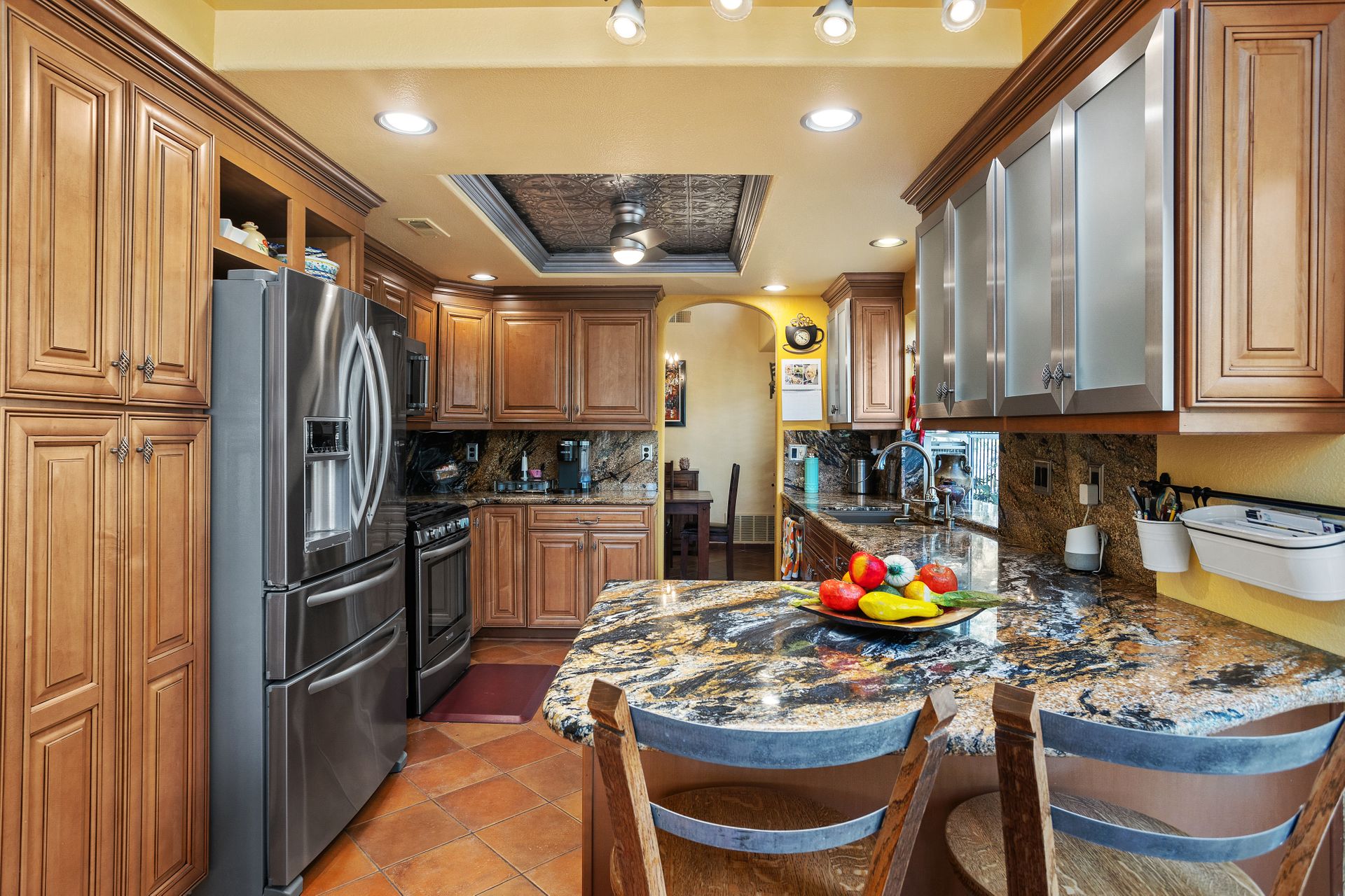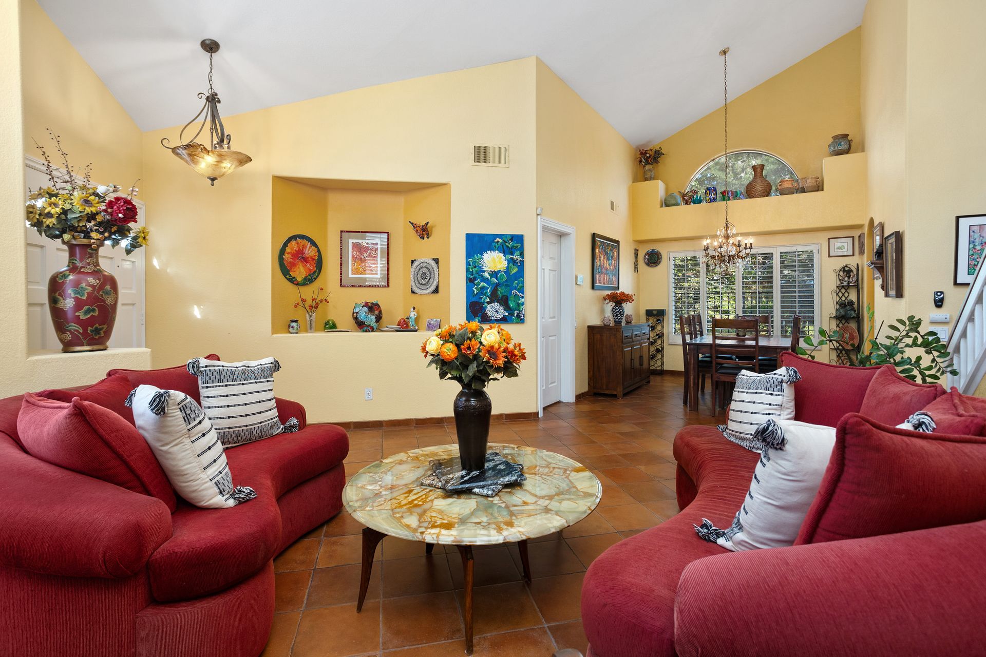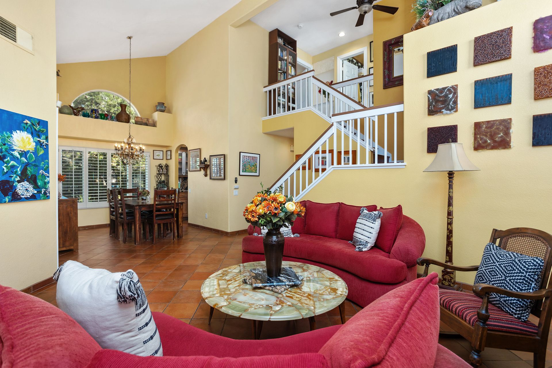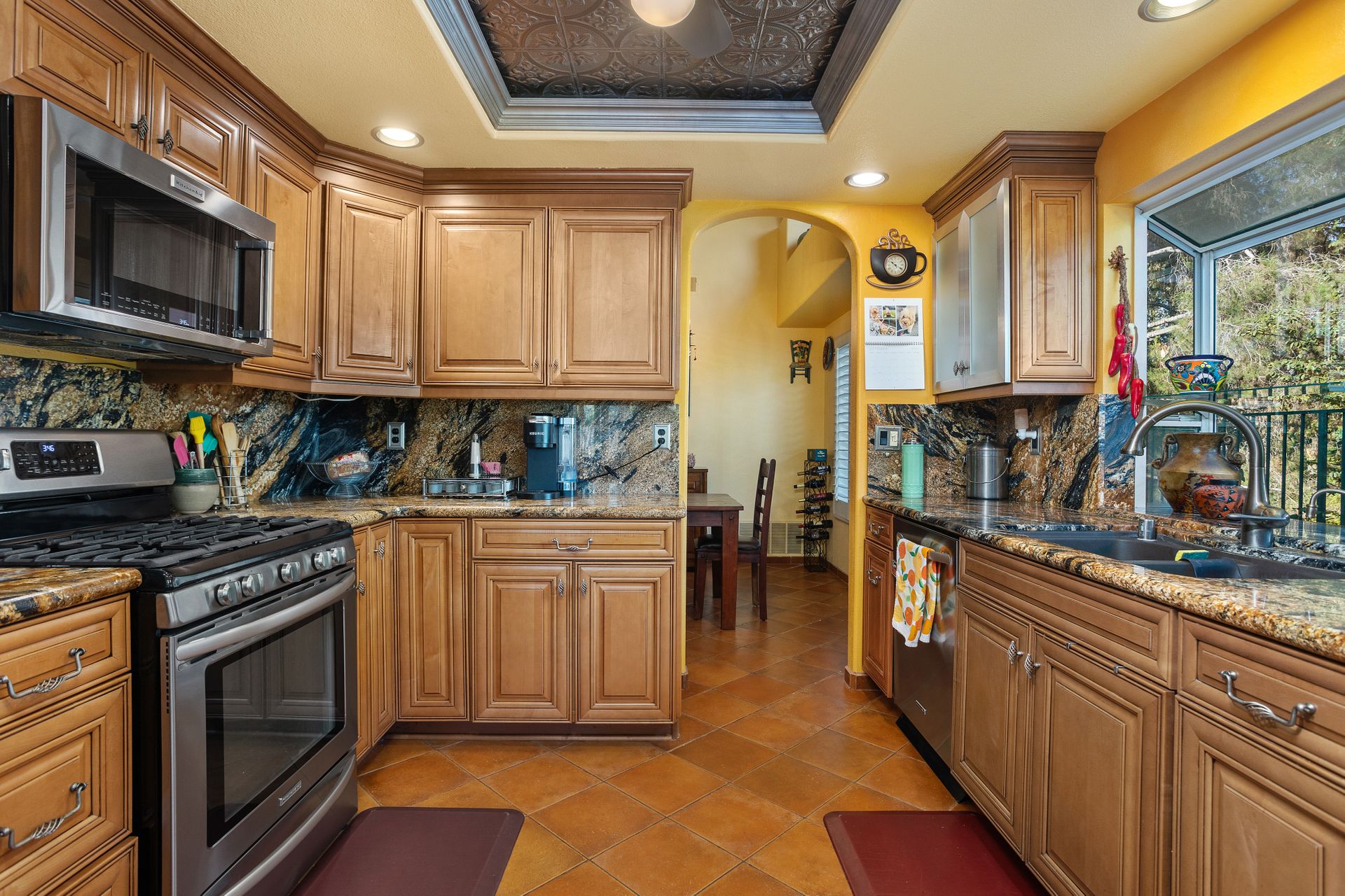 Nestled in the desirable Shadowridge community, this charming 'Lido' home sits peacefully on an elevated cul-de-sac lot, offering a serene retreat. A charming gated courtyard welcomes you into a cheerful and functional home. The primary suite is conveniently located on the main level, while two spacious bedrooms await upstairs. The remodeled kitchen boasts high-end KitchenAid appliances, including an Armoire refrigerator and a six-burner gas range with a griddle. Custom cabinetry, complete with roll-out drawers and a corner Lazy Susan, adds both style and functionality. A garden window invites ample sunlight and custom overhead and under-cabinet lighting creates a warm ambiance.