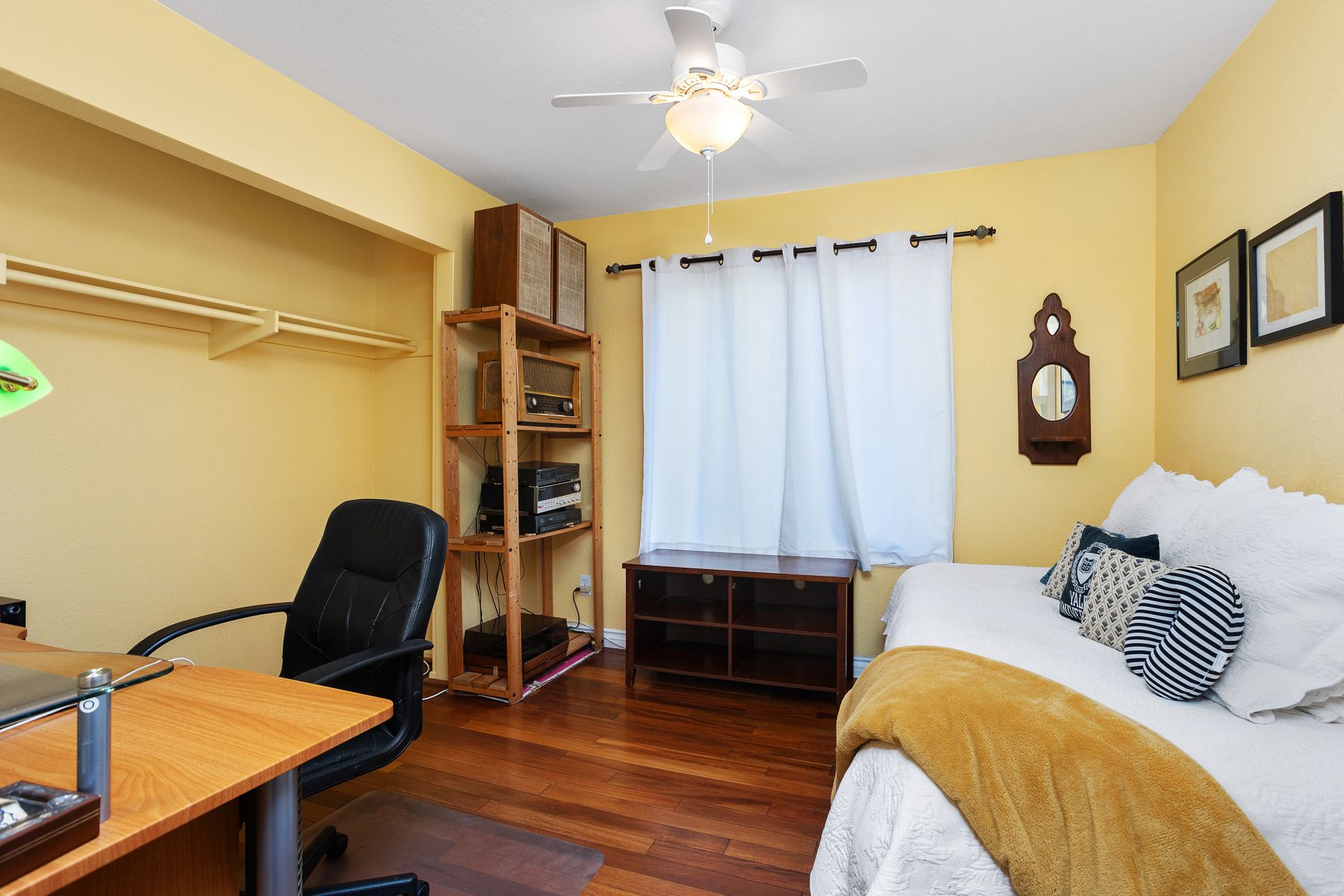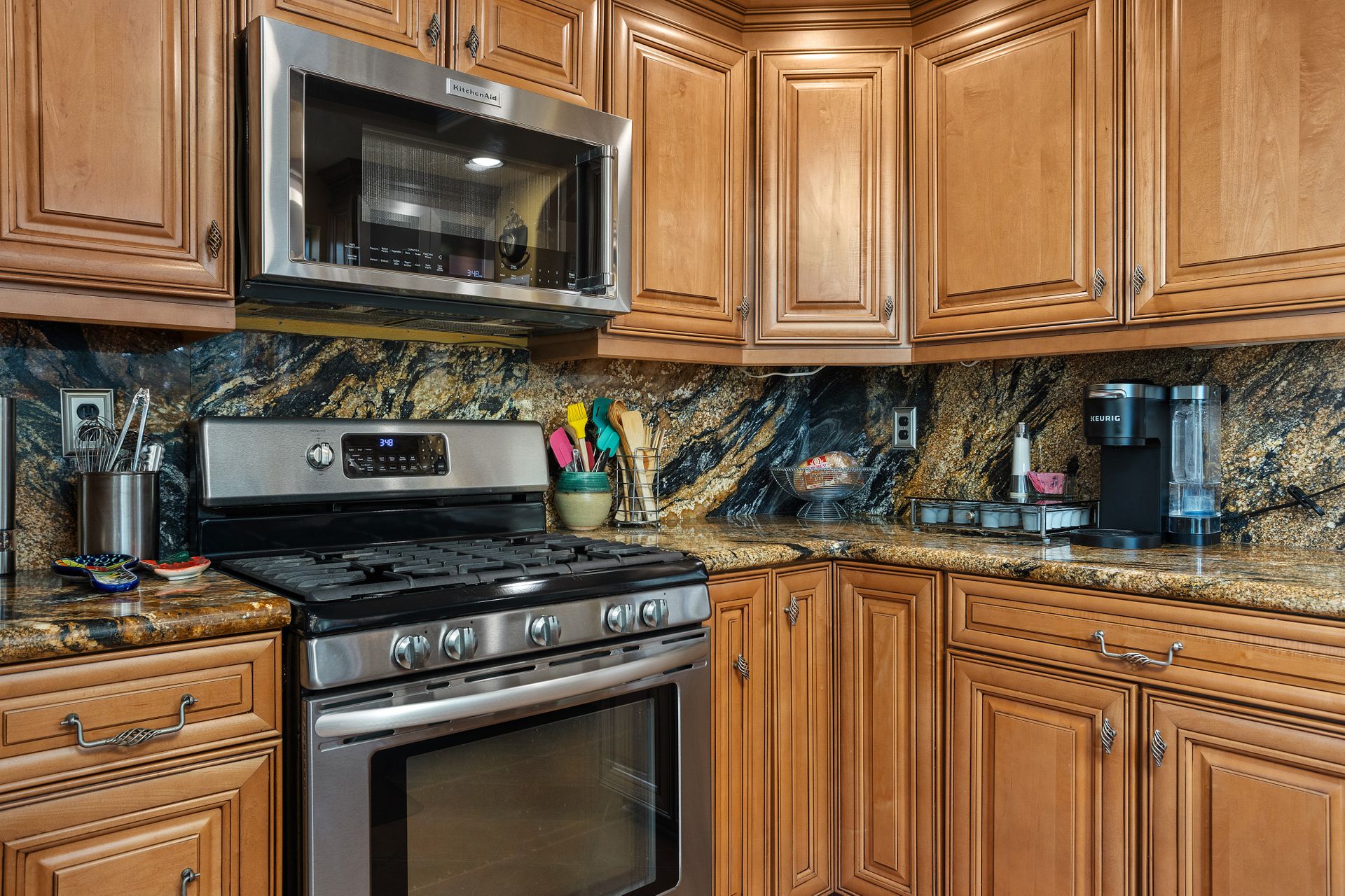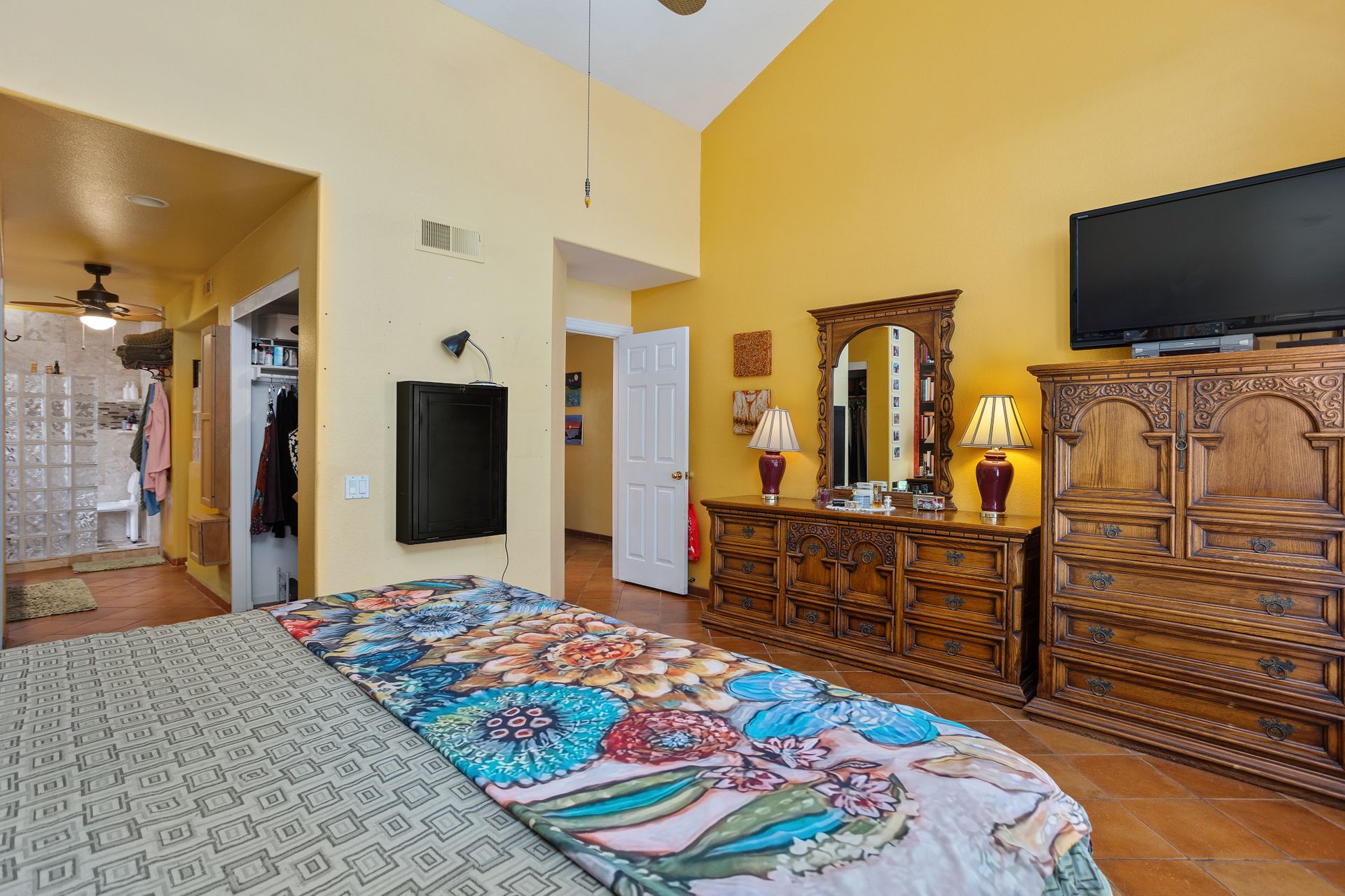 The living room features a cozy fireplace and impressive volume ceilings, enhancing the sense of space. Entertain graciously in the formal dining room! A custom breakfast bar connects the kitchen to the spacious family room, which is complete with newer windows and French doors. Head outside to the delightful backyard, which wraps around to a private side yard, great for enjoying sunny mornings or tranquil afternoons on the patio with beautiful southern views.