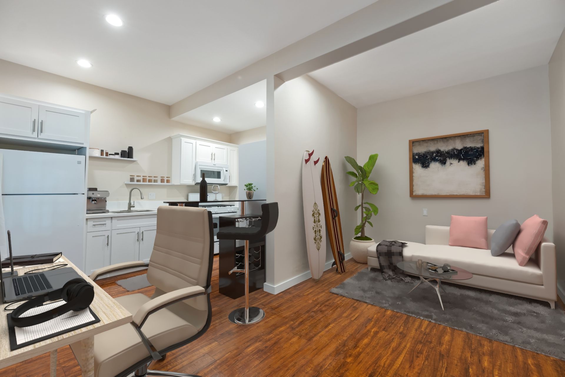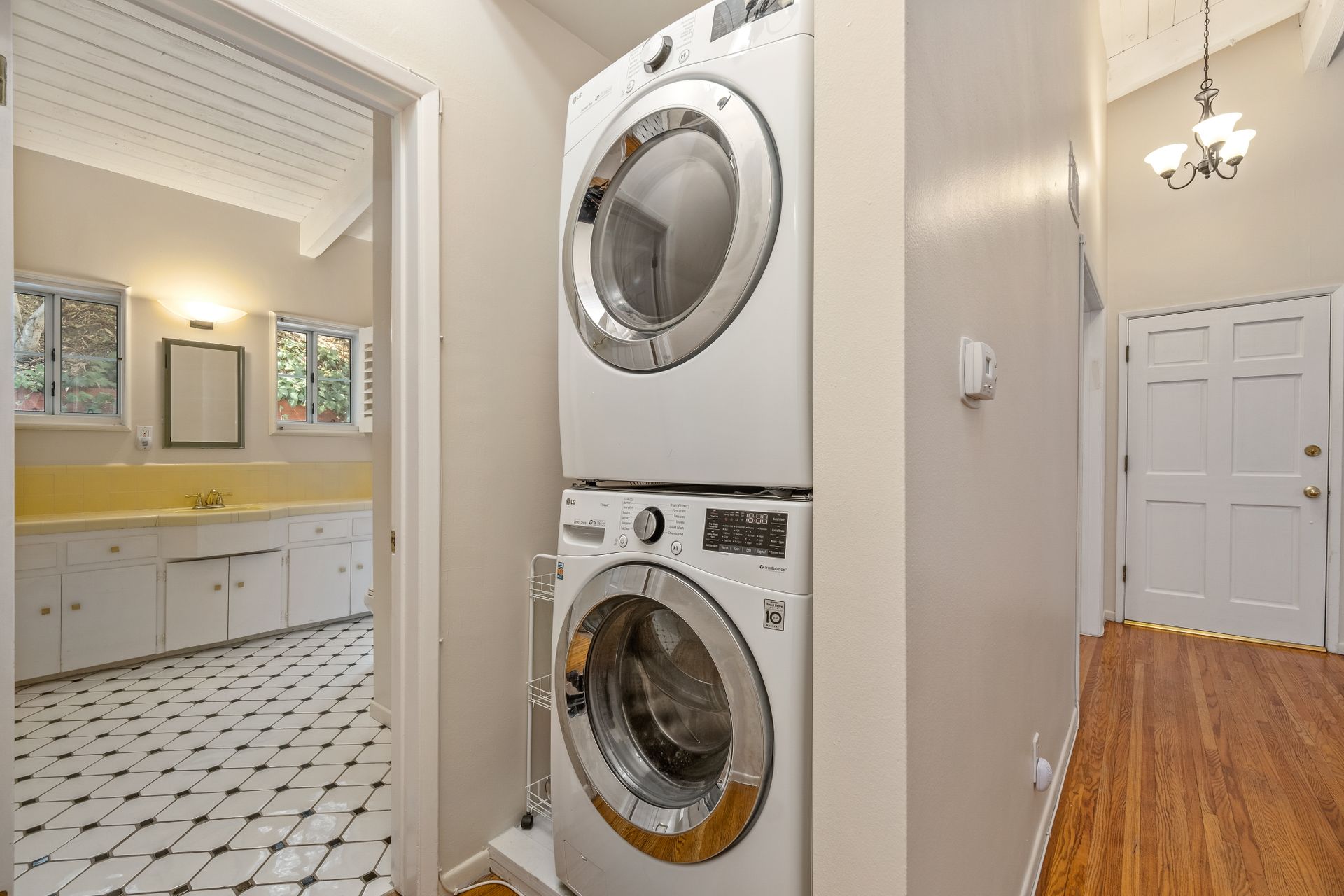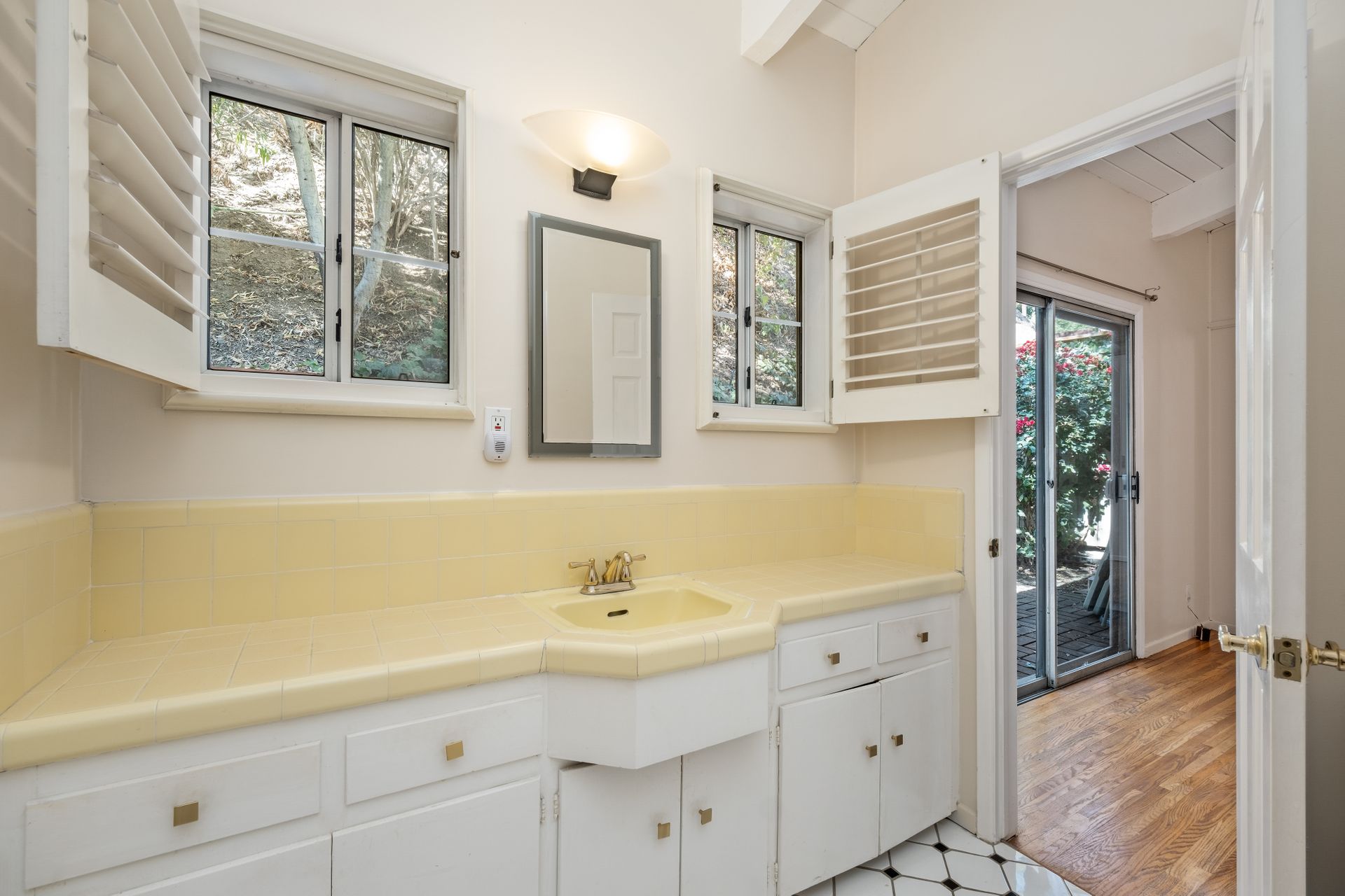 bathroom + den, main home features an open concept floor plan, high vaulted ceilings, wood floors, fireplace, updated bathroom, fenced-in brick patio and tree-top scenic views. Enveloped by nature, this stylish architectural gem provides ideal enjoyment for those who seek entertainment, comfort and tranquility in the highly-coveted canyon environment. The guest house below is a perfect investment opportunity to lease to UCLA doctors/students/professionals or use as an extra bedroom/home office/maid's quarters/in-law suite. Accompanied with its own address, this private, newly designed guest house features a kitchen, washer/dryer in unit, bathroom, bedroom/main room. Within minutes to Ronald Reagan UCLA Medical Center, UCLA, Hotel Bel Air, Sunset Blvd, Beverly Glen Cir, Beverly Hills shops/restaurants, museums and local beaches. Located in Warner School District. This home exudes the finest in Los Angeles living for those who desire a low-maintenance home and easy access to world-class amenities.