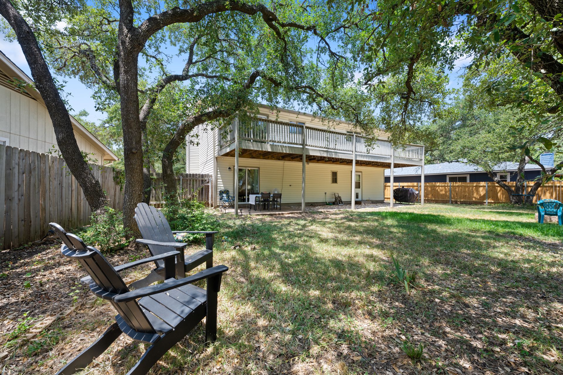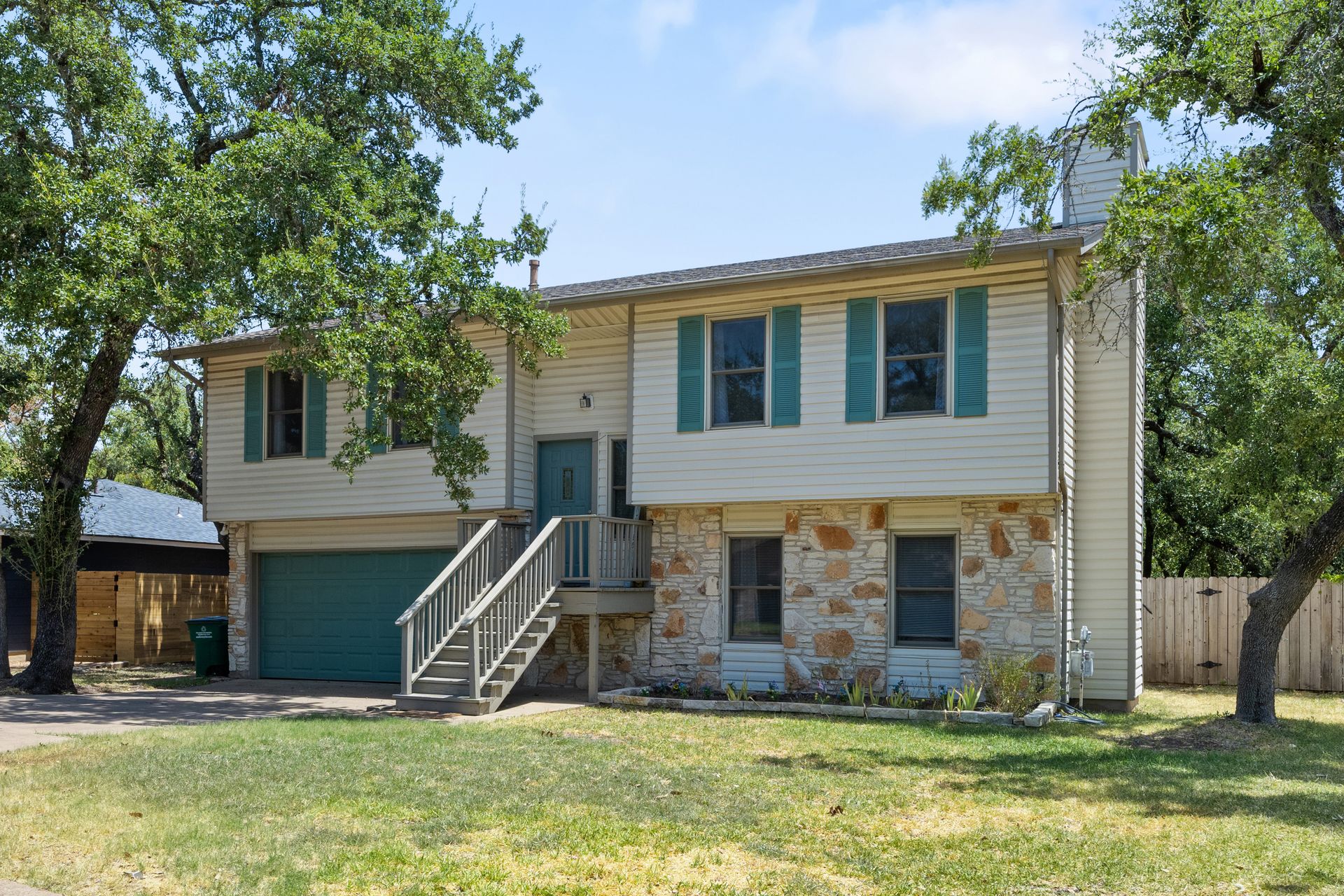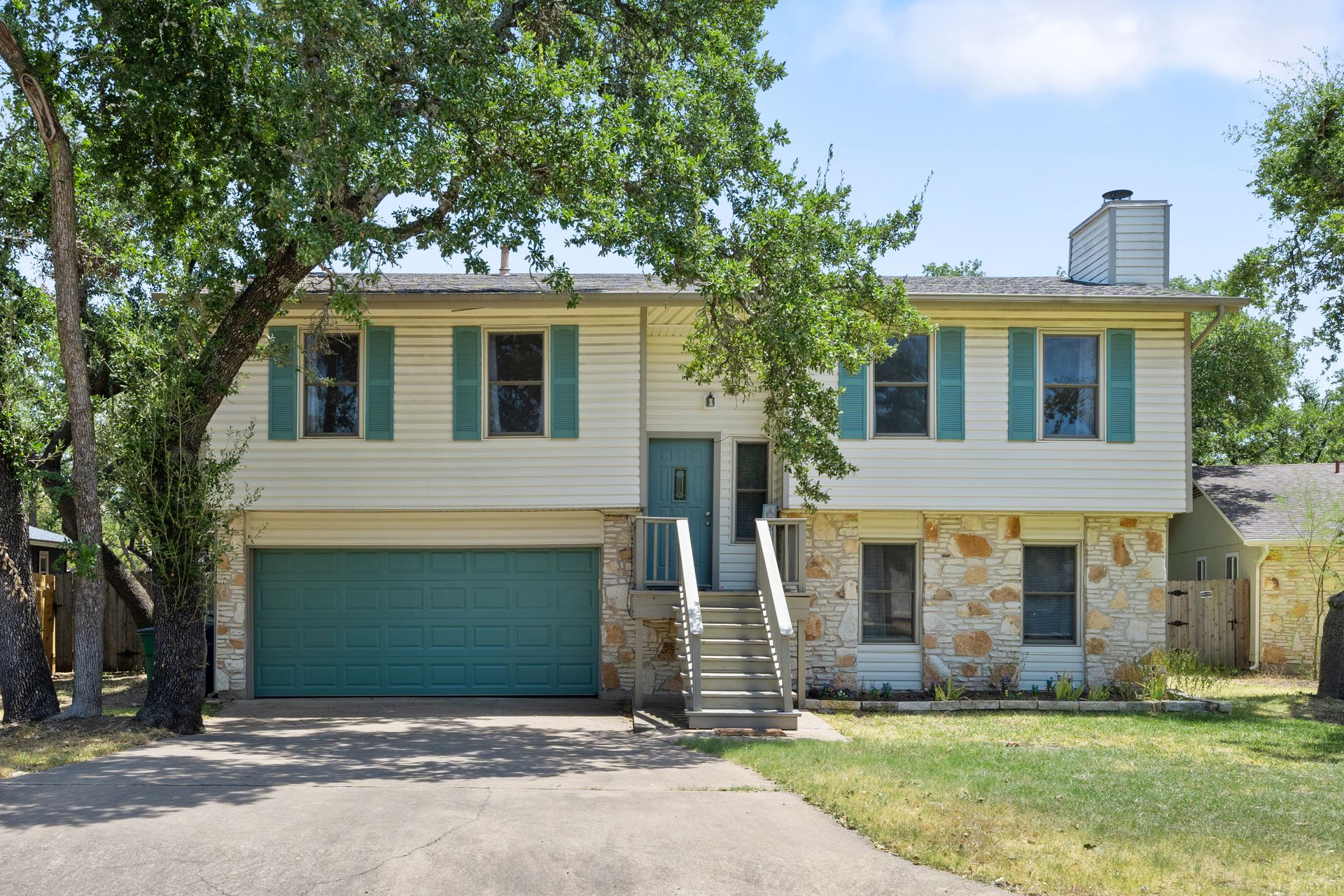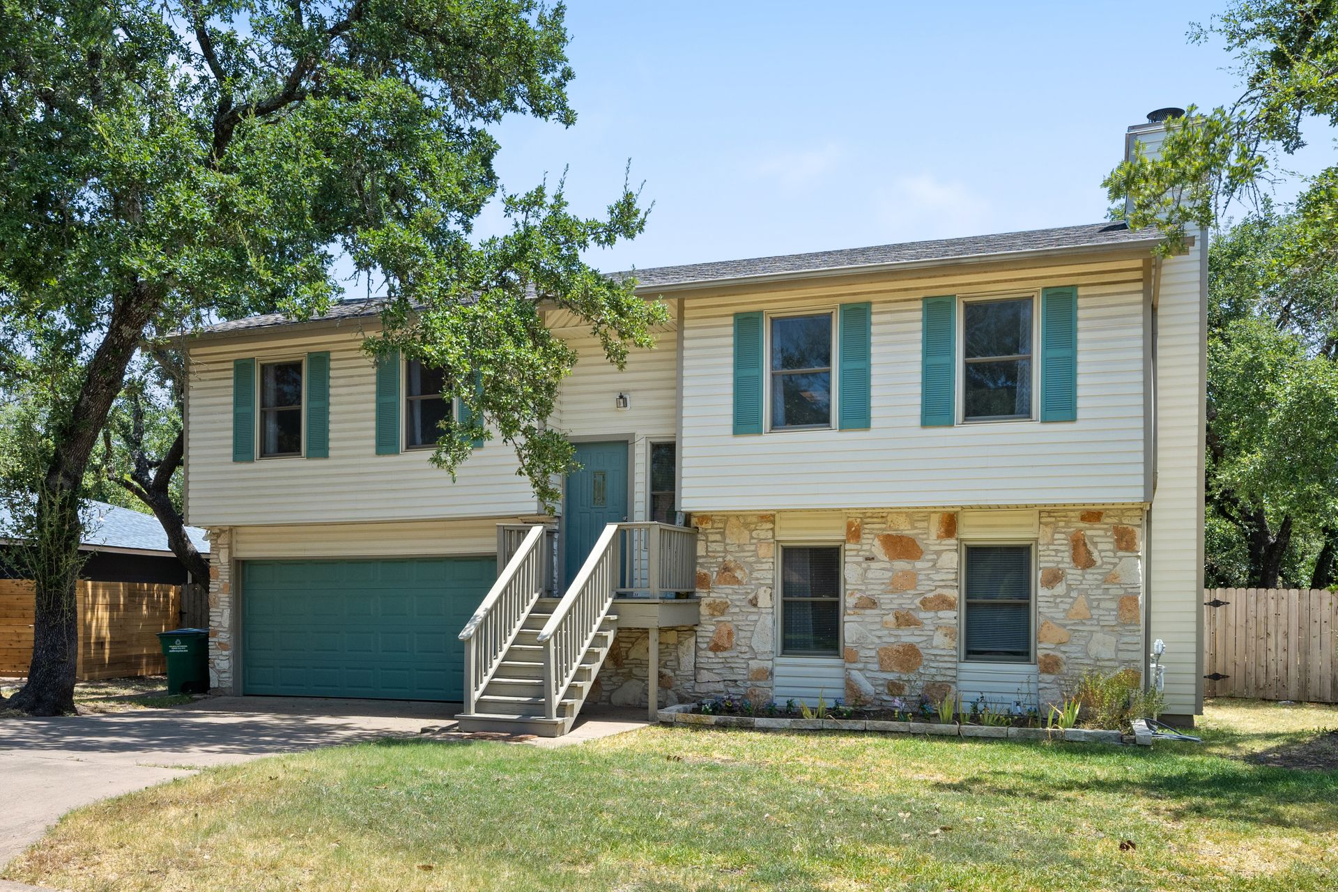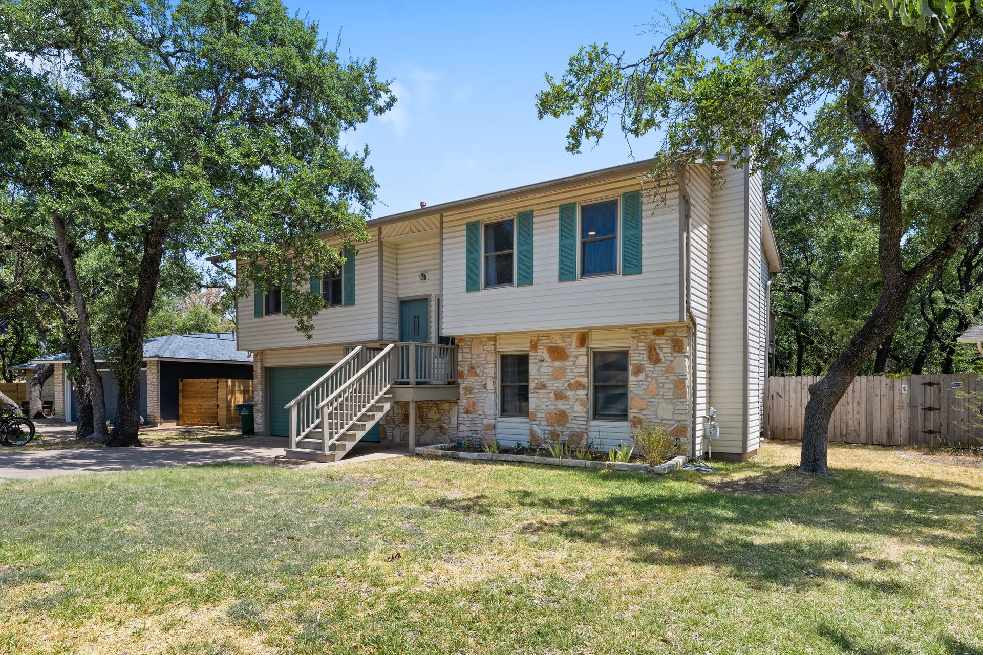 Welcome to a unique living experience in NW Austin! Enter the mezzanine level of your home. Up a half flight of stairs is the main living floor with an open living room into the kitchen and dining areas. The kitchen has been updated with a modern color scheme and finishings. The upper sundeck is accessible from the kitchen dining by glass slider doors. Two generously large secondary bedrooms are on the upper main level and a shared bathroom is updated with a newer toilet, cabinet, counter/sink and dressed with a modern-style mirror. Downstairs is a cozy second living room with wood burning fireplace. The primary bedroom and bath with access to the backyard and large under-deck patio create a lovely private space to relax. The two-car garage houses the laundry room and has an exit door to the backyard. The primary bathroom is updated with new cabinetry, counters/sinks, and modern mirrors to complete the look. Hard floors throughout the home create elegance and livability. Current owners experience very low energy bills due to newer insulated windows and a new HVAC unit. The generous backyard on this roughly 0.324-acre home site is ready for you to make your entertaining oasis among the shade trees. Don’t miss this charming NW Austin Home. Students would attend Round Rock ISD’s West Wood High School, Canyon Vista Middle School, and Caraway Elementary School. No HOA, and nearby parks and hiking trails for outdoor fun.Close to North and NW Austin Tech Employers, quick access to the Domain (12 minutes) and Downtown Austin (20 minutes). Information deemed true and reliable but Buyer or Buyer's Agent to confirm square footage, lot size, year built, taxes, zoning, restrictions, schools, etc. Take a Look: https://s3.amazonaws.com/video.creativeedge.tv/757166-1.mp4