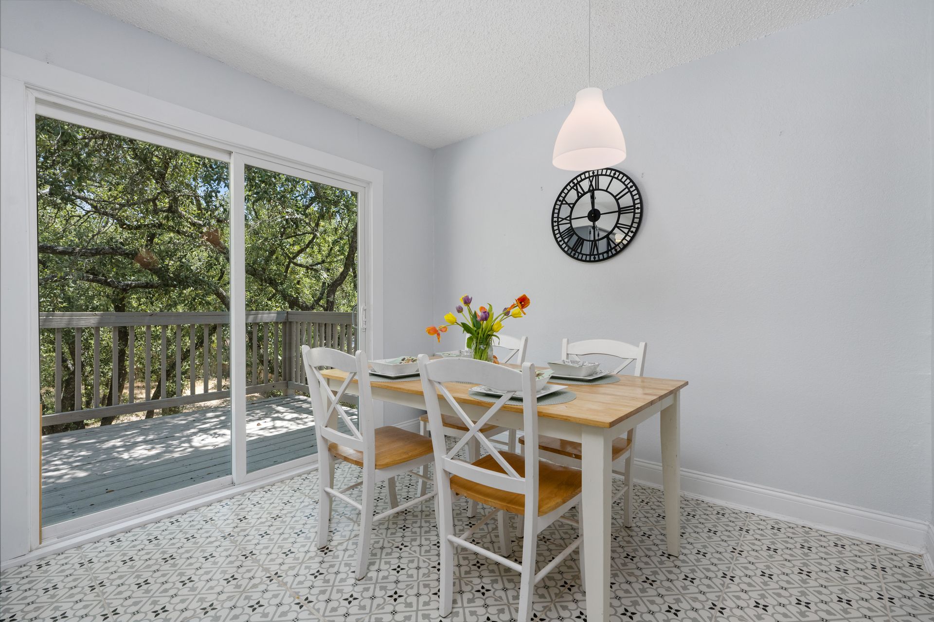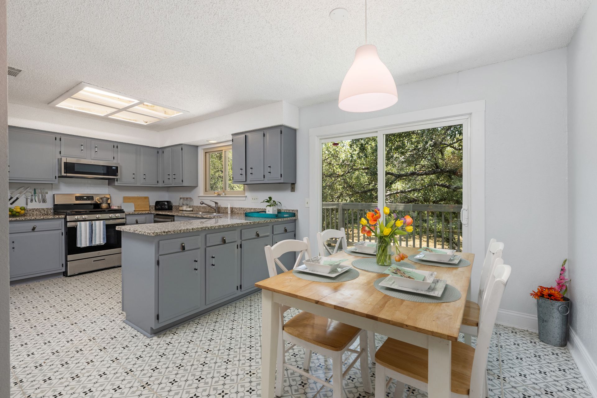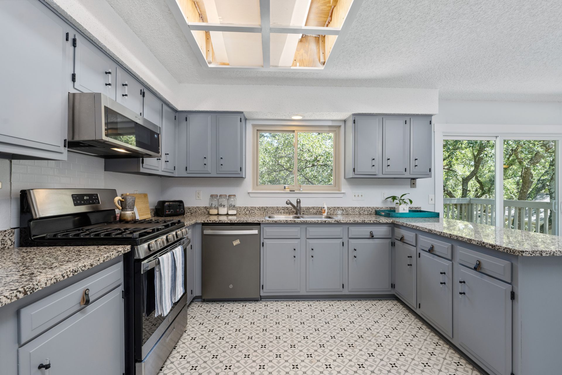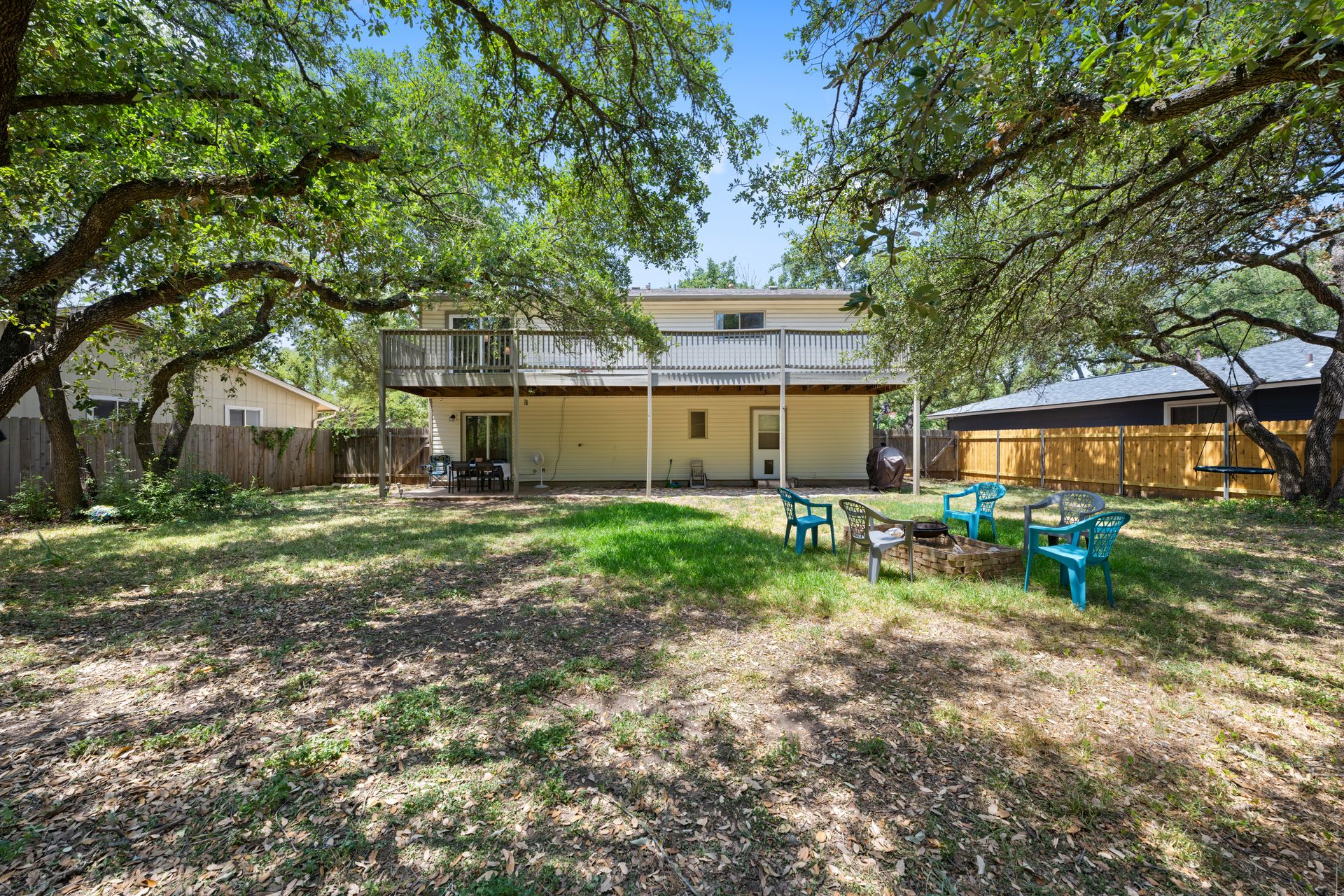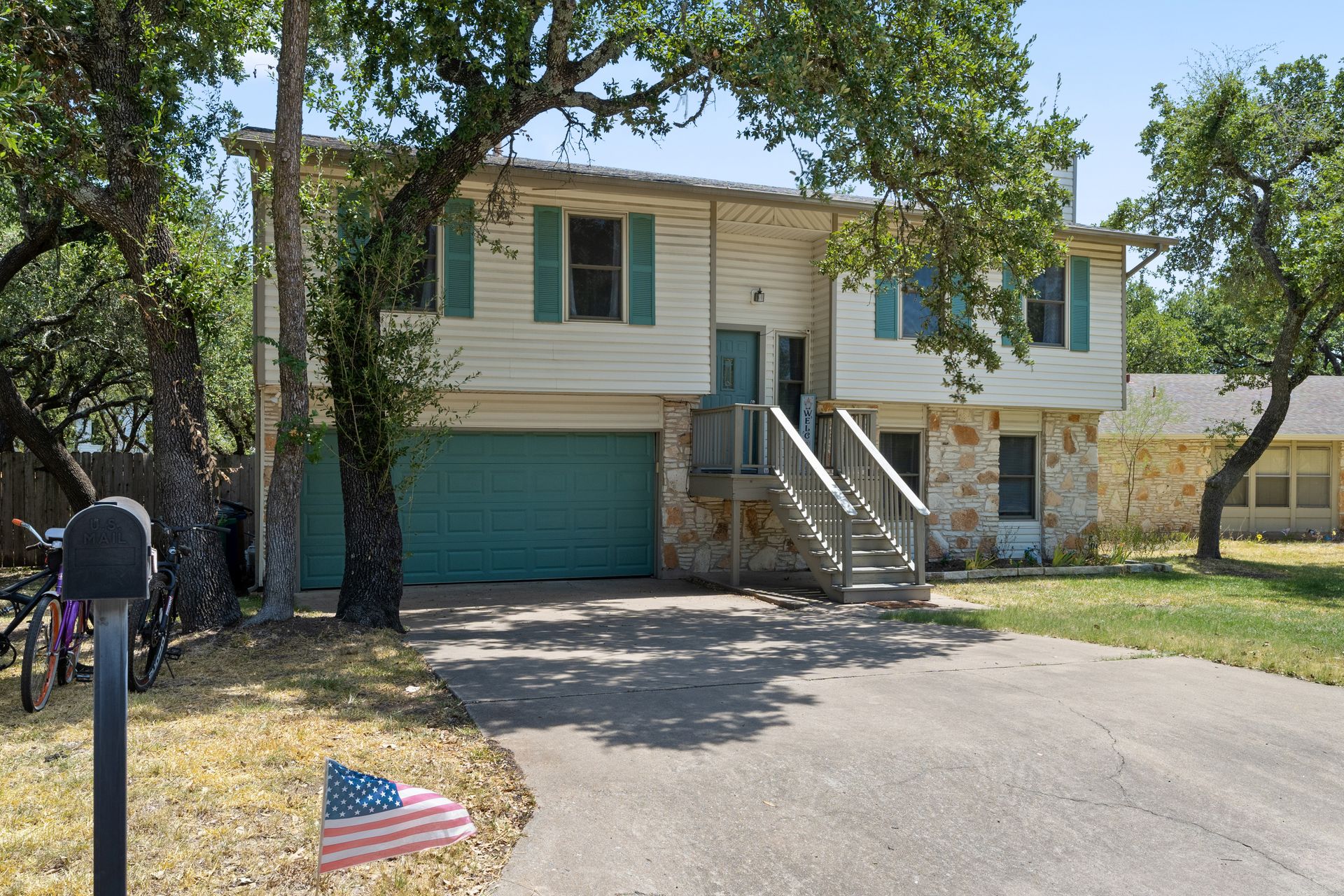 Welcome to a unique living experience in NW Austin! Enter the mezzanine level of your home. Up a half flight of stairs is the main living floor with an open living room into the kitchen and dining areas. The kitchen has been updated with a modern color scheme and finishings. The upper sundeck is accessible from the kitchen dining by glass slider doors. Two generously large secondary bedrooms are on the upper main level and a shared bathroom is updated with a newer toilet, cabinet, counter/sink and dressed with a modern-style mirror. Downstairs is a cozy second living room with wood burning fireplace. The primary bedroom and bath with access to the backyard and large under-deck patio create a lovely private space to relax. The two-car garage houses the laundry room and has an exit door to the backyard. The primary bathroom is updated with new cabinetry, counters/sinks, and modern mirrors to complete the look. Hard floors throughout the home create elegance and livability. Current owners experience very low energy bills due to newer insulated windows and a new HVAC unit. The generous backyard on this roughly 0.324-acre home site is ready for you to make your entertaining oasis among the shade trees. Don’t miss this charming NW Austin Home. Students would attend Round Rock ISD’s West Wood High School, Canyon Vista Middle School, and Caraway Elementary School. No HOA, and nearby parks and hiking trails for outdoor fun.Close to North and NW Austin Tech Employers, quick access to the Domain (12 minutes) and Downtown Austin (20 minutes). Information deemed true and reliable but Buyer or Buyer's Agent to confirm square footage, lot size, year built, taxes, zoning, restrictions, schools, etc. Take a Look: https://s3.amazonaws.com/video.creativeedge.tv/757166-1.mp4