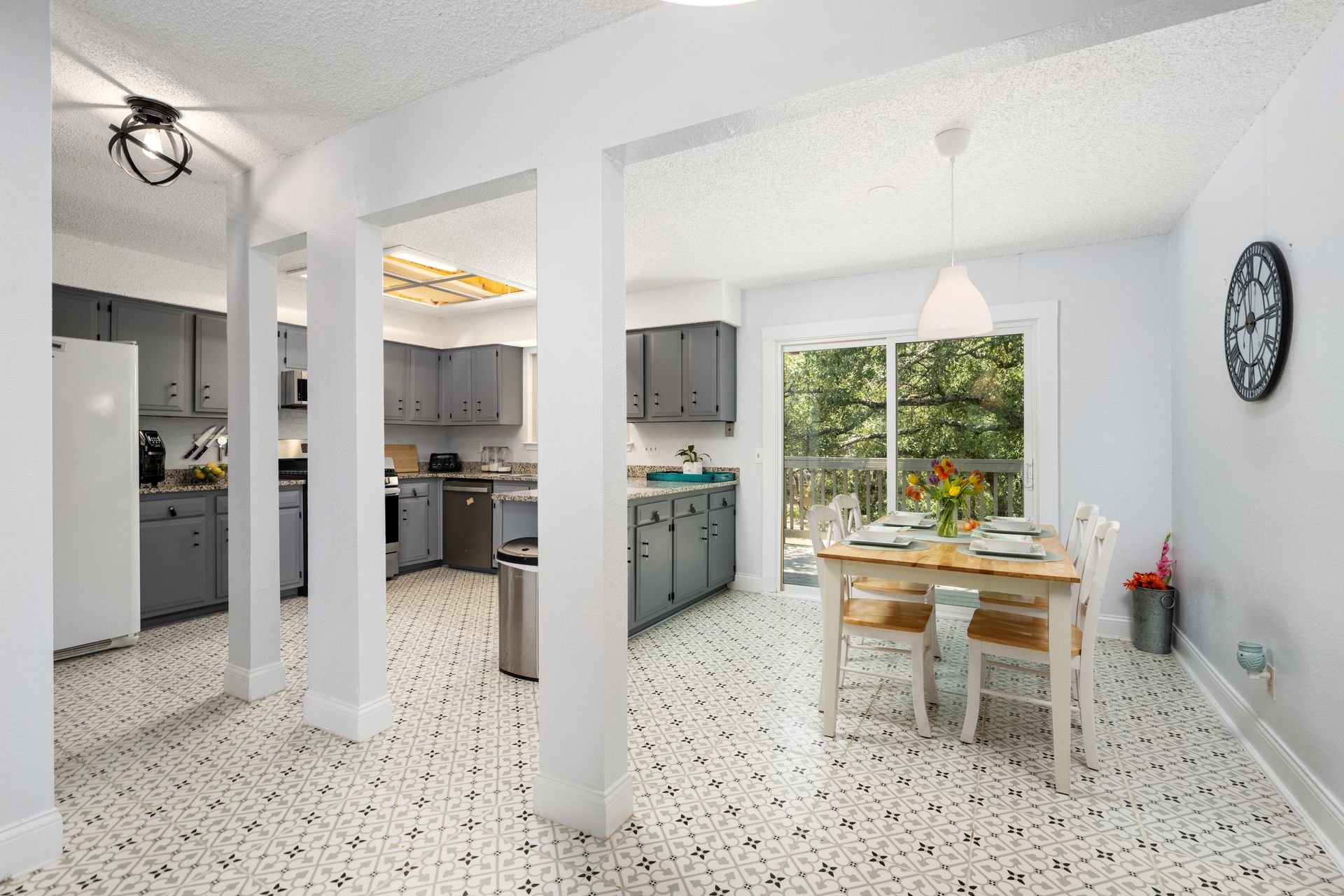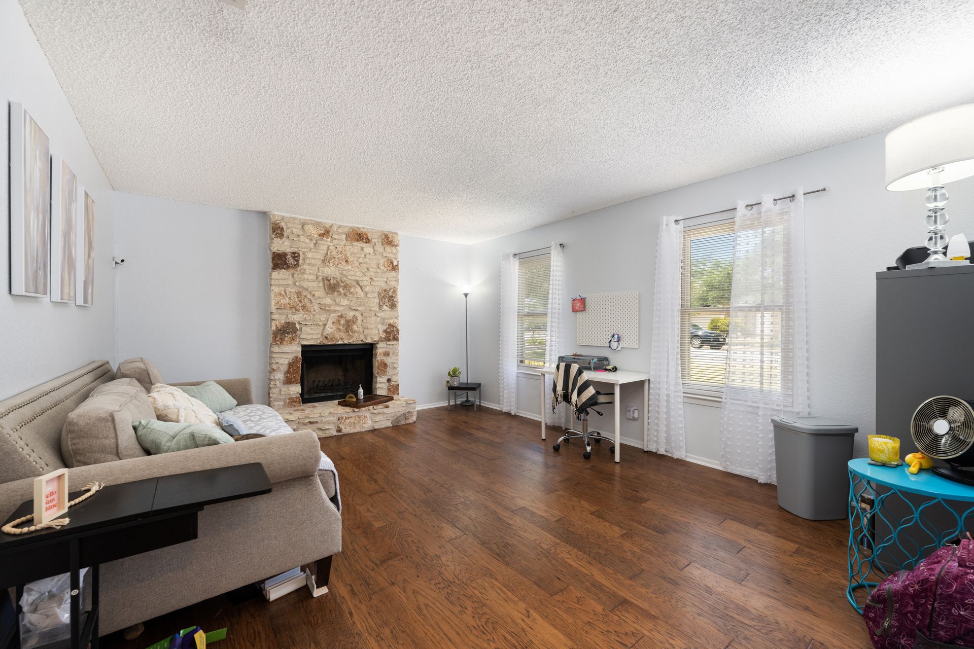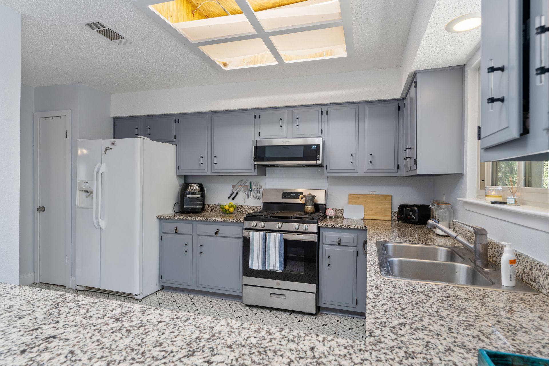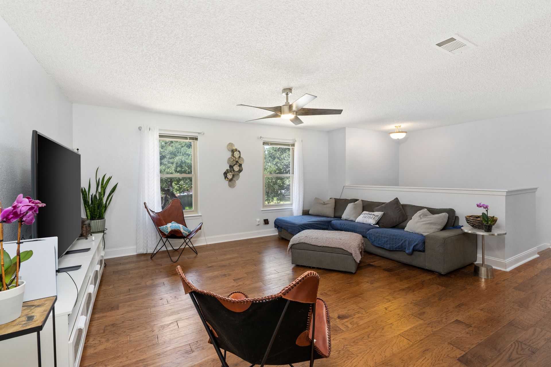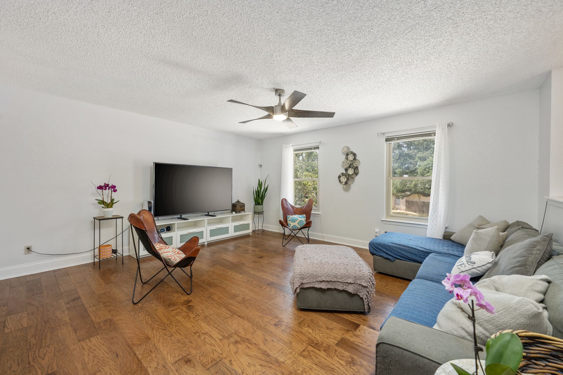 Welcome to a unique living experience in NW Austin! Enter the mezzanine level of your home. Up a half flight of stairs is the main living floor with an open living room into the kitchen and dining areas. The kitchen has been updated with a modern color scheme and finishings. The upper sundeck is accessible from the kitchen dining by glass slider doors. Two generously large secondary bedrooms are on the upper main level and a shared bathroom is updated with a newer toilet, cabinet, counter/sink and dressed with a modern-style mirror. Downstairs is a cozy second living room with wood burning fireplace. The primary bedroom and bath with access to the backyard and large under-deck patio create a lovely private space to relax. The two-car garage houses the laundry room and has an exit door to the backyard. The primary bathroom is updated with new cabinetry, counters/sinks, and modern mirrors to complete the look. Hard floors throughout the home create elegance and livability. Current owners experience very low energy bills due to newer insulated windows and a new HVAC unit. The generous backyard on this roughly 0.324-acre home site is ready for you to make your entertaining oasis among the shade trees. Don’t miss this charming NW Austin Home. Students would attend Round Rock ISD’s West Wood High School, Canyon Vista Middle School, and Caraway Elementary School. No HOA, and nearby parks and hiking trails for outdoor fun.Close to North and NW Austin Tech Employers, quick access to the Domain (12 minutes) and Downtown Austin (20 minutes). Information deemed true and reliable but Buyer or Buyer's Agent to confirm square footage, lot size, year built, taxes, zoning, restrictions, schools, etc. Take a Look: https://s3.amazonaws.com/video.creativeedge.tv/757166-1.mp4
