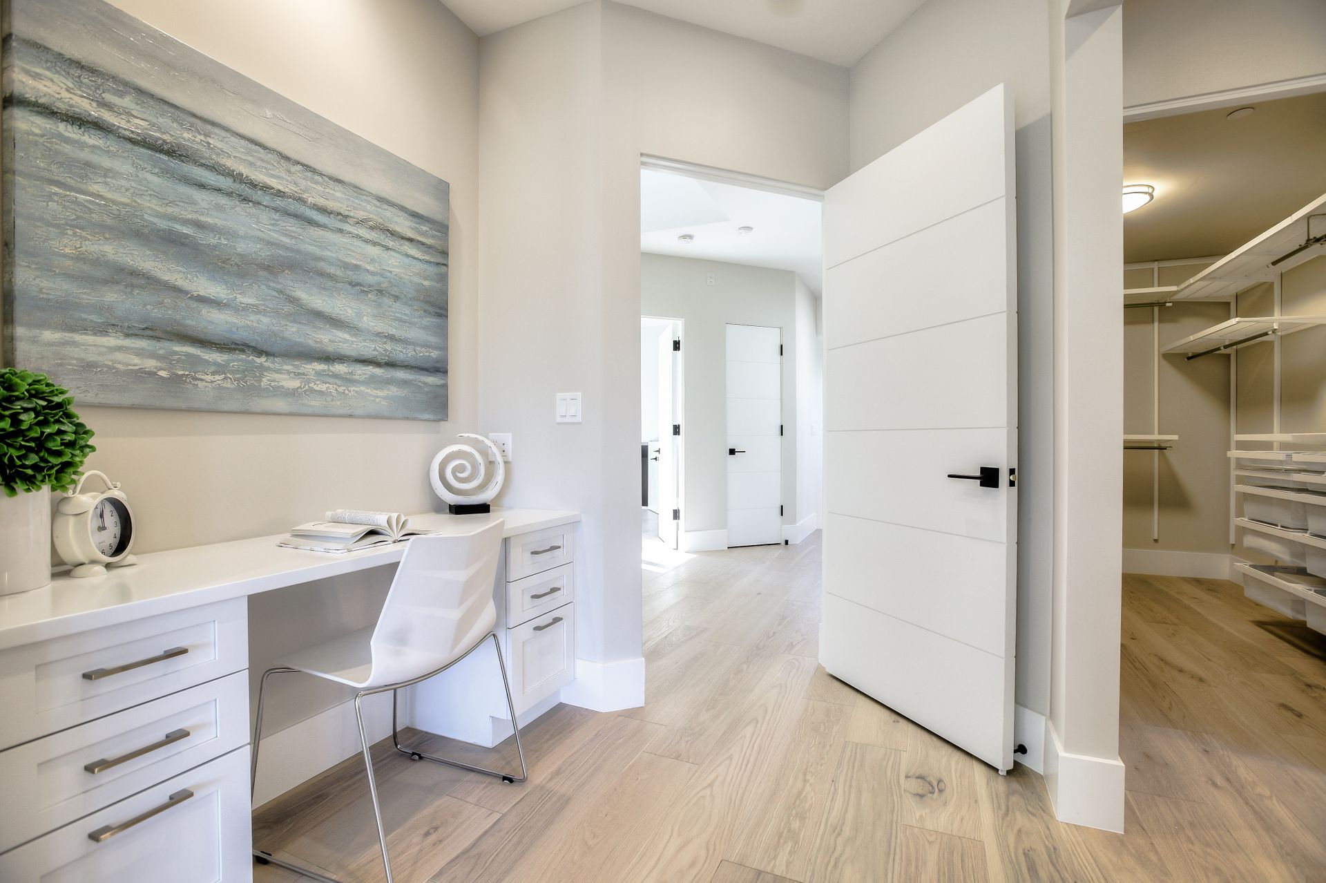 Upstairs, the oversized master suite features a desk area in the entry, an extra-large walk-in closet and a spa-like bathroom with a soaking tub. Two bedrooms, a Jack-and-Jill bathroom and a laundry room round off the upstairs.