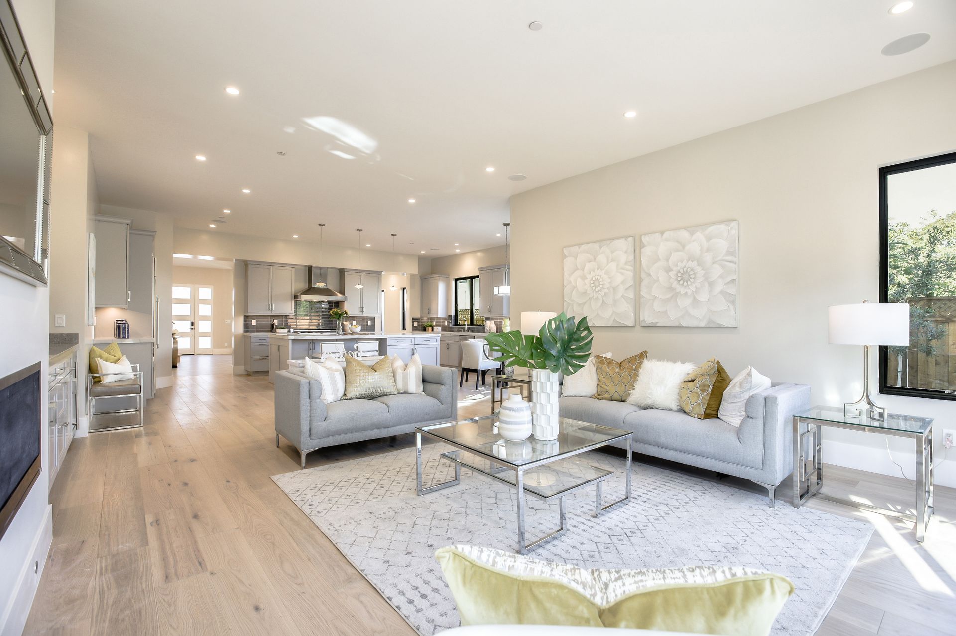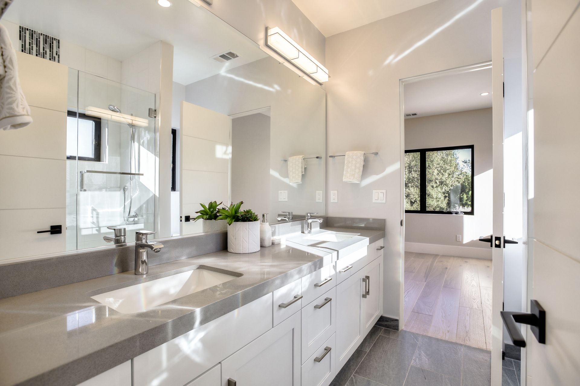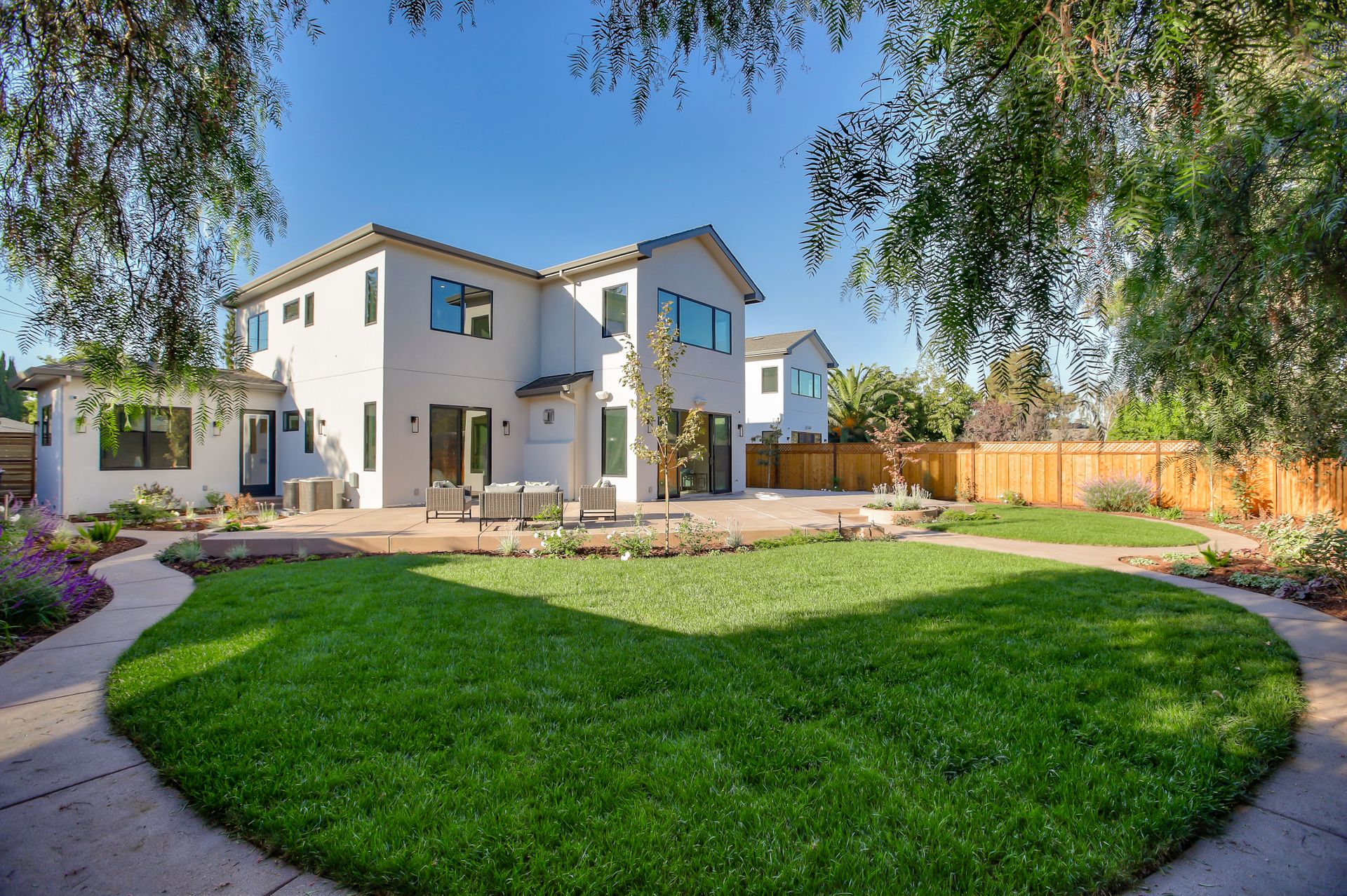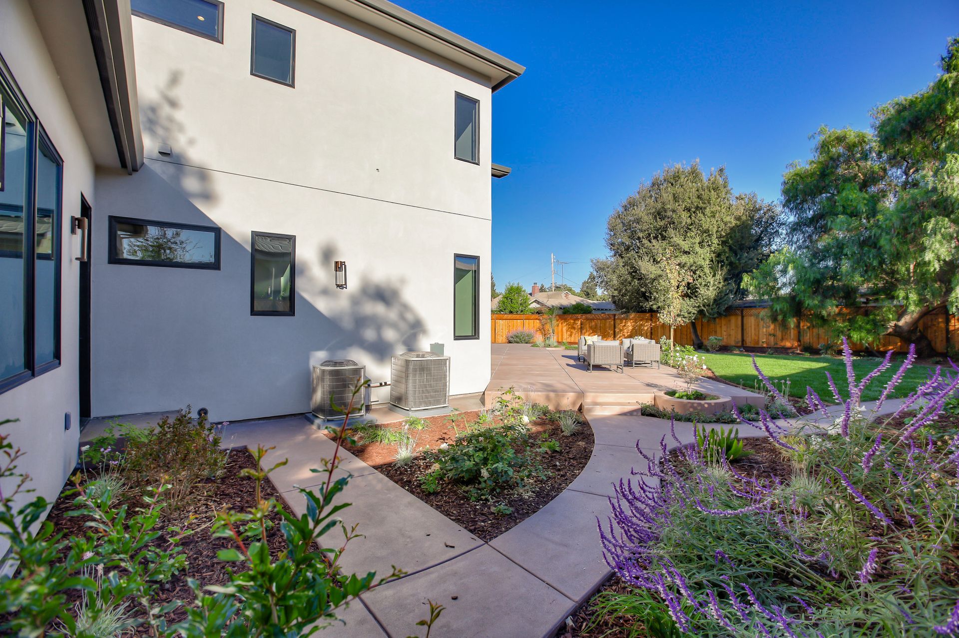 This beautiful newly constructed contemporary home has large rooms and an easy flow. The natural light-filled rooms with high ceilings and an open floorplan are ideal for large or multi-generational family. The home boasts all the modern amenities you could want, including dual heating and air conditioning zones, a tankless water heater, built-in speakers inside and out, a security system, wired ethernet and is EV charger ready. It is fully landscaped with sprinkler systems for the lawn and irrigation drip systems for the plants, shrubs and trees. The walkways around the backyard show off this spacious and brilliantly designed property.
