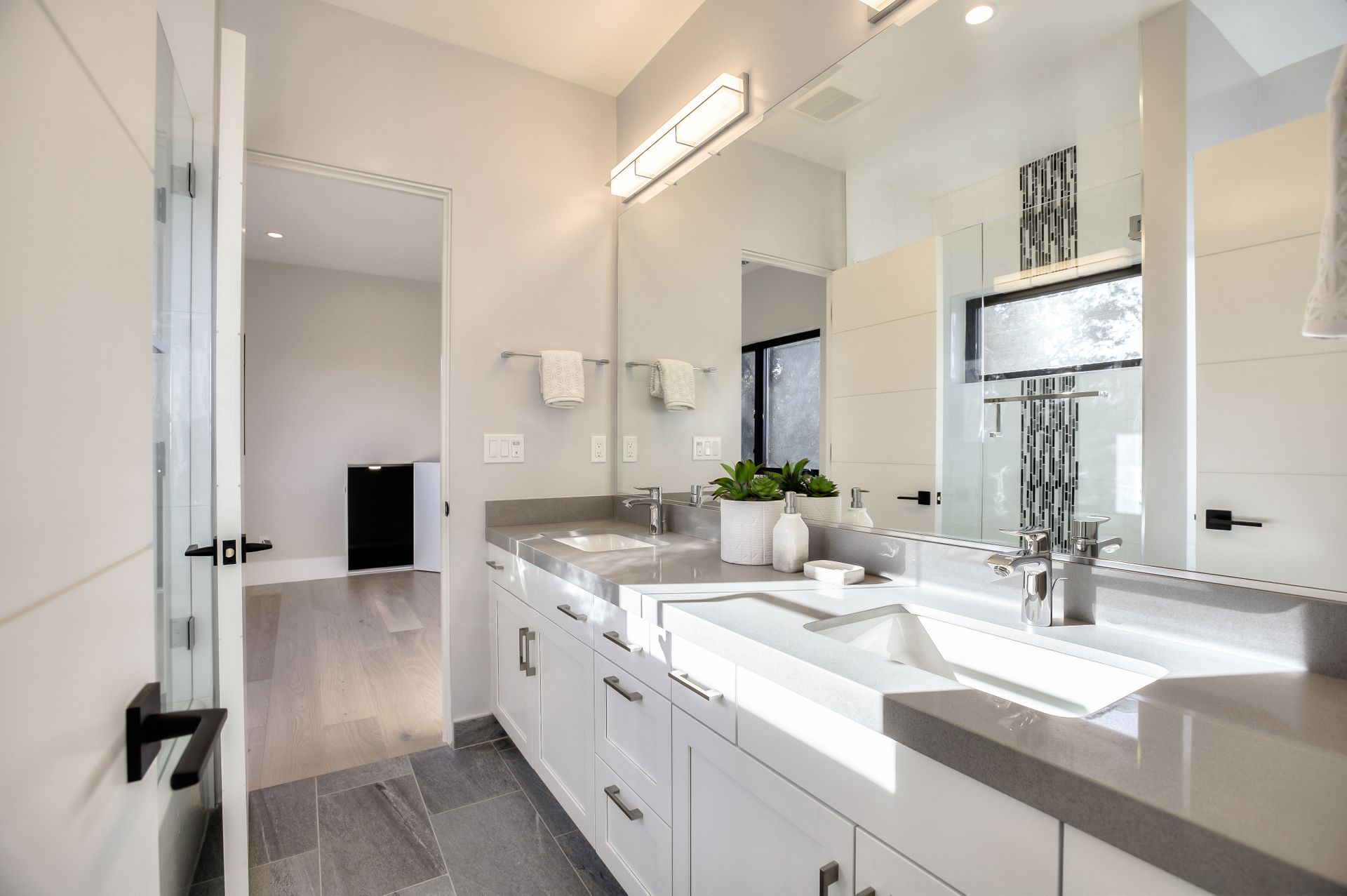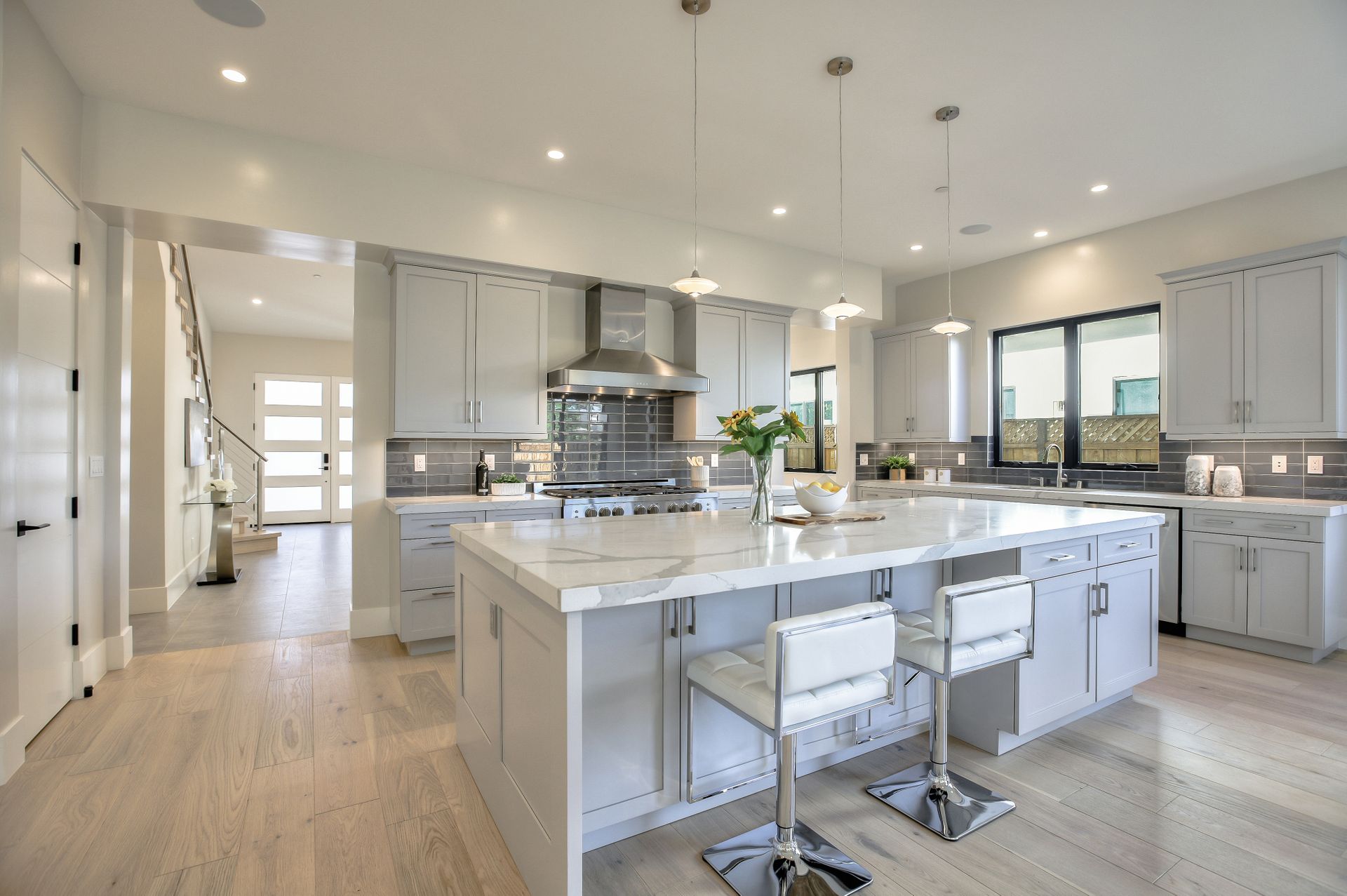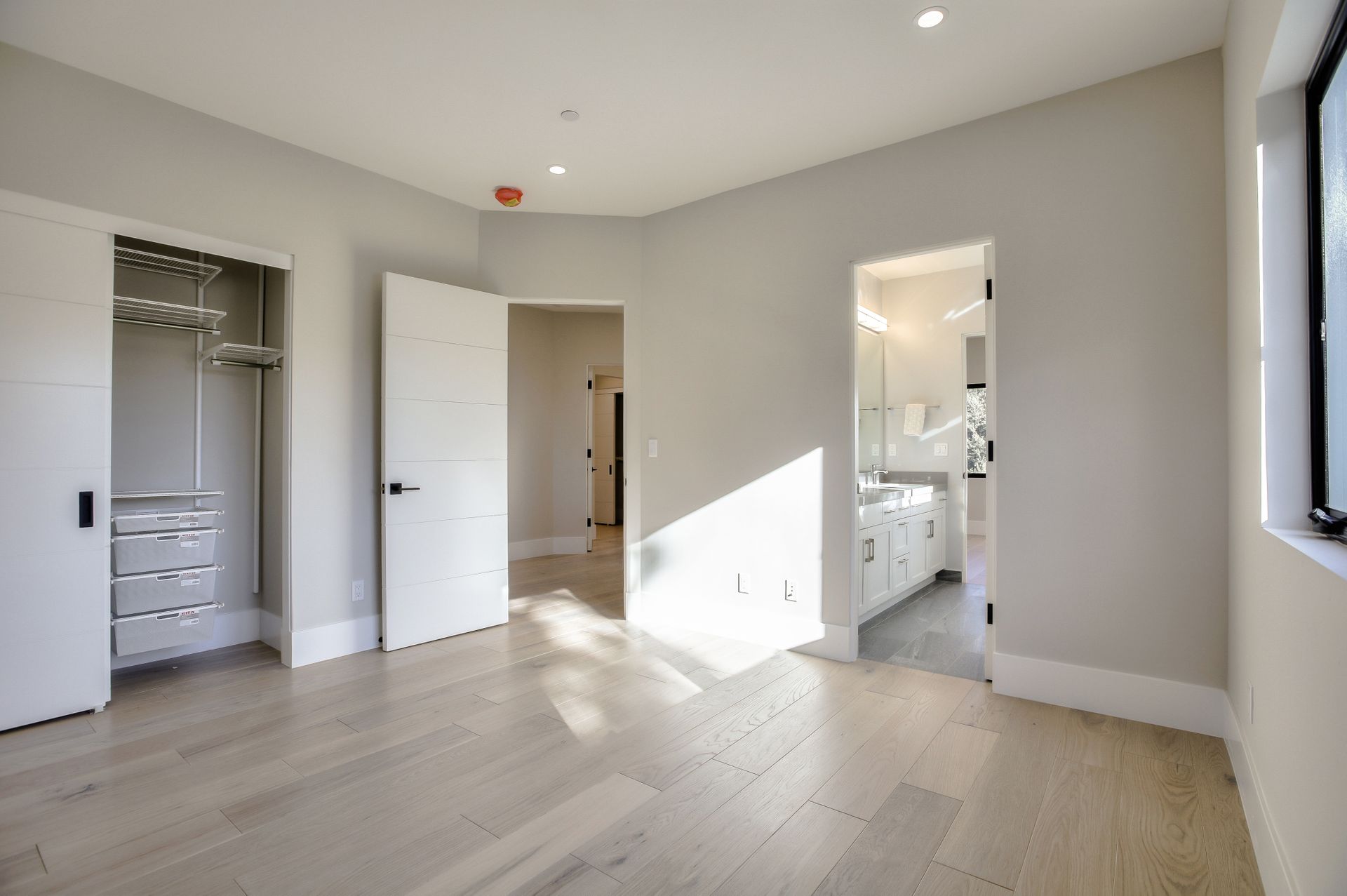 This beautiful newly constructed contemporary home has large rooms and an easy flow. The natural light-filled rooms with high ceilings and an open floorplan are ideal for large or multi-generational family. The home boasts all the modern amenities you could want, including dual heating and air conditioning zones, a tankless water heater, built-in speakers inside and out, a security system, wired ethernet and is EV charger ready. It is fully landscaped with sprinkler systems for the lawn and irrigation drip systems for the plants, shrubs and trees. The walkways around the backyard show off this spacious and brilliantly designed property.